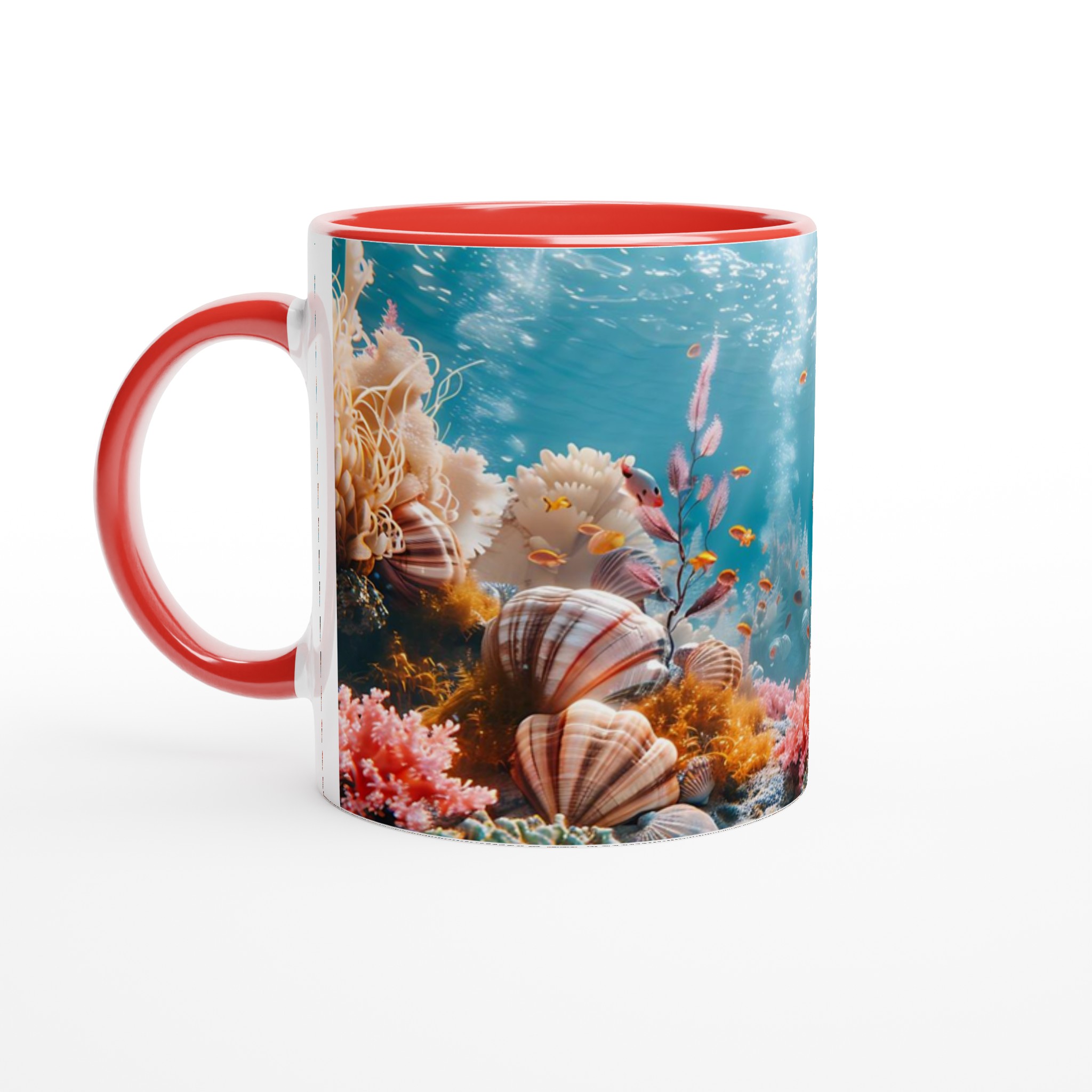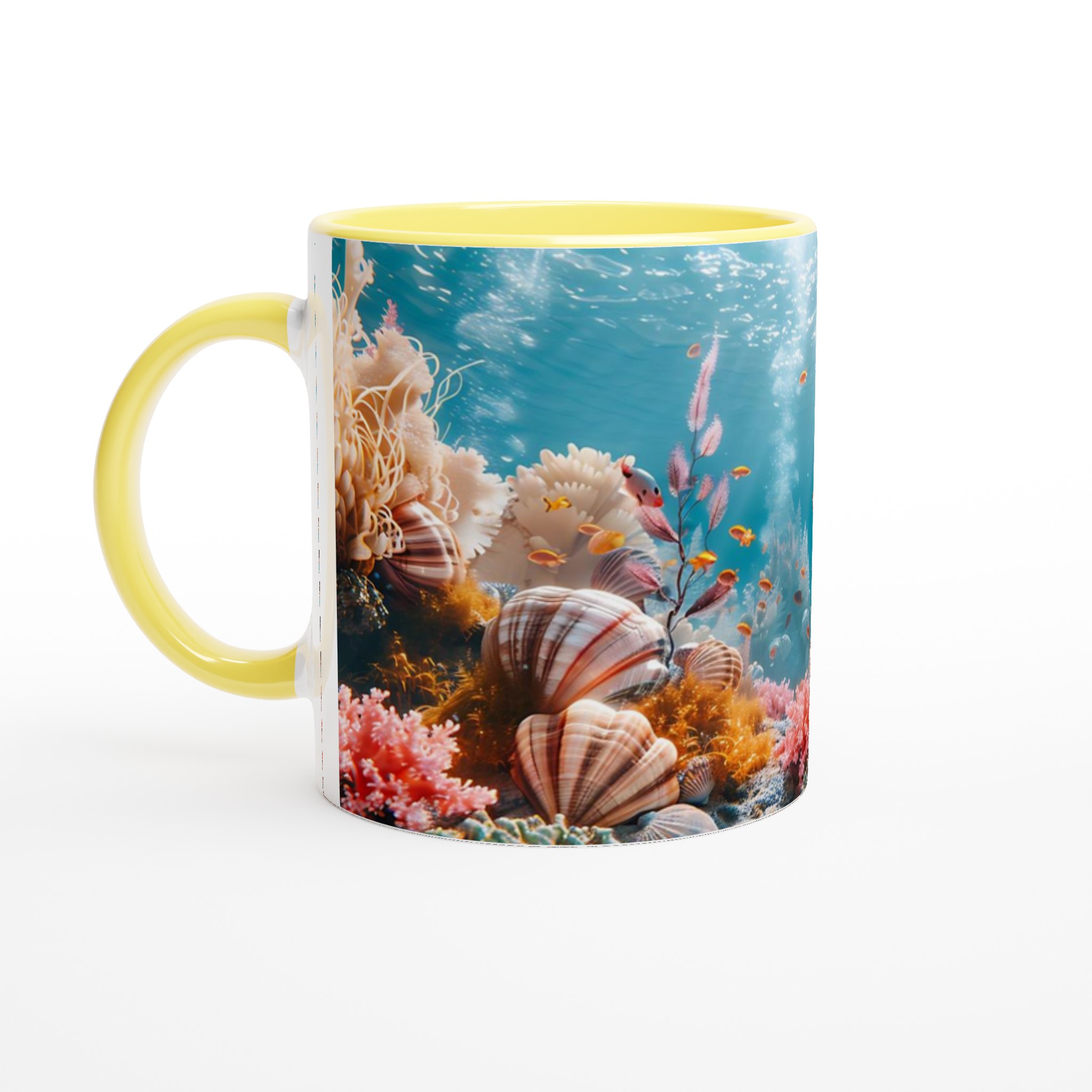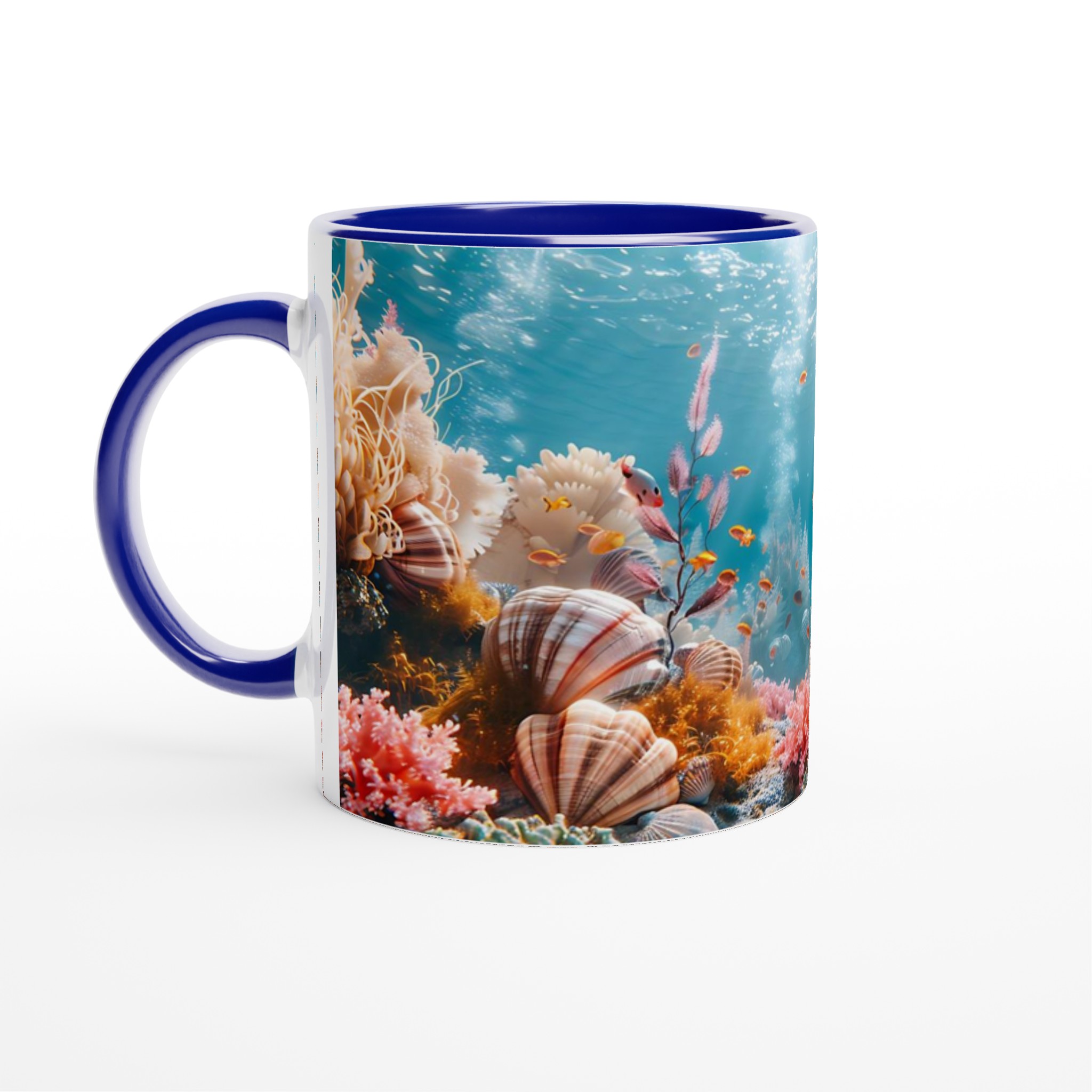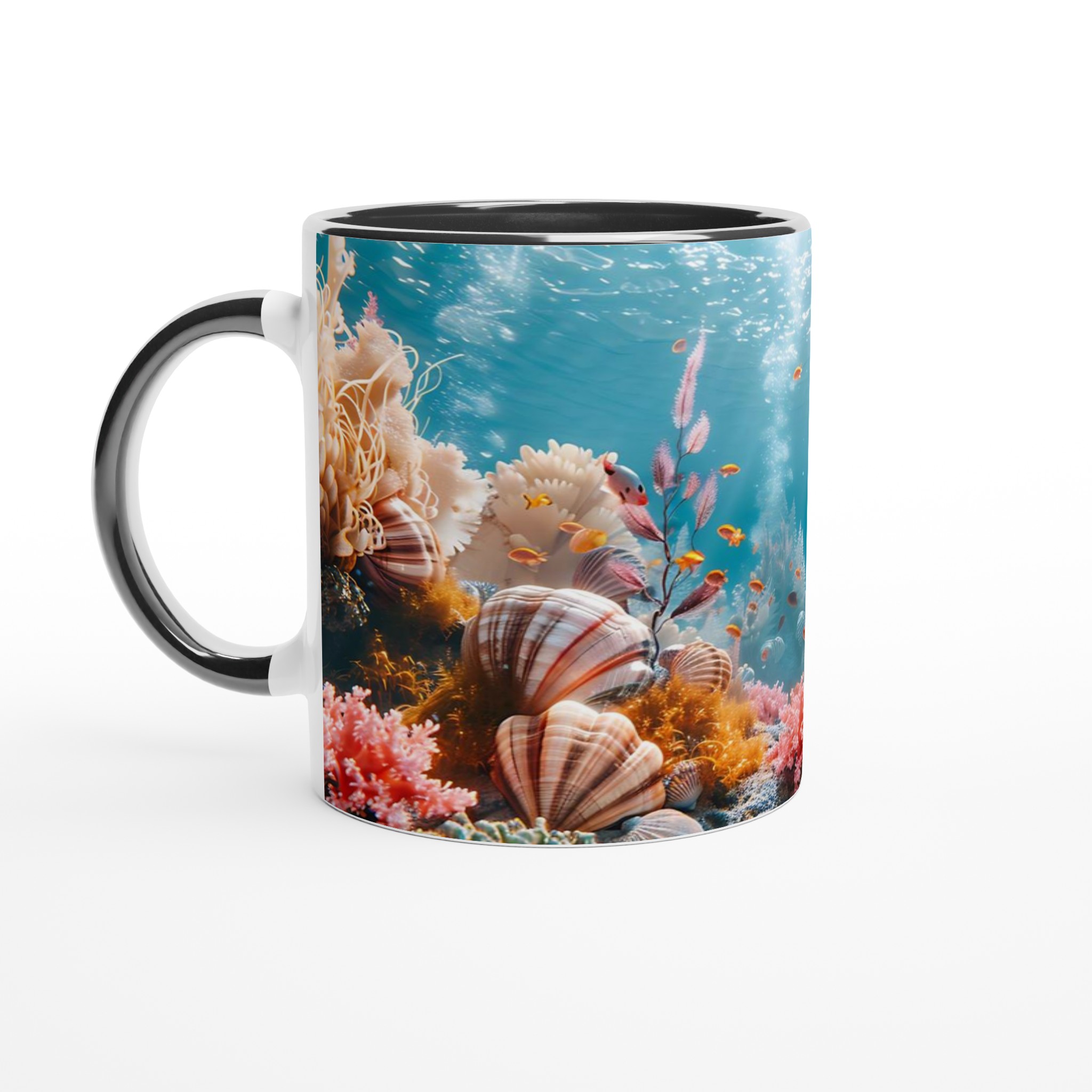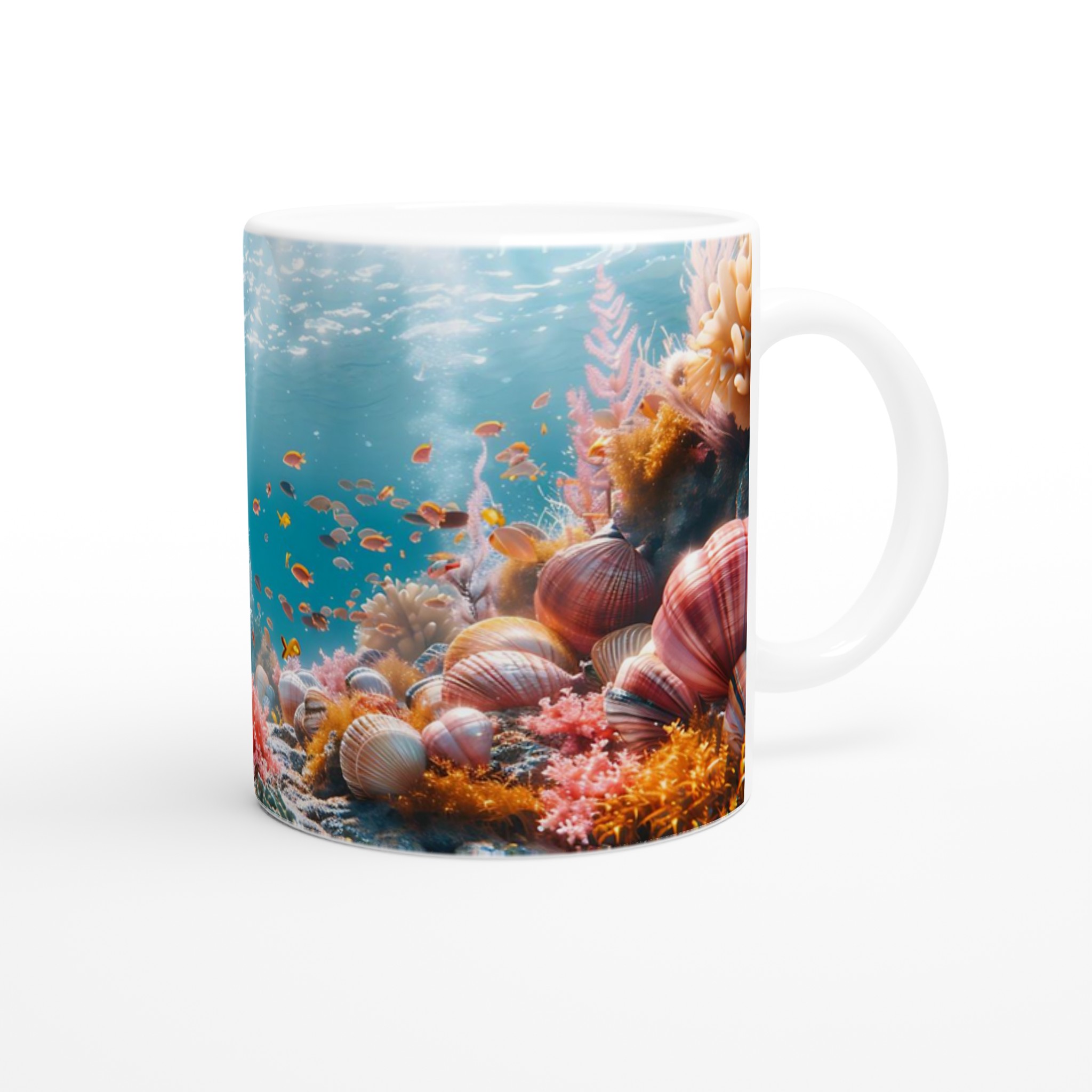 Dyk ner i en värld av lugn och skönhet varje gång du tar en klunk från den här stilrena keramiska muggen. Inspirerad av havets förtrollande färger och myllrande liv, blir den snabbt en vardagsfavorit. Perfekt för morgonkaffet, kvällens varma choklad eller när du bara vill njuta av en kopp te medan du drömmer dig bort till en undervattensvärld fylld av liv och glädje. Den blanka ytan framhäver trycken med klara och levande färger, som håller sig fina även efter många turer i mikron och diskmaskinen, precis som de livfulla korallreven under ytan.