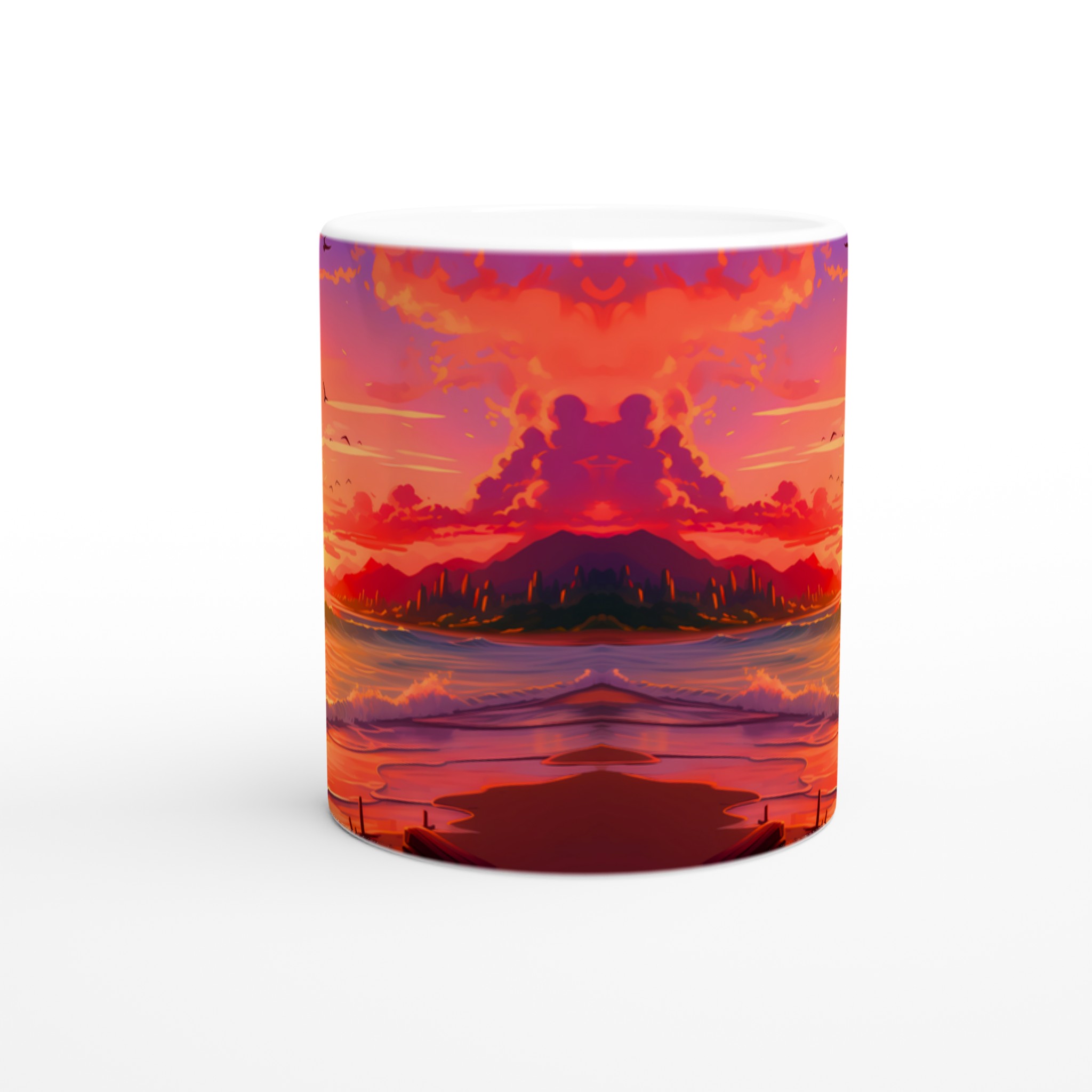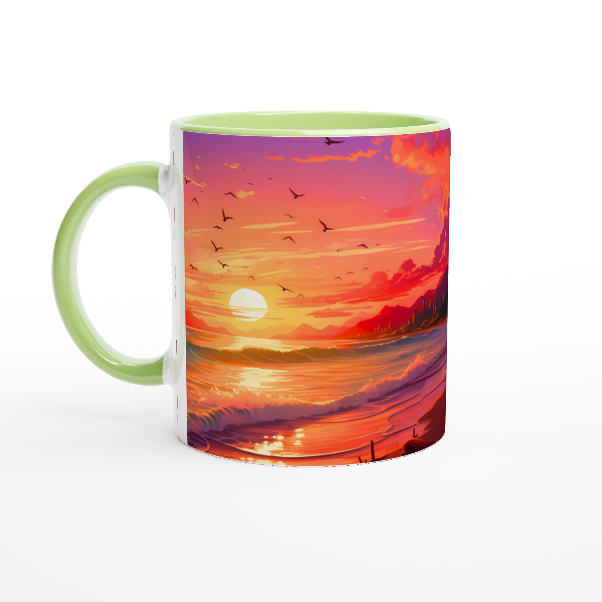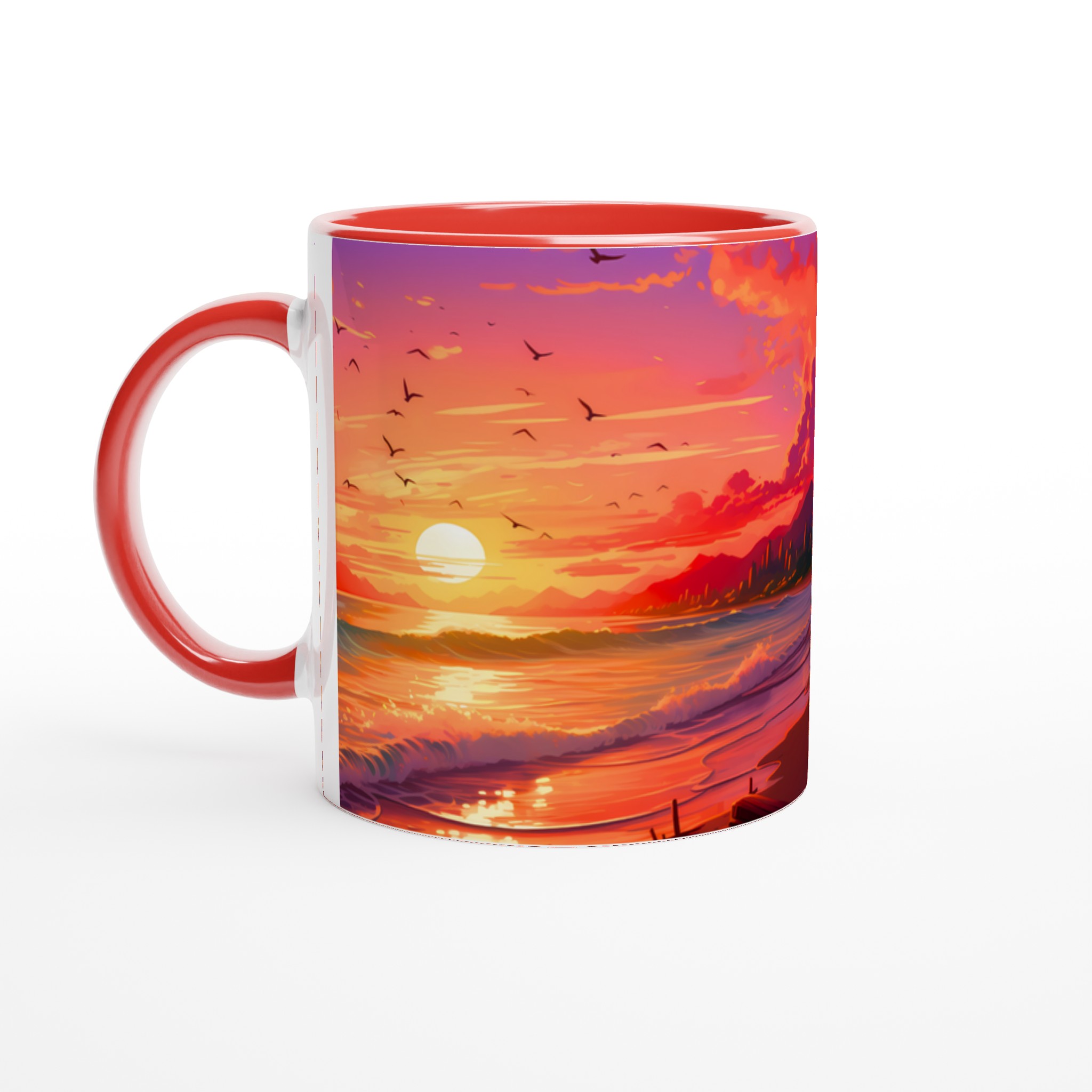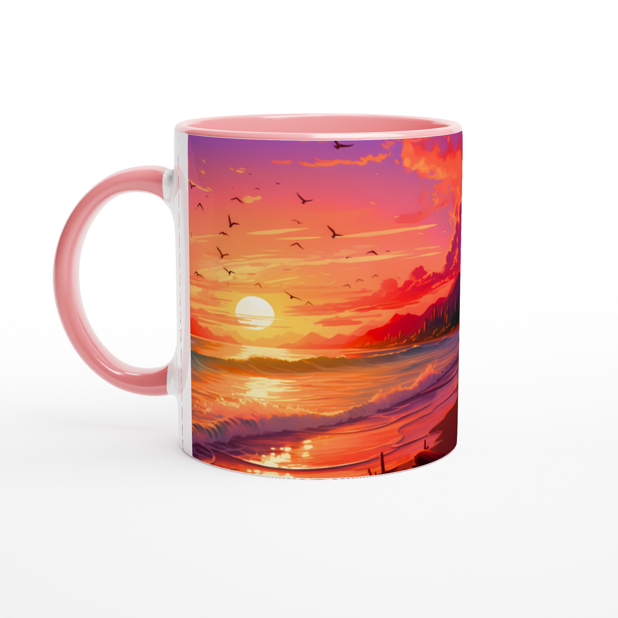Låt dig svepas med av den drömska skönheten hos en solnedgång över havet varje gång du tar en klunk. Denna keramiska mugg fångar den varma glöden och de mjuka färgskiftningarna från en akvarellmålning, perfekt för att lyfta din dag. Med sin lugnande estetik blir den snabbt en vardagsfavorit, idealisk för morgonkaffet, kvällens varma choklad eller när du bara vill njuta av en kopp te.