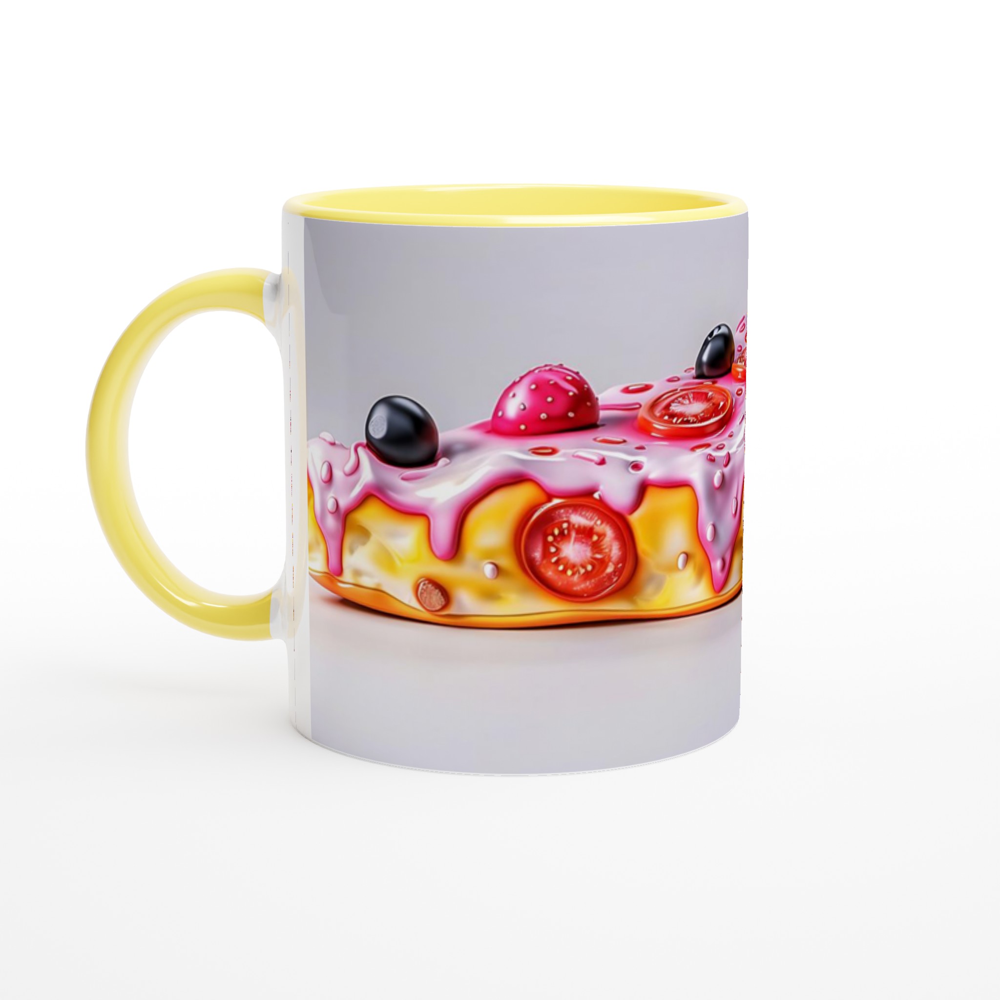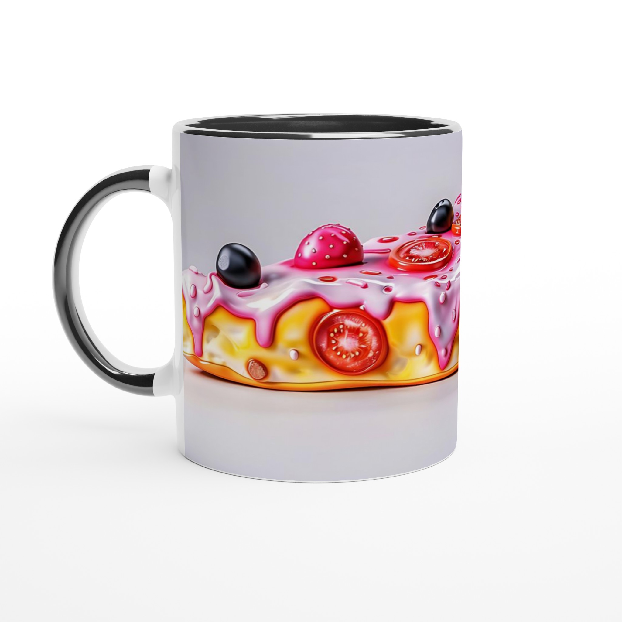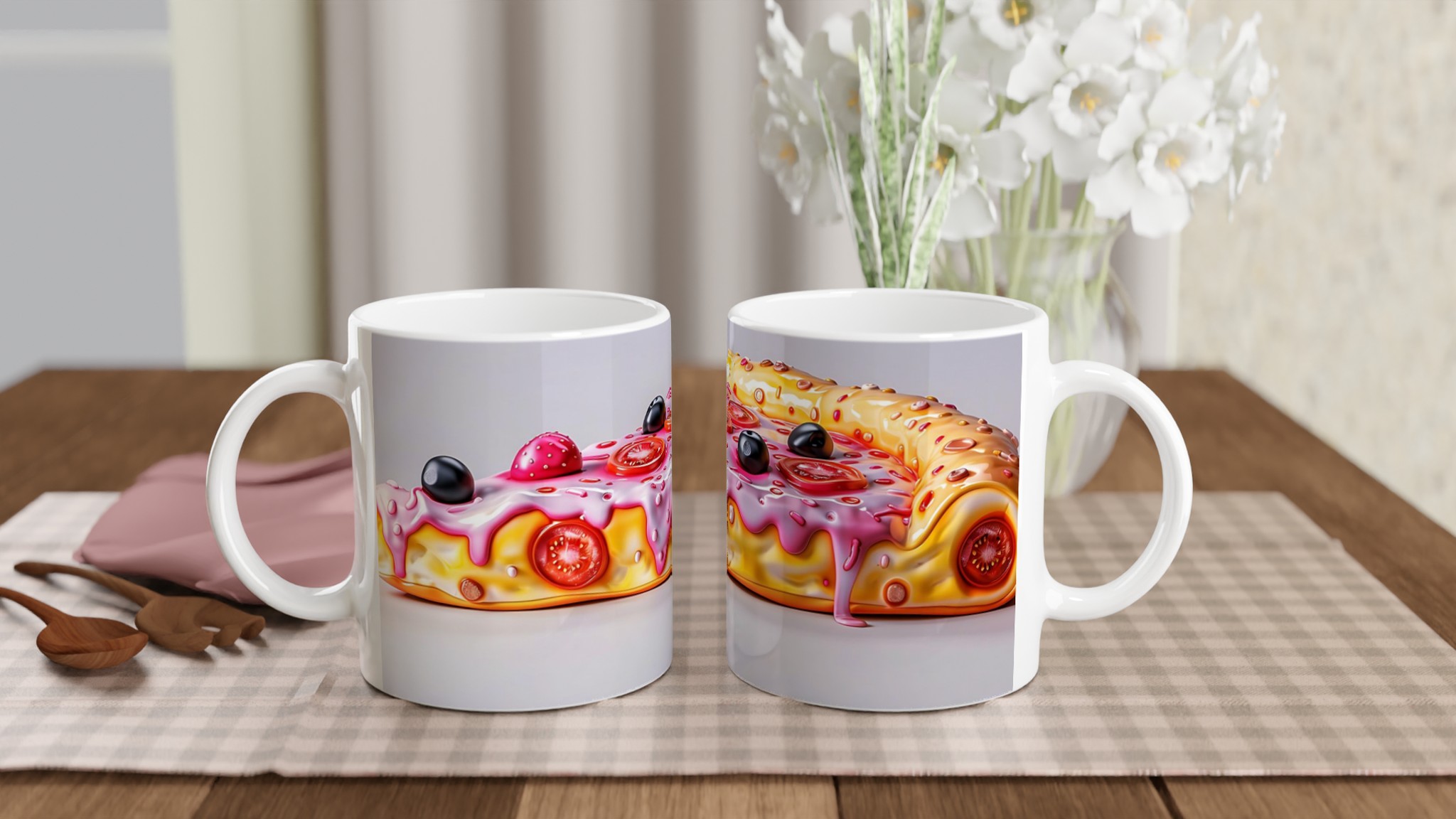 Lyft din vardagsrutin med vår keramiska mugg – en verklig ögonfångare som kombinerar lekfull design med tidlös charm. Den här muggen är inte bara en behållare för din favoritdryck; den är en konversationsstartare, prydd med en surrealistisk och aptitretande ’sweet pizza’-design med glänsande, droppande glasyr, godistomater och chokladoliver. Dess blanka yta framhäver de klara, levande färgerna som kommer att förbli lika strålande som första dagen, även efter otaliga användningar och rengöringar.