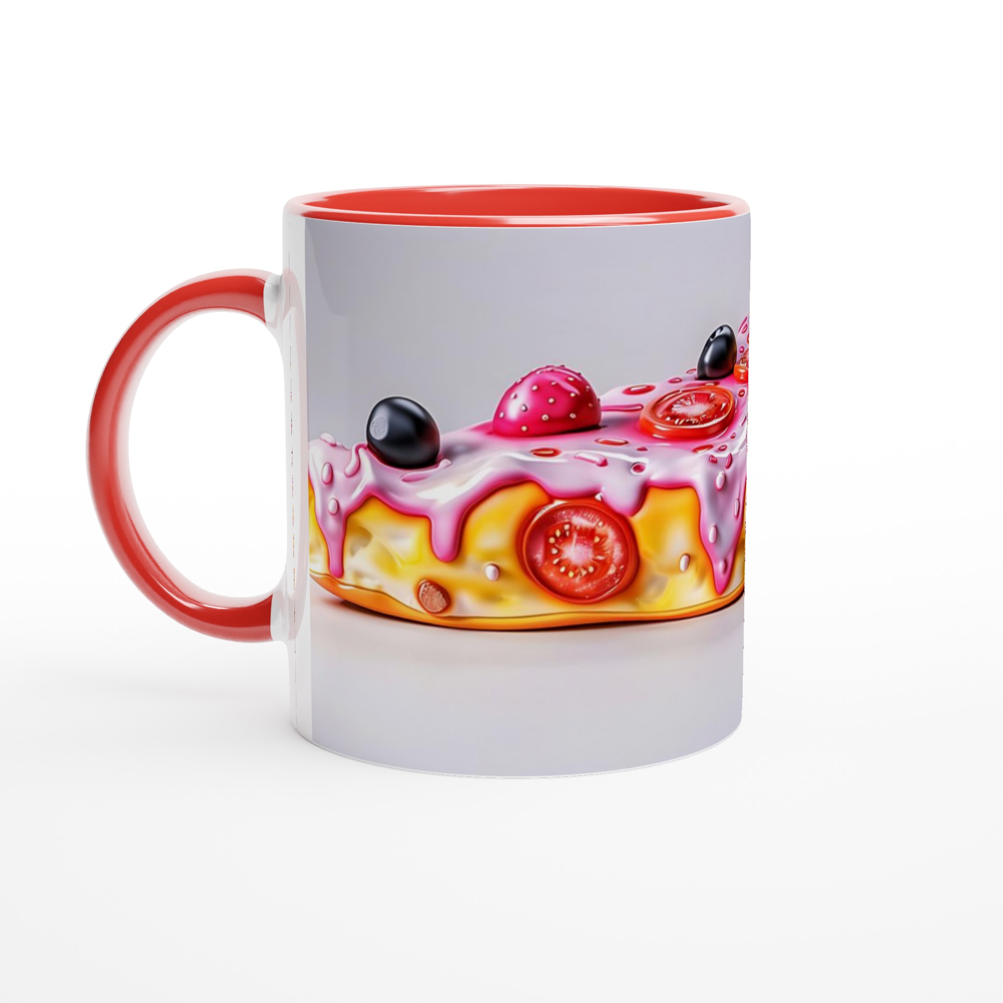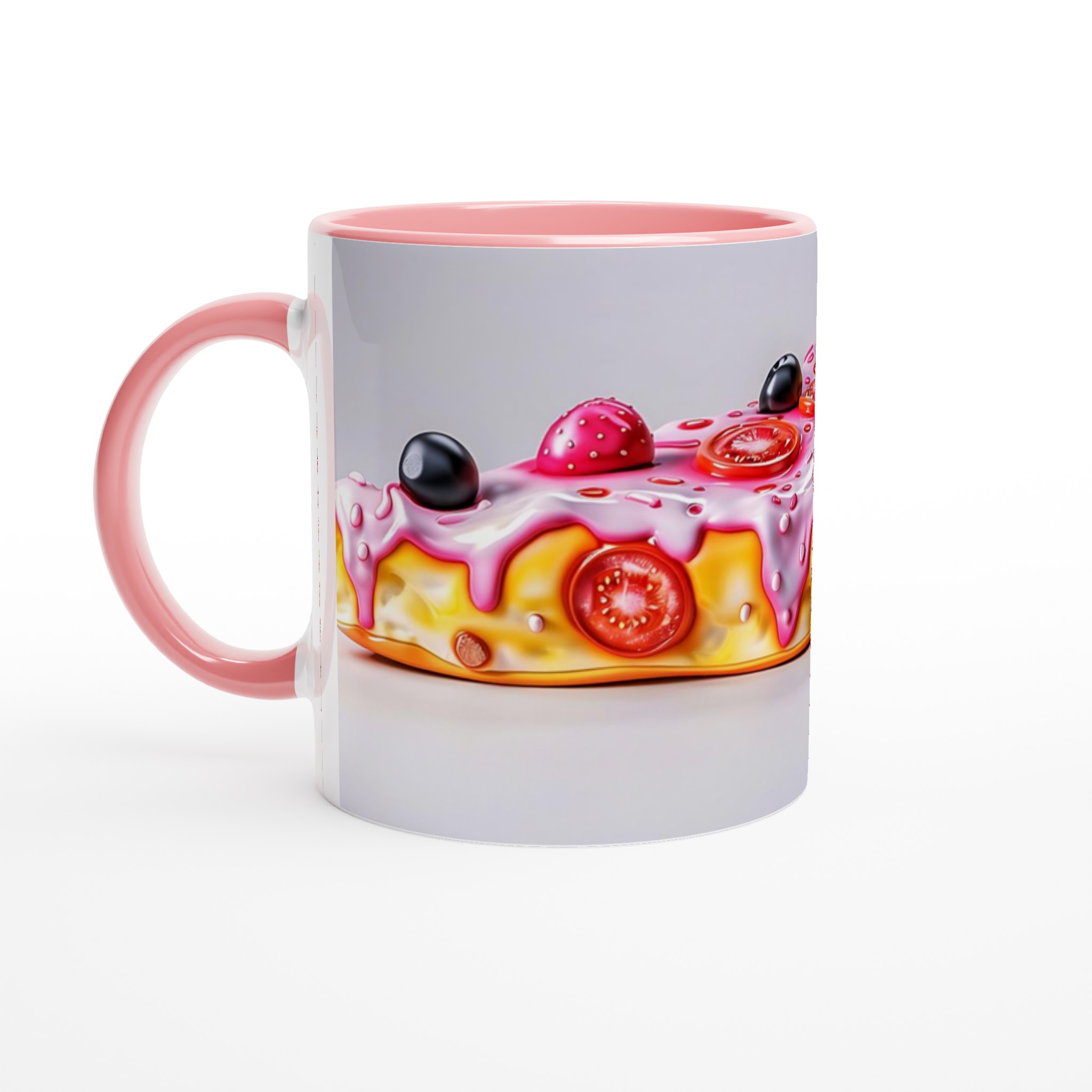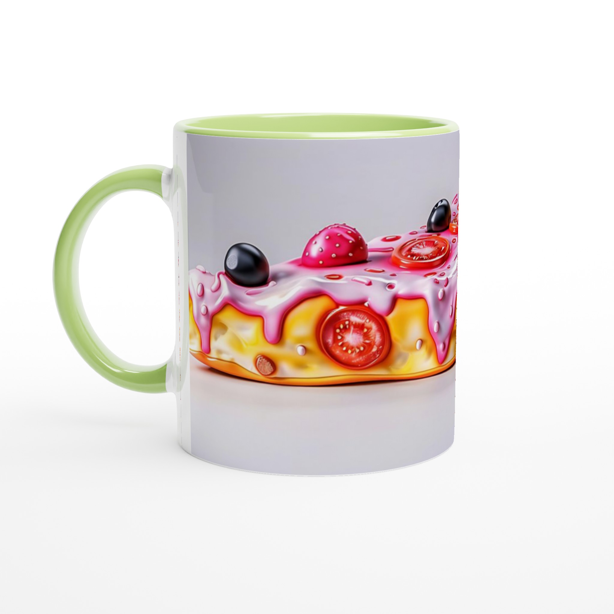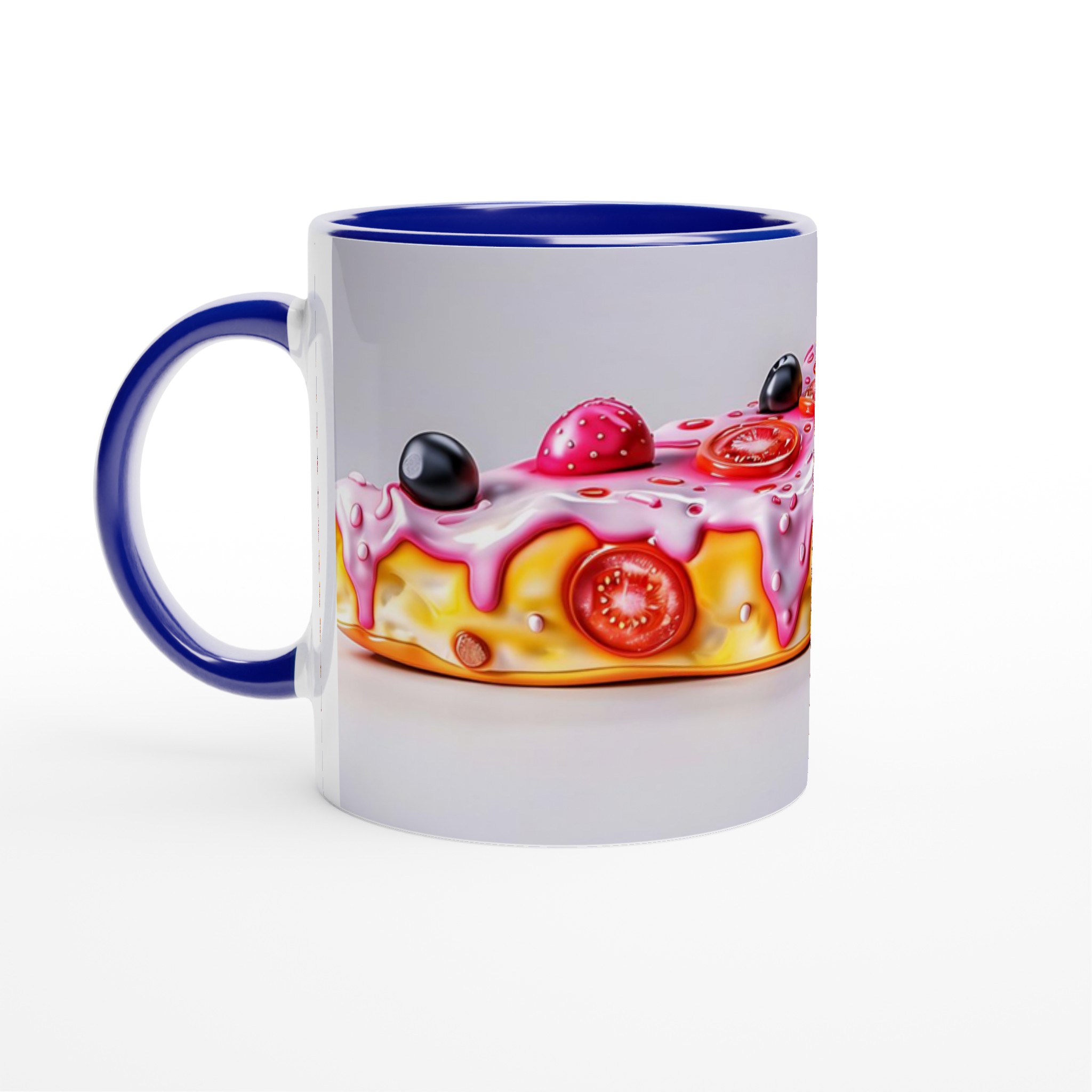 Lyft din vardagsrutin med vår keramiska mugg – en verklig ögonfångare som kombinerar lekfull design med tidlös charm. Den här muggen är inte bara en behållare för din favoritdryck; den är en konversationsstartare, prydd med en surrealistisk och aptitretande ’sweet pizza’-design med glänsande, droppande glasyr, godistomater och chokladoliver. Dess blanka yta framhäver de klara, levande färgerna som kommer att förbli lika strålande som första dagen, även efter otaliga användningar och rengöringar.