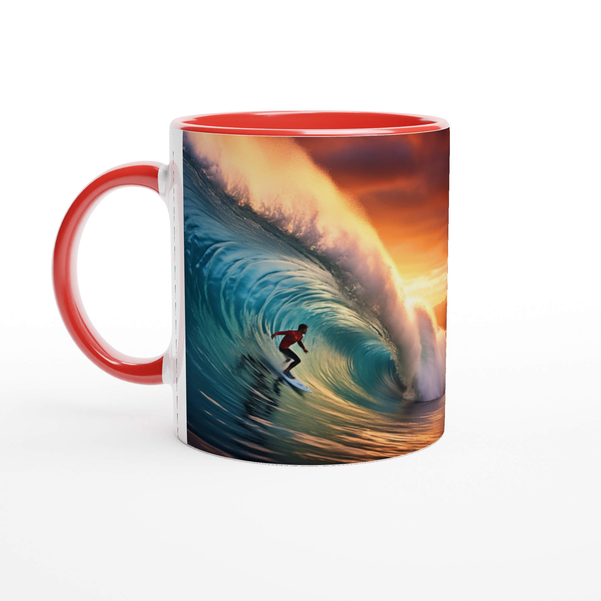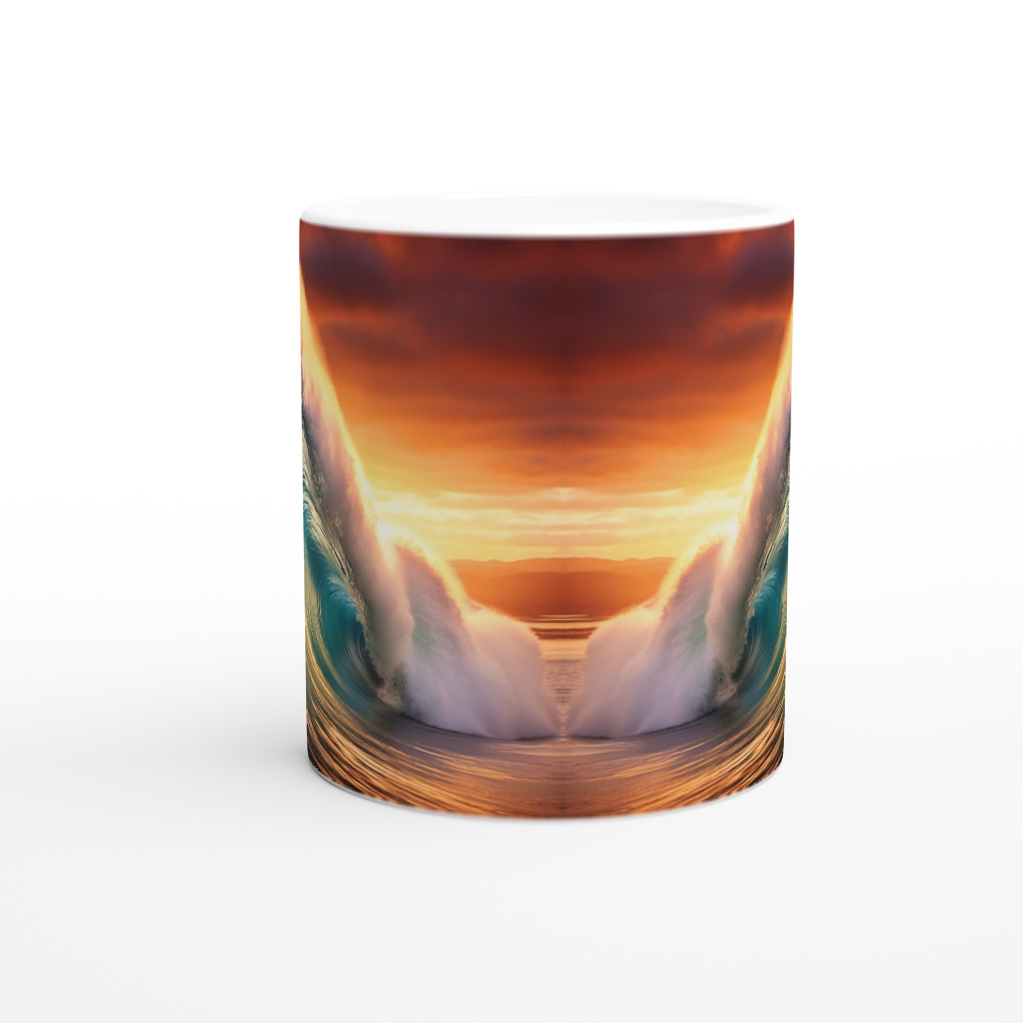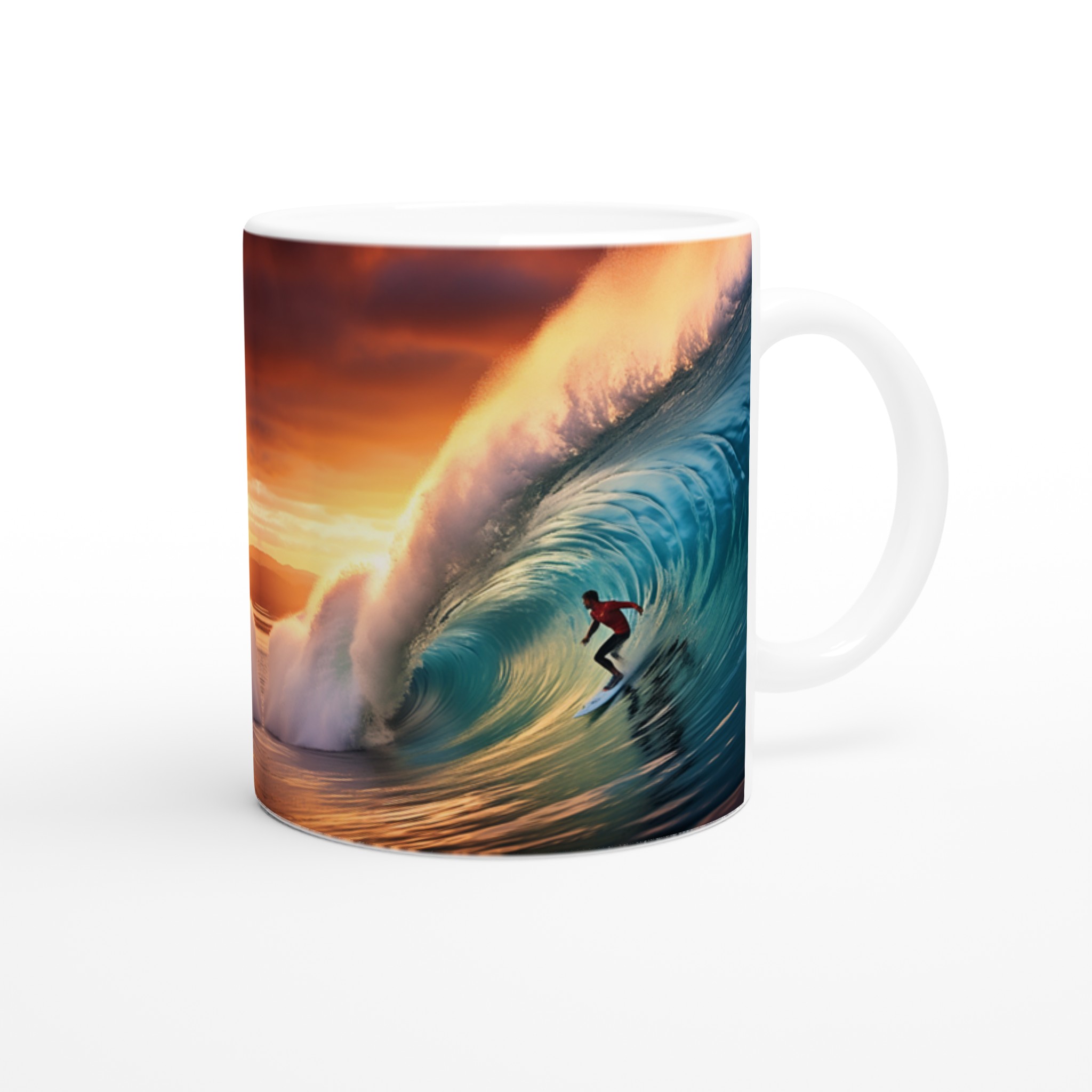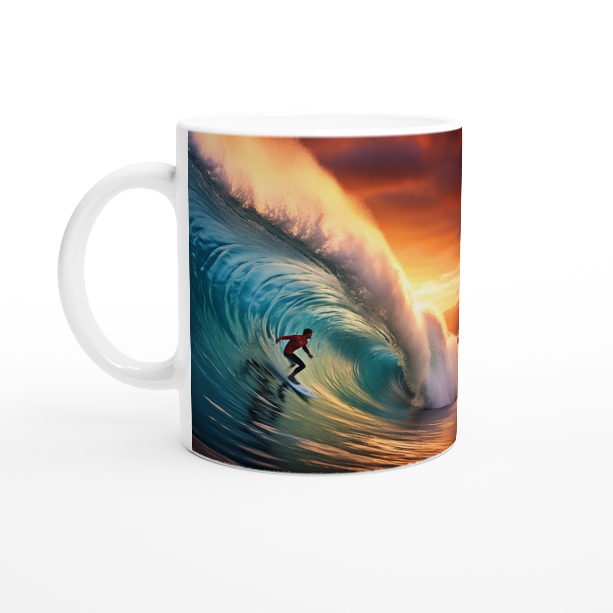 Fånga den mäktiga energin från en perfekt våg och en brinnande solnedgång med vår keramiska mugg – en verklig vardagsfavorit för dig som älskar havet och storslagna ögonblick. Denna mugg är perfekt för ditt morgonkaffe, en lugn stund med kvällens varma choklad, eller när du bara vill njuta av en kopp te medan du drömmer dig bort till kusten.