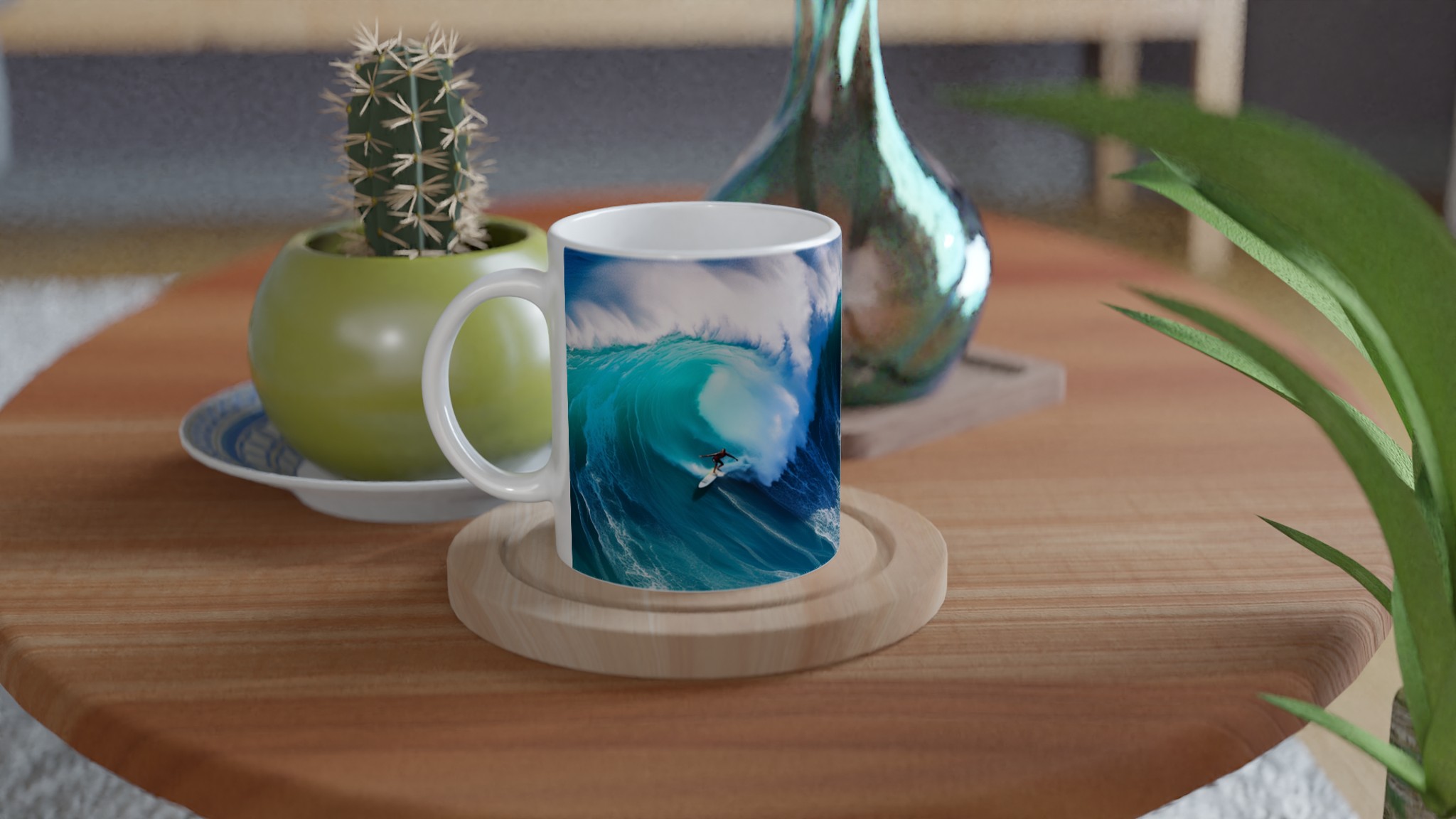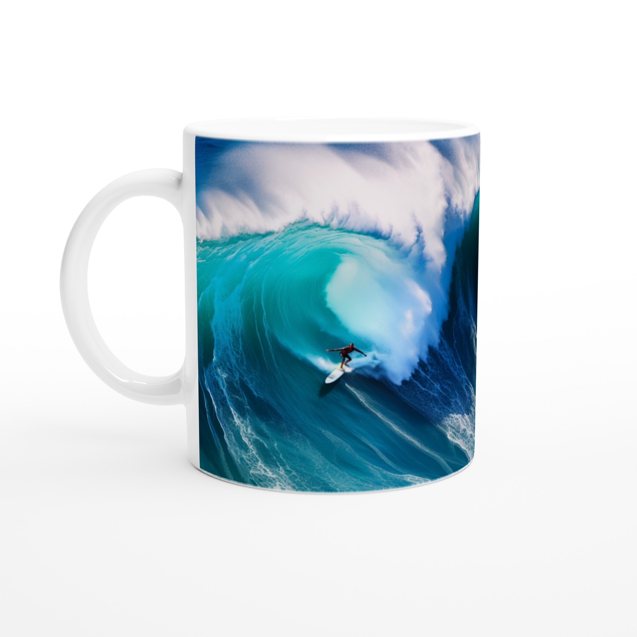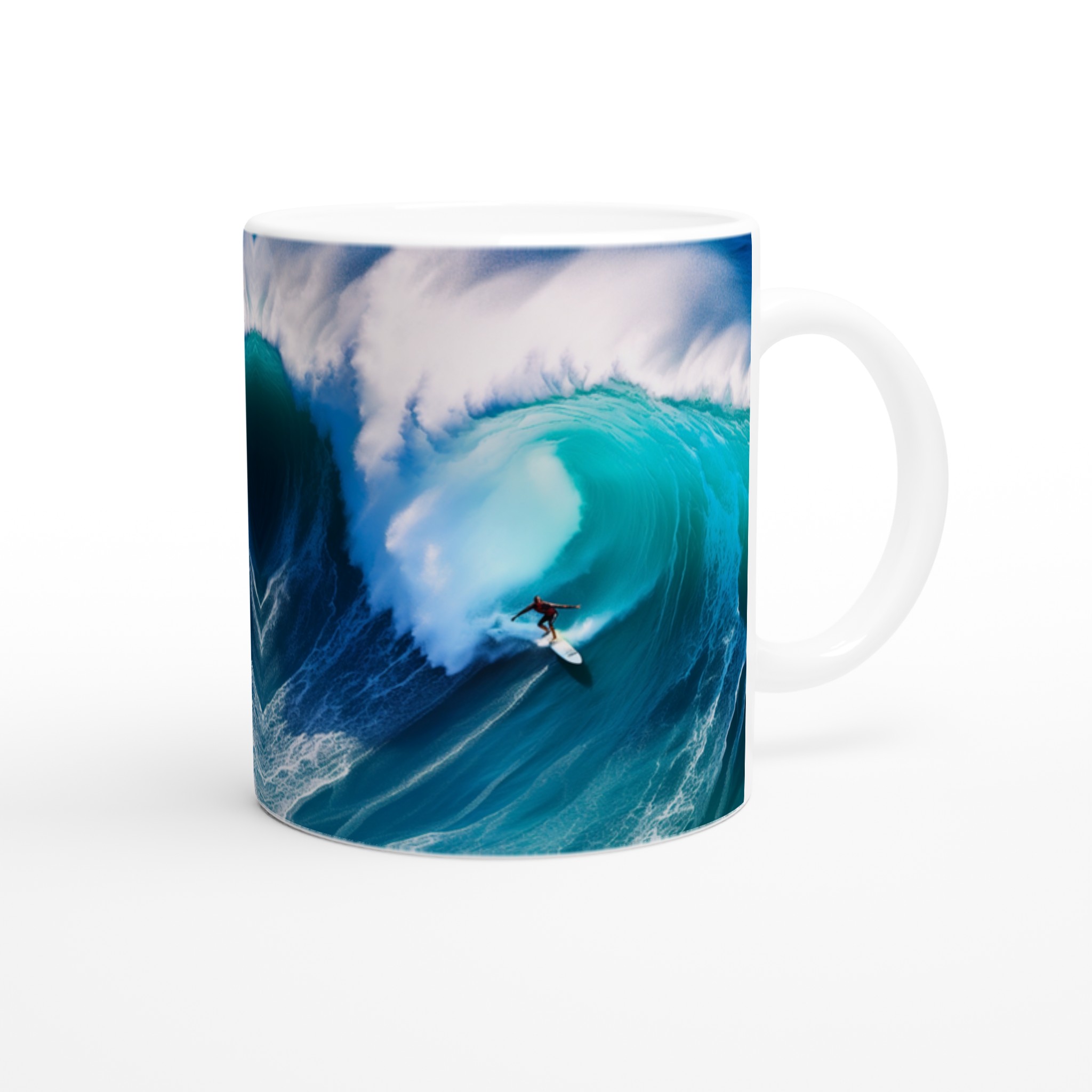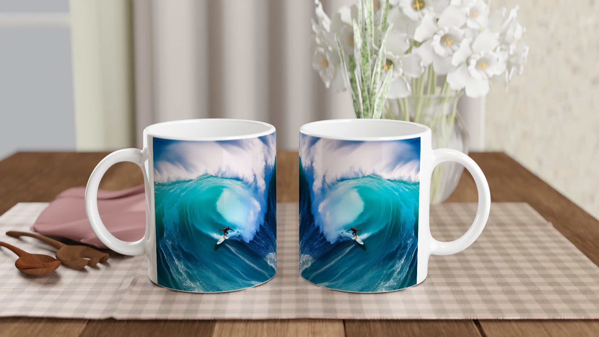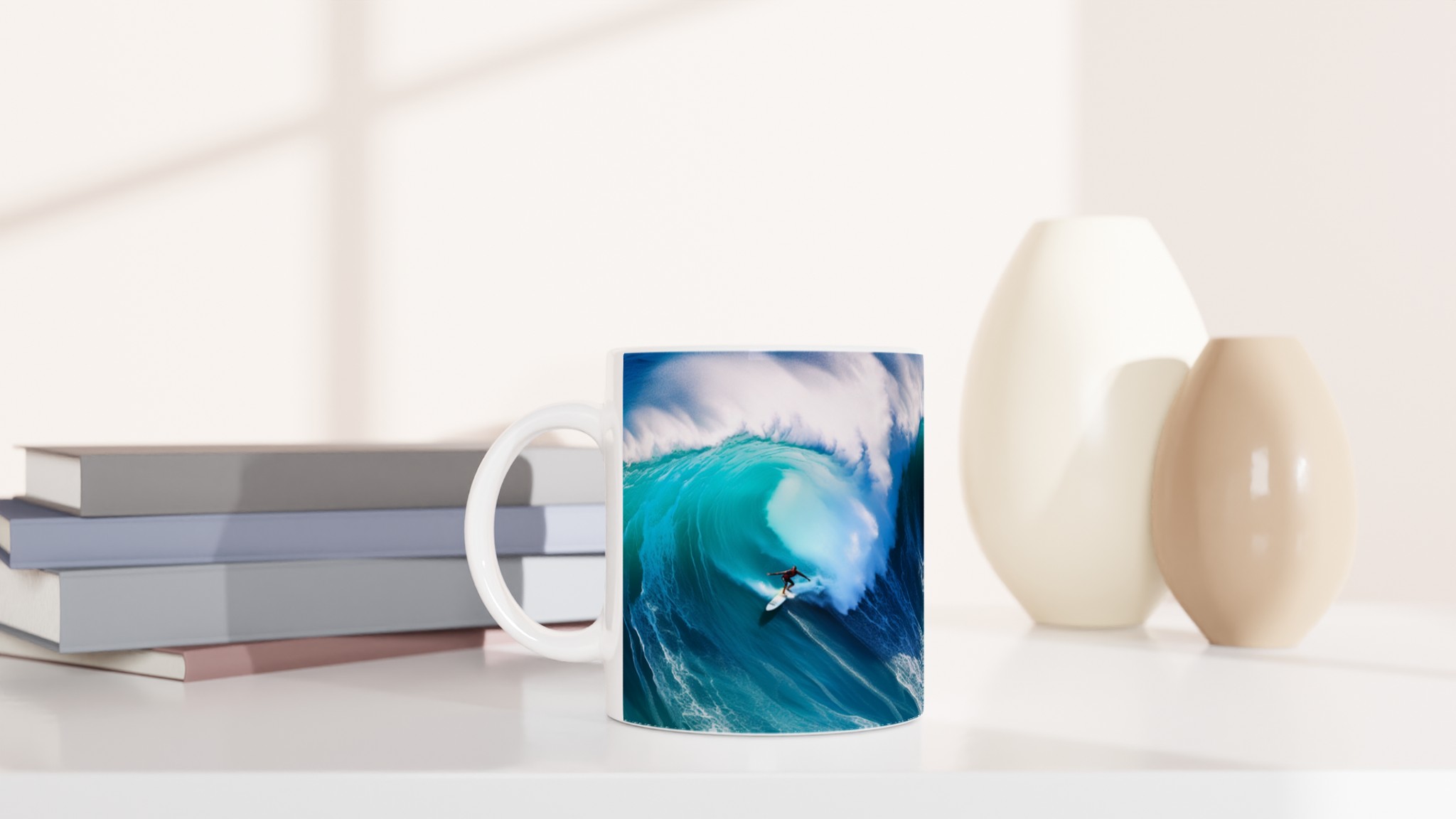 Ge din dag en energikick med vår stilrena keramiska mugg, perfekt för surfälskaren eller den som drömmer om havet! Denna mugg fångar den dynamiska energin från en perfekt våg, med djupa turkosa och blå nyanser som skapar en känsla av äventyr och frihet. Perfekt för morgonkaffet, kvällens varma choklad eller när du bara vill njuta av en kopp te. Den blanka ytan gör att trycken framhävs med klara och levande färger, som håller sig fina även efter många turer i mikron och diskmaskinen.