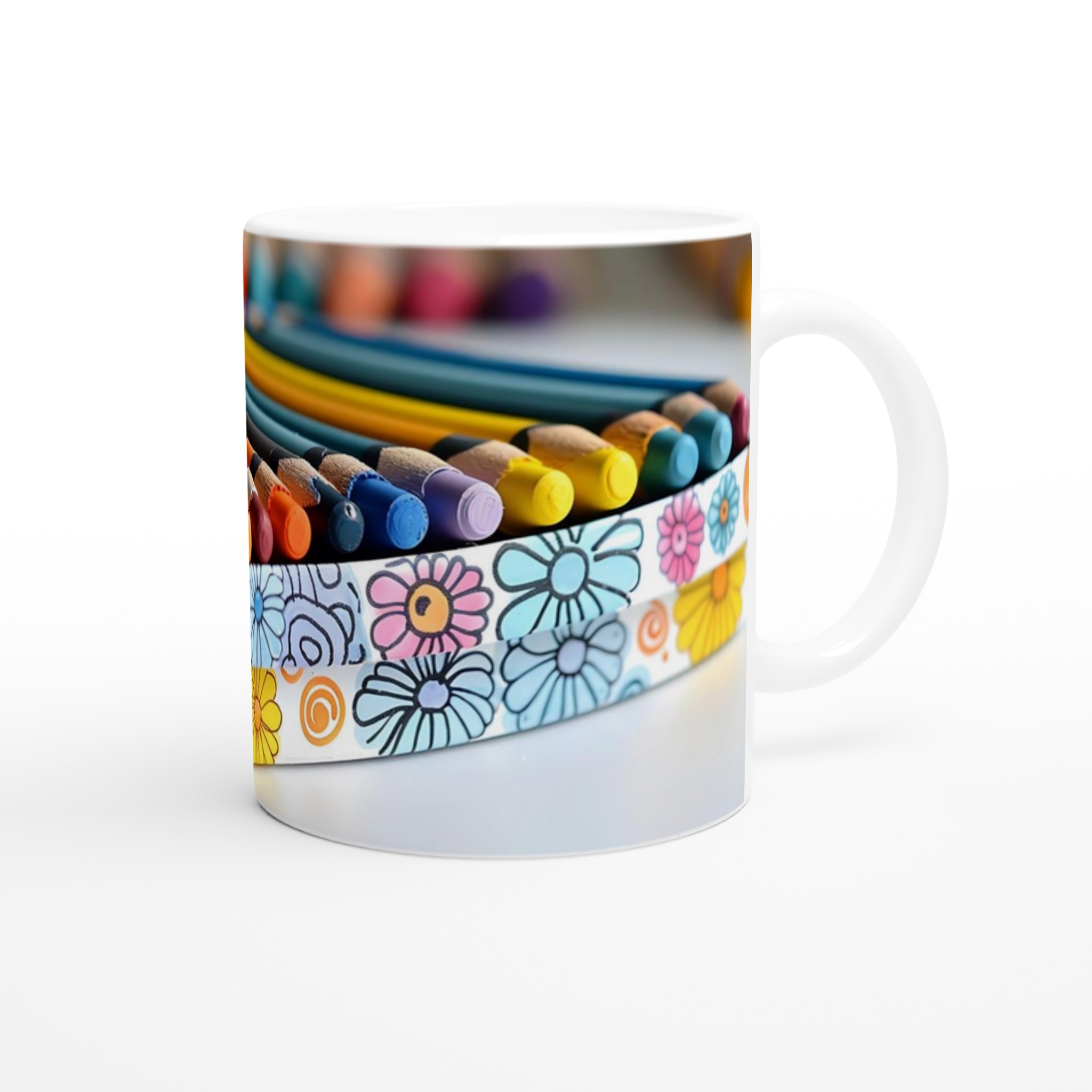 Lys upp din dag med denna härliga keramiska mugg, prydd med ett charmigt blommönster i en lekfull, handritad stil. Den livfulla färgpaletten av blått, orange, rosa och gult mot den vita bakgrunden ger en glad och inbjudande känsla till varje sip. Perfekt för morgonkaffet, kvällens varma choklad eller när du bara vill njuta av en kopp te – den här muggen blir snabbt en favorit.