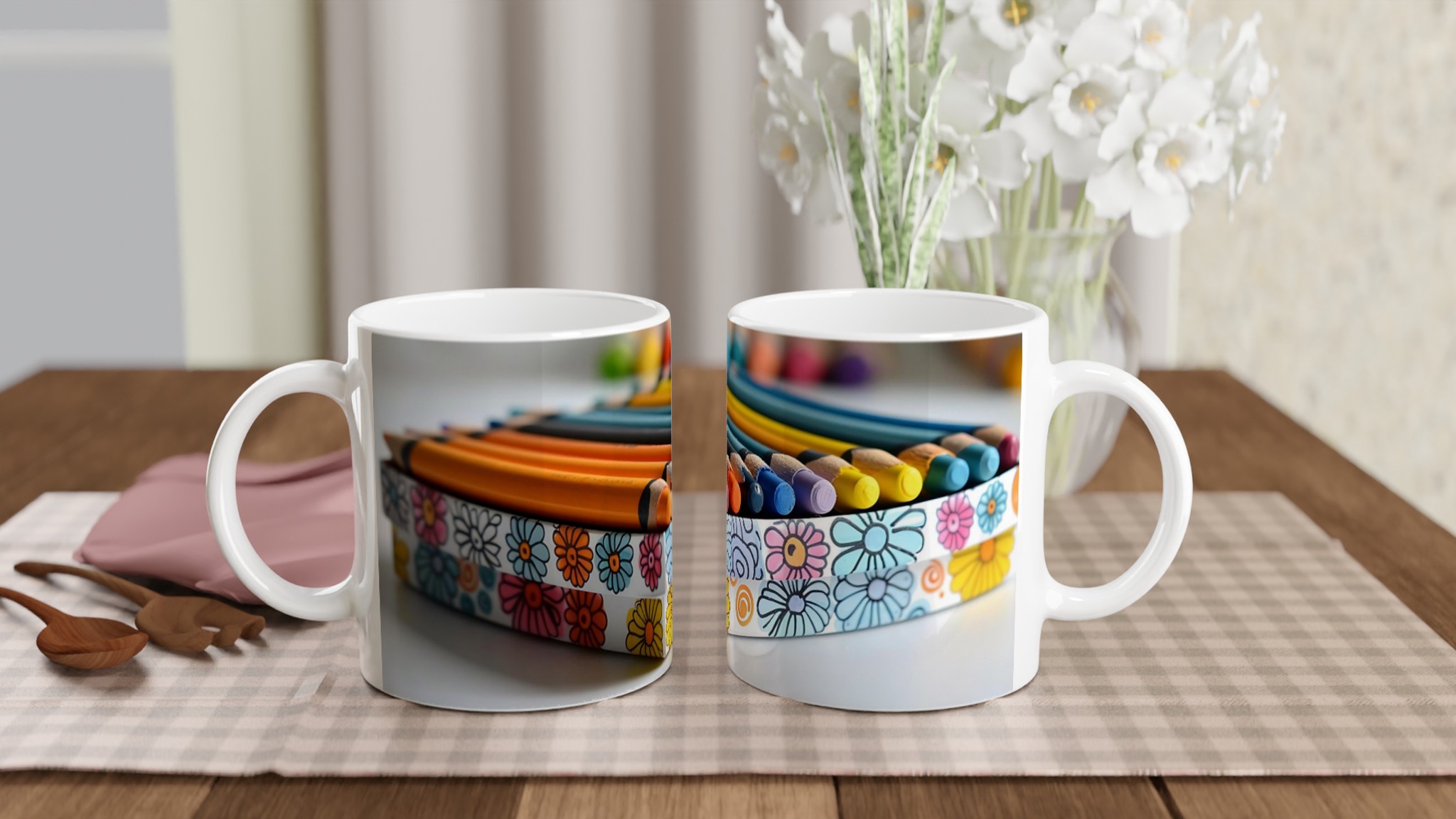 Den blanka vita ytan ser till att trycken framhävs med klara och levande färger, som håller sig fina även efter många turer i mikron och diskmaskinen. Välj din egen basfärg för muggen för att matcha din stil eller inredning. Den är inte bara praktisk – den är också en uppskattad present till familj, vänner eller kollegor. En enkel men personlig gåva som alltid kommer till användning!