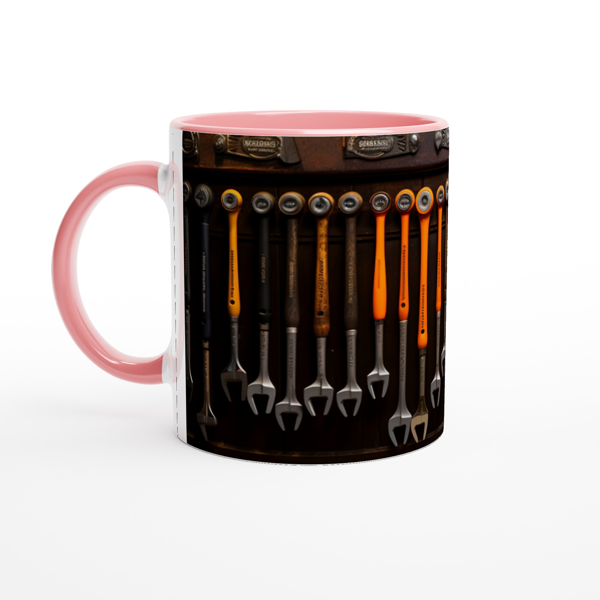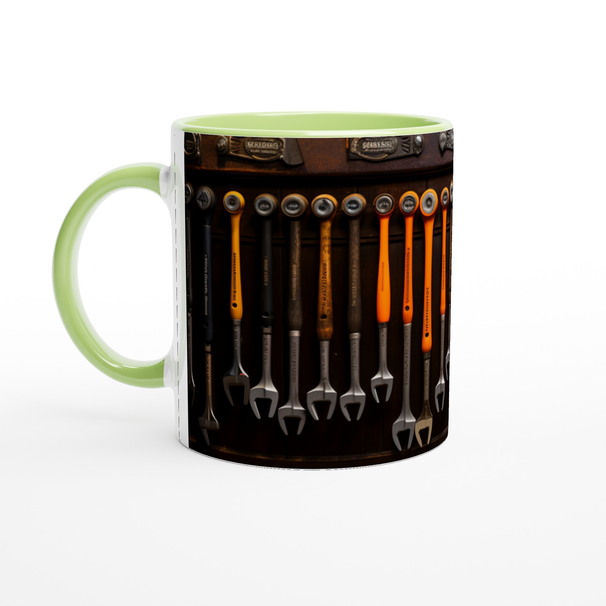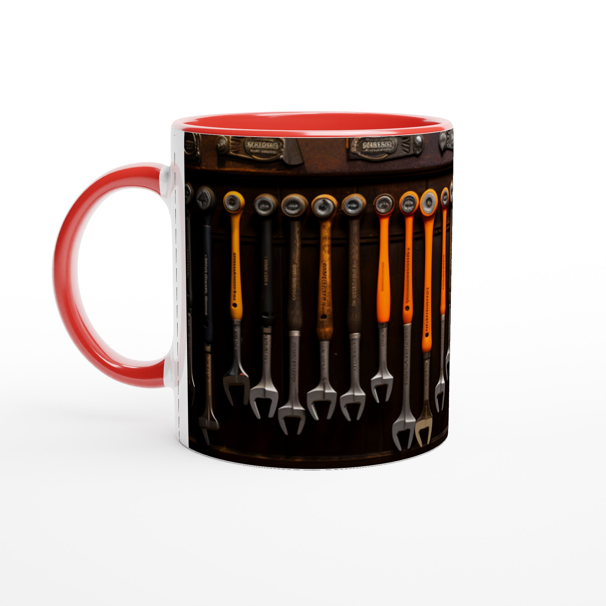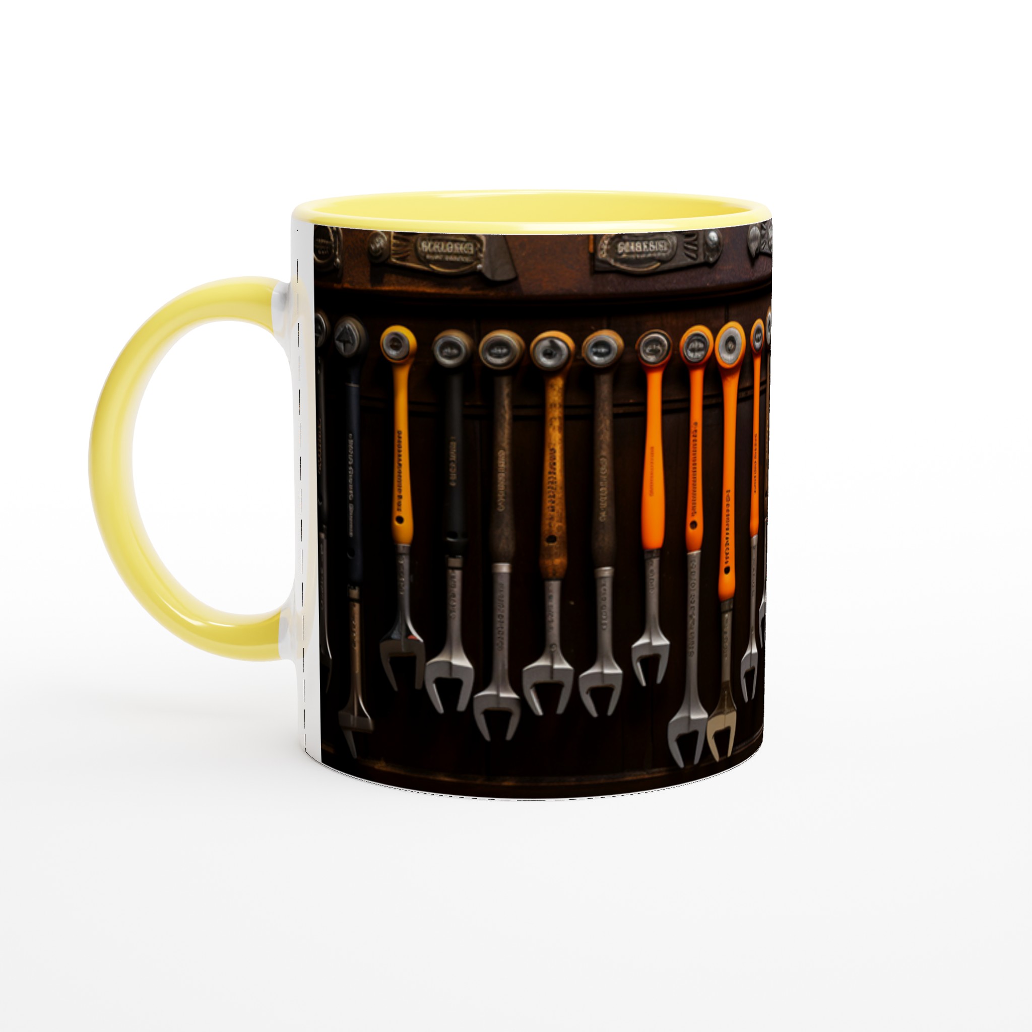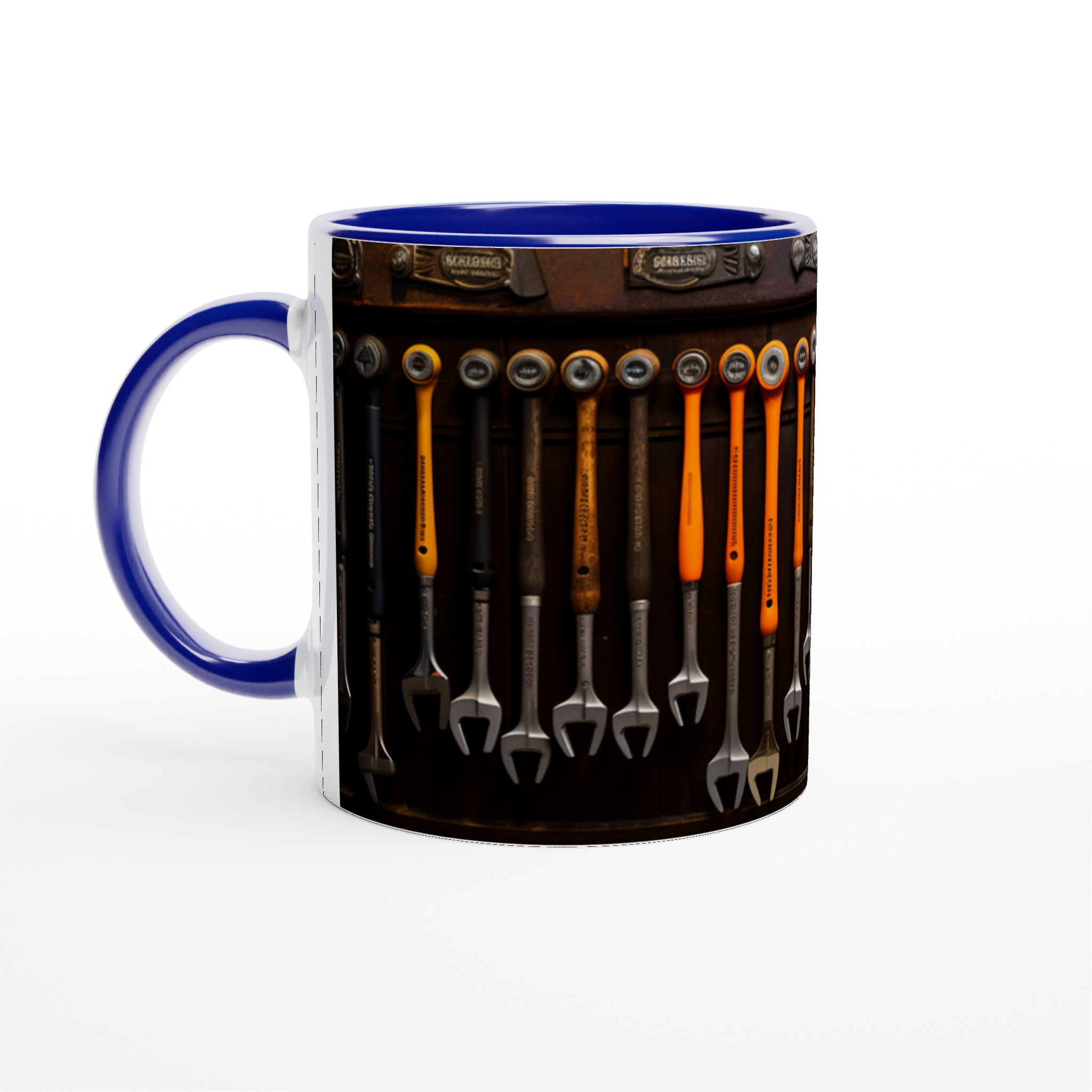 Denna unika keramiska mugg firar hantverket med en levande samling verktyg, perfekt för den som uppskattar både funktion och estetik. Oavsett om du kickstartar dagen med en kopp kaffe, varvar ner med varm choklad på kvällen, eller bara njuter av en lugn te-stund, blir denna mugg snabbt din vardagsfavorit. Den blanka vita ytan ger ett perfekt canvas för det detaljerade verktygsmotivet, med klara och levande färger som behåller sin lyster även efter otaliga turer i mikron och diskmaskinen.