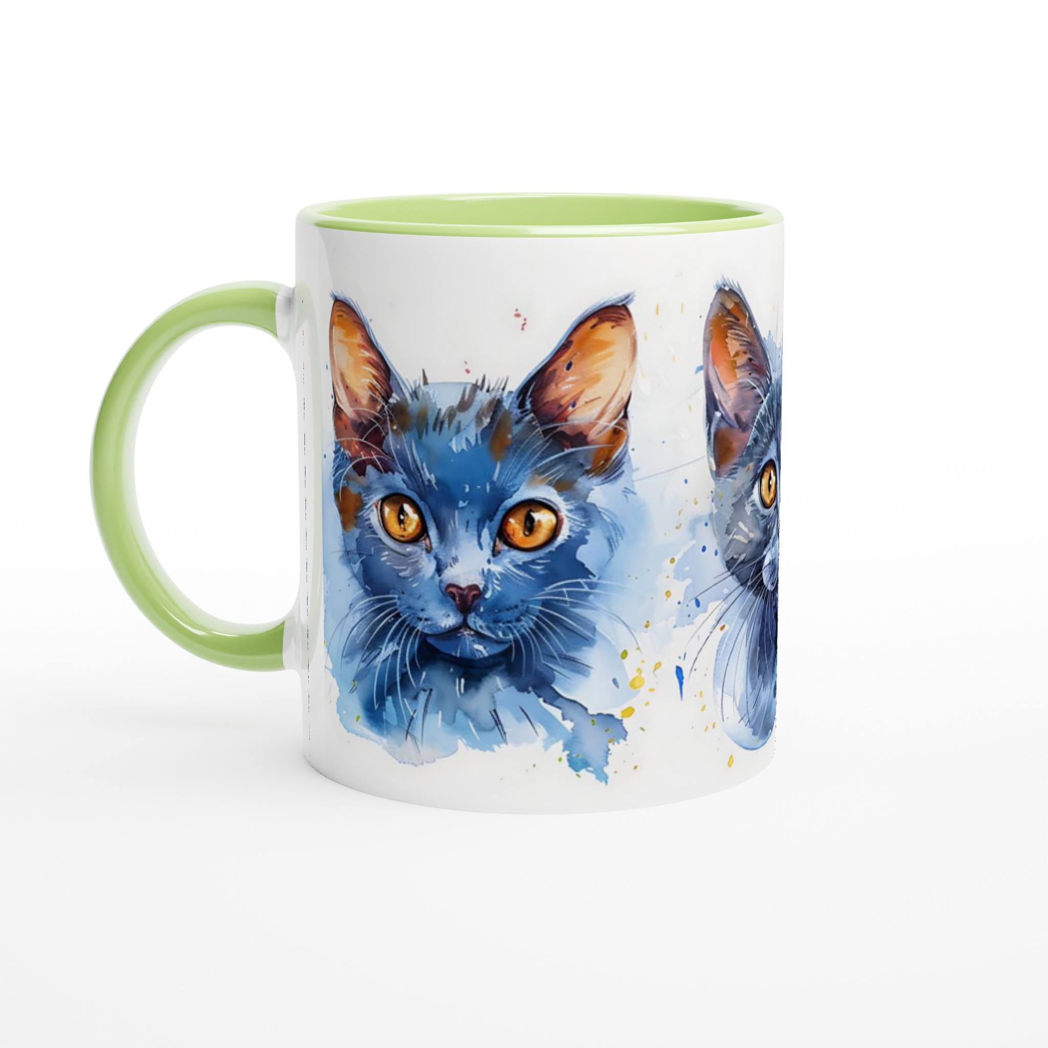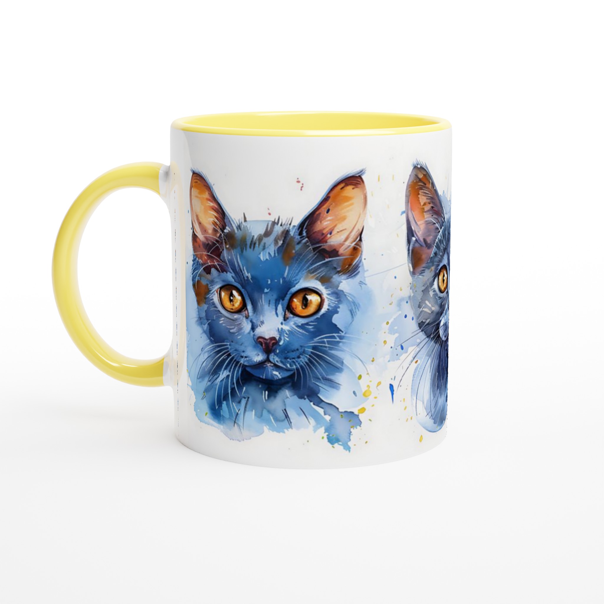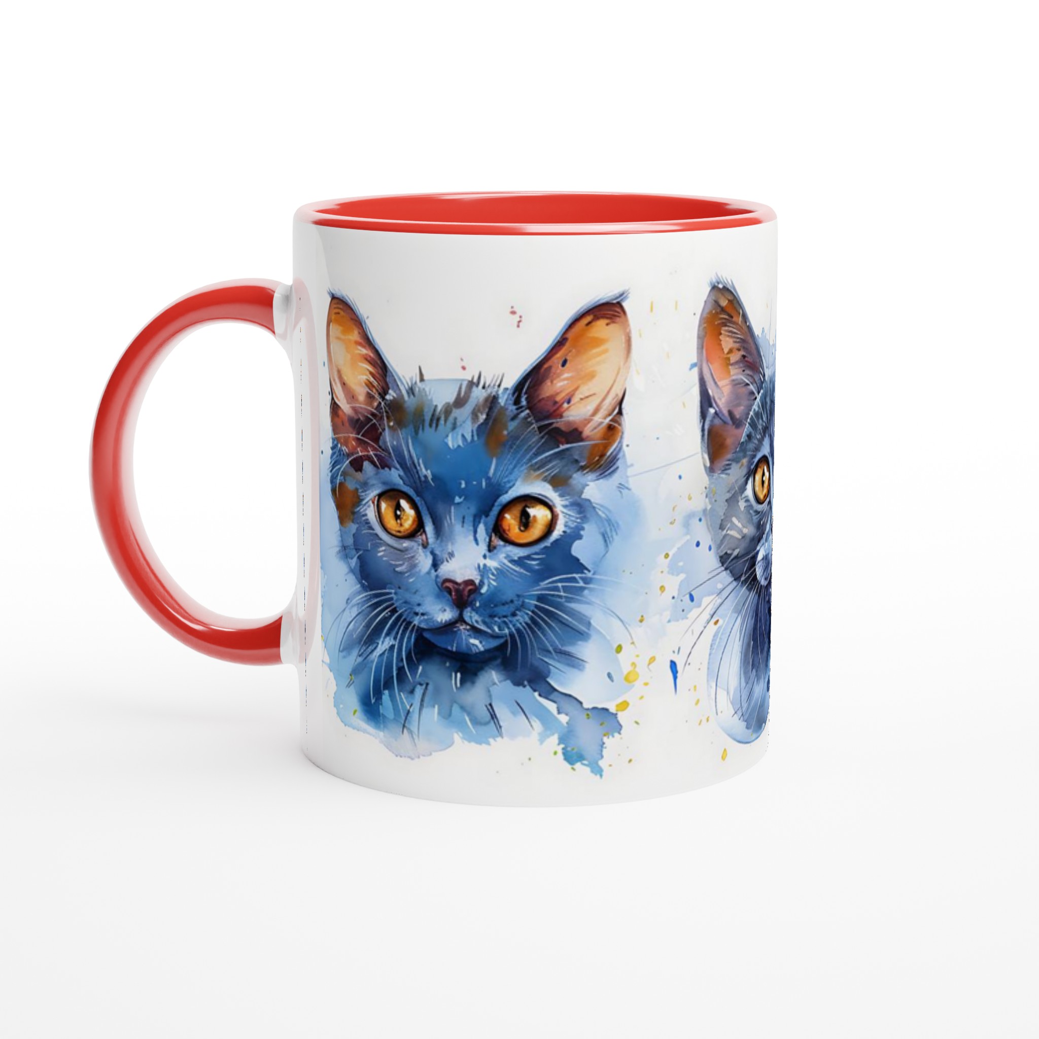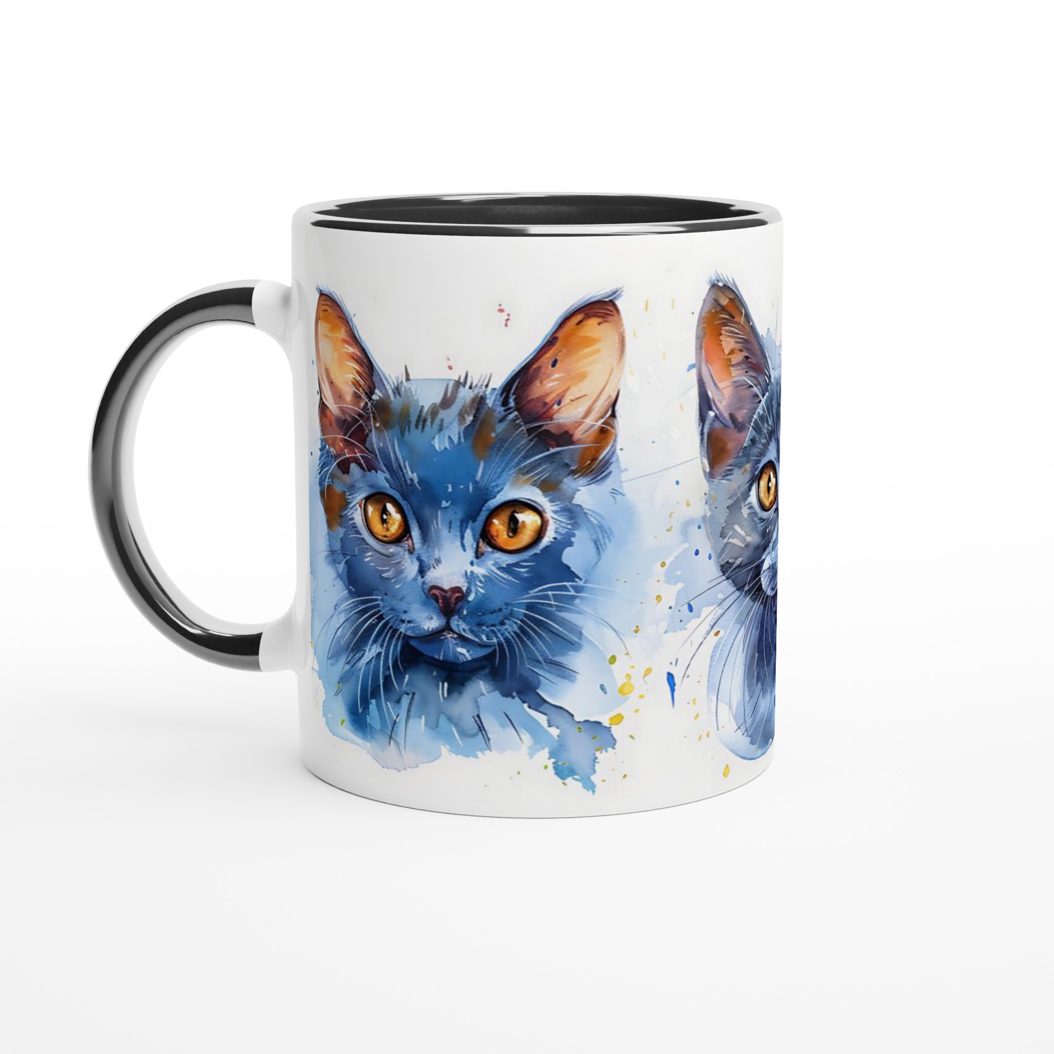 Lyft din fikapaus med denna charmiga keramiska mugg, prydd med livfulla akvarellporträtt av bedårande katter. Varje mugg fångar den unika personligheten hos dessa älskade djur, med en explosion av färgstänk som ger en konstnärlig touch. Perfekt för morgonkaffet, kvällens varma choklad eller när du bara vill njuta av en kopp te. Den blanka vita ytan gör att trycken framhävs med klara och levande färger, som håller sig fina även efter många turer i mikron och diskmaskinen.