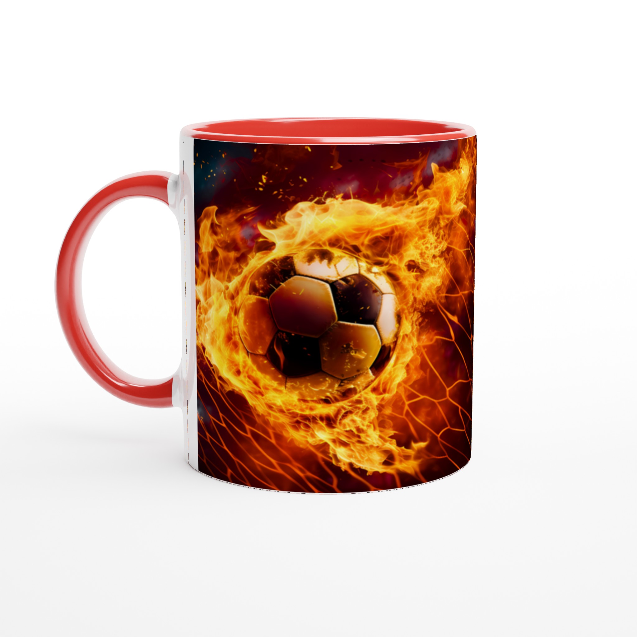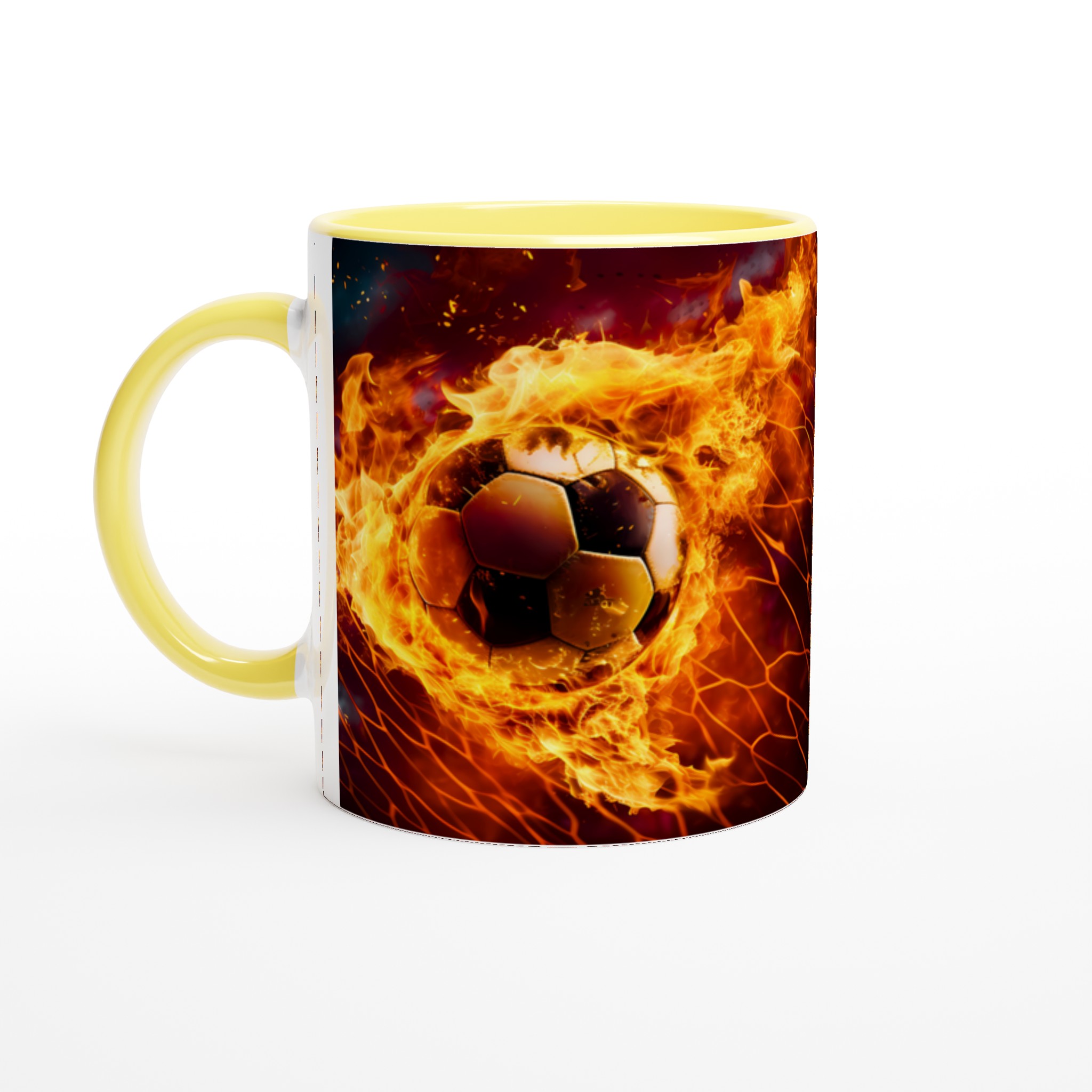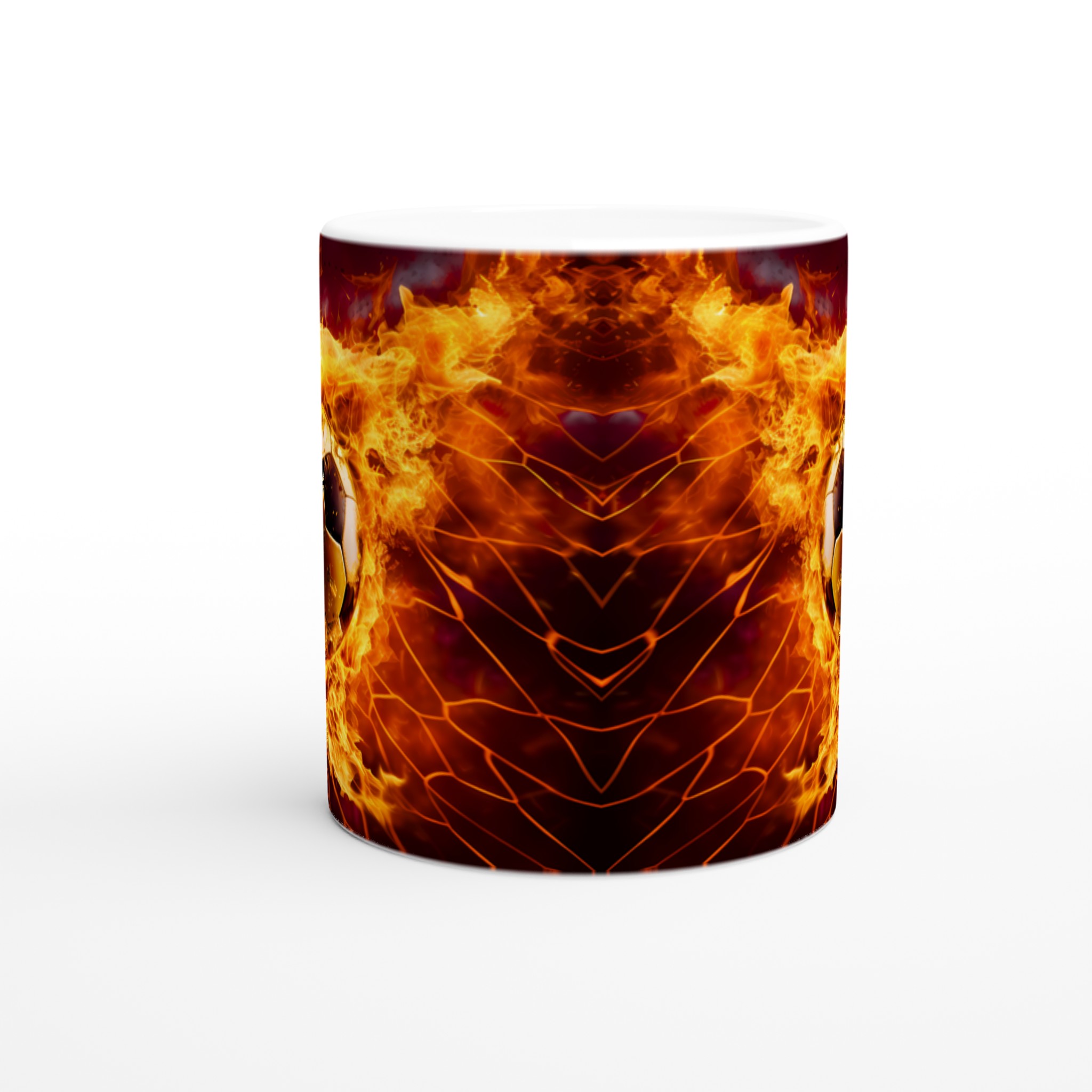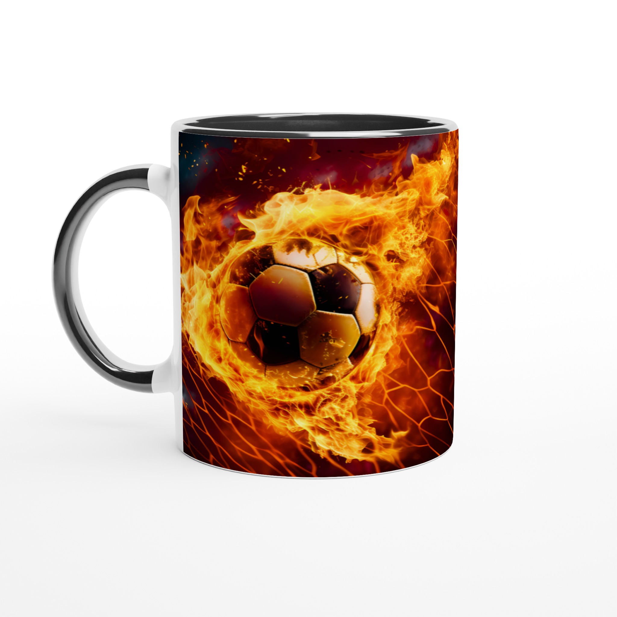 Tänd passionen för sport med vår keramiska mugg med fotboll i eld och lågor! Den här stilrena muggen blir snabbt en vardagsfavorit, perfekt för morgonkaffet, kvällens varma choklad eller när du bara vill njuta av en kopp te. Med sitt dynamiska motiv av en fotboll omsluten av flammande eld, fångar den spänningen och energin från spelet. Den blanka ytan framhäver trycket med klara och levande färger, som håller sig fina även efter många turer i mikron och diskmaskinen.