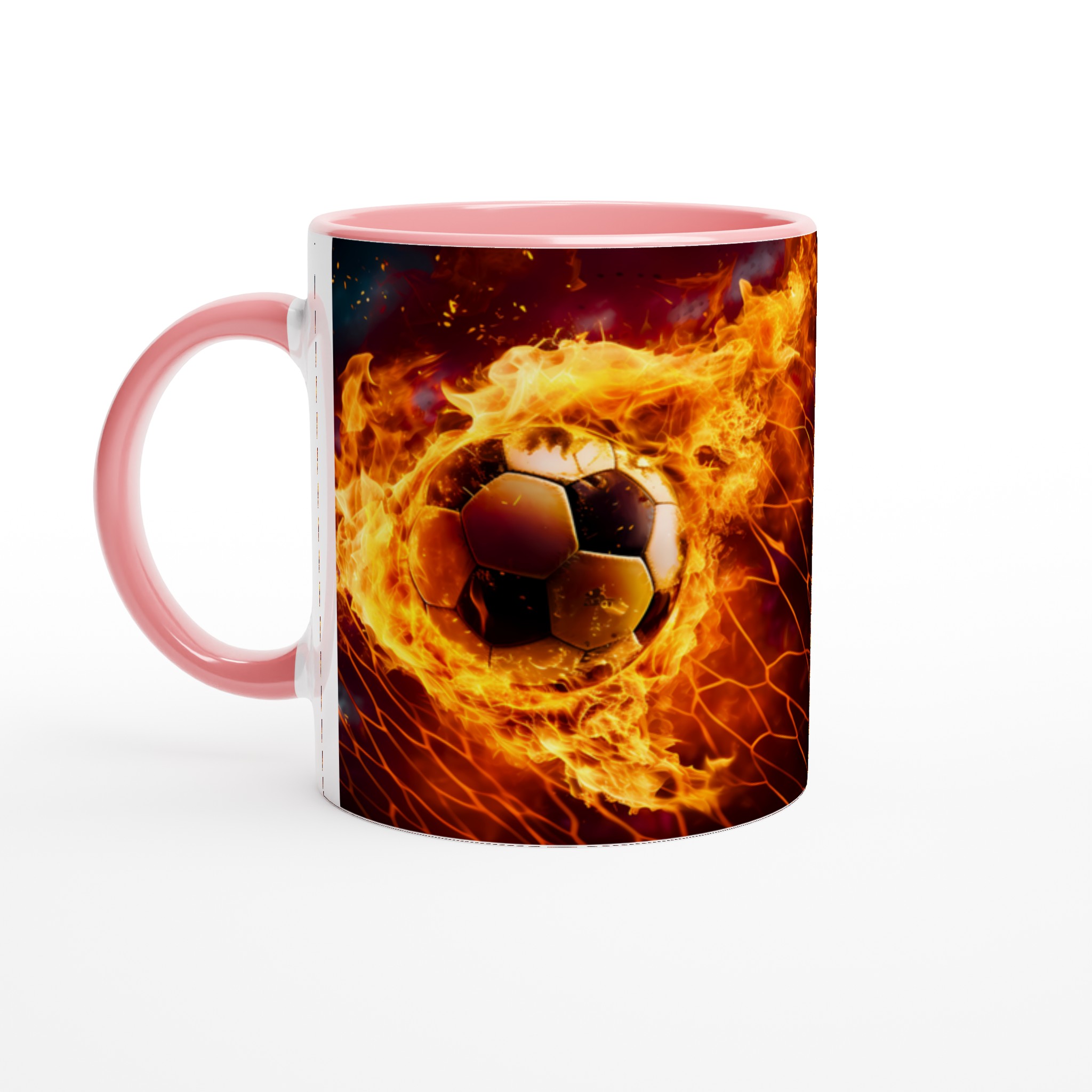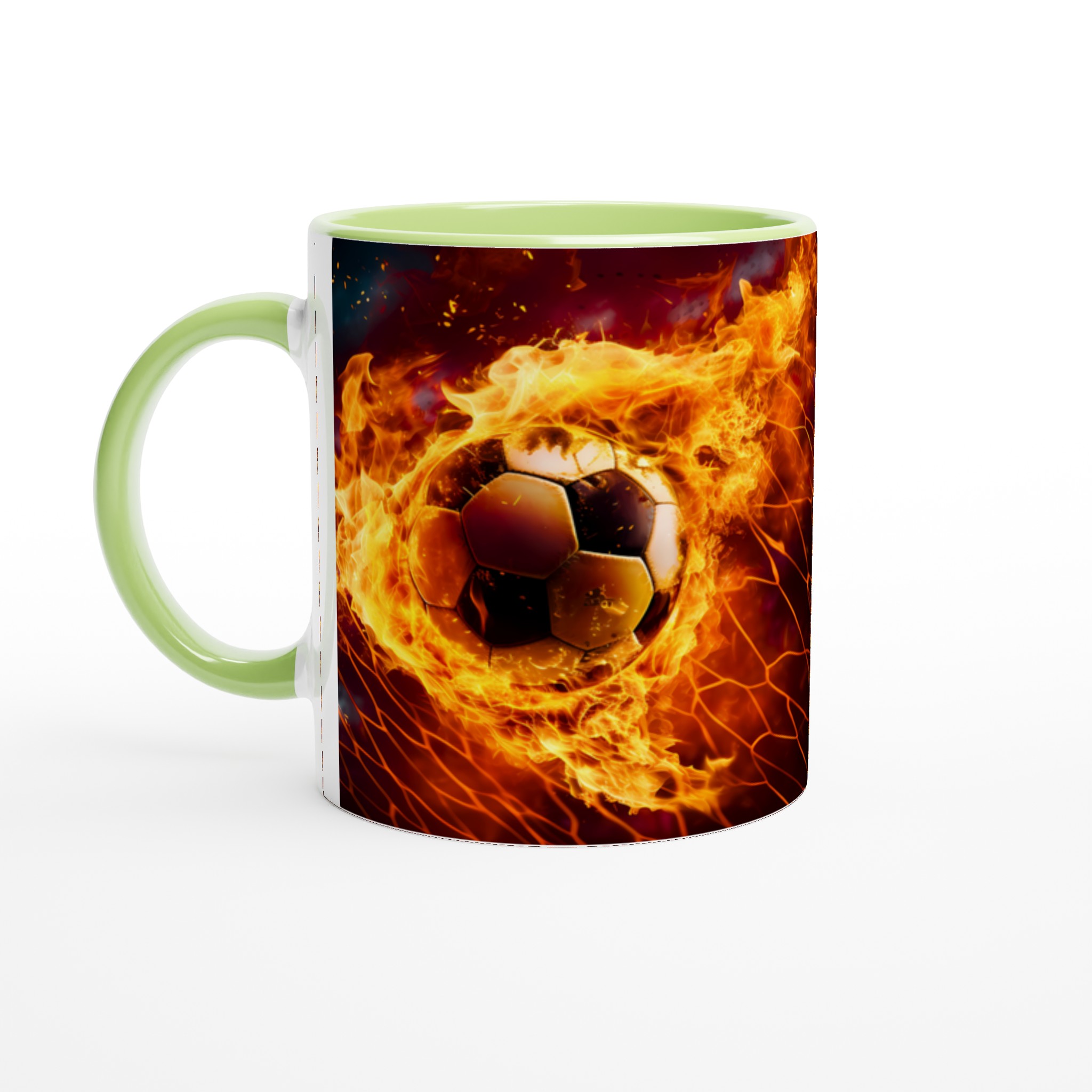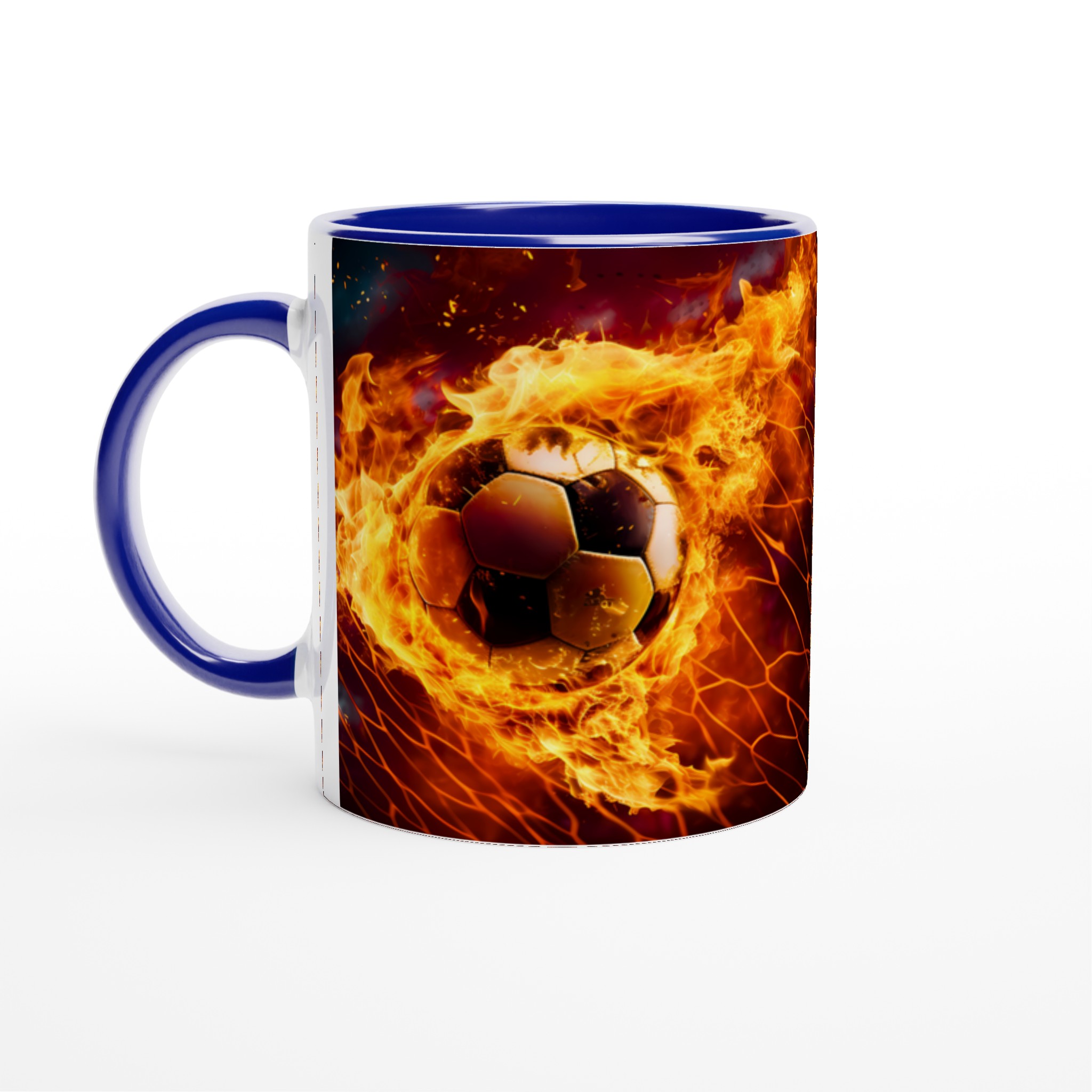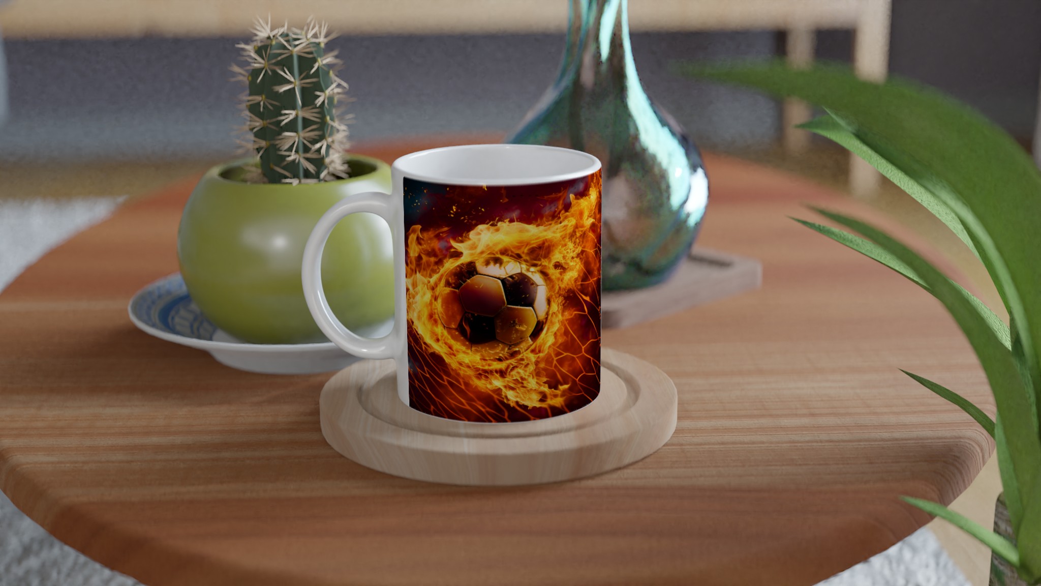 Tänd passionen för sport med vår keramiska mugg med fotboll i eld och lågor! Den här stilrena muggen blir snabbt en vardagsfavorit, perfekt för morgonkaffet, kvällens varma choklad eller när du bara vill njuta av en kopp te. Med sitt dynamiska motiv av en fotboll omsluten av flammande eld, fångar den spänningen och energin från spelet. Den blanka ytan framhäver trycket med klara och levande färger, som håller sig fina även efter många turer i mikron och diskmaskinen.