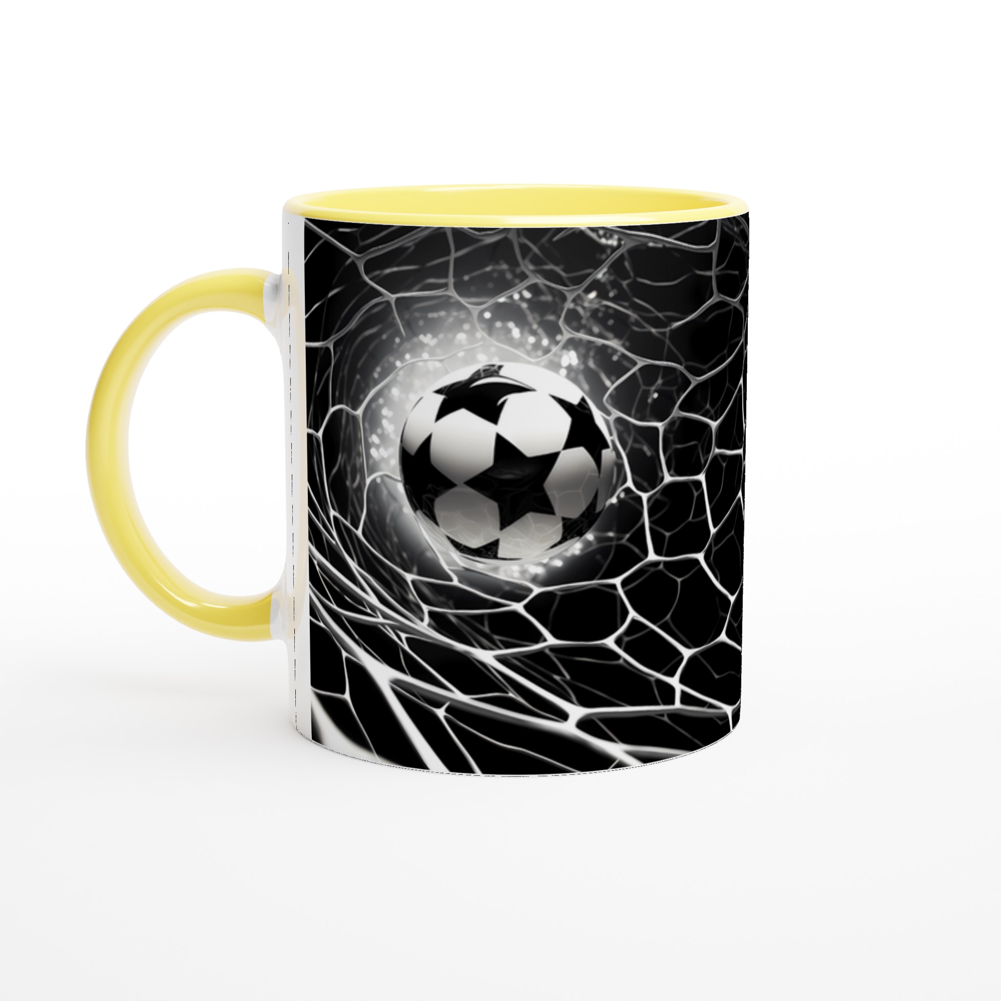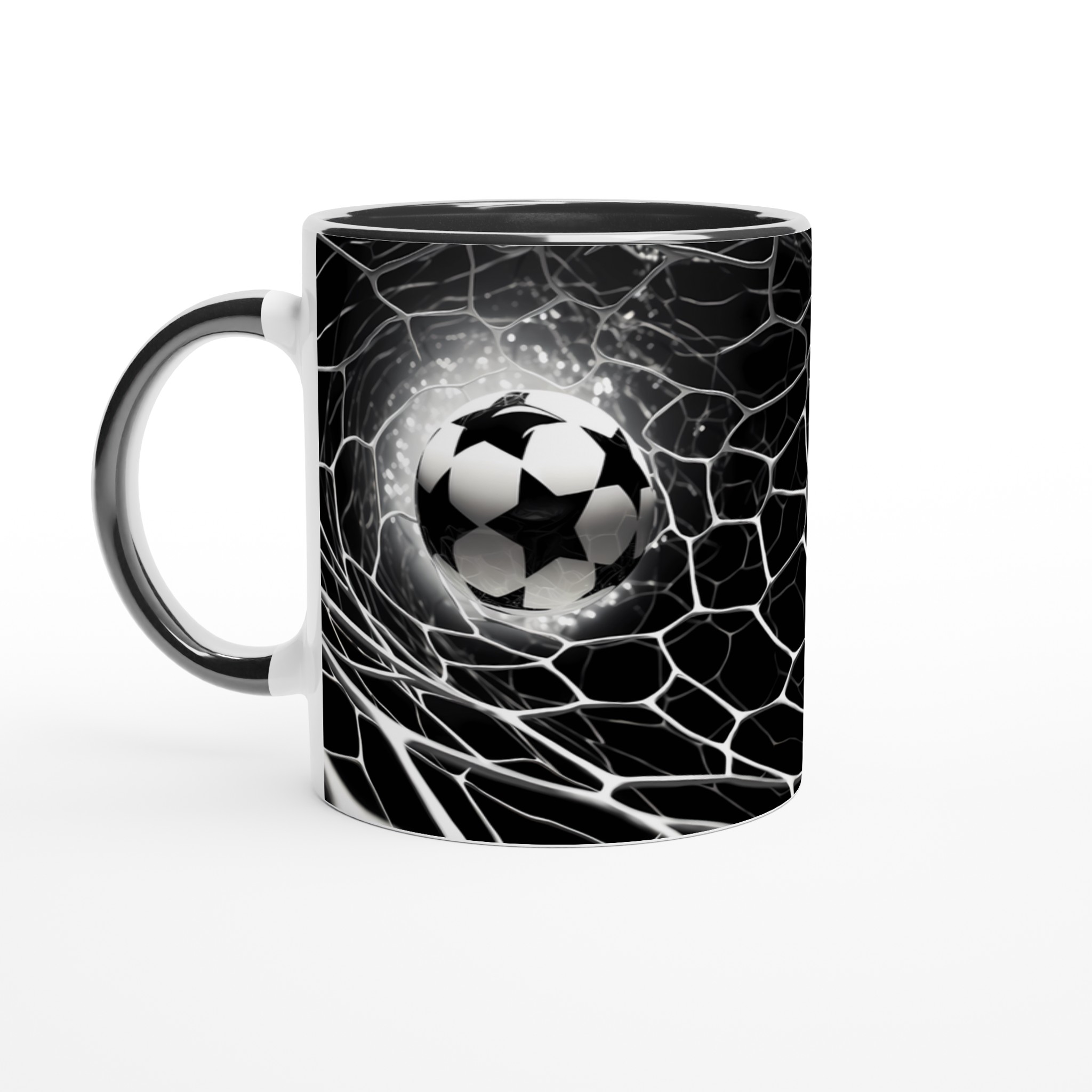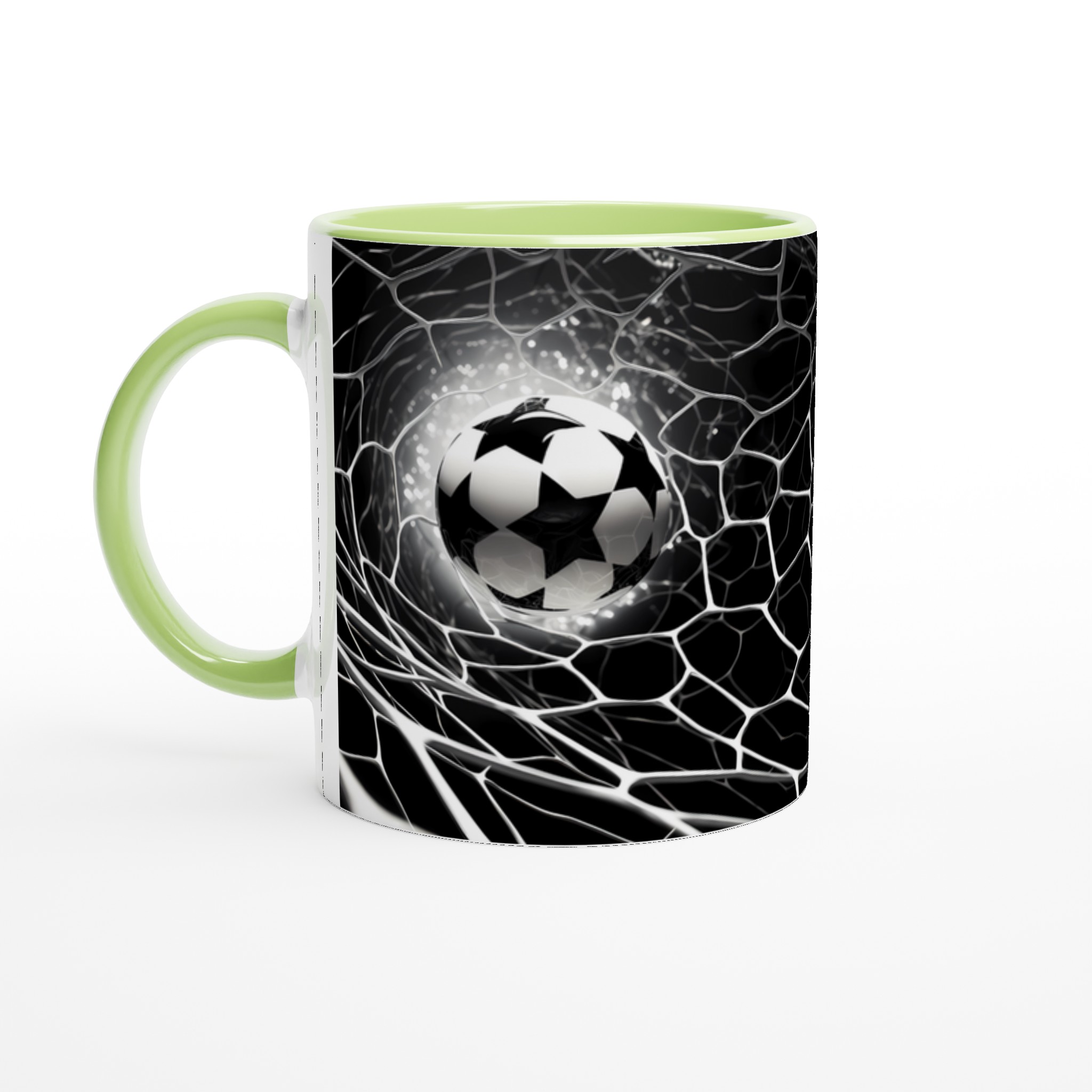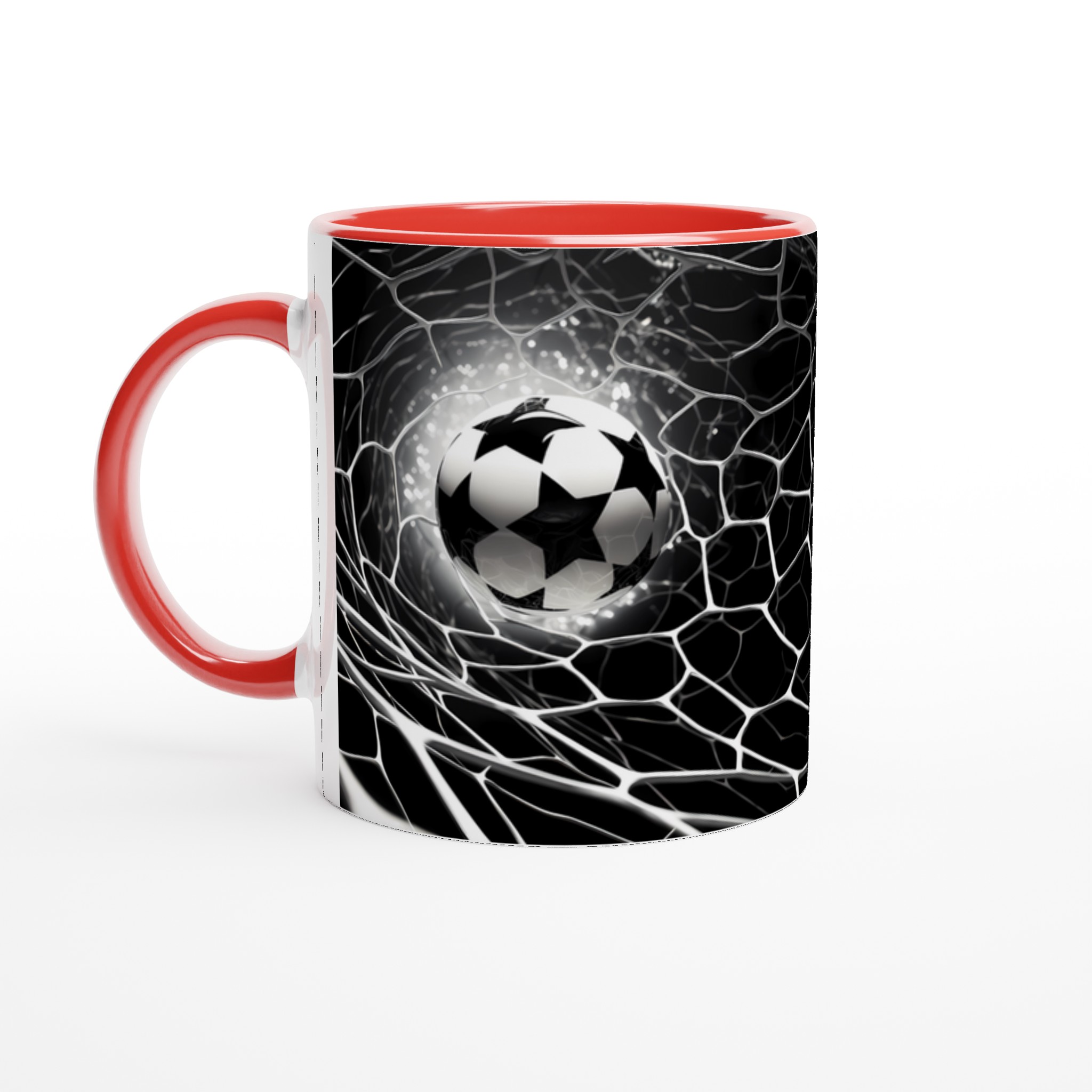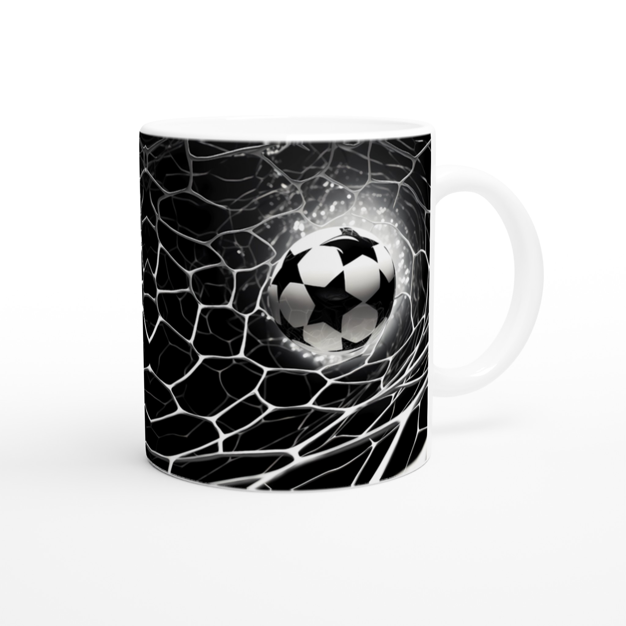 Fånga den elektriska känslan av en perfekt placerad boll i nätet varje gång du njuter av din favoritdryck med denna stilrena keramiska mugg. Dess design, inspirerad av fotbollens spänning och dynamik, gör den snabbt till en vardagsfavorit. Perfekt för morgonkaffet, kvällens varma choklad eller när du bara vill njuta av en kopp te. Den blanka vita ytan framhäver den skarpa, sportiga designen med klara och levande färger, som håller sig fina även efter många turer i mikron och diskmaskinen.