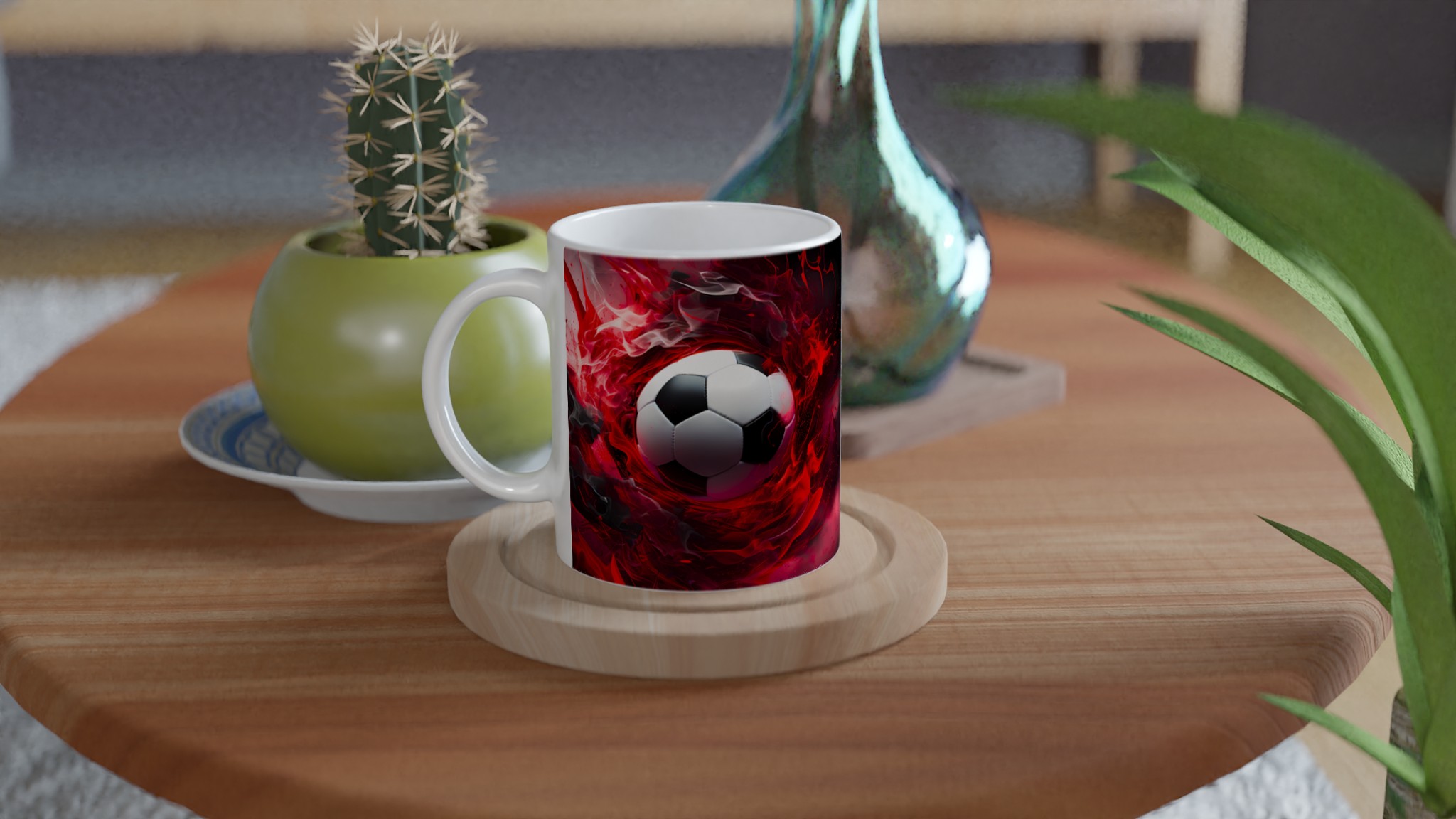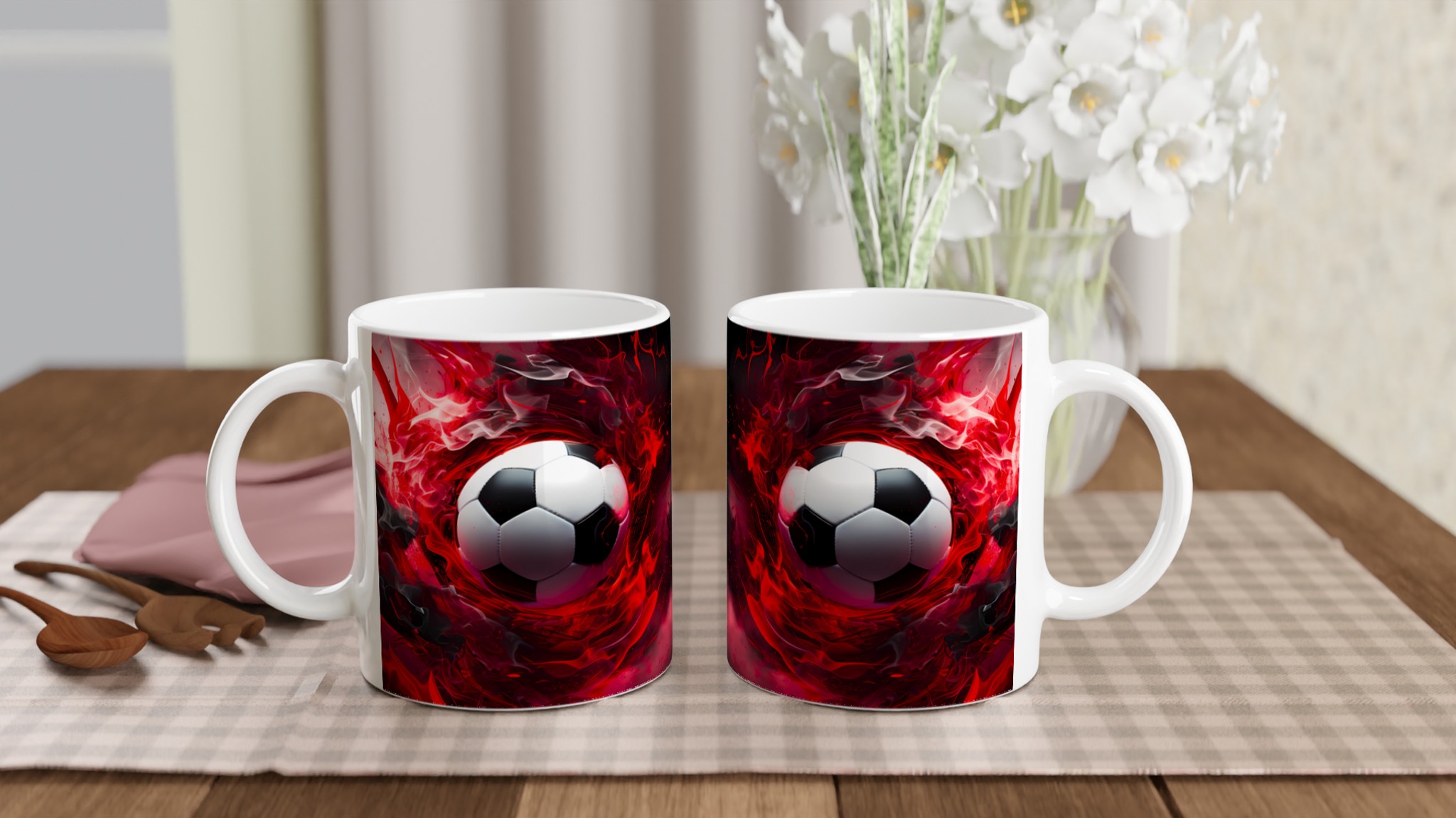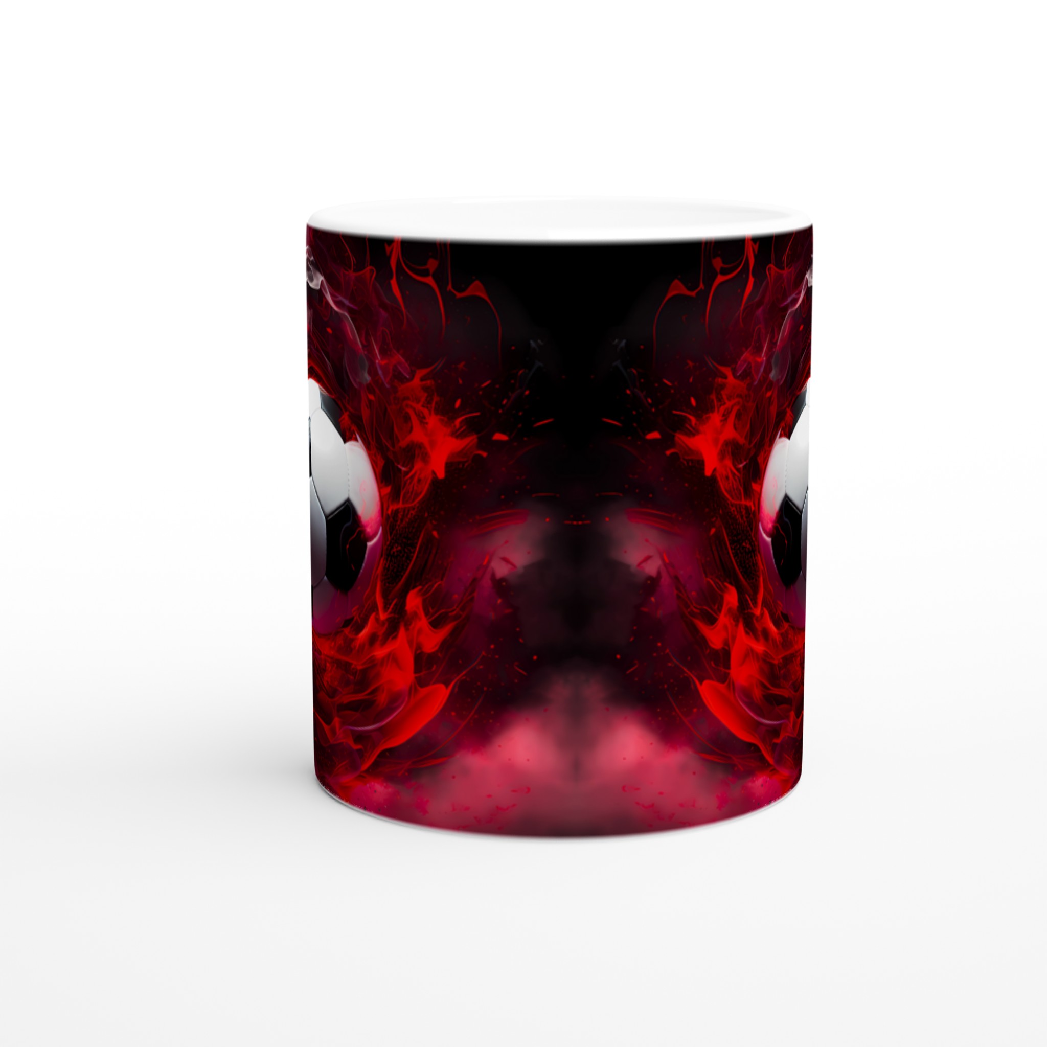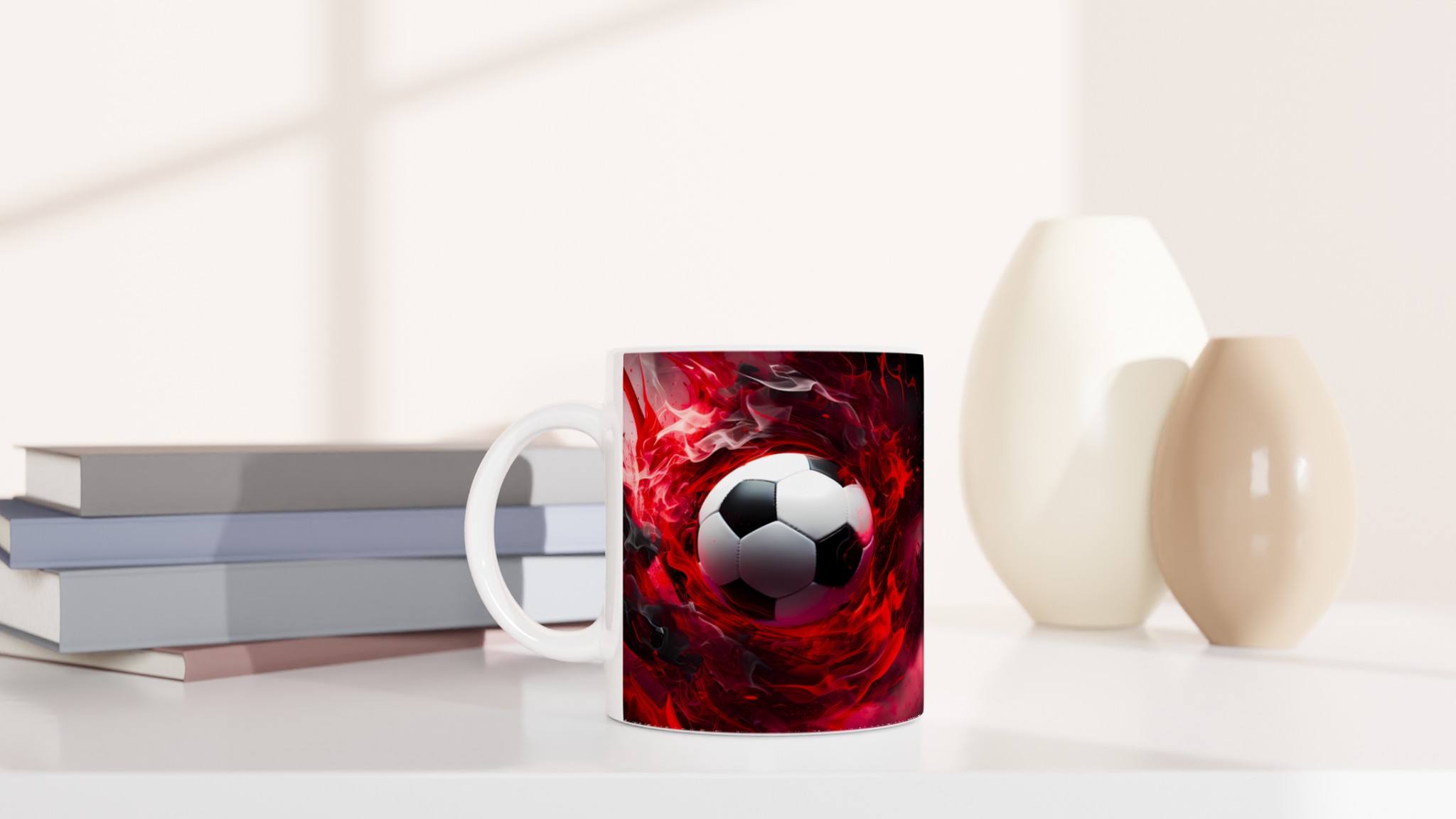 Fånga sportens intensitet med vår dynamiska keramiska mugg, som väcker liv i varje fikastund! Denna mugg är inte bara en behållare för din favoritdryck, utan en hyllning till fotbollens passion med sin starka, eldiga design. Den blanka vita ytan låter trycket med den explosiva röda och svarta bakgrunden framhävas med otrolig klarhet, vilket garanterar att varje detalj av fotbollsbilden syns med levande färger. Oavsett om du laddar upp inför match, firar en seger eller bara drömmer dig bort till planen, blir denna mugg snabbt en favorit.
