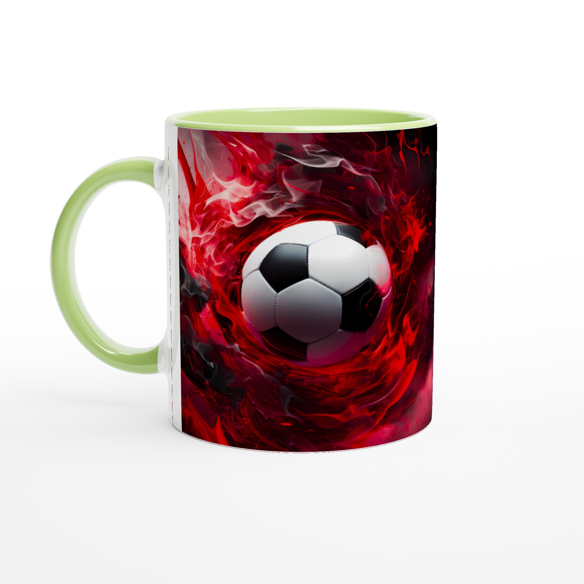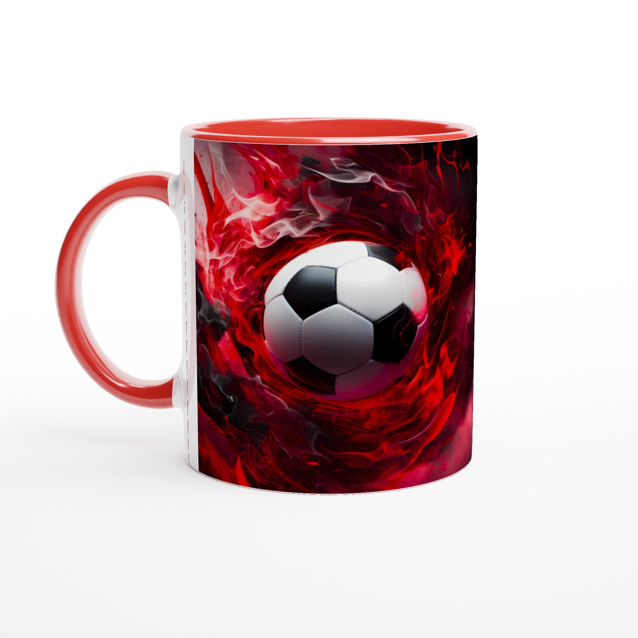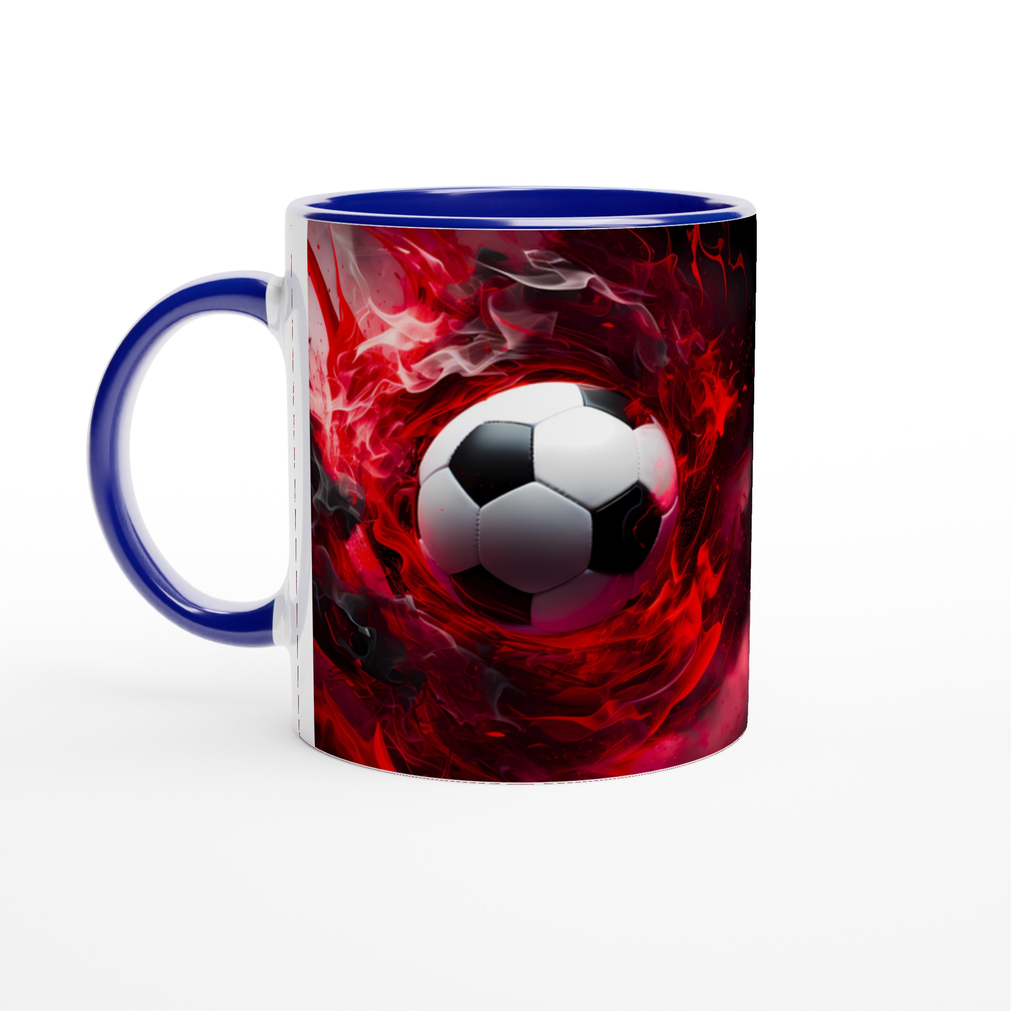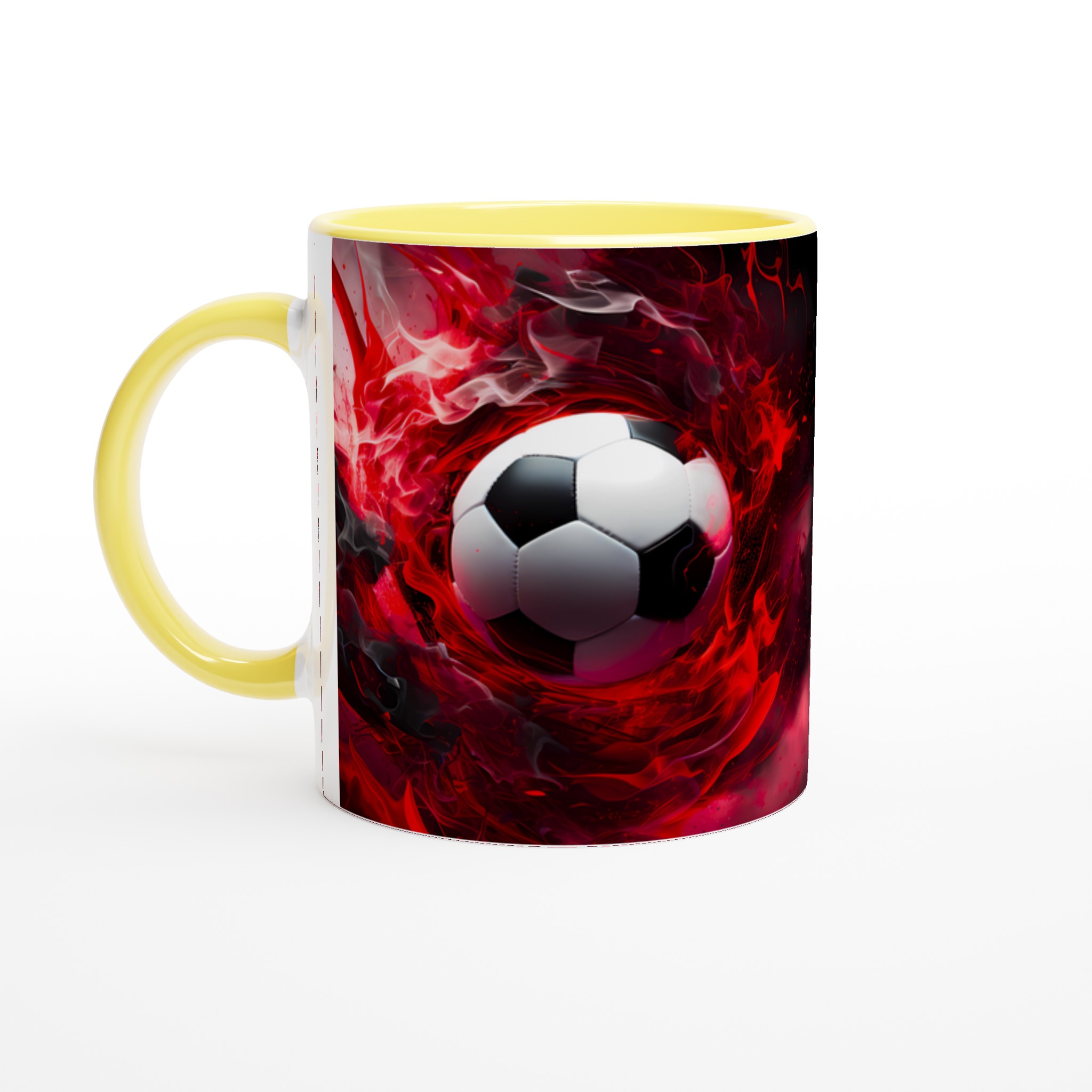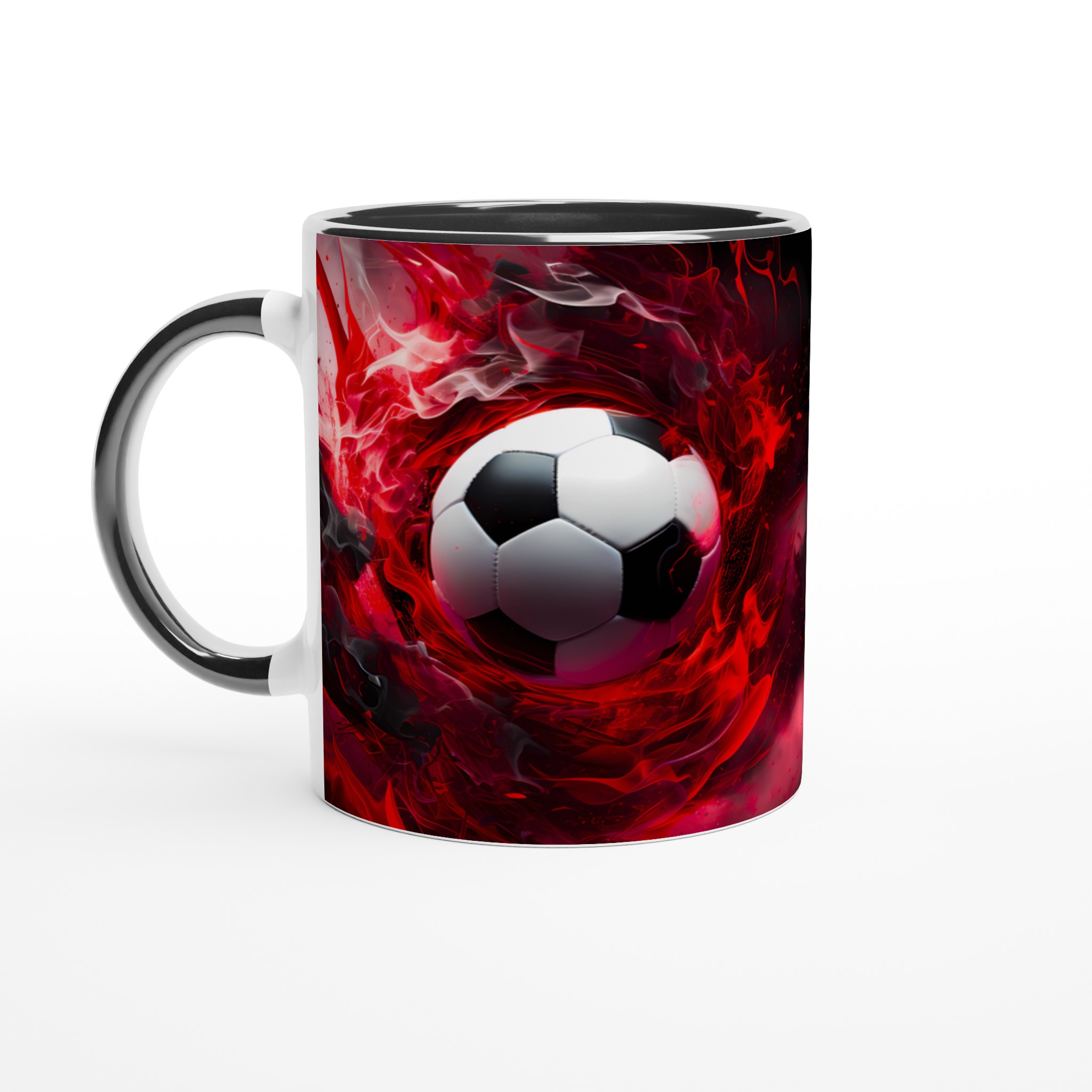 Fånga sportens intensitet med vår dynamiska keramiska mugg, som väcker liv i varje fikastund! Denna mugg är inte bara en behållare för din favoritdryck, utan en hyllning till fotbollens passion med sin starka, eldiga design. Den blanka vita ytan låter trycket med den explosiva röda och svarta bakgrunden framhävas med otrolig klarhet, vilket garanterar att varje detalj av fotbollsbilden syns med levande färger. Oavsett om du laddar upp inför match, firar en seger eller bara drömmer dig bort till planen, blir denna mugg snabbt en favorit.
