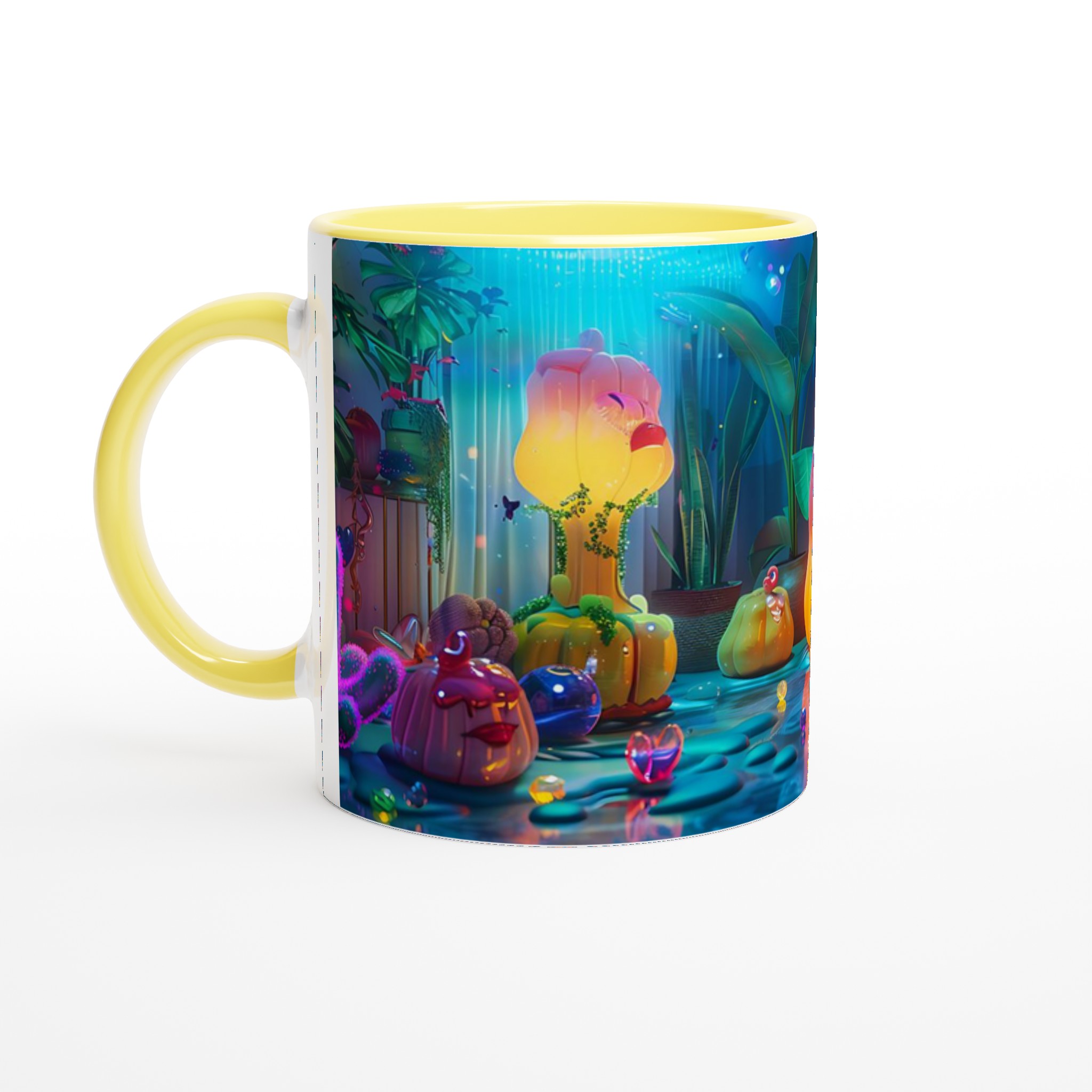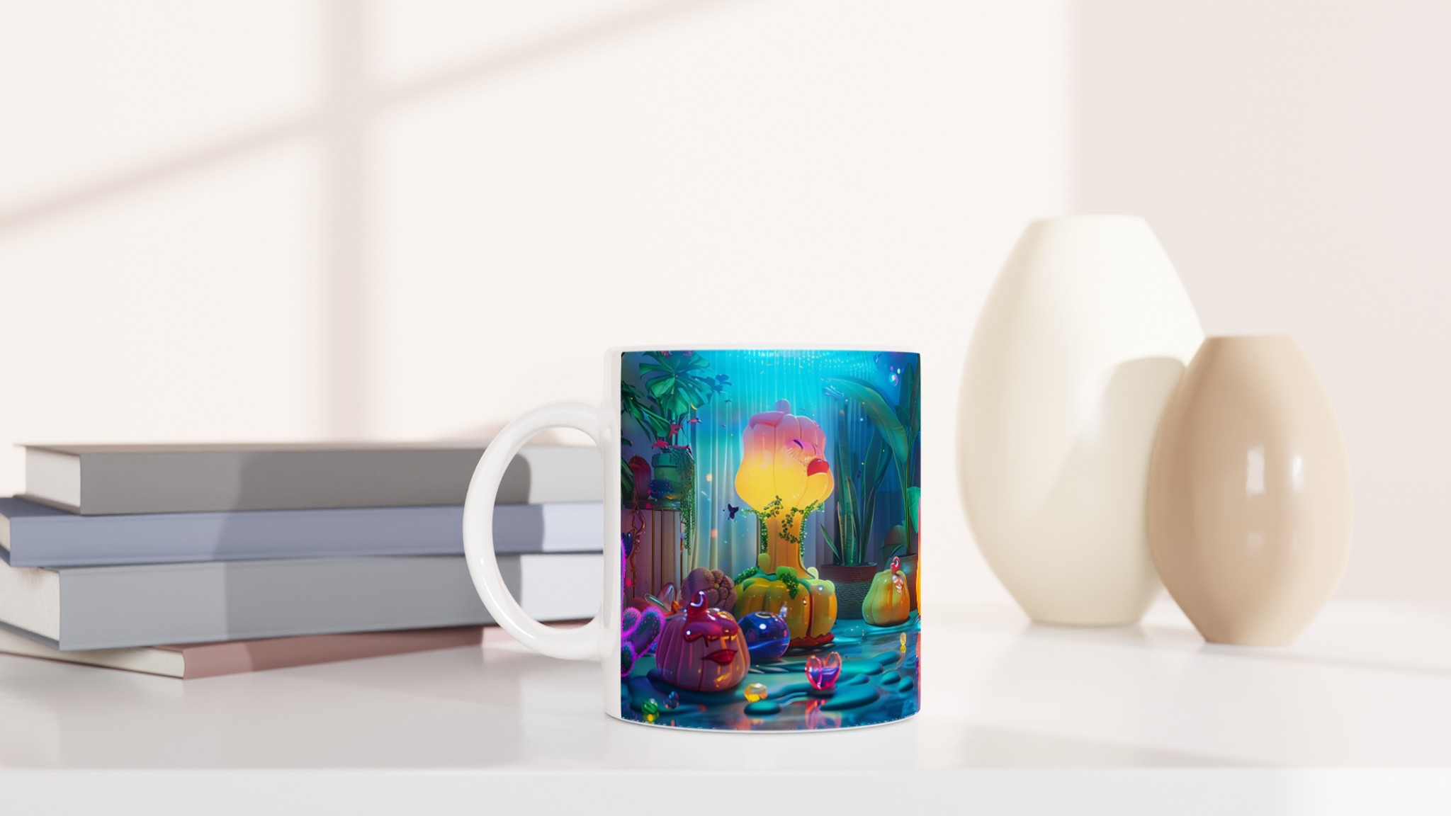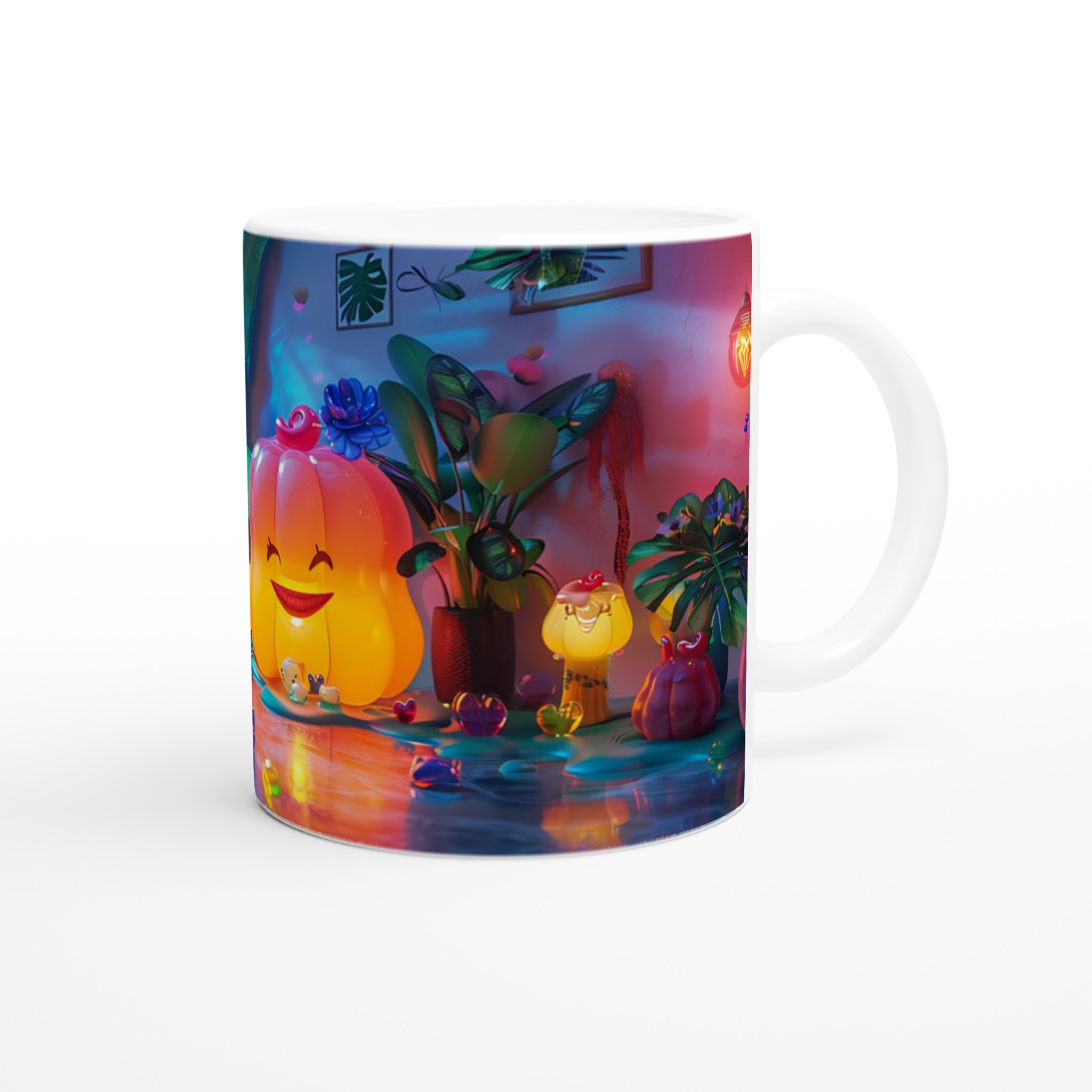 Lys upp din dag med vår glada Keramisk Mugg, inspirerad av de drömska och lekfulla pumporna från bilden. Denna mugg blir snabbt en vardagsfavorit och en källa till glädje, perfekt för morgonkaffet, kvällens varma choklad, eller när du bara vill njuta av en kopp te i gott sällskap. Den blanka vita ytan framhäver trycken med klara och levande färger, som håller sig fina även efter många turer i mikron och diskmaskinen.