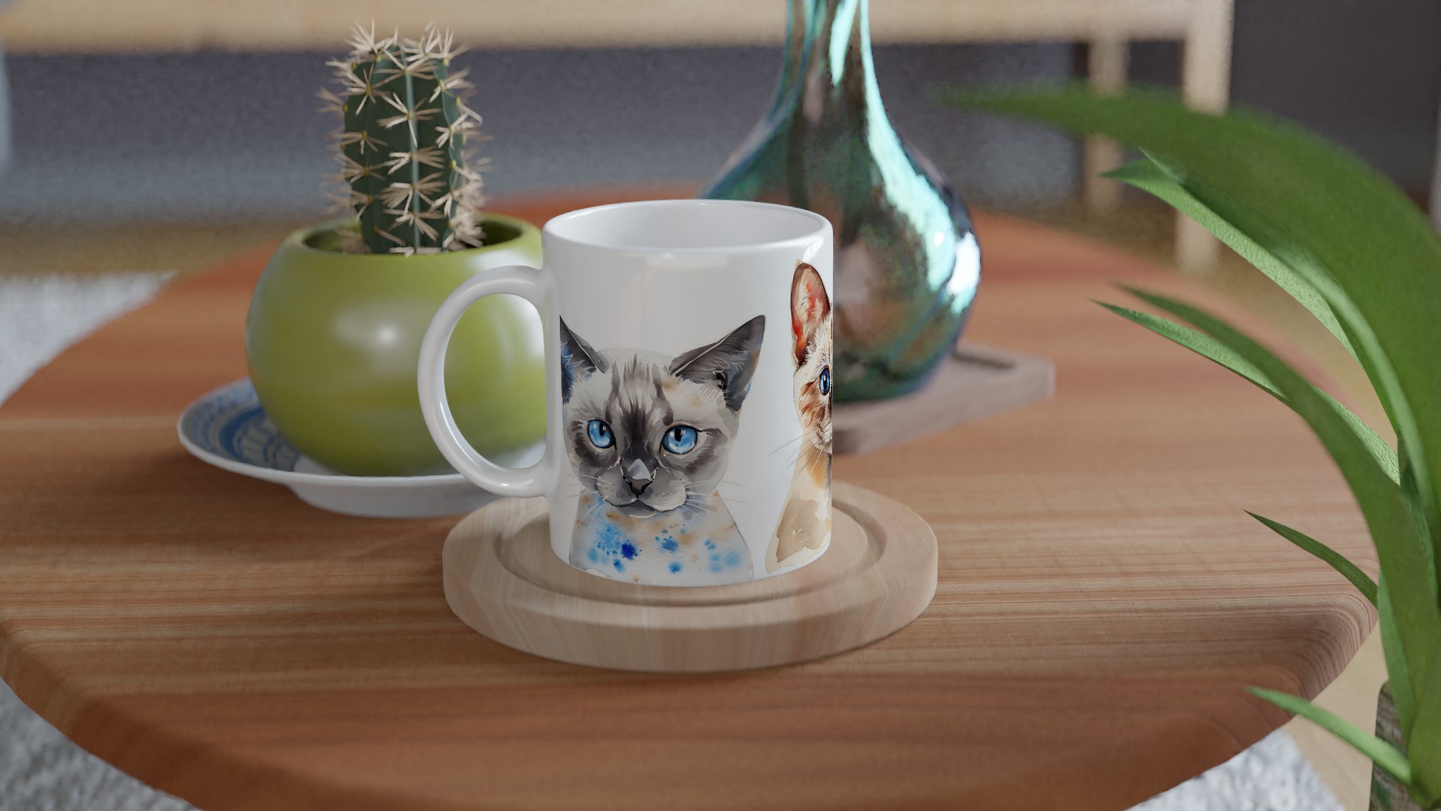 Väck liv i din kaffepaus med vår förtrollande Keramiska Mugg, prydd med detaljerade akvarellillustrationer av katter. Varje mugg fångar den unika charmen hos våra fyrfota vänner med mjuka färgövergångar och uttrycksfulla ögon, som ger en konstnärlig touch till din dryckesstund. Välj din favoritfärg för muggen för att matcha din personliga stil och låt dessa söta kattansikten lysa upp din dag.
