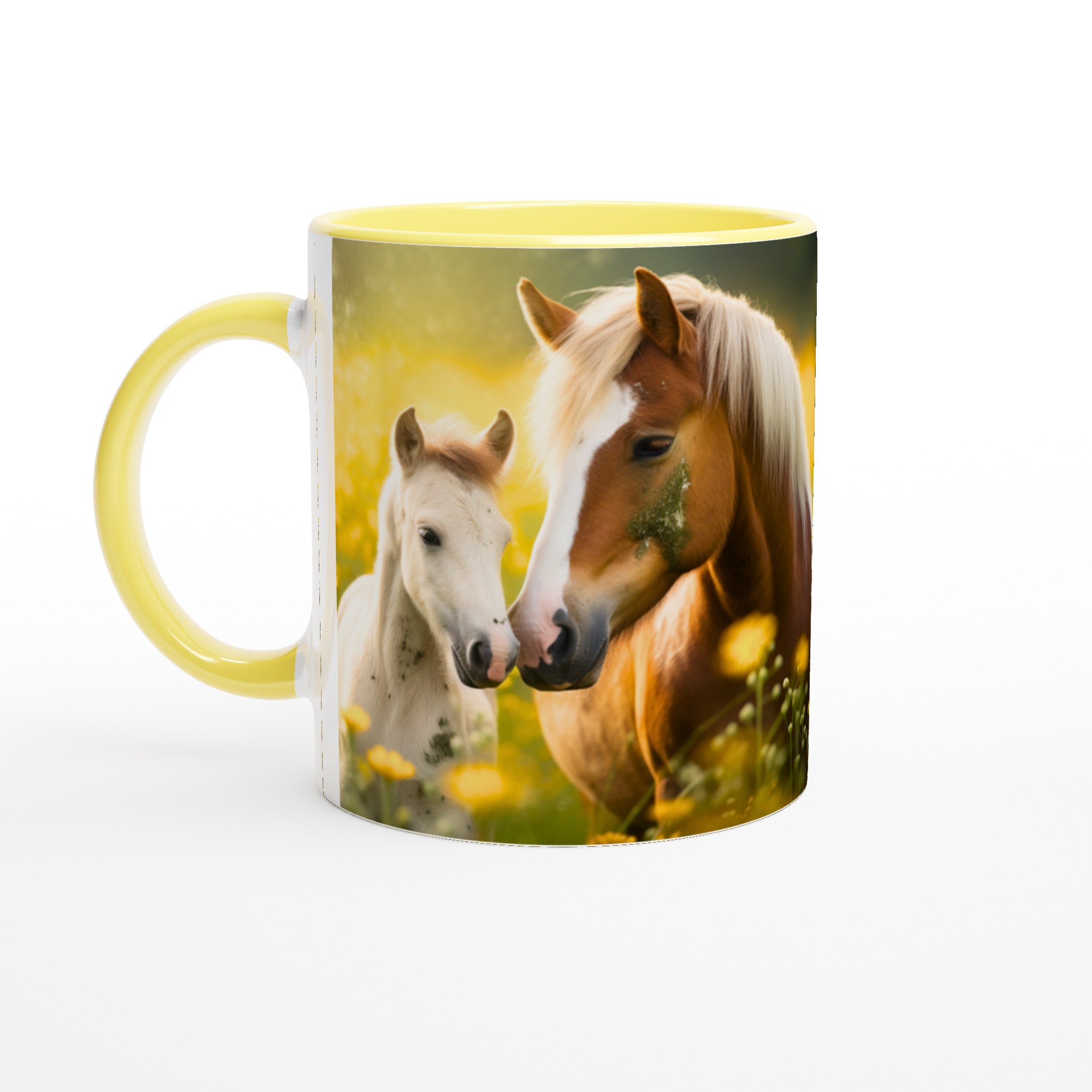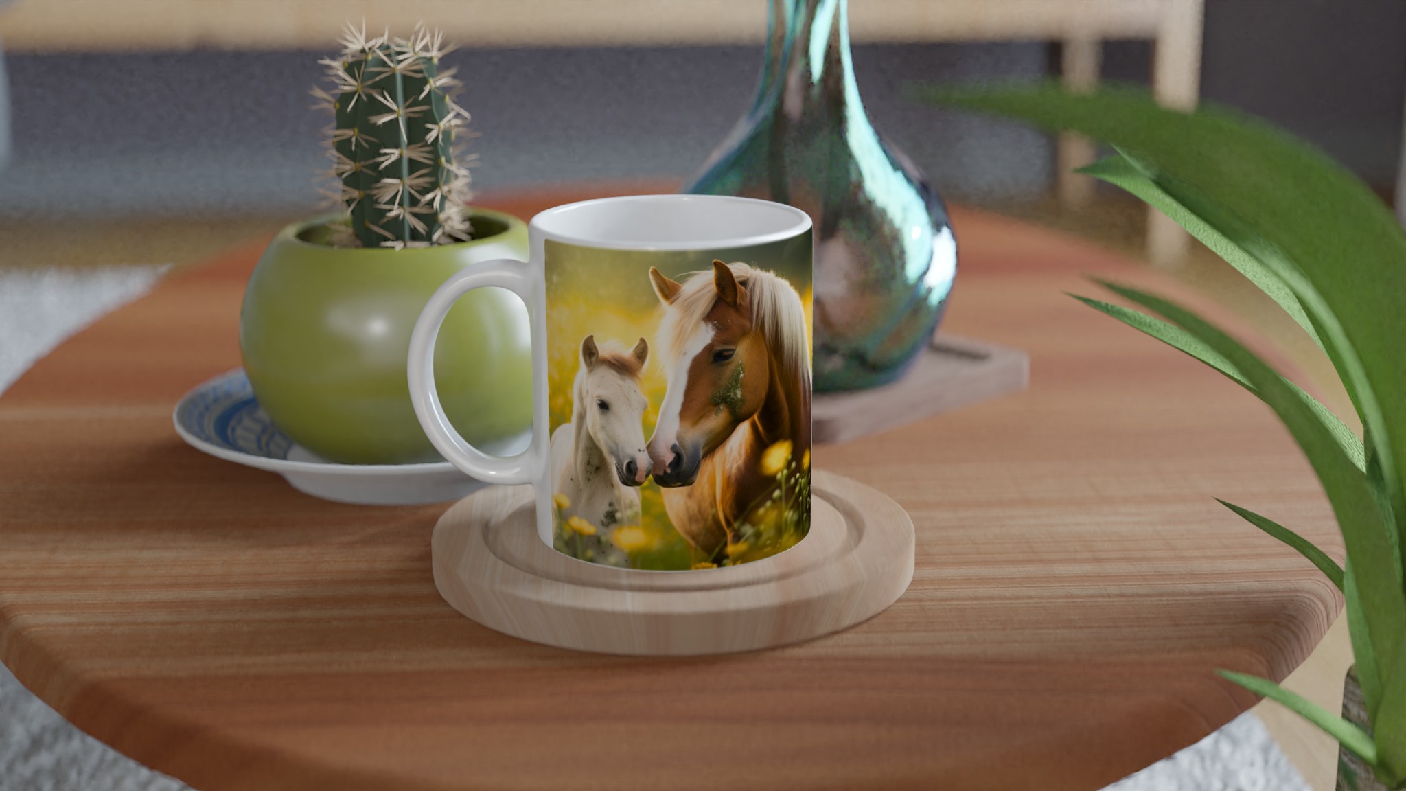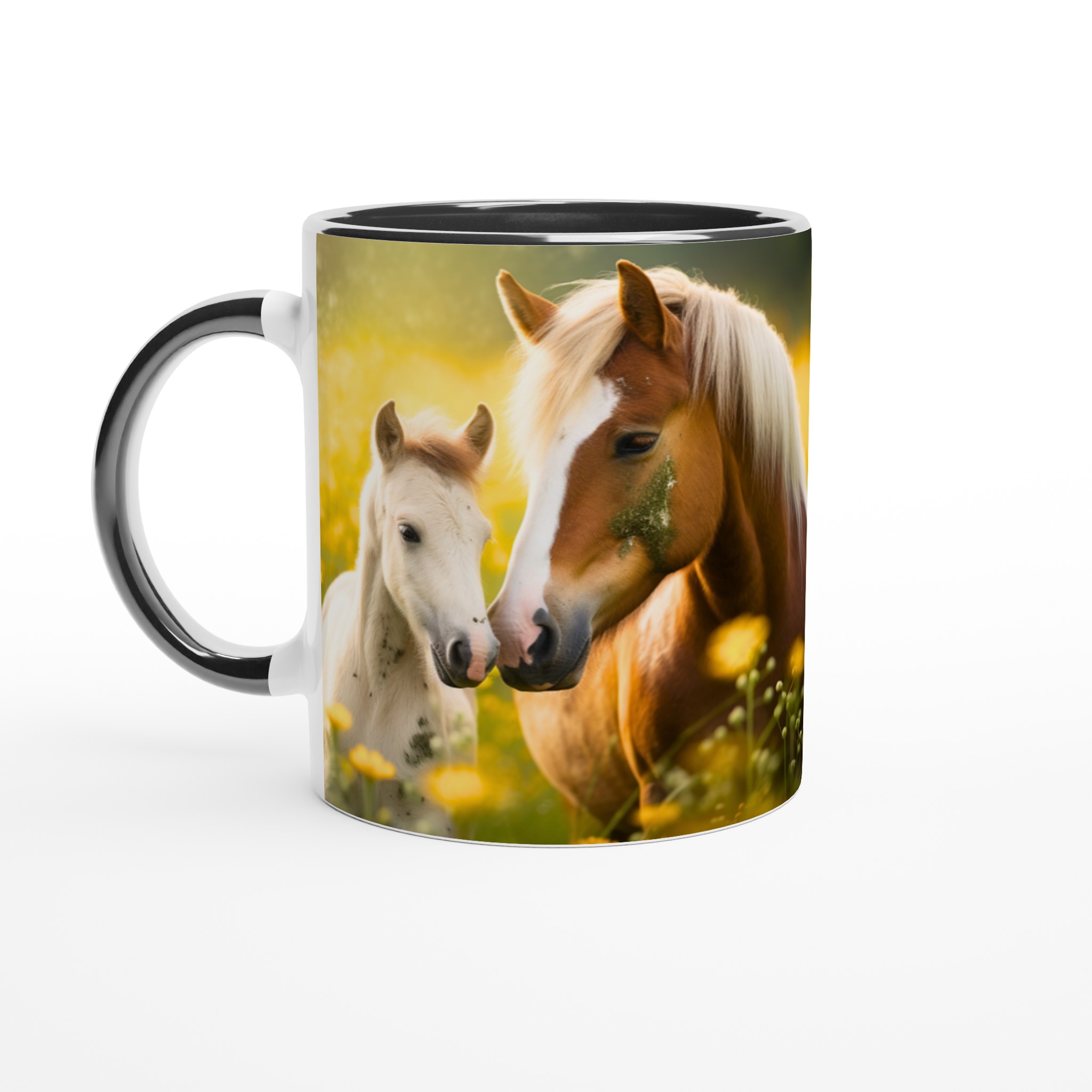 Föreställ dig att du sippar på din favoritdryck, omfamnad av lugnet från en gyllene äng där vackra hästar betar i solnedgången. Den här stilrena keramiska muggen, prydd med ett motiv som fångar ögonblickets magi, blir snabbt en vardagsfavorit. Perfekt för morgonkaffet, kvällens varma choklad eller när du bara vill njuta av en kopp te.