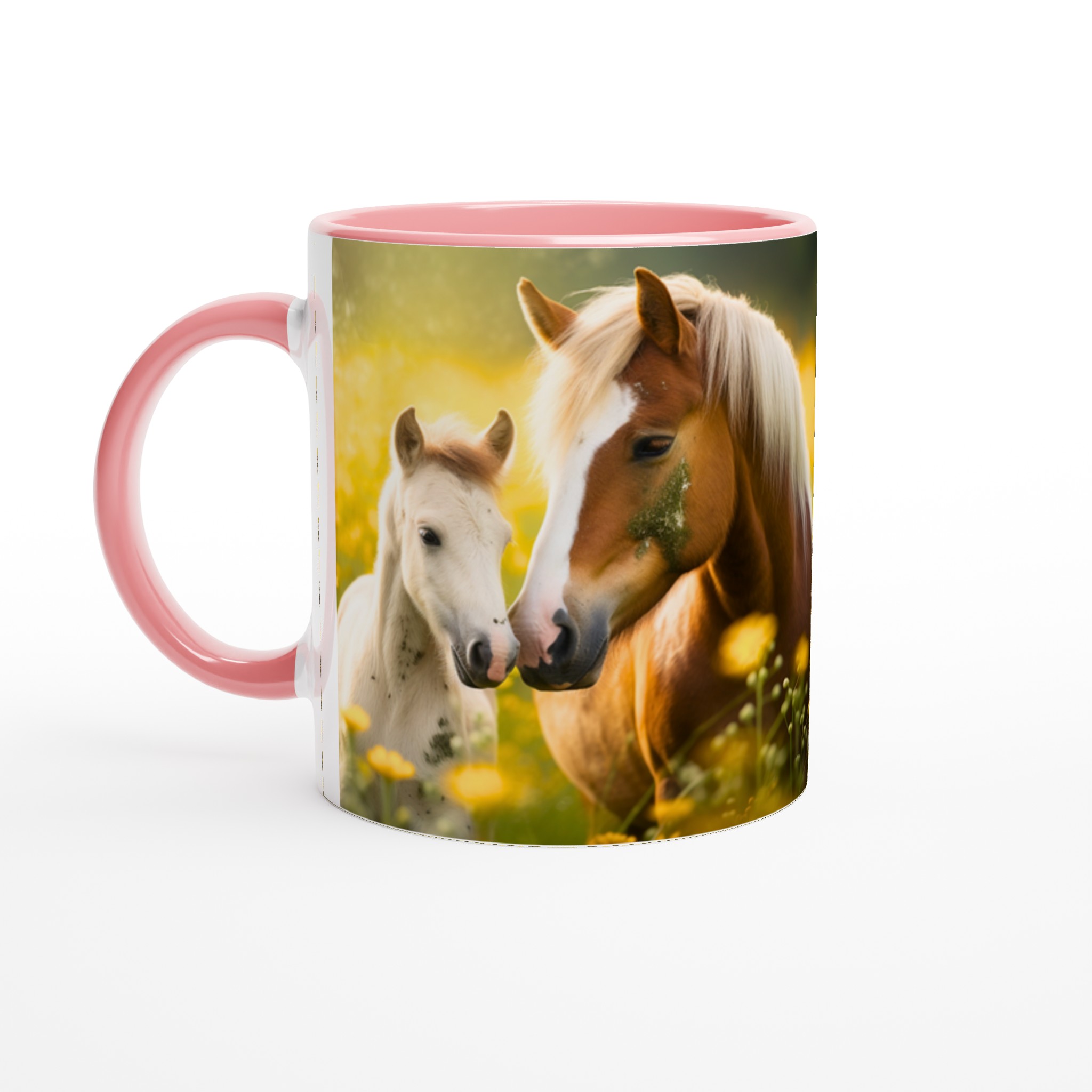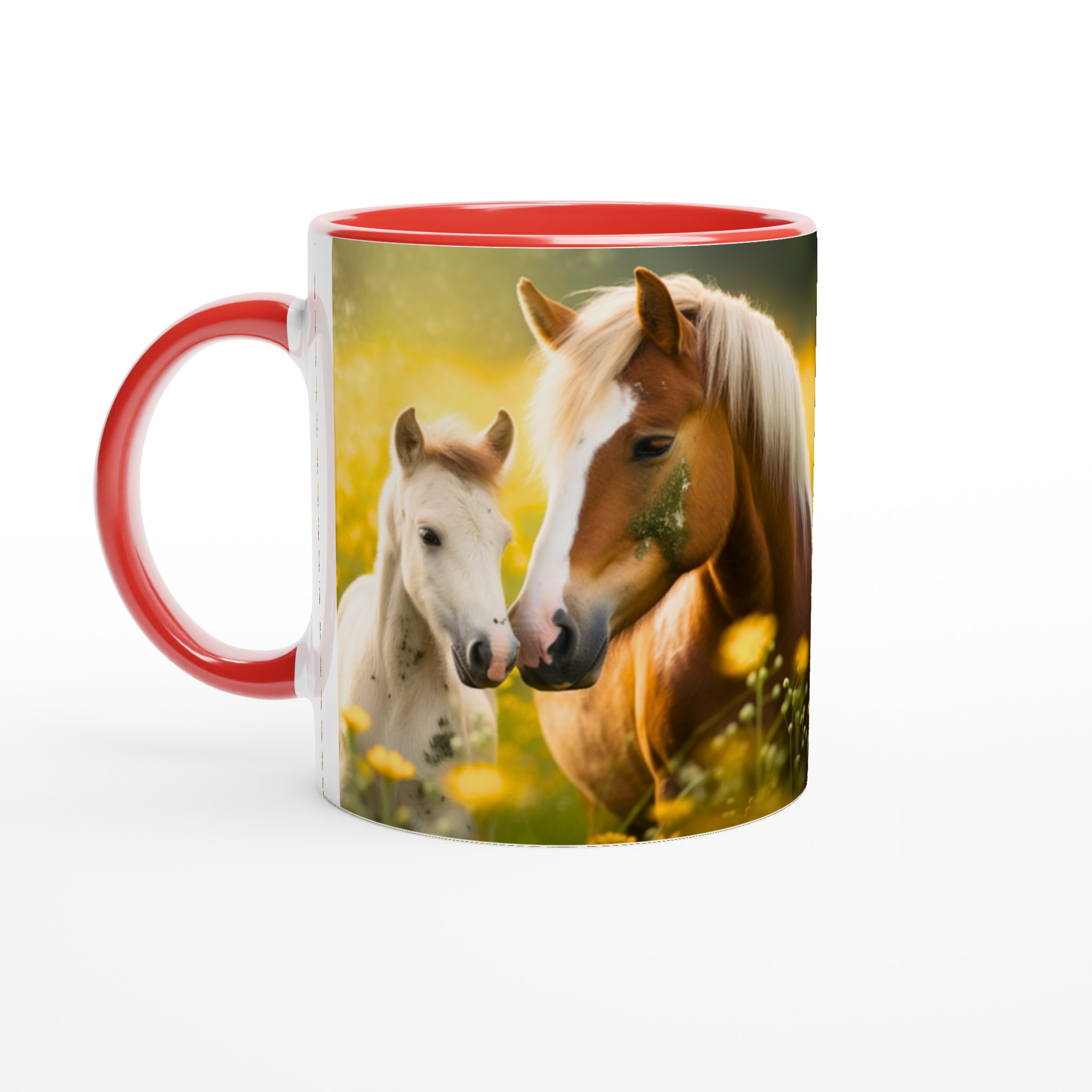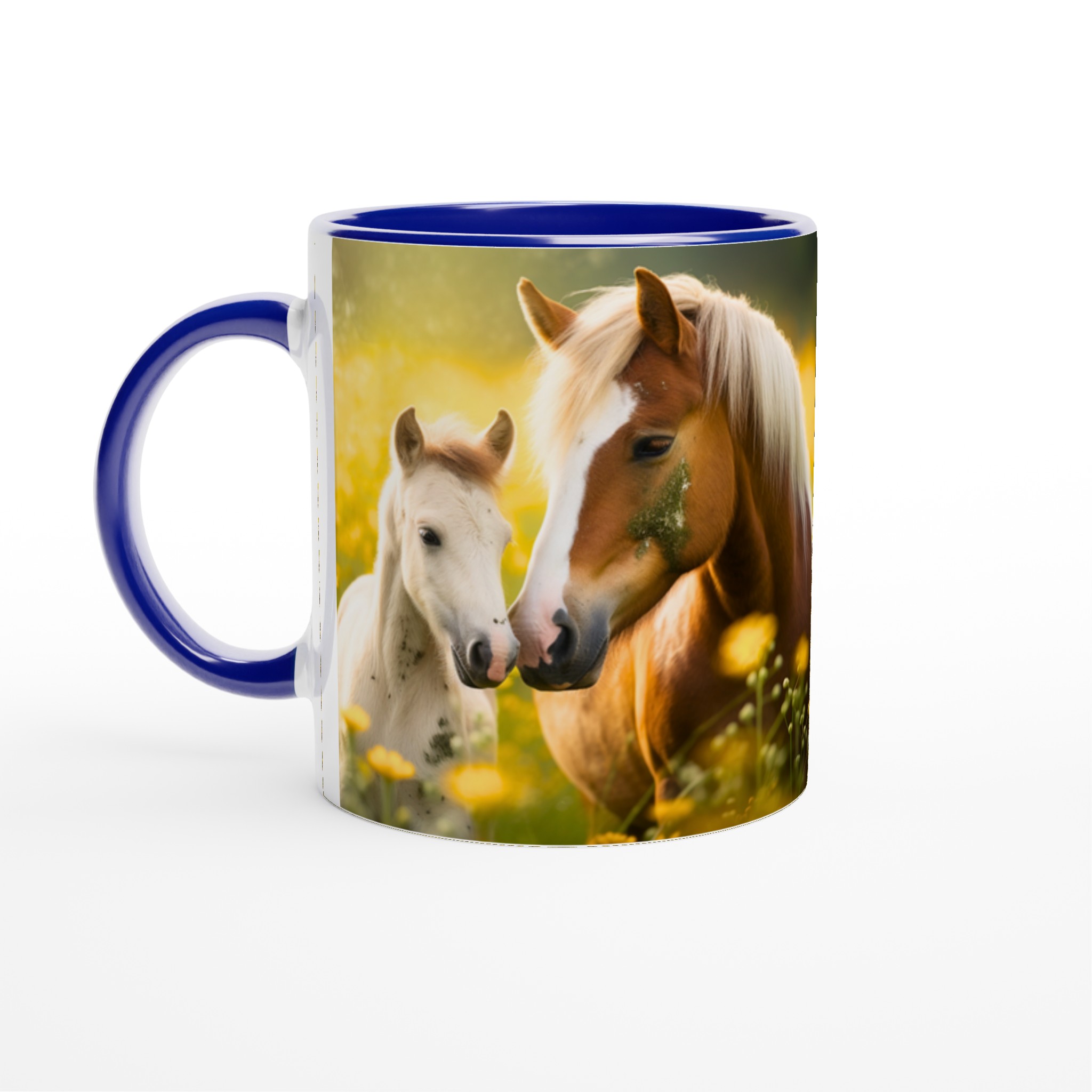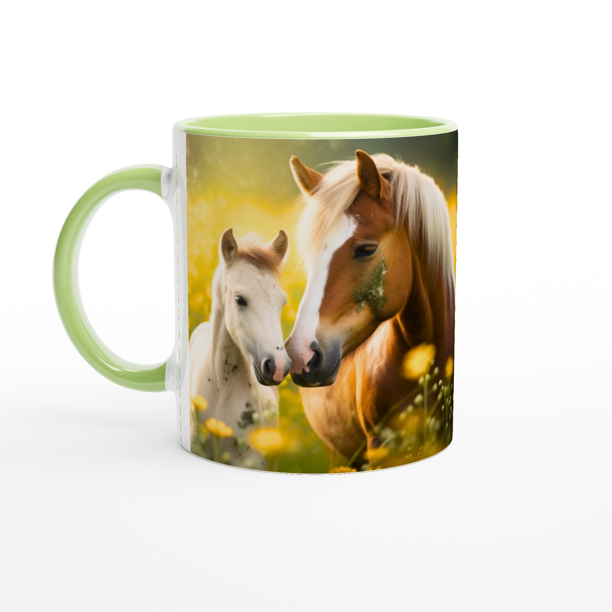 Föreställ dig att du sippar på din favoritdryck, omfamnad av lugnet från en gyllene äng där vackra hästar betar i solnedgången. Den här stilrena keramiska muggen, prydd med ett motiv som fångar ögonblickets magi, blir snabbt en vardagsfavorit. Perfekt för morgonkaffet, kvällens varma choklad eller när du bara vill njuta av en kopp te.