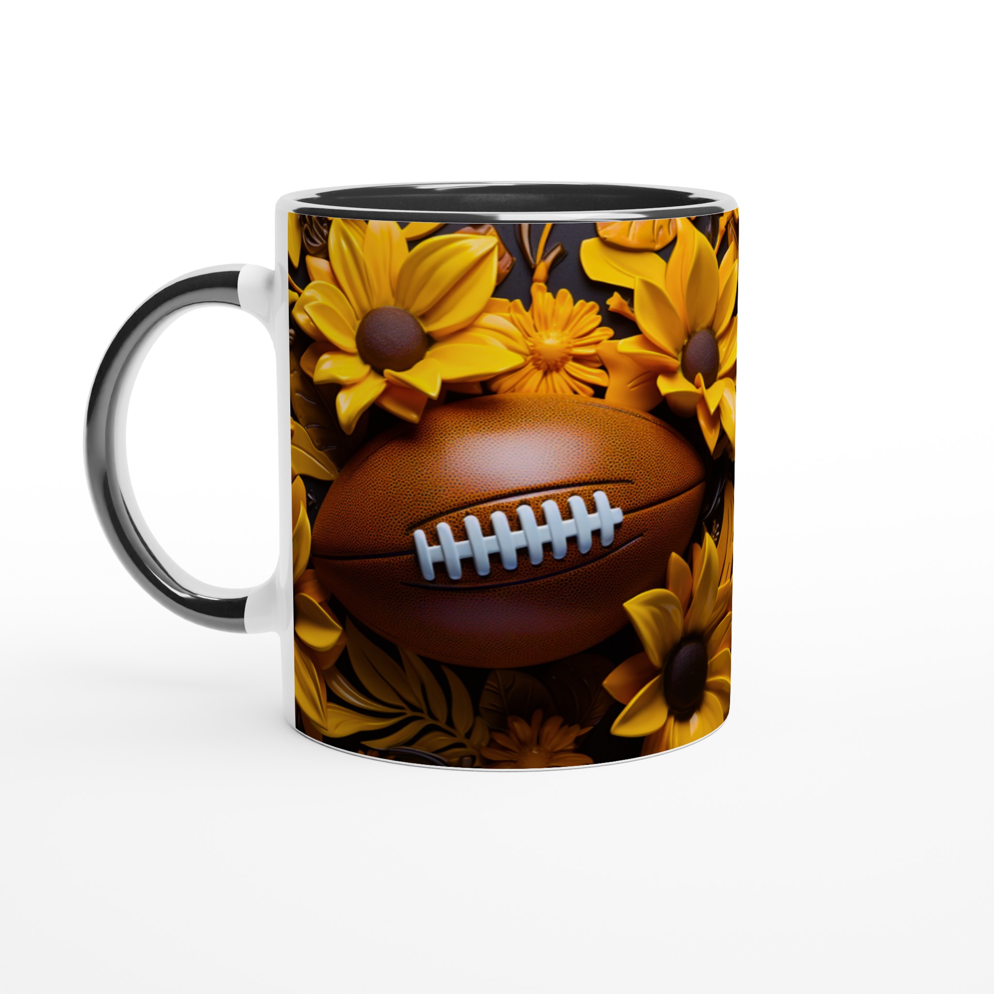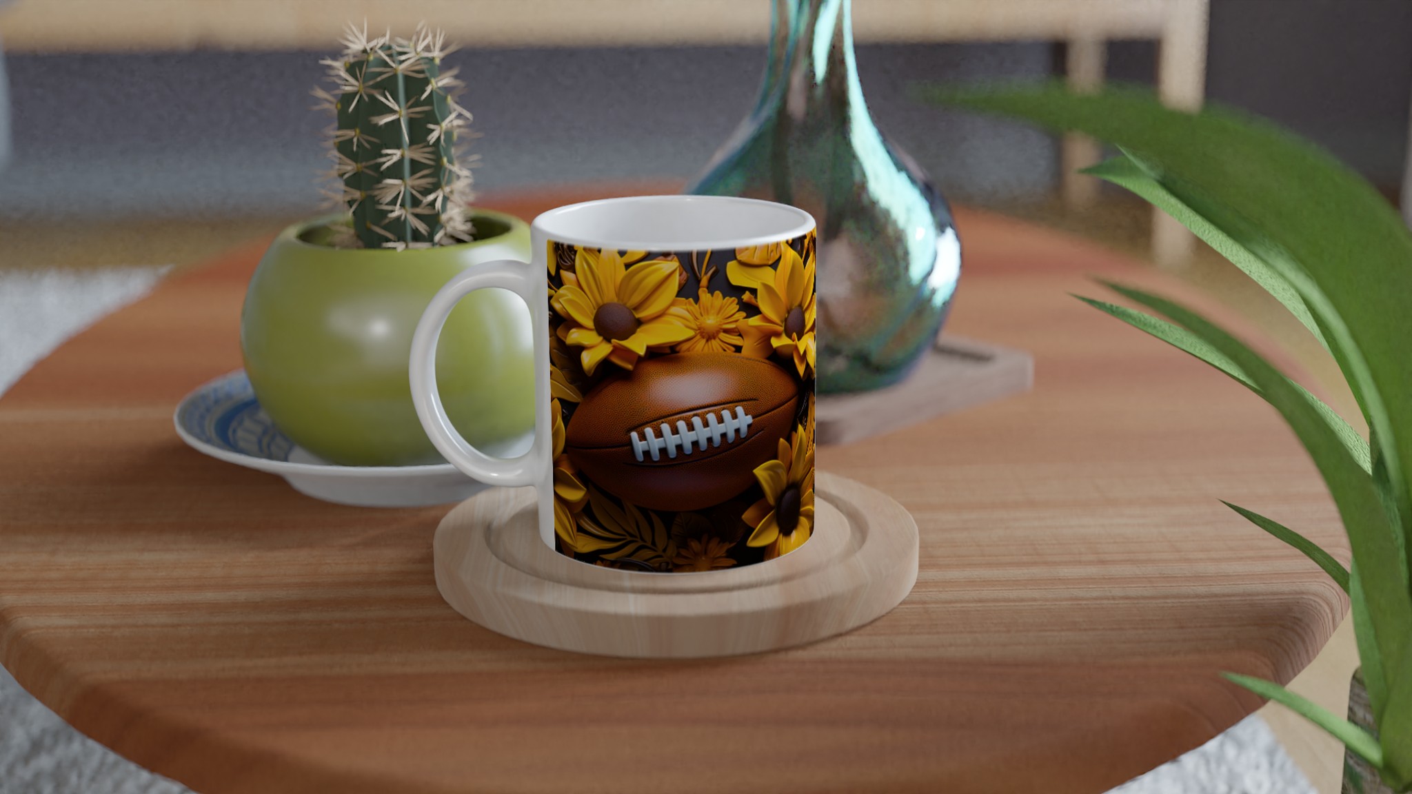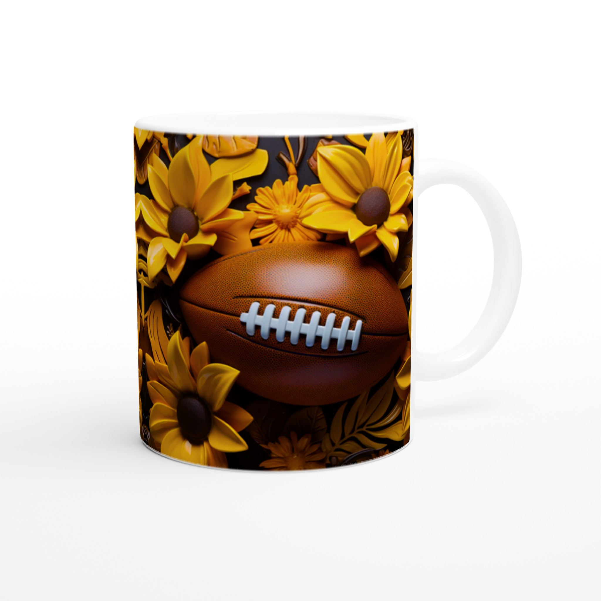 Fånga den mysiga höstkänslan med vår unika keramiska mugg, perfekt för alla som älskar amerikansk fotboll och solrosors varma glöd. Denna mugg är inte bara en vardagsfavorit – den är en hyllning till sport, natur och mysiga stunder. Oavsett om det är för morgonkaffet, kvällens varma choklad eller en lugn kopp te, kommer denna mugg att sprida glädje.
