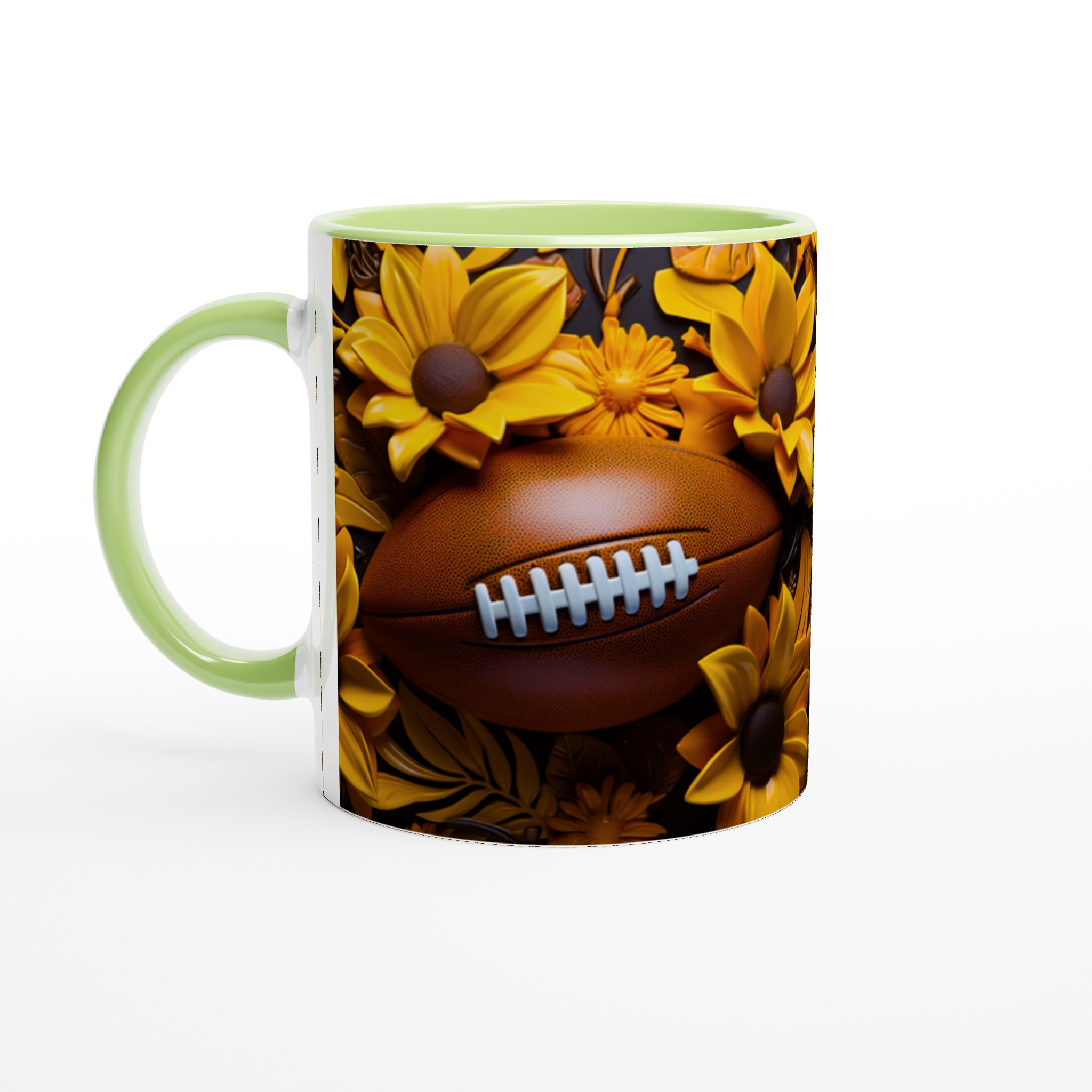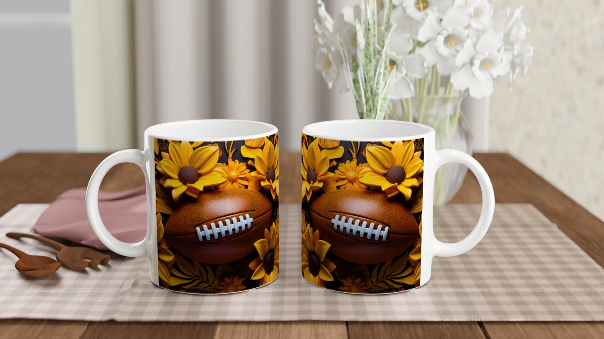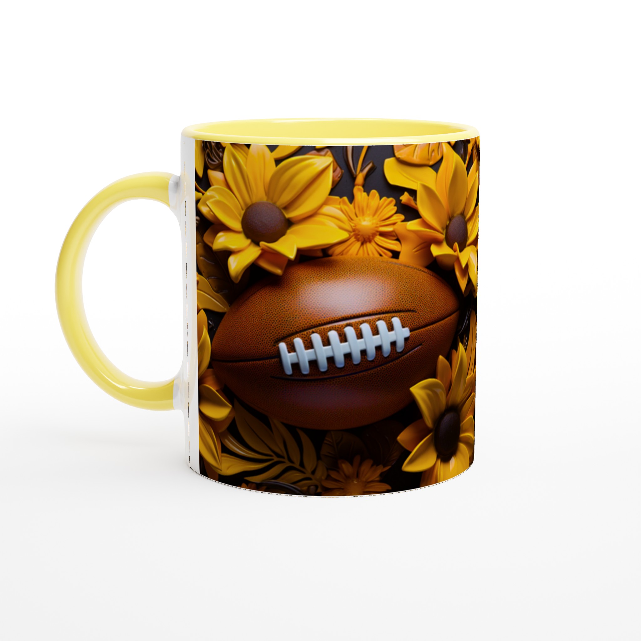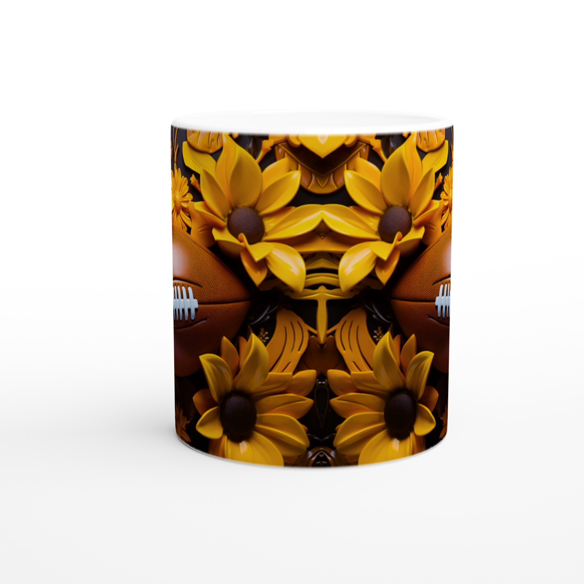 Fånga den mysiga höstkänslan med vår unika keramiska mugg, perfekt för alla som älskar amerikansk fotboll och solrosors varma glöd. Denna mugg är inte bara en vardagsfavorit – den är en hyllning till sport, natur och mysiga stunder. Oavsett om det är för morgonkaffet, kvällens varma choklad eller en lugn kopp te, kommer denna mugg att sprida glädje.