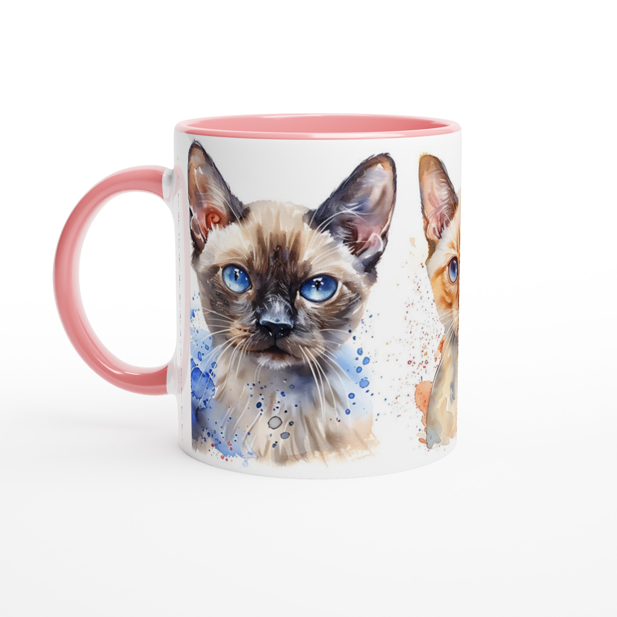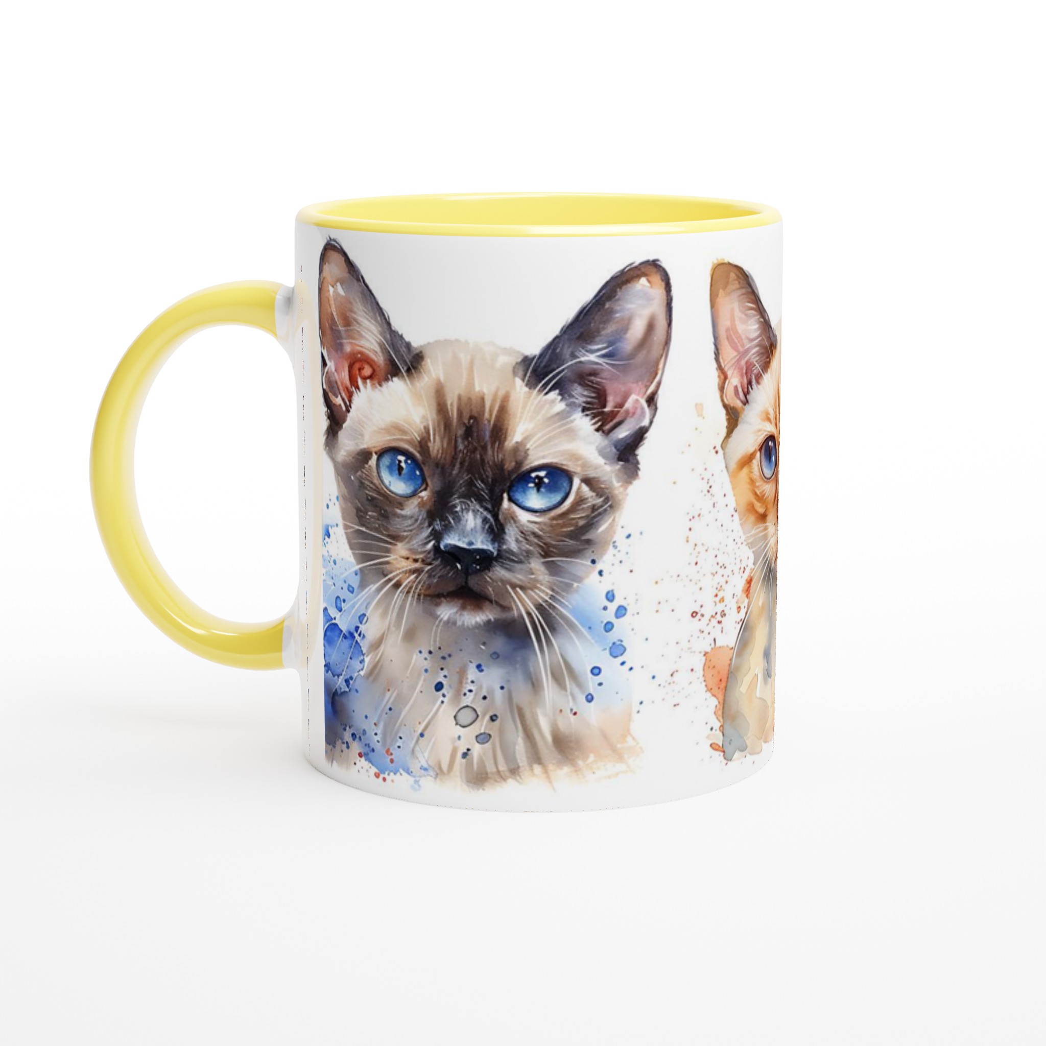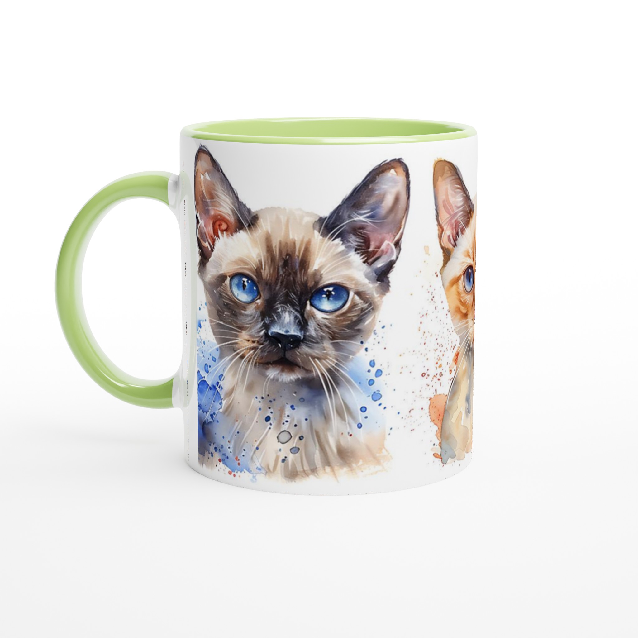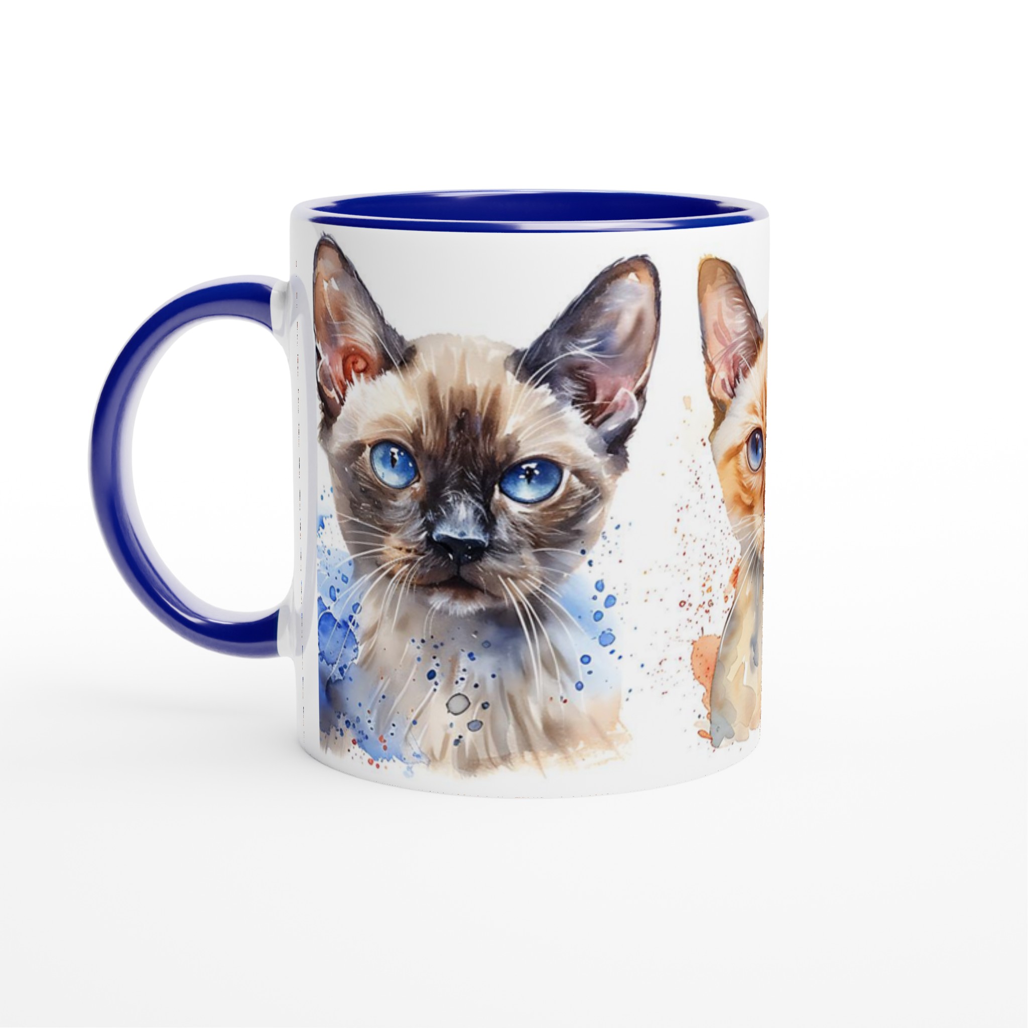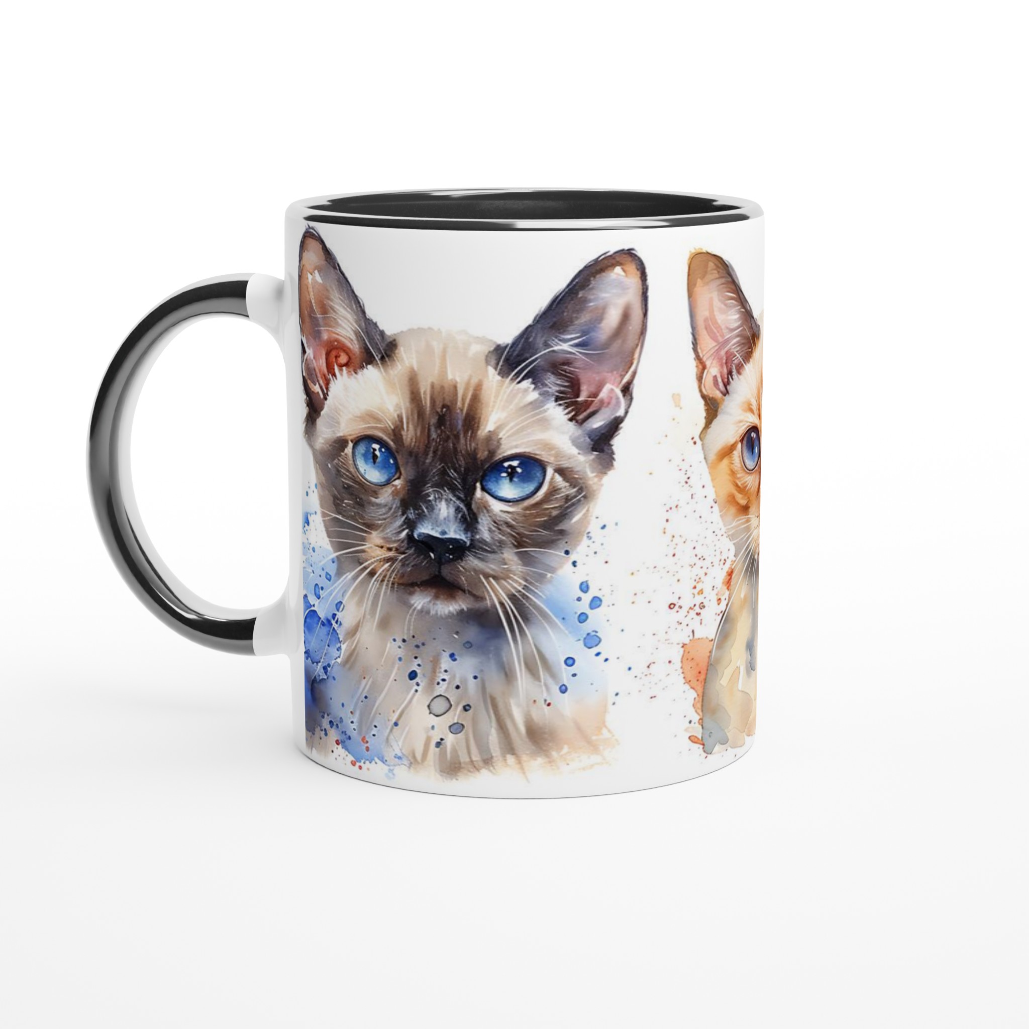 Förvandla din fikastund till en konstnärlig upplevelse med denna charmiga keramiska mugg, prydd med ett bedårande akvarellporträtt av en katt med intensivt blå ögon. Denna stilrena mugg blir snabbt en vardagsfavorit. Perfekt för morgonkaffet, kvällens varma choklad eller när du bara vill njuta av en kopp te. De levande akvarelldetaljerna och de fängslande kattansiktena framhävs vackert mot den blanka ytan och skapar en känsla av lugn och glädje.