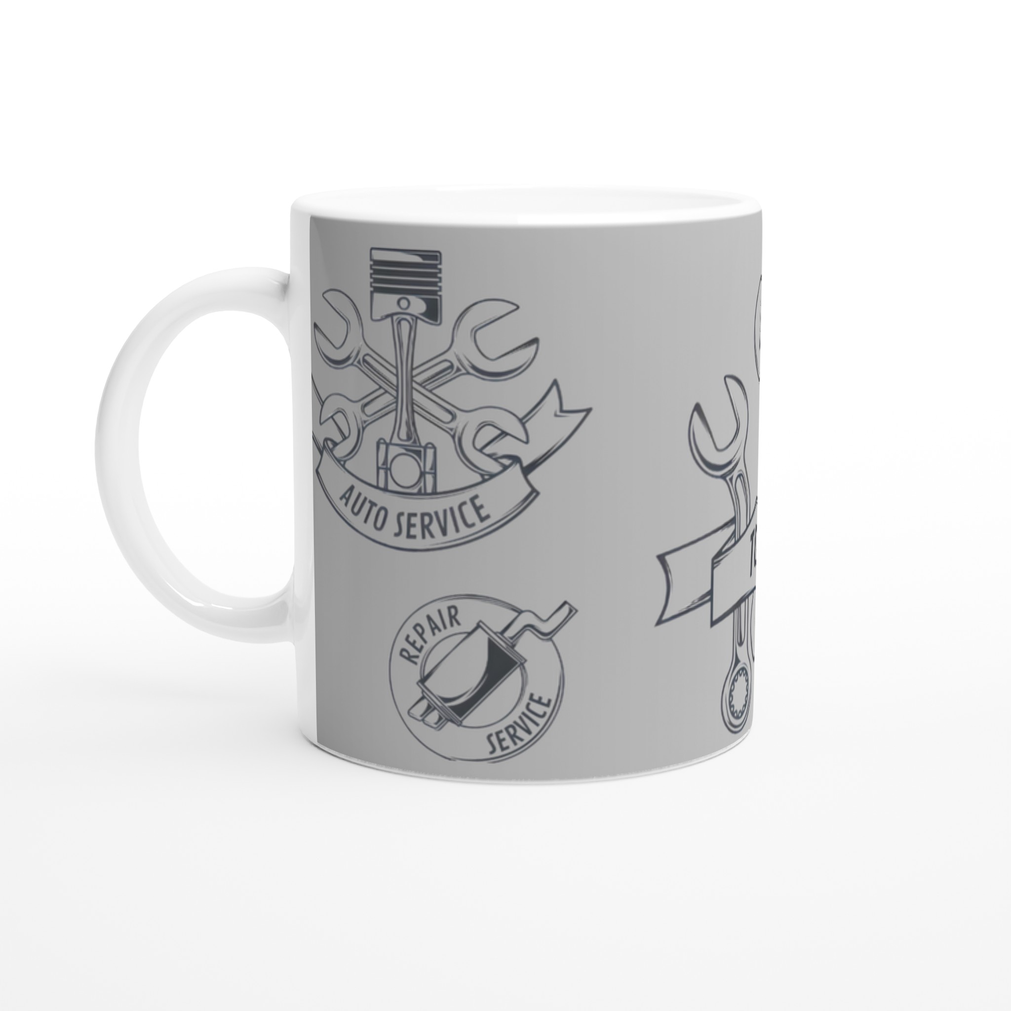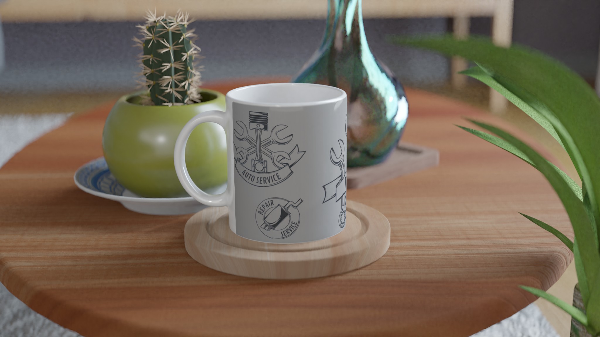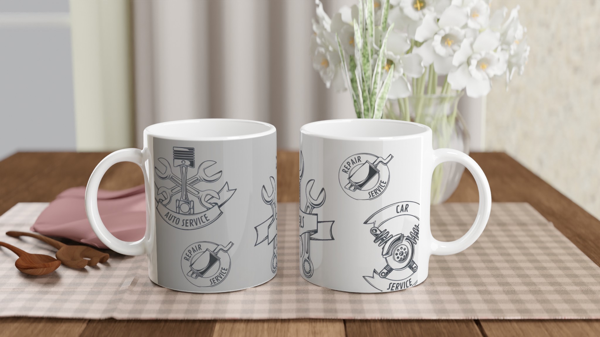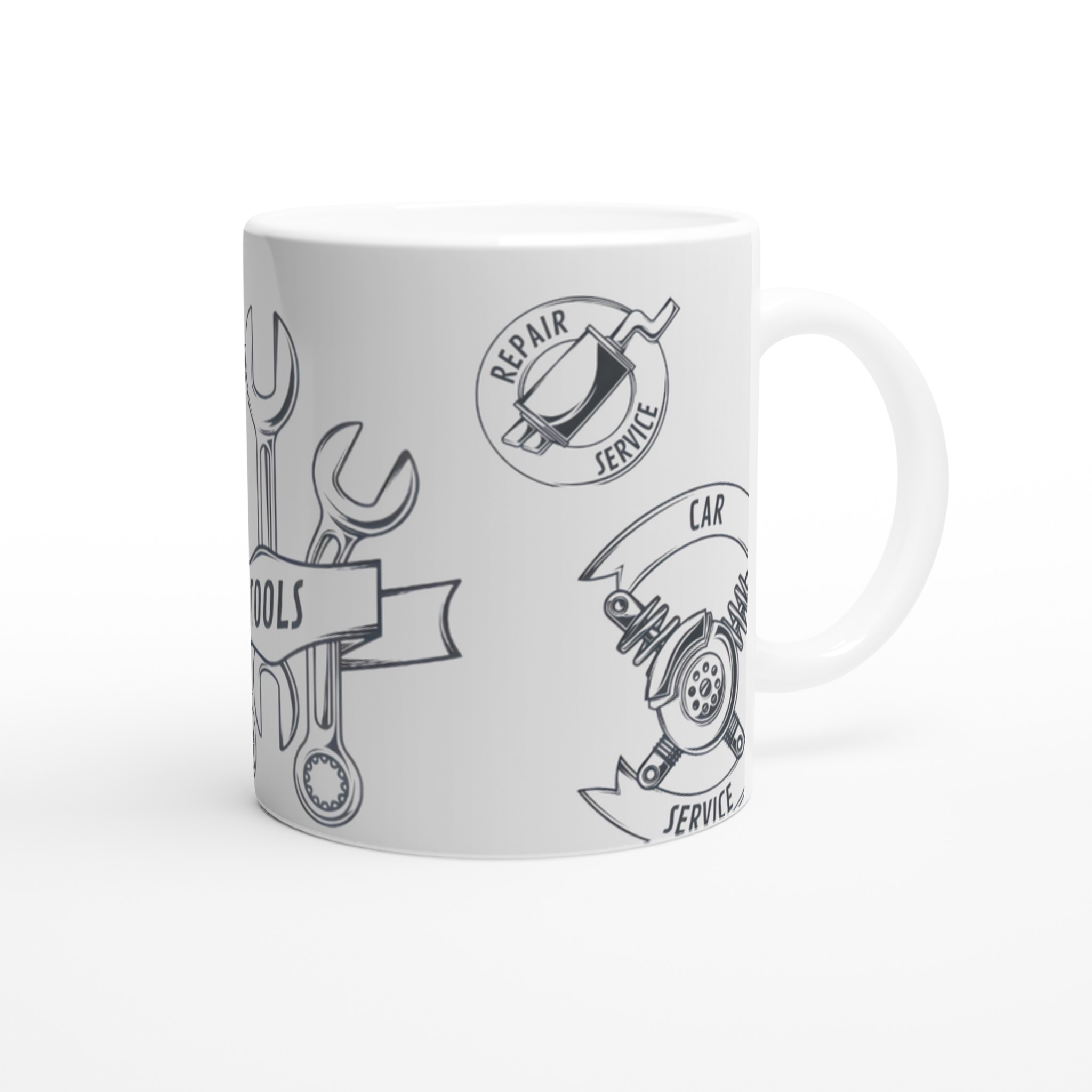 För den sanna bilälskaren eller hobbyfixaren är den här stilrena keramiska muggen mer än bara en kopp – den är en hyllning till bilmekanikens hantverk. Med distinkta, vintage-inspirerade logotyper av bilverktyg och komponenter, fångar den essensen av ”auto service” och ”tools” på ett elegant sätt. Perfekt för morgonkaffet innan garaget öppnar, kvällens varma choklad efter en lång dag i verkstaden, eller när du bara vill njuta av en kopp te medan du drömmer om nästa projekt.