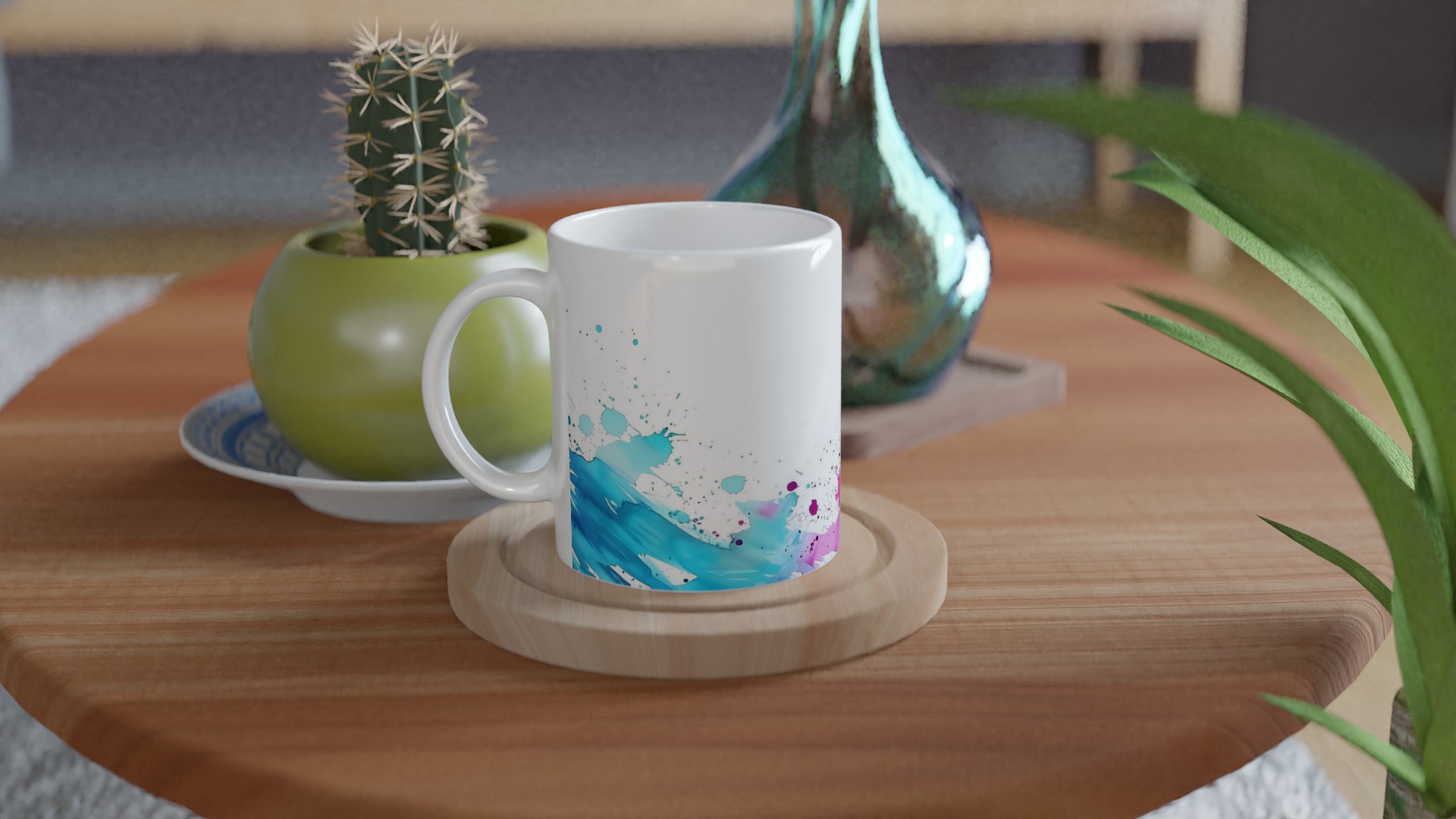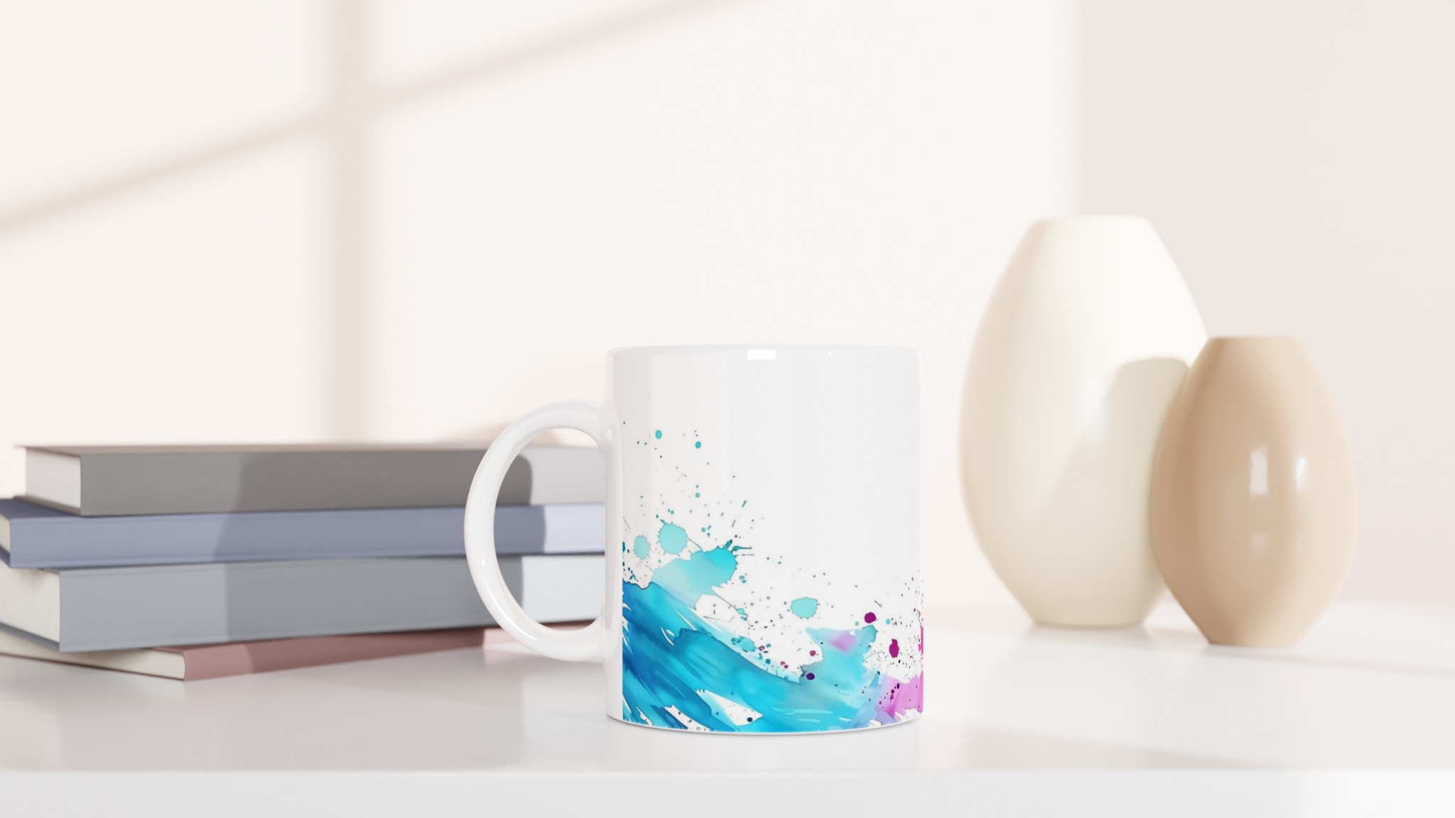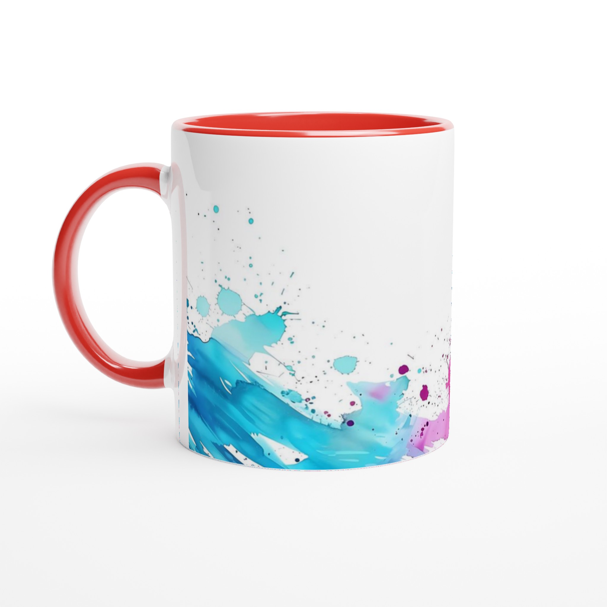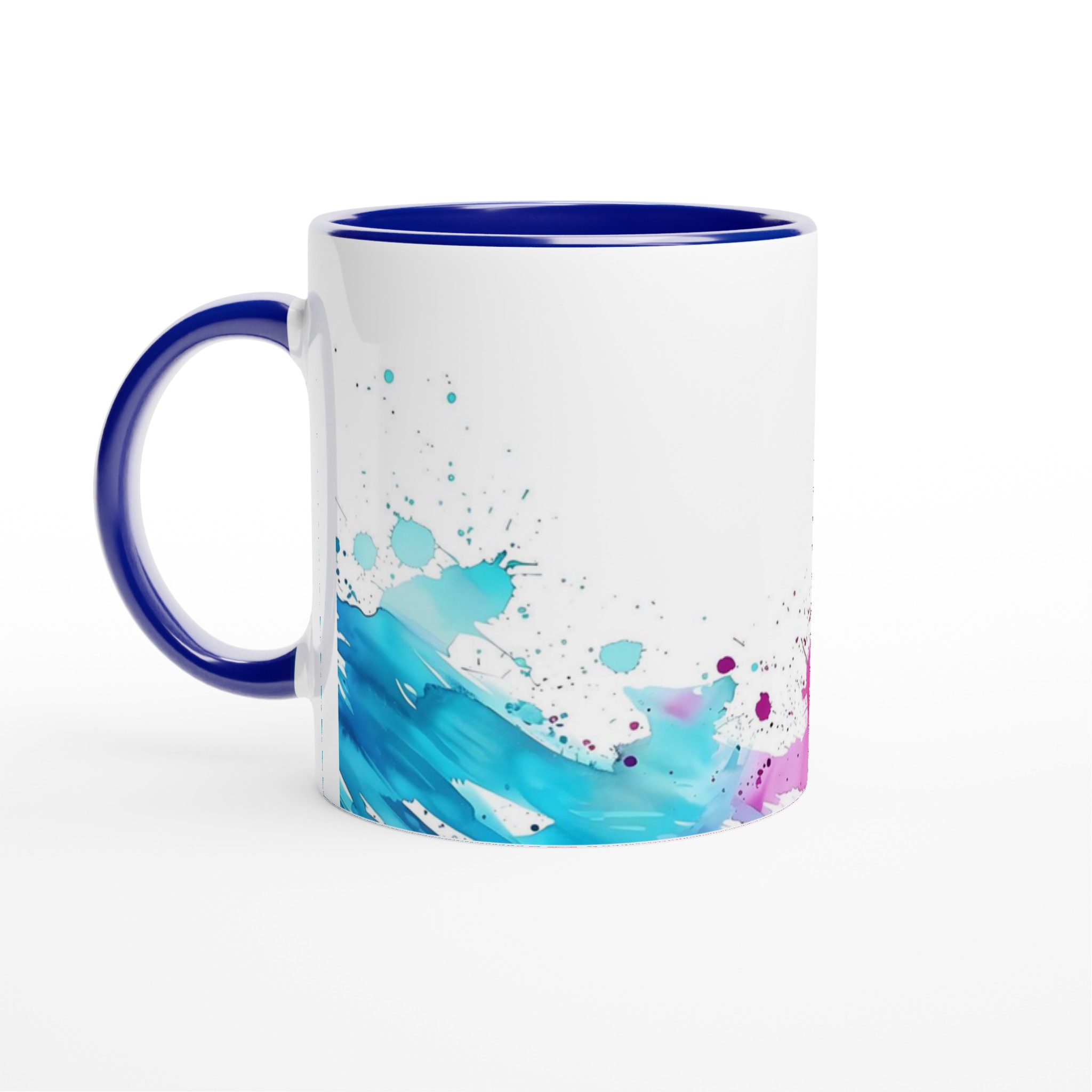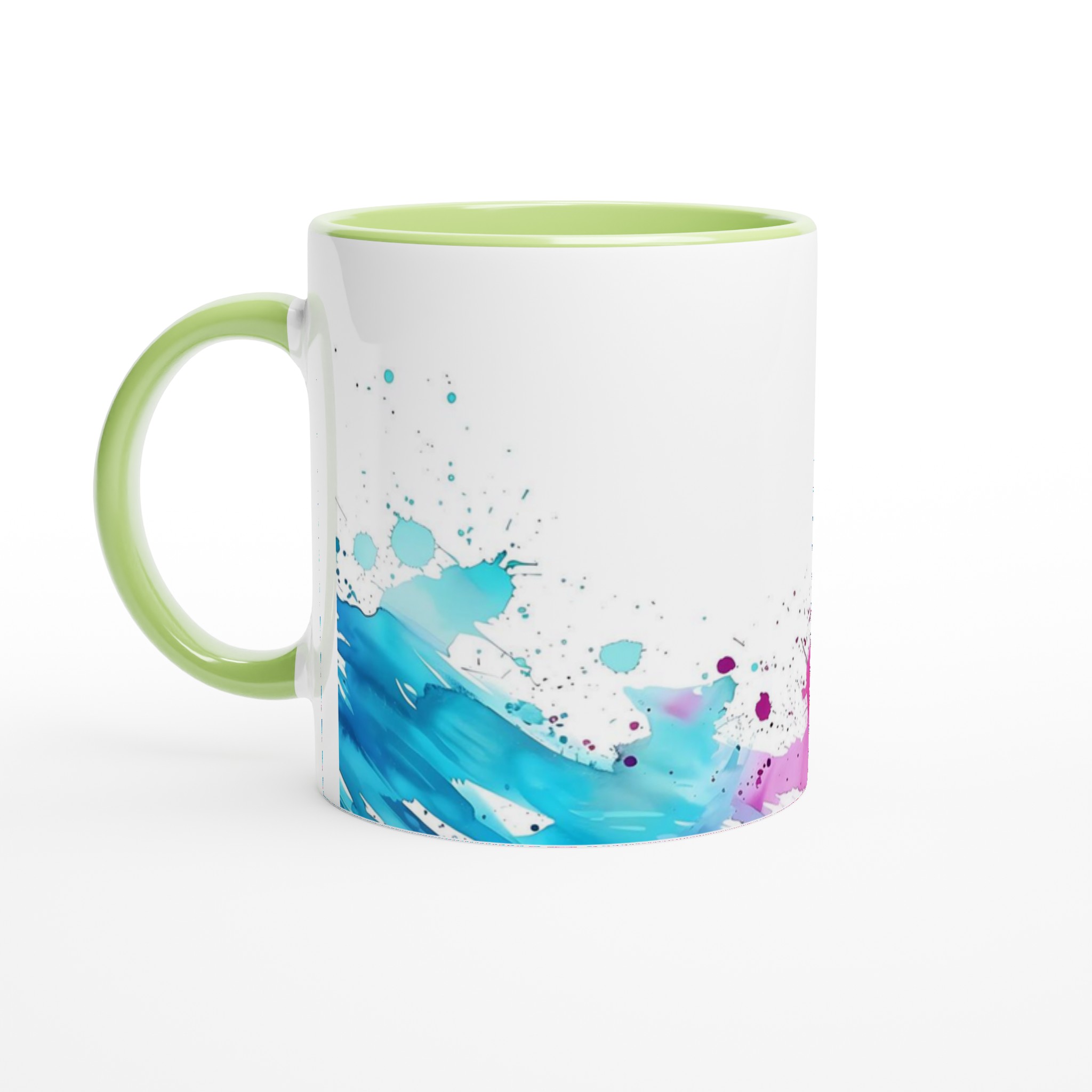 Låt din kreativa ådra flöda varje dag med denna inspirerande keramiska mugg. Dess design, med lekfulla penslar och akvarellstänk i livfulla färger som spänner från djupblått till energiskt gult, förvandlar varje paus till ett litet konstverk. Perfekt för morgonkaffet, kvällens varma choklad eller när du bara vill njuta av en kopp te och drömma dig bort till en värld av färg och form.