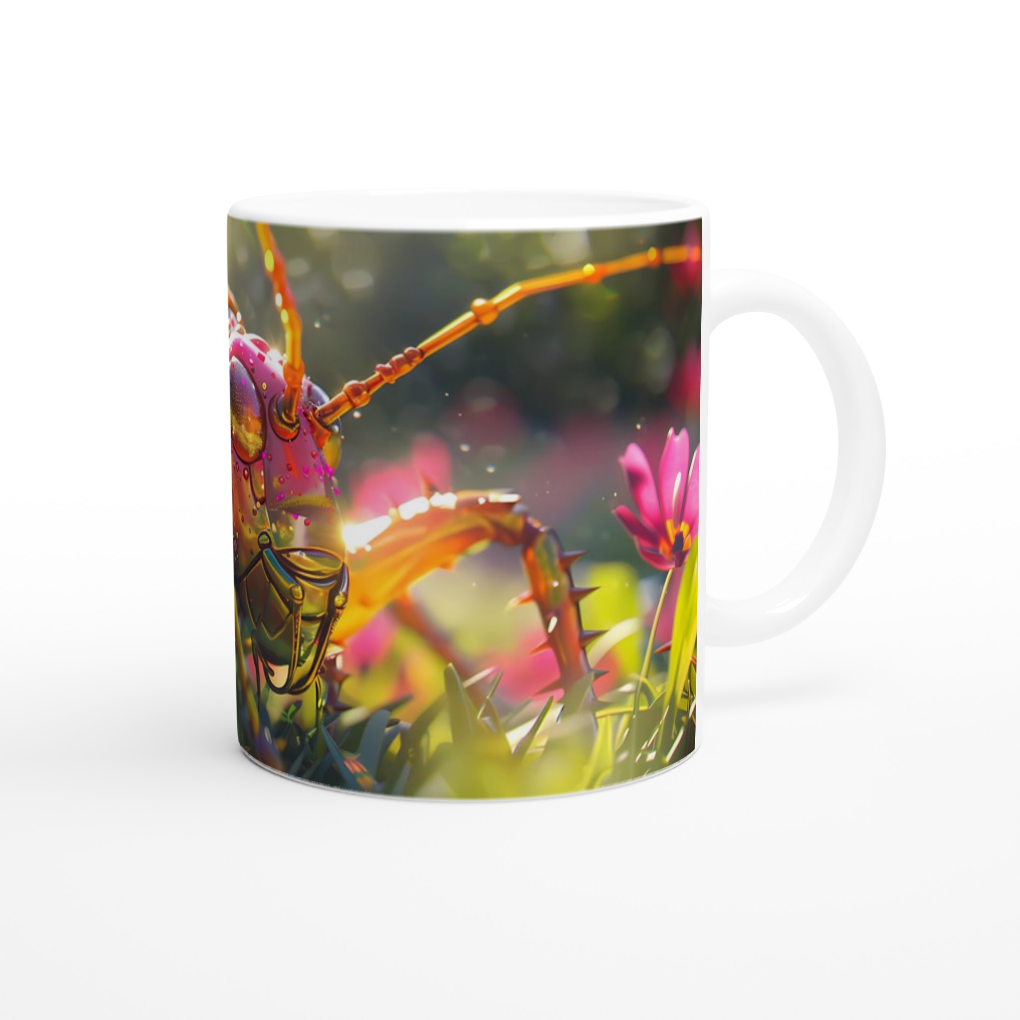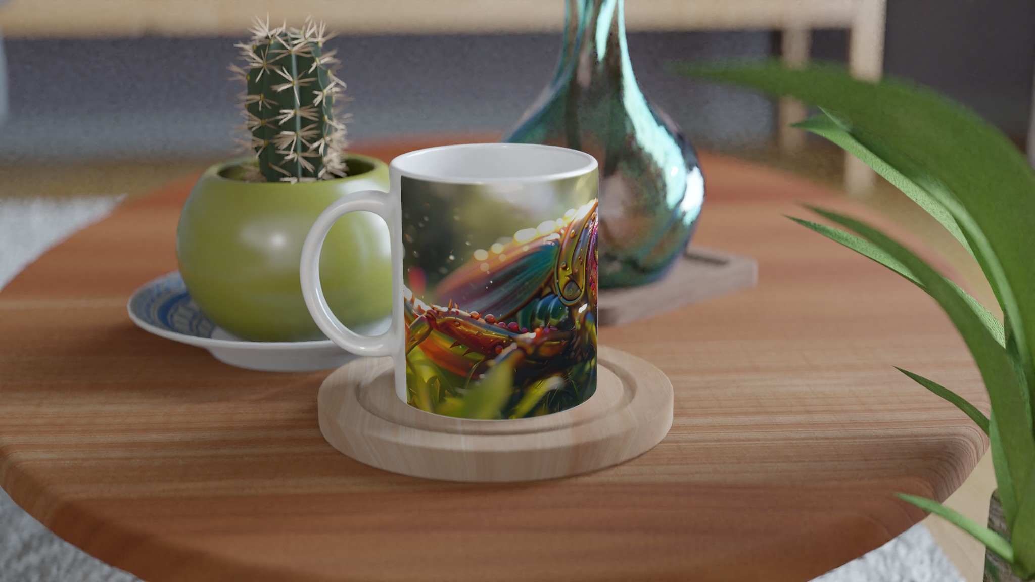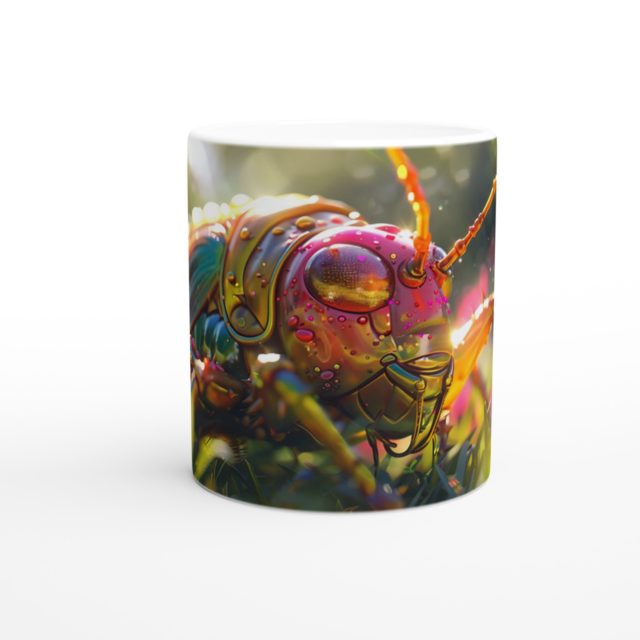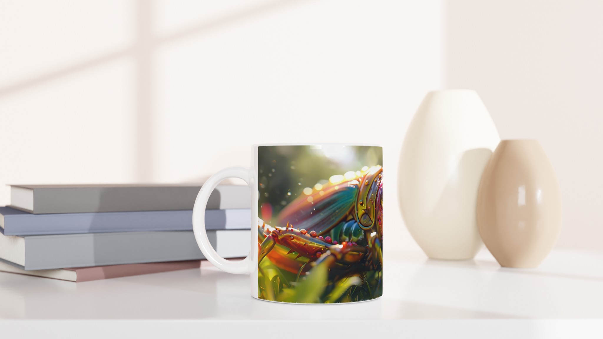 Lyft din vardag med en kopp som berättar en historia. Denna unika keramiska mugg är prydd med en fantasifull cyberrosa insekt i ett magiskt landskap, fylld med gnistrande färgexplosioner som fångar ögat. Varje detalj, från de daggvåta pärlorna till de rika färgskiftningarna, ger en futuristisk och drömlik känsla till din dryckesstund. Det är den perfekta muggen för att starta morgonen med en skvätt inspiration, mysa med varm choklad på kvällen, eller bara njuta av en kopp te i gott sällskap.