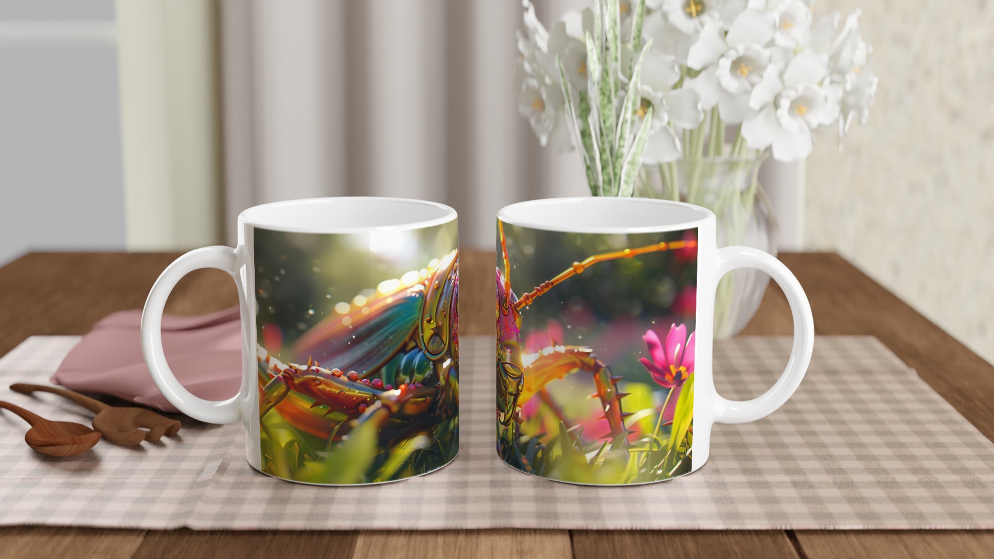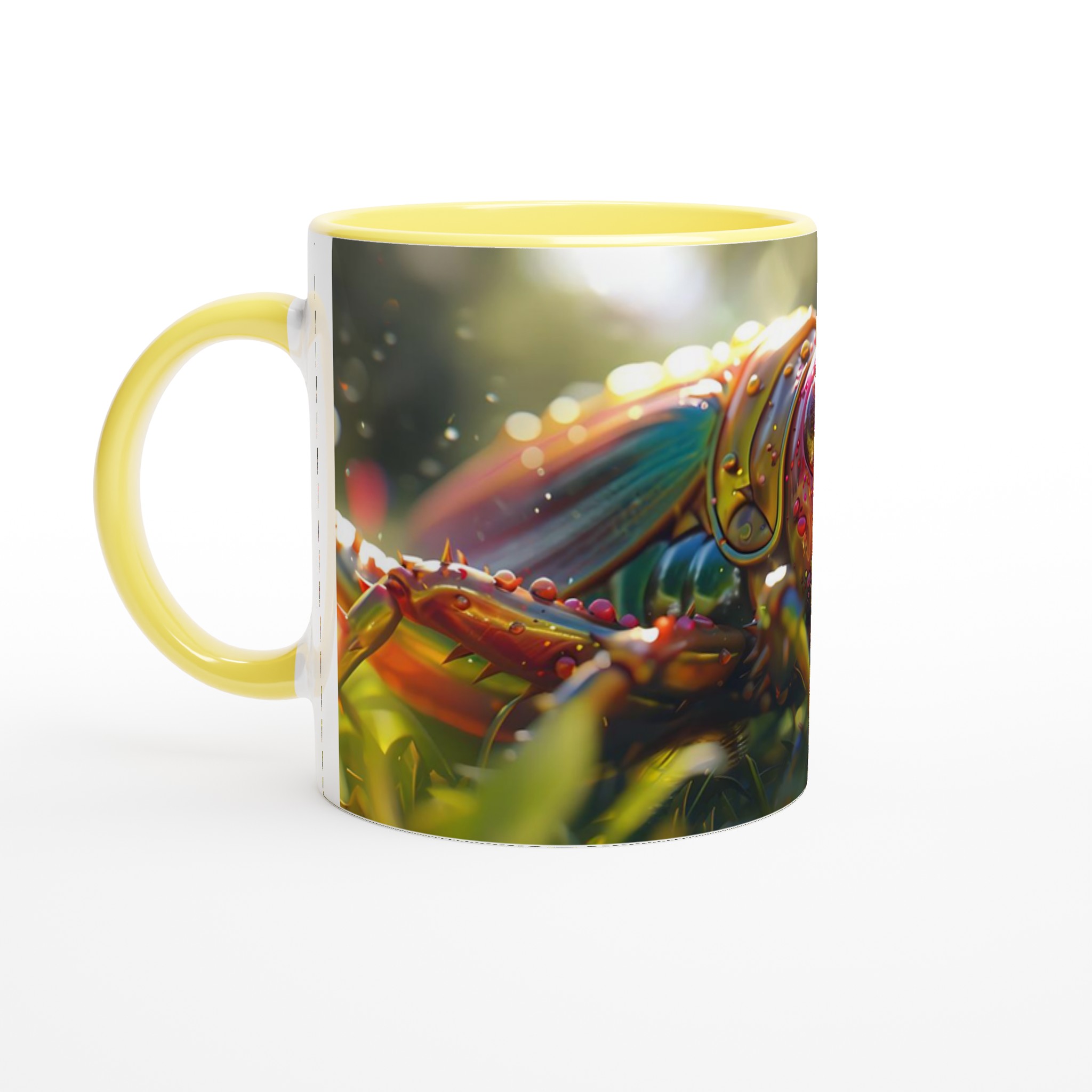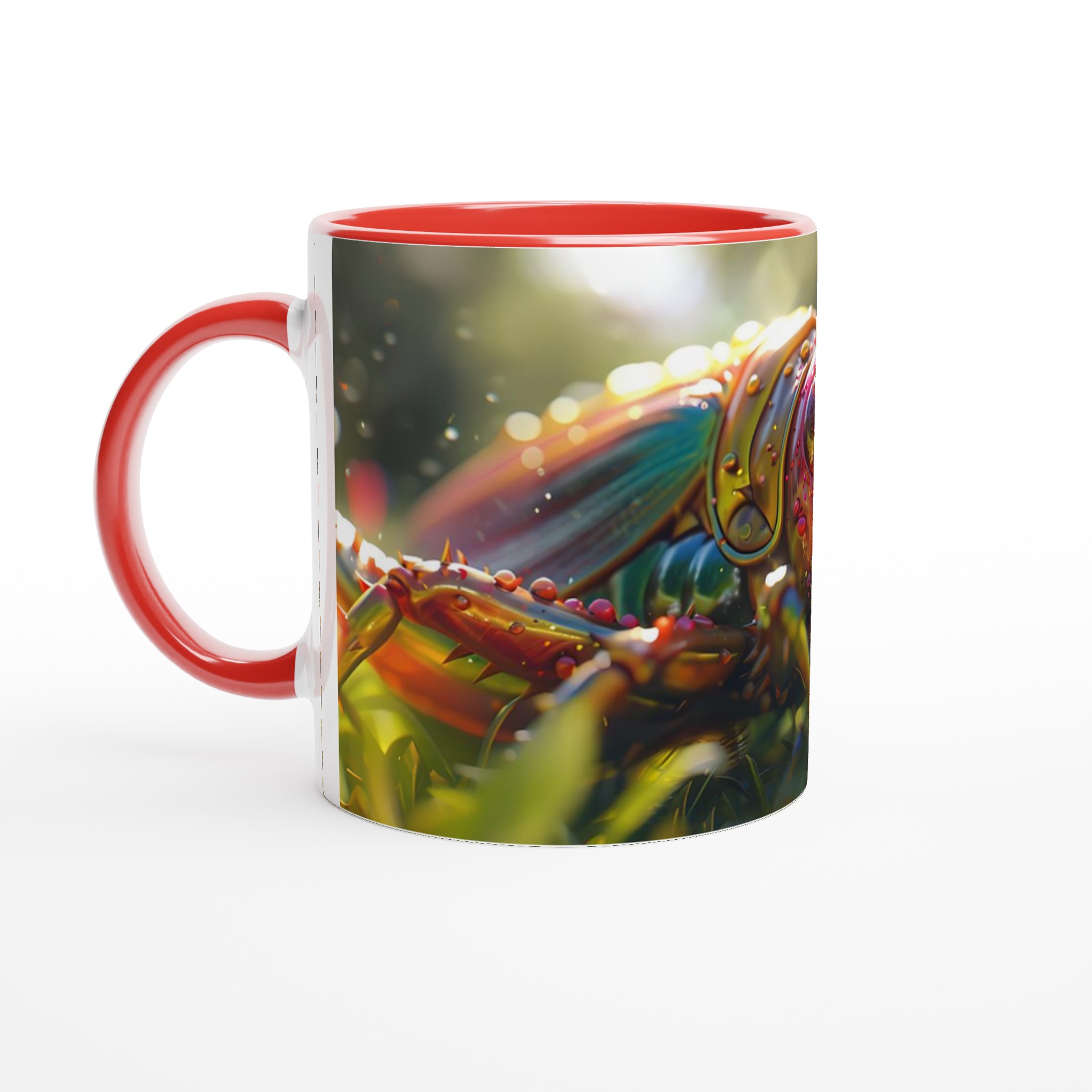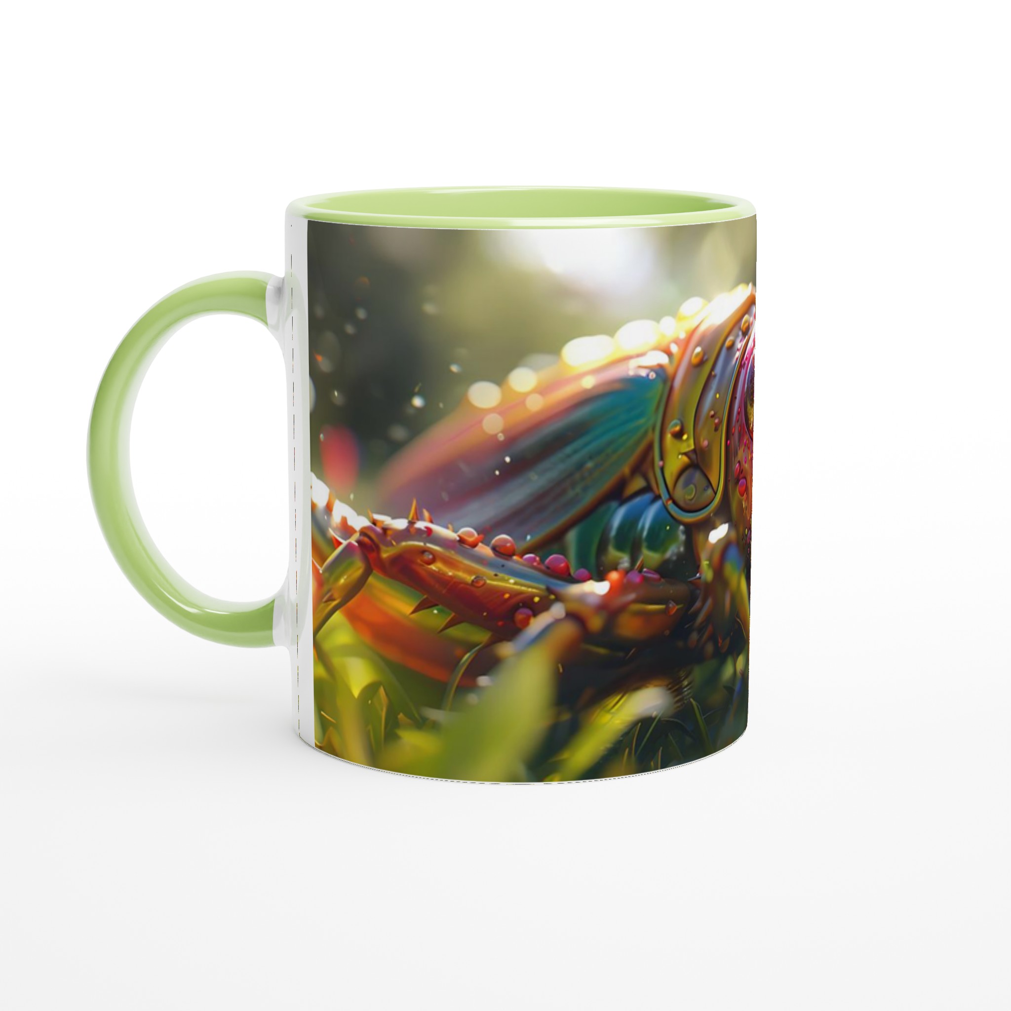 Lyft din vardag med en kopp som berättar en historia. Denna unika keramiska mugg är prydd med en fantasifull cyberrosa insekt i ett magiskt landskap, fylld med gnistrande färgexplosioner som fångar ögat. Varje detalj, från de daggvåta pärlorna till de rika färgskiftningarna, ger en futuristisk och drömlik känsla till din dryckesstund. Det är den perfekta muggen för att starta morgonen med en skvätt inspiration, mysa med varm choklad på kvällen, eller bara njuta av en kopp te i gott sällskap.