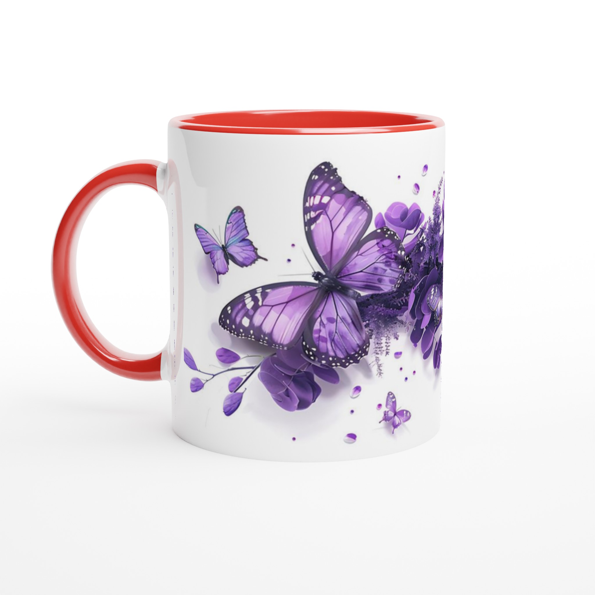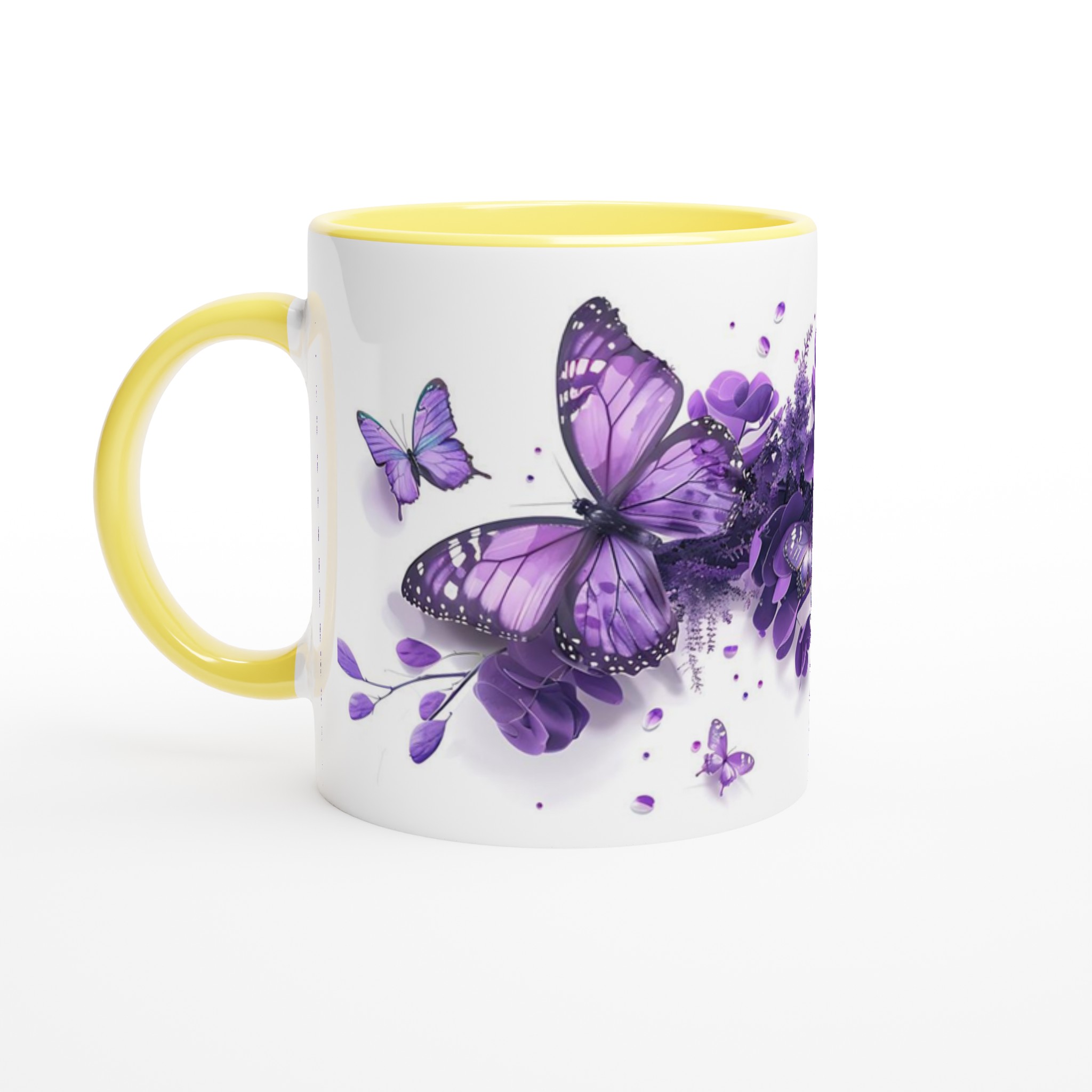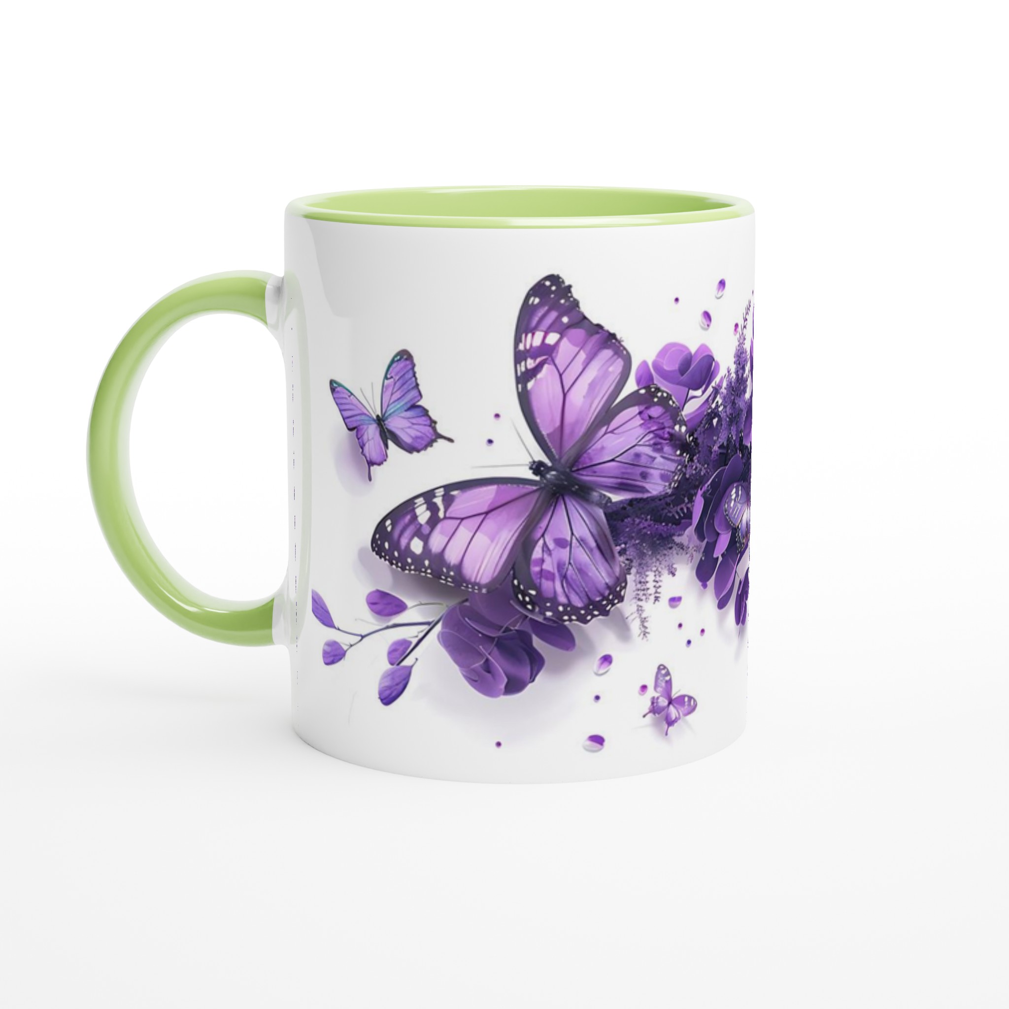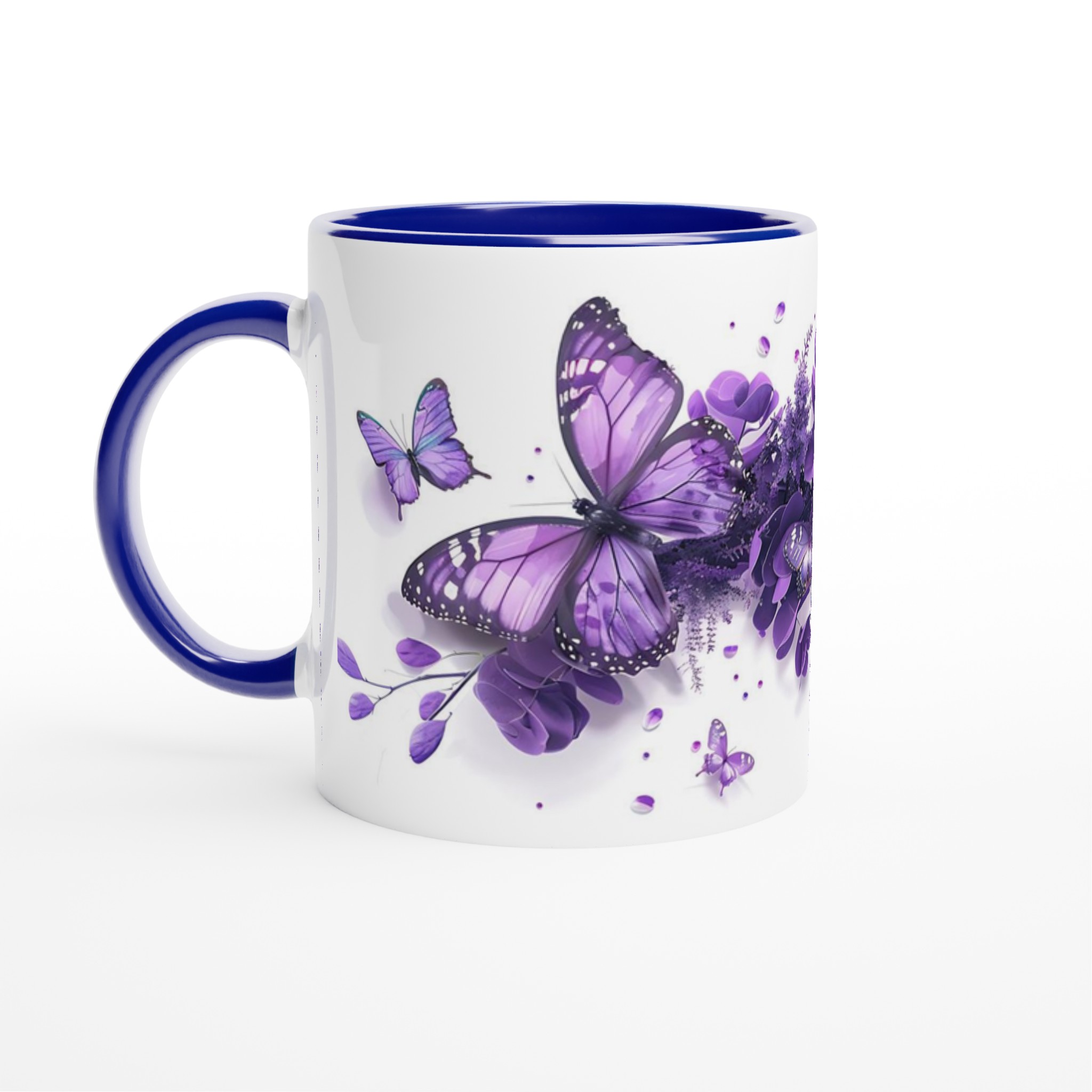 Låt dig förtrollas av denna underbara keramiska mugg, prydd med ett drömskt motiv av lila fjärilar och blomster – en verklig hyllning till naturens skönhet. Denna mugg blir snabbt en vardagsfavorit, perfekt för morgonkaffet, kvällens varma choklad eller när du bara vill njuta av en kopp te i lugn och ro. Den blanka ytan får trycken att framträda med klara och levande färger, som håller sig fina även efter många turer i mikron och diskmaskinen.
