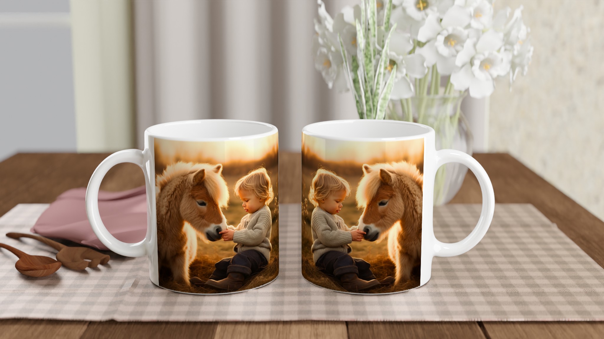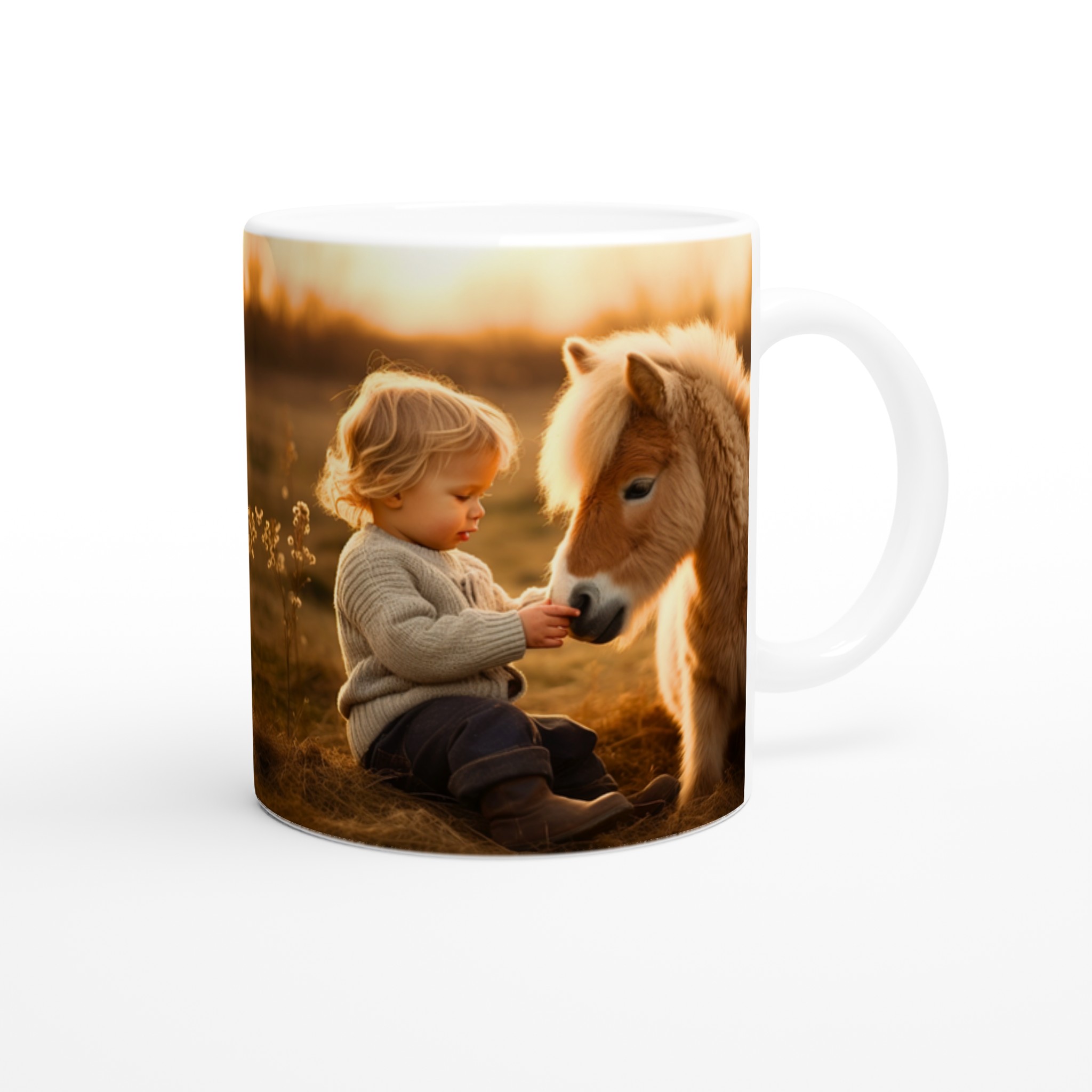 Fånga den varma och förtrollande känslan från en solnedgång med din favoritmugg. Inspirerad av de magiska stunderna mellan ett barn och en fölunge, blir denna stilrena keramiska mugg snabbt en vardagsfavorit. Perfekt för morgonkaffet, kvällens varma choklad eller när du bara vill njuta av en kopp te.