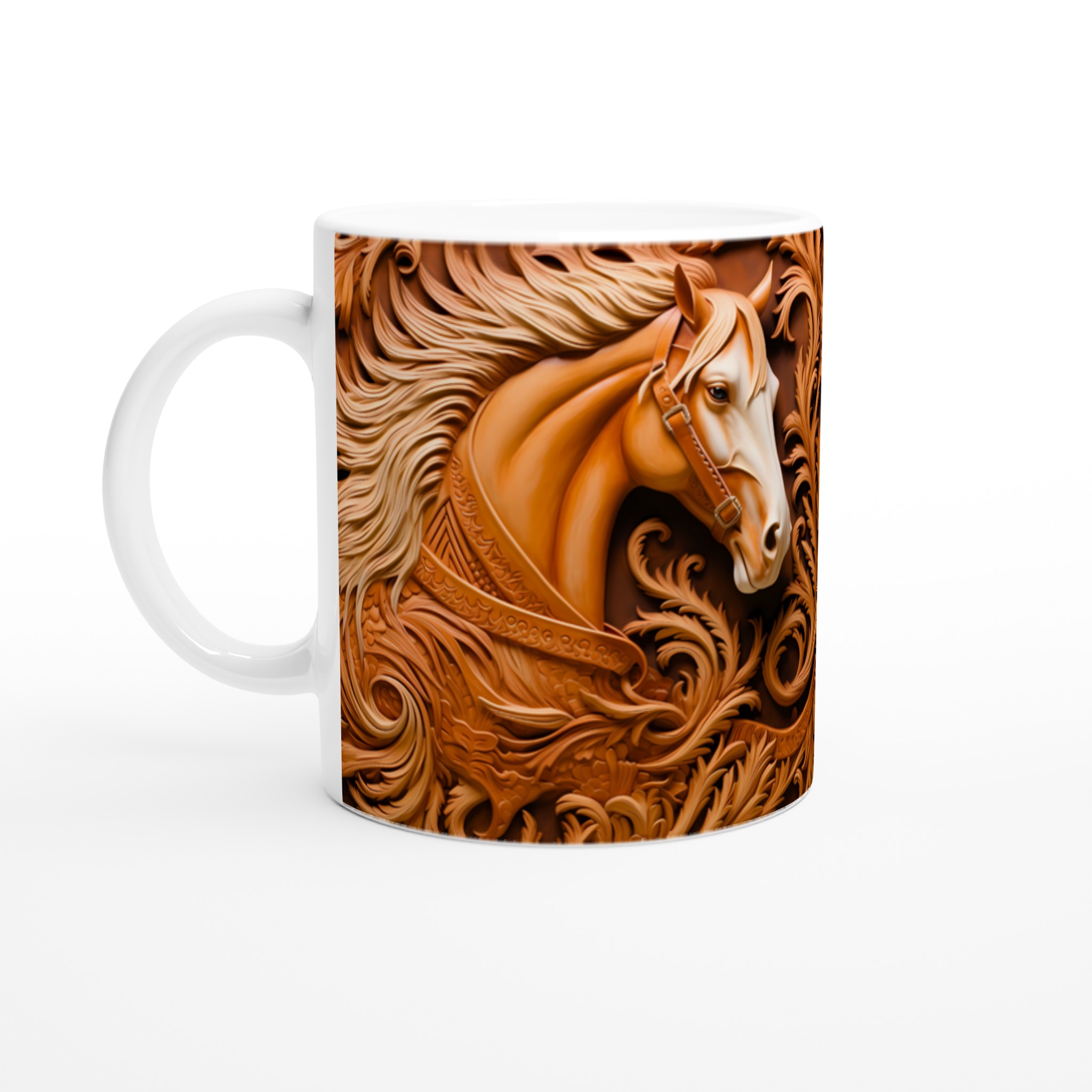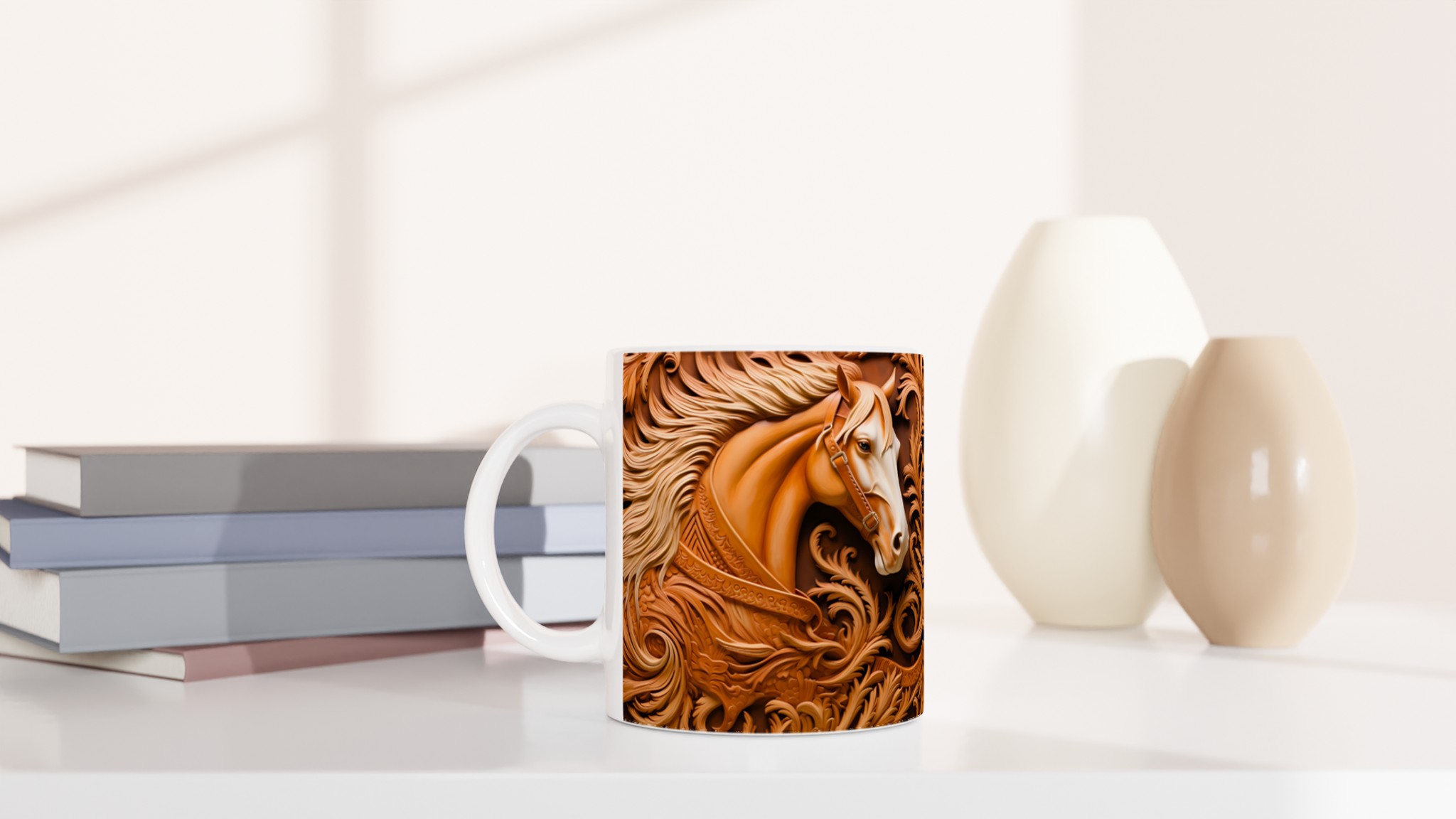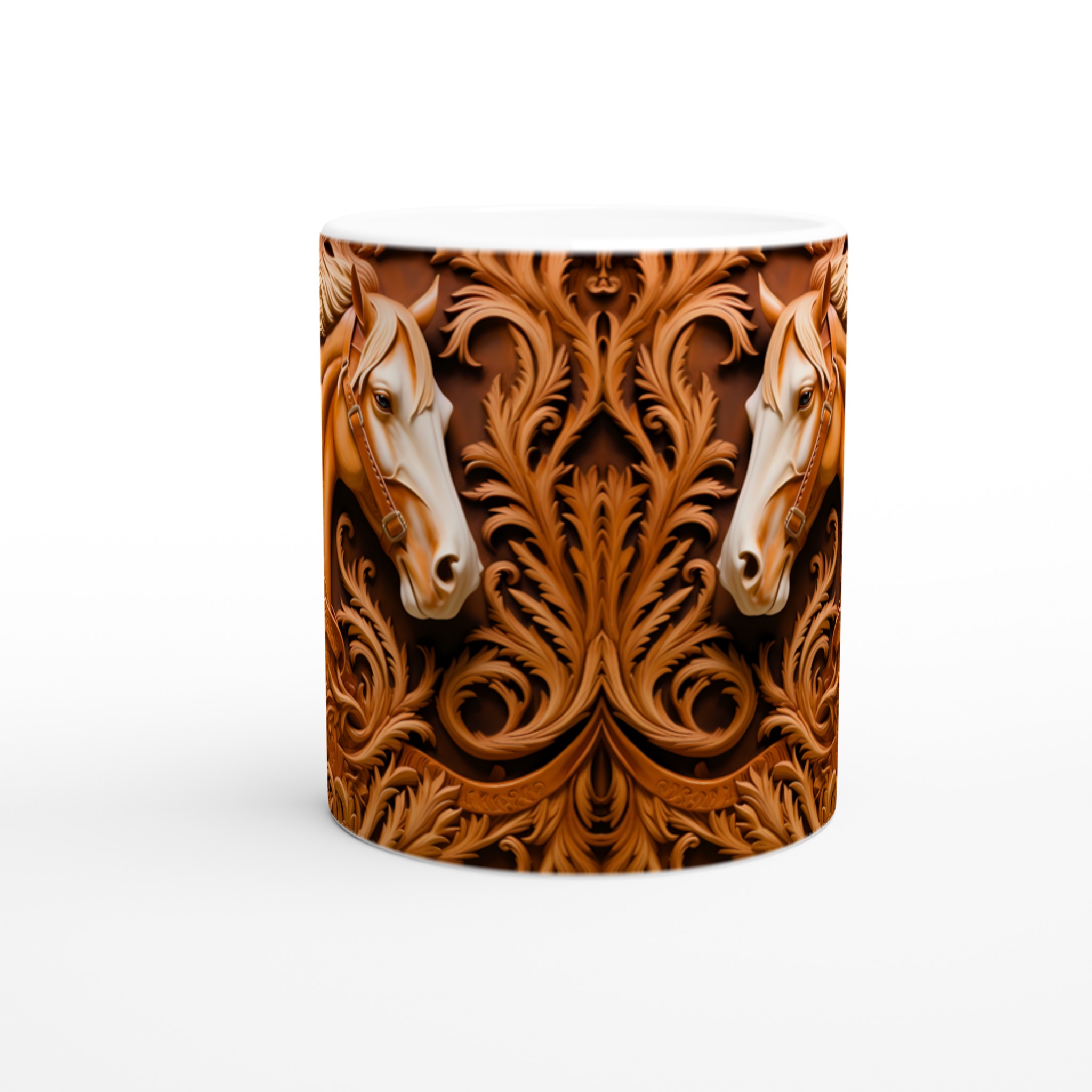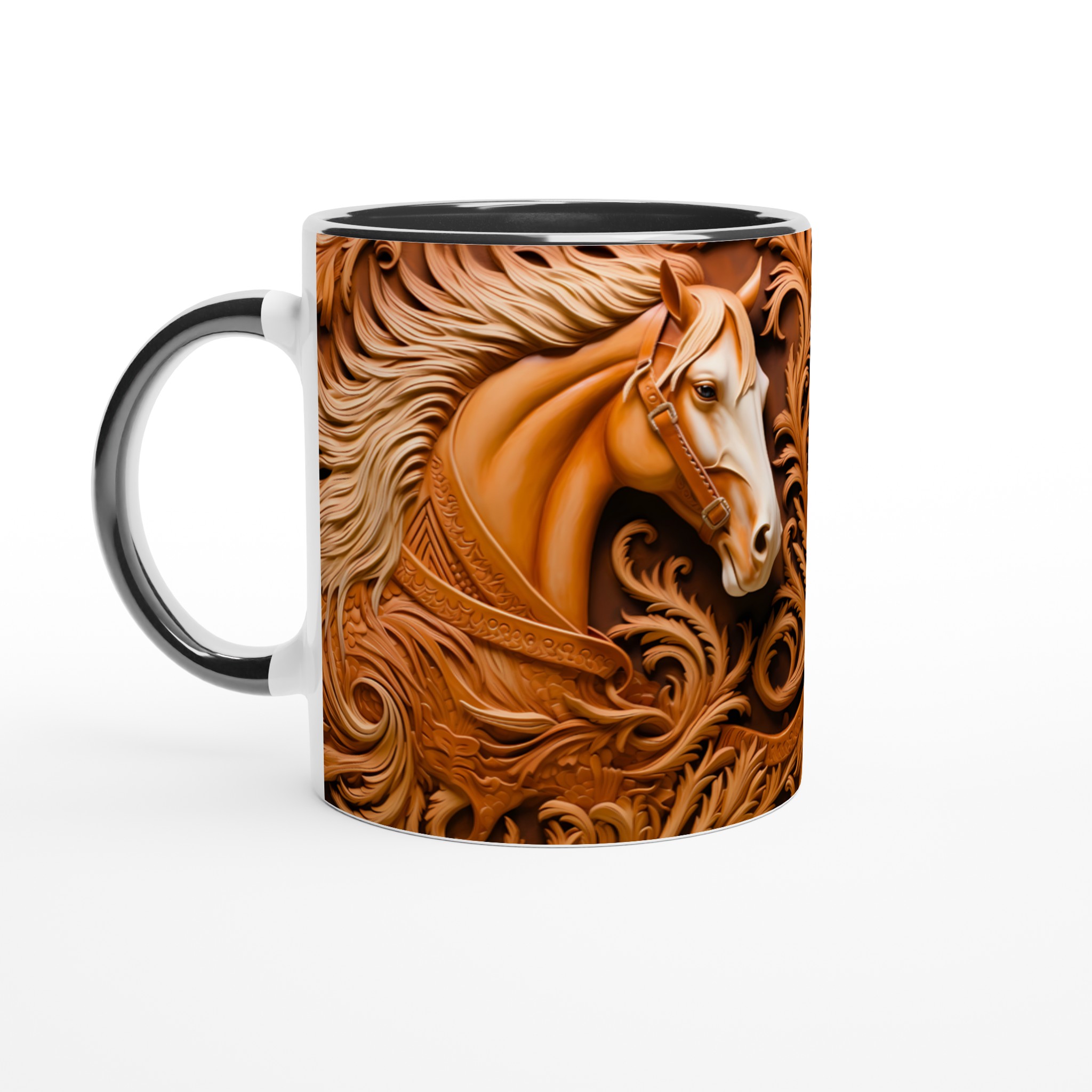 Fånga elegansen hos klassisk barockkonst med denna utsökta keramiska mugg, prydd med majestätiska hästar och intrikata snirkliga detaljer. Den rika, varma träsnittslooken ger en tidlös och sofistikerad känsla till varje dryckesstund. Den här stilrena muggen blir snabbt en vardagsfavorit, perfekt för morgonkaffet, kvällens varma choklad eller när du bara vill njuta av en kopp te. Låt den konstnärliga designen inspirera dig och förhöja din paus.