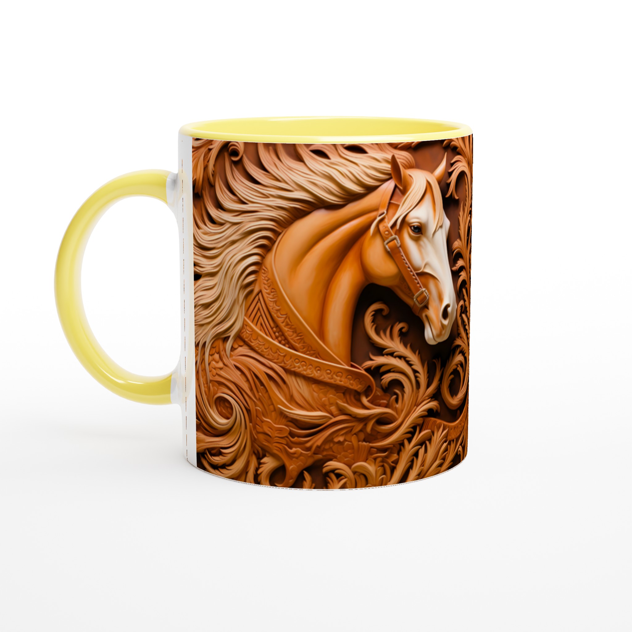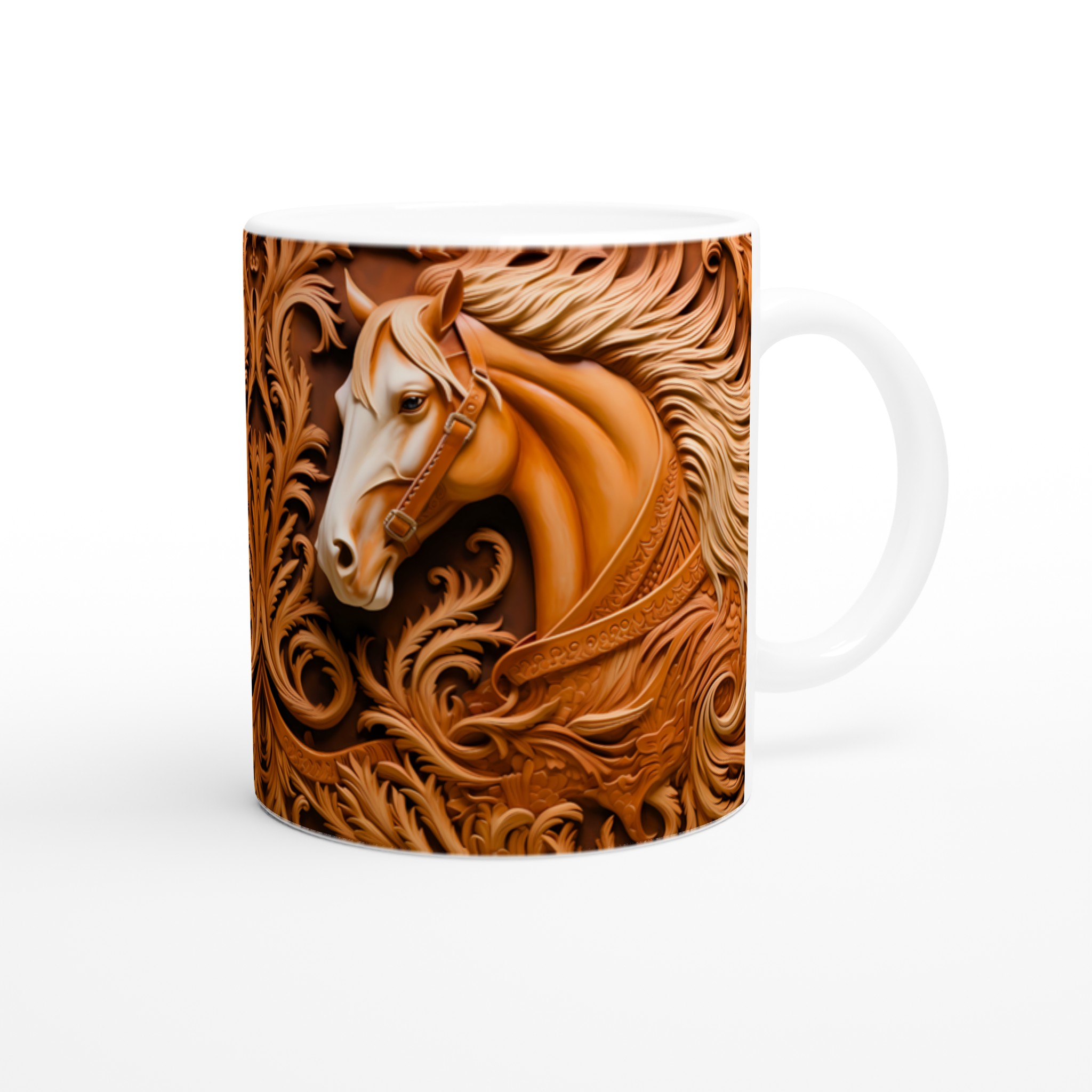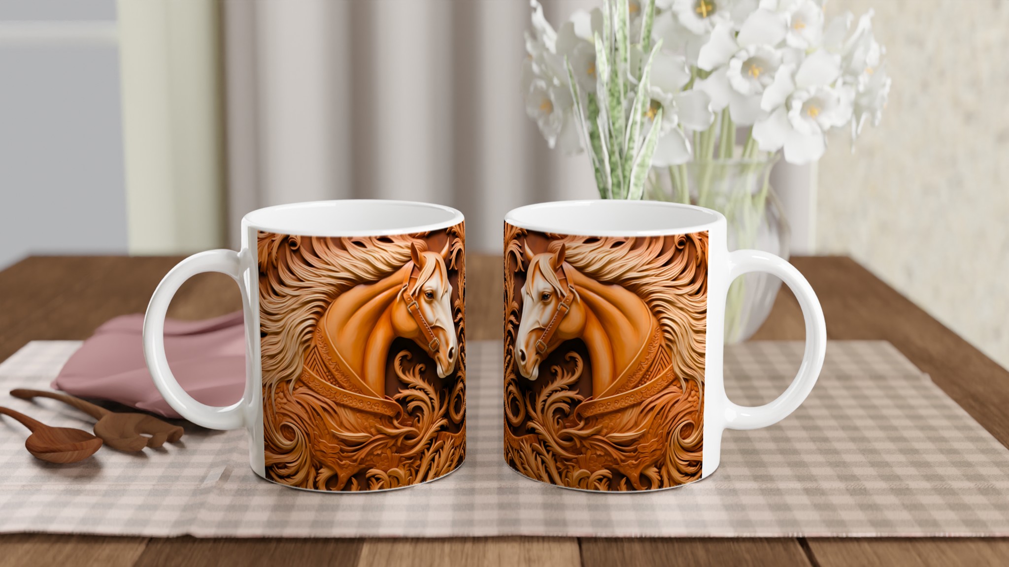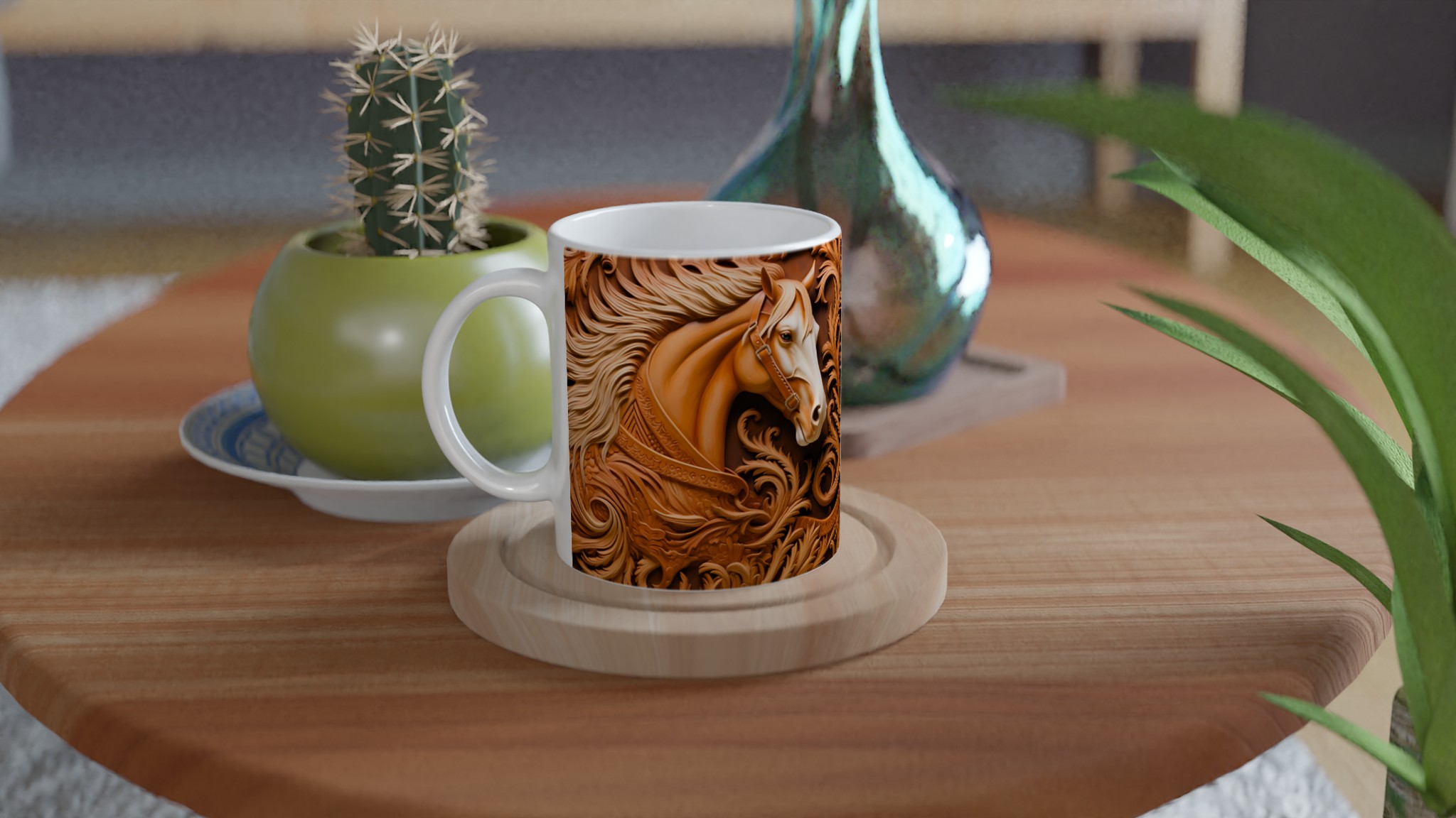 Fånga elegansen hos klassisk barockkonst med denna utsökta keramiska mugg, prydd med majestätiska hästar och intrikata snirkliga detaljer. Den rika, varma träsnittslooken ger en tidlös och sofistikerad känsla till varje dryckesstund. Den här stilrena muggen blir snabbt en vardagsfavorit, perfekt för morgonkaffet, kvällens varma choklad eller när du bara vill njuta av en kopp te. Låt den konstnärliga designen inspirera dig och förhöja din paus.