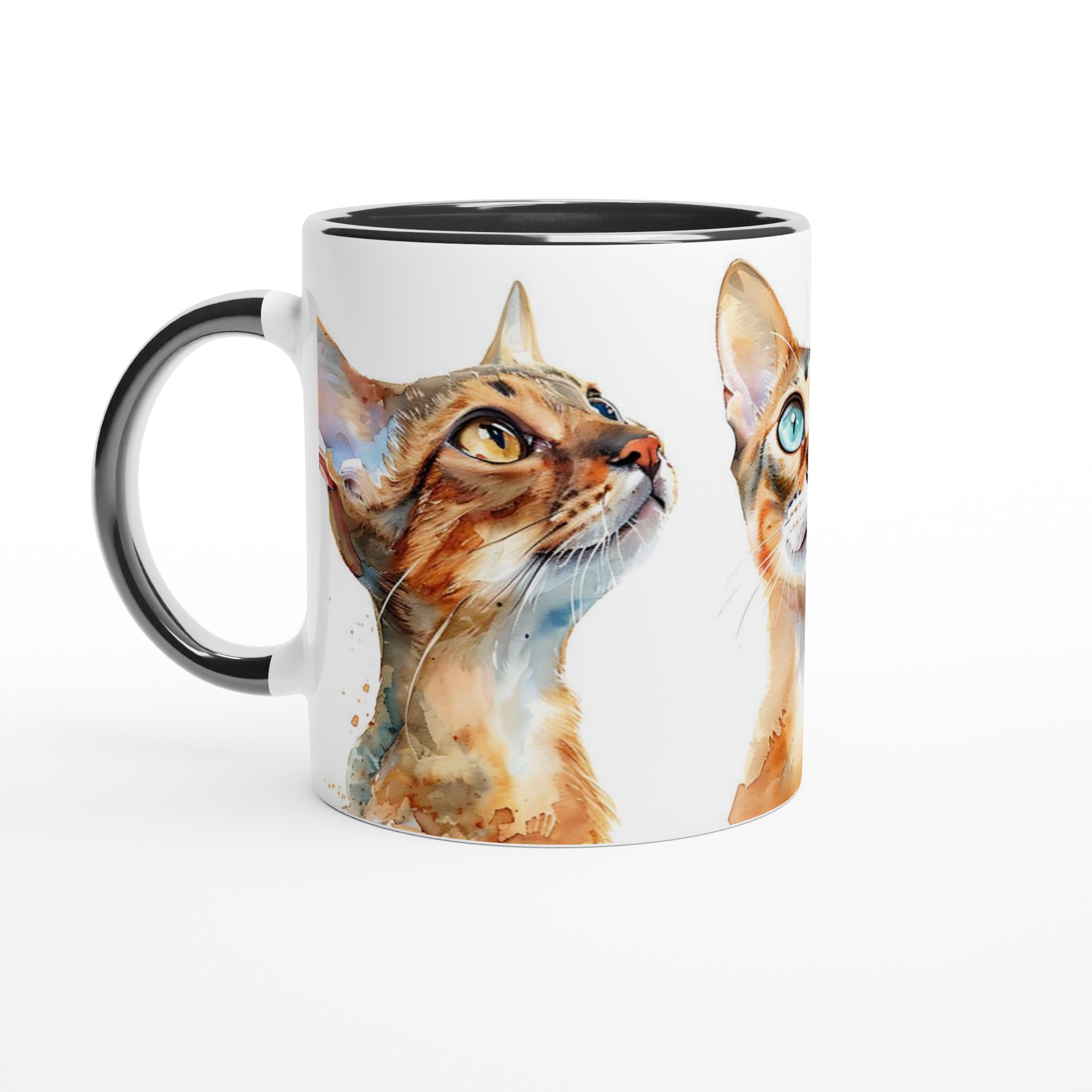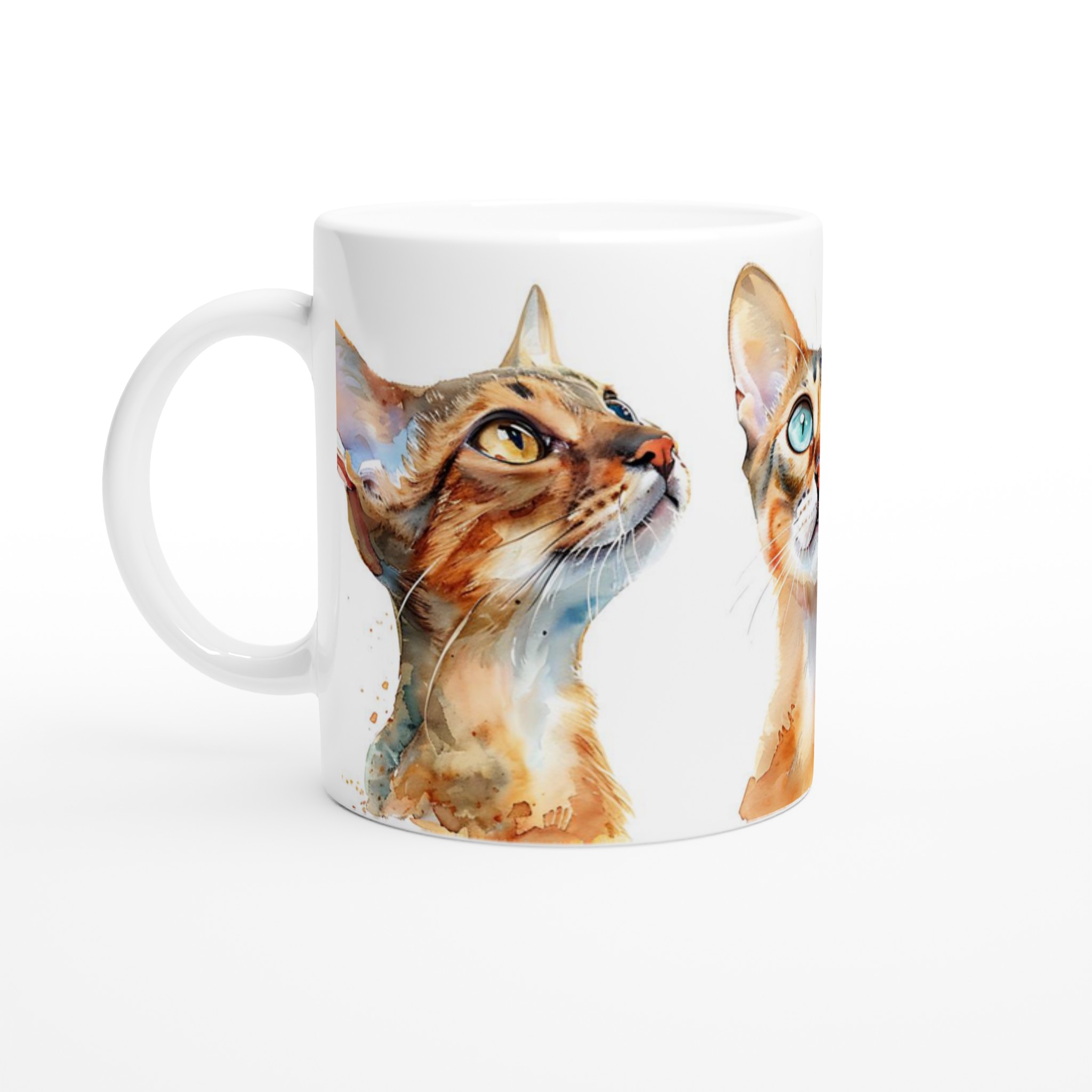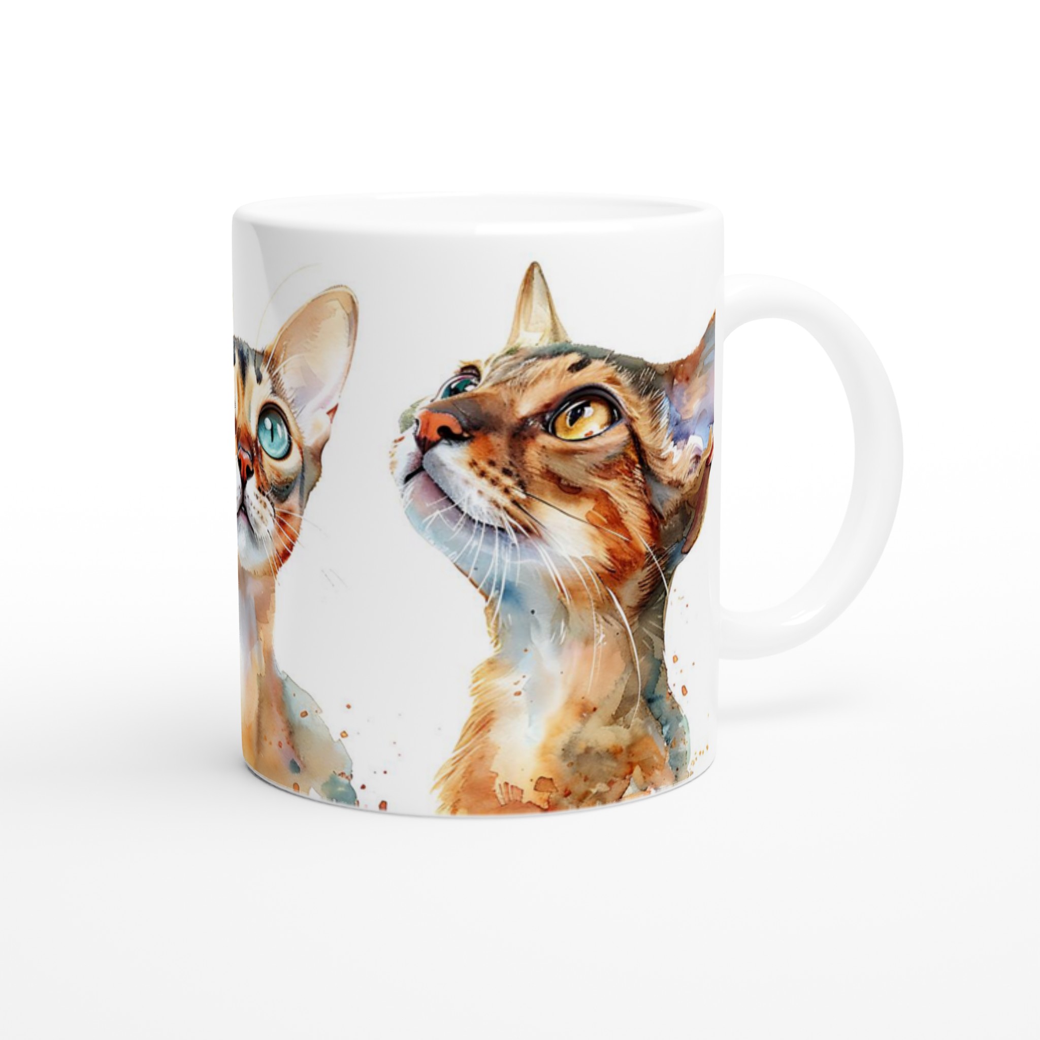 För kattälskare och te-entusiaster är denna keramiska mugg en absolut dröm! Med en förtrollande akvarellillustration av nyfikna katter, fångar den här muggen omedelbart hjärtat. De lekfulla penseldragen och de levande färgerna ger varje kattpersonlighet, redo att inspirera dig med varje sipp. Oavsett om du föredrar det lugna i en gulögd bengal eller det lekfulla i en blåögd siames, finns det en katt för varje humör.