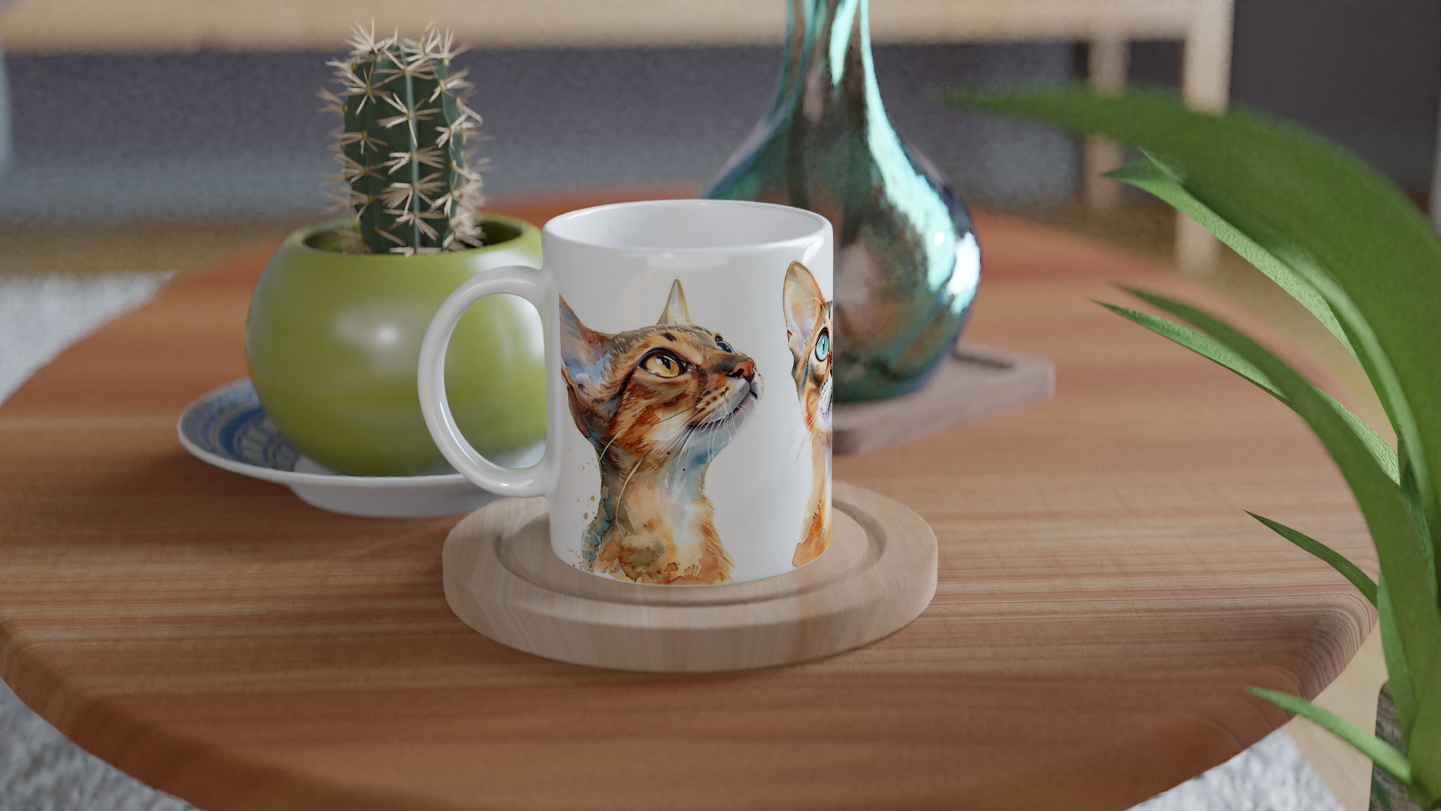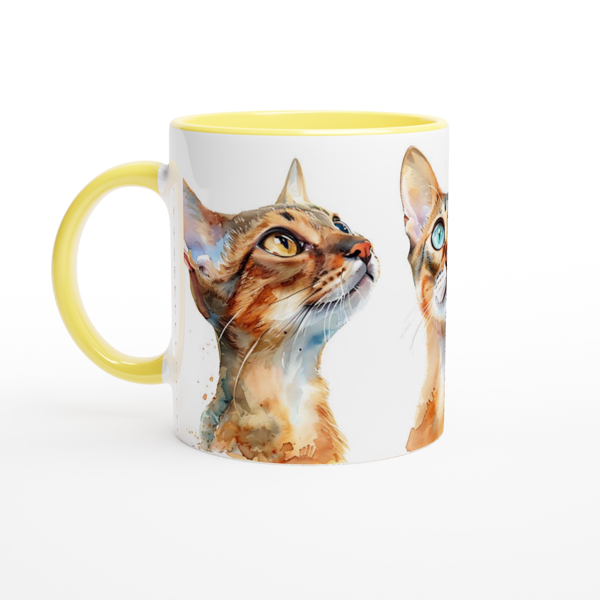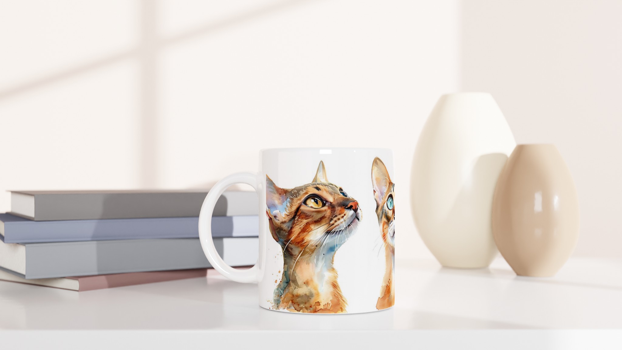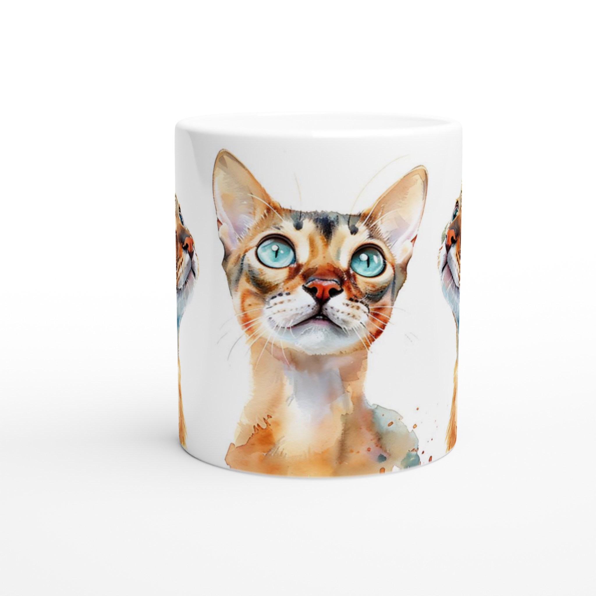 För kattälskare och te-entusiaster är denna keramiska mugg en absolut dröm! Med en förtrollande akvarellillustration av nyfikna katter, fångar den här muggen omedelbart hjärtat. De lekfulla penseldragen och de levande färgerna ger varje kattpersonlighet, redo att inspirera dig med varje sipp. Oavsett om du föredrar det lugna i en gulögd bengal eller det lekfulla i en blåögd siames, finns det en katt för varje humör.