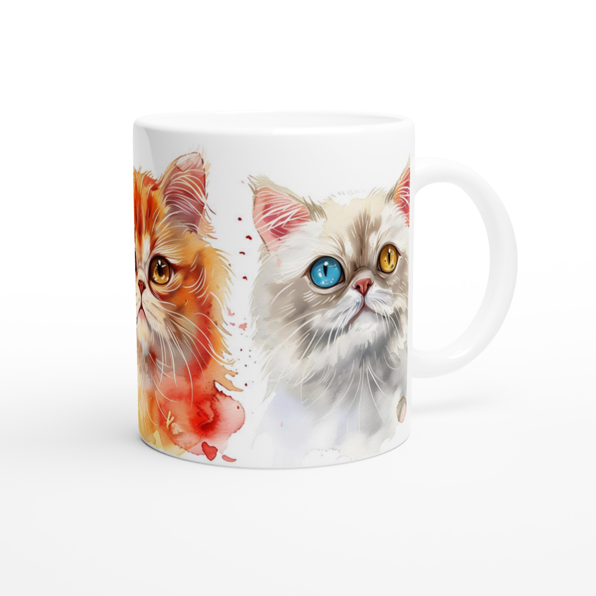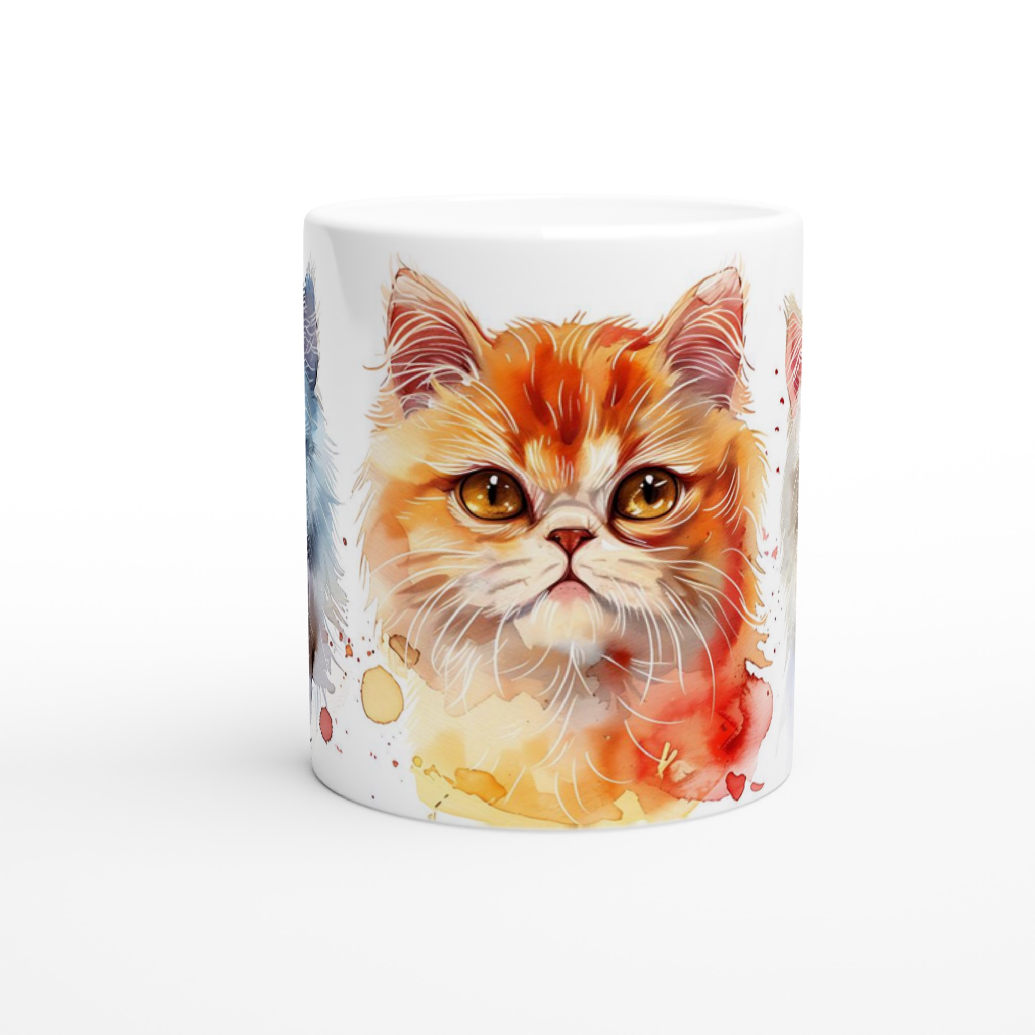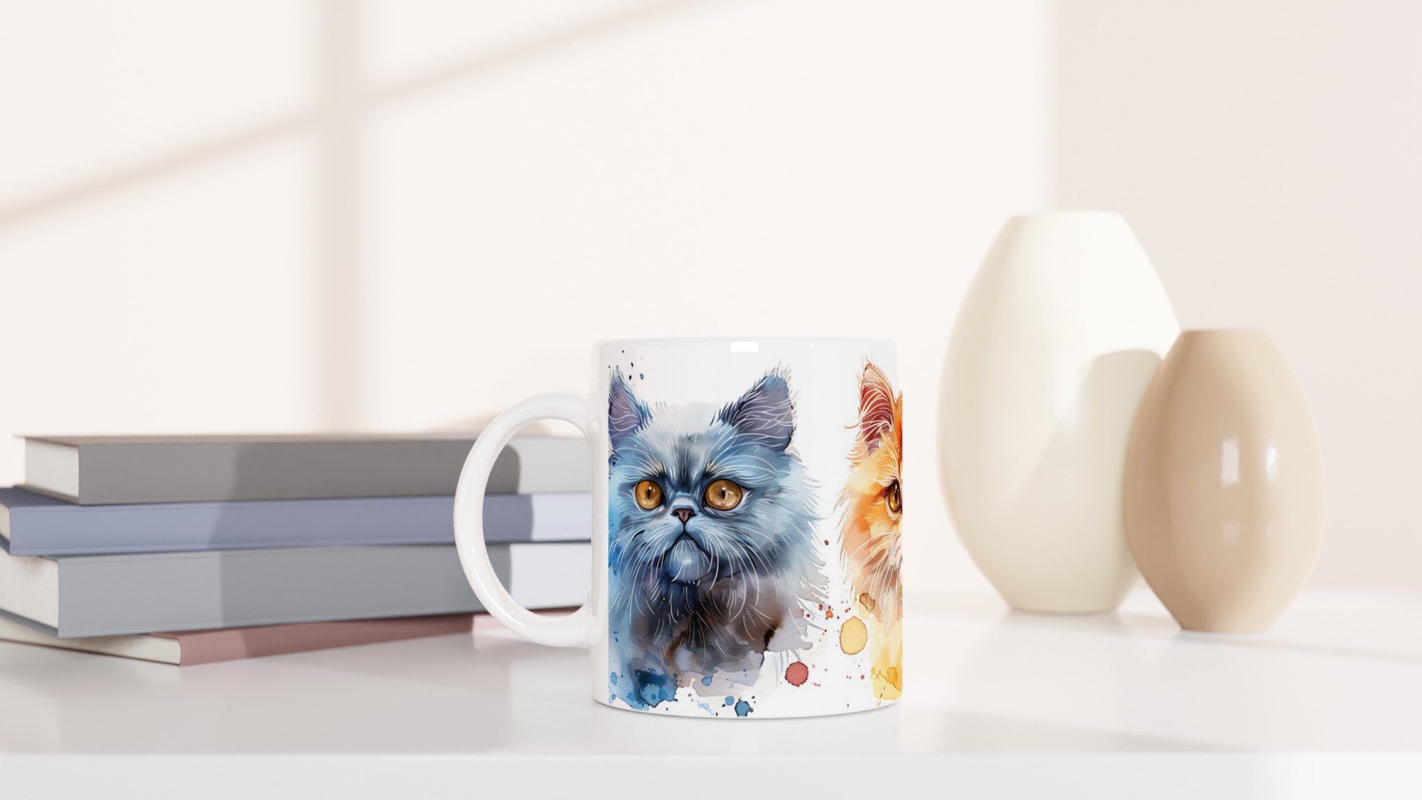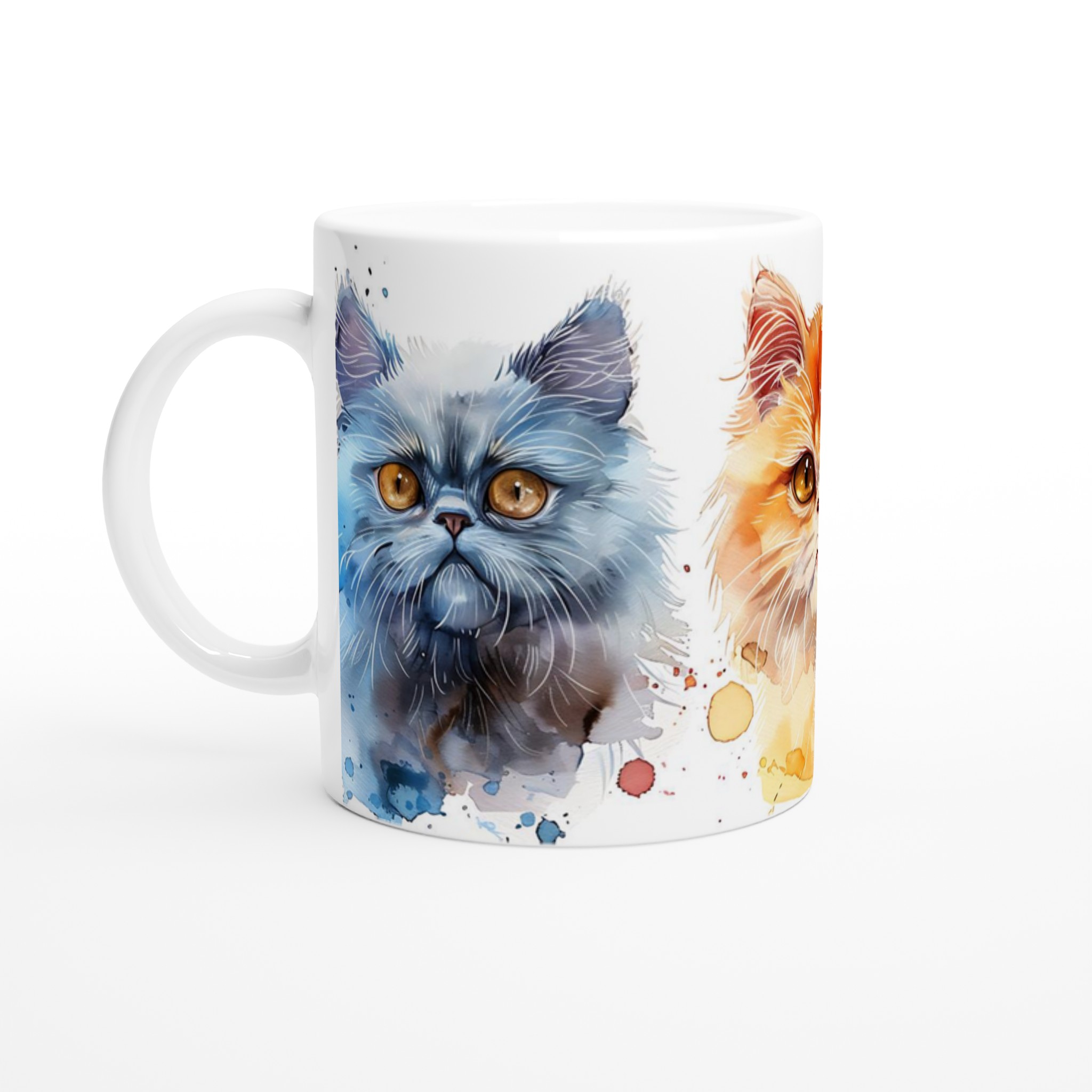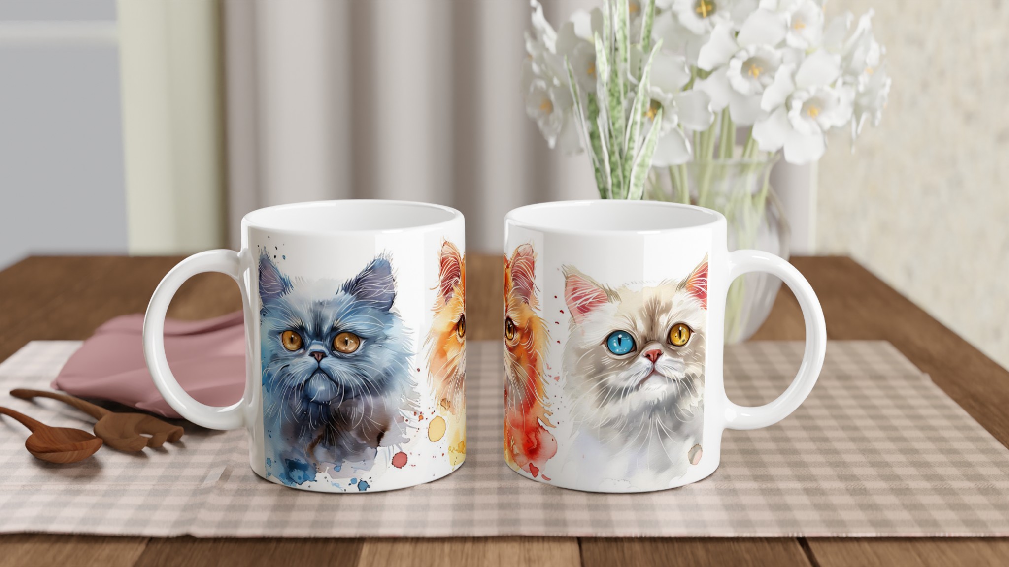 Låt dig förtrollas av dessa charmiga akvarellkatter varje gång du tar en klunk! Denna stilrena keramiska mugg blir snabbt en vardagsfavorit, perfekt för morgonkaffet, kvällens varma choklad eller när du bara vill njuta av en kopp te. De levande akvarellfärgerna och de uttrycksfulla kattporträtten framhävs vackert mot den blanka ytan och behåller sin lyster även efter otaliga turer i mikron och diskmaskinen.