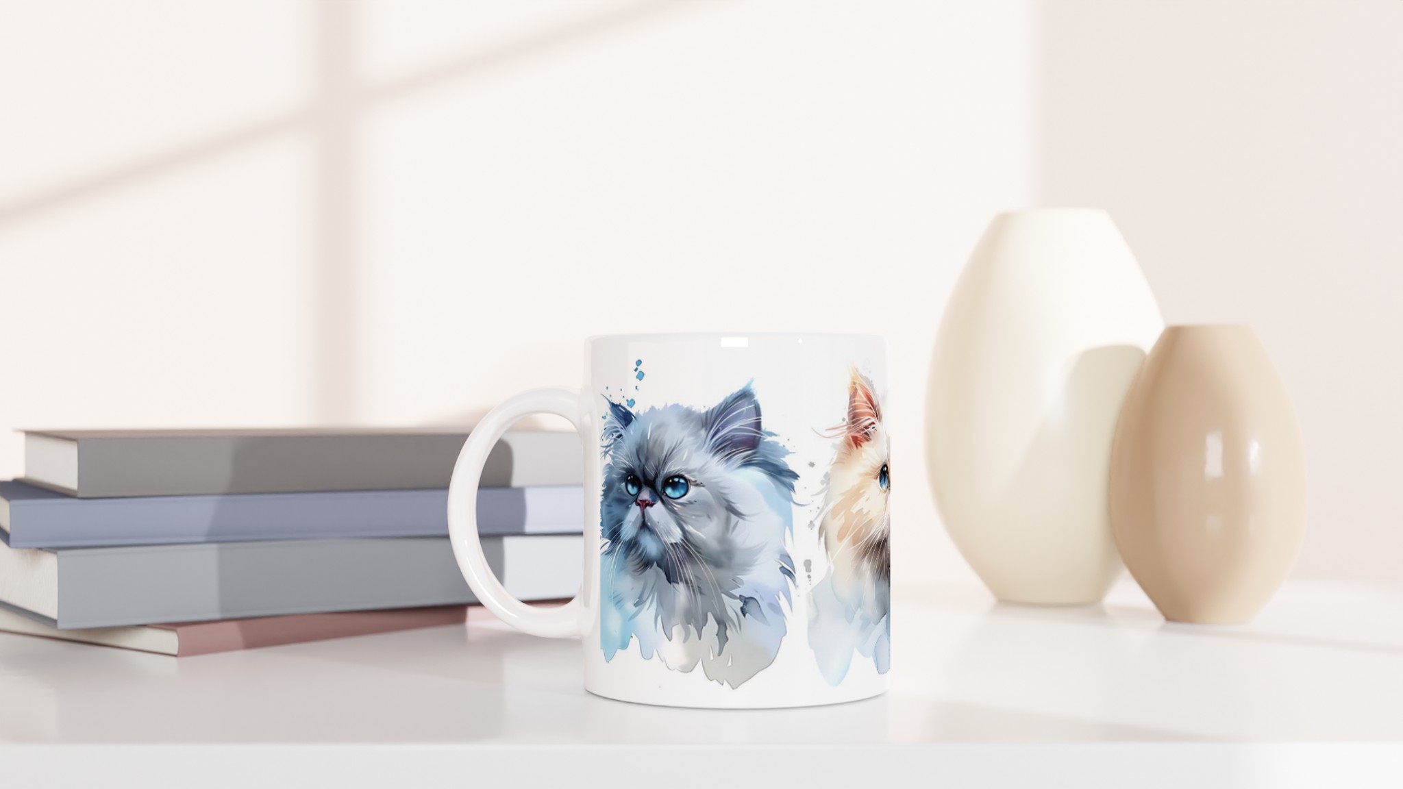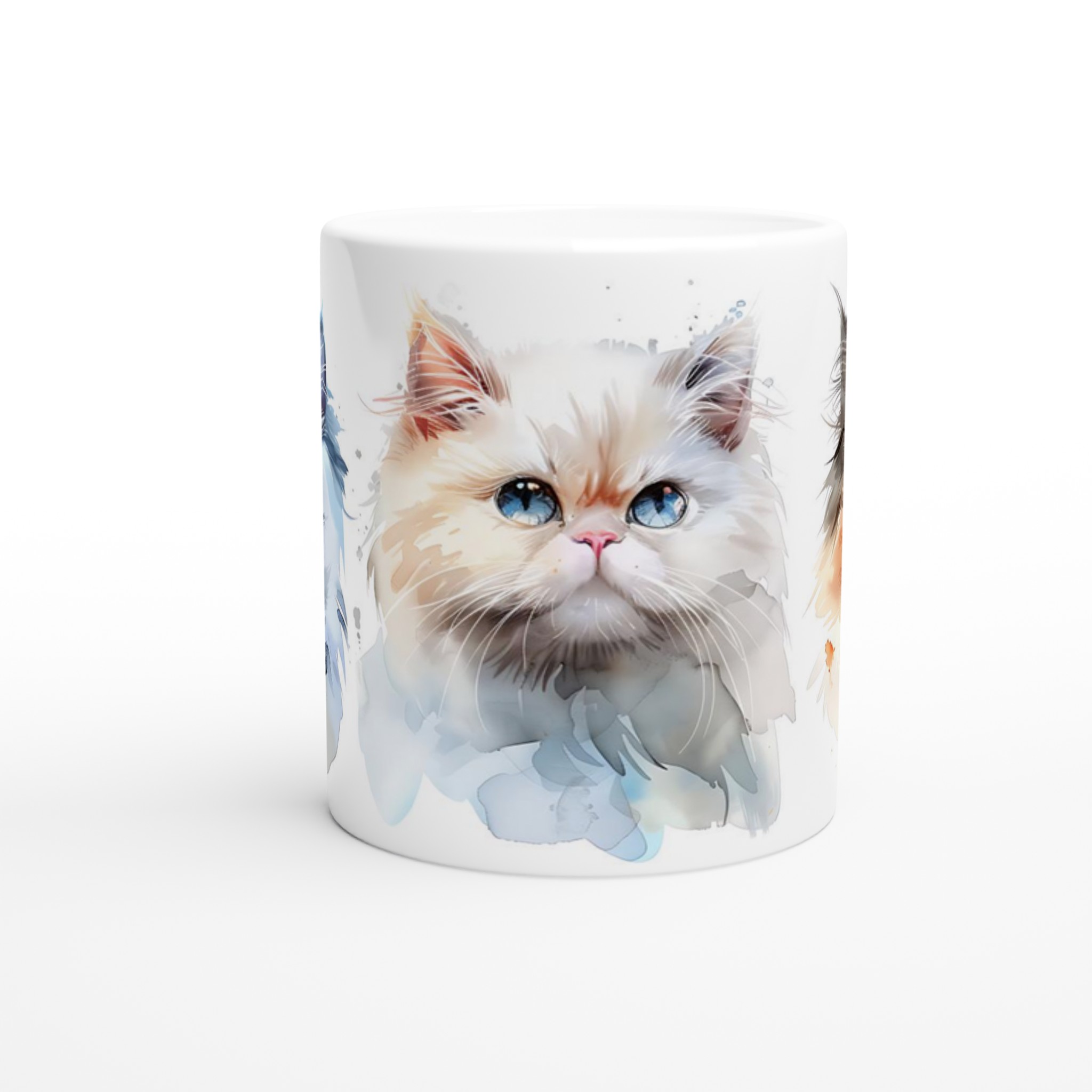 Förvandla din fikastund till en konstupplevelse med denna charmiga keramiska mugg, prydd med tre fantastiska akvarellkatter. Varje katt är unikt designad med mjuka, flytande penseldrag och levande färger som fångar deras personlighet. Denna mugg blir snabbt en vardagsfavorit – perfekt för morgonkaffet, kvällens varma choklad eller när du bara vill njuta av en kopp te i sällskap av dina nya lurviga vänner.