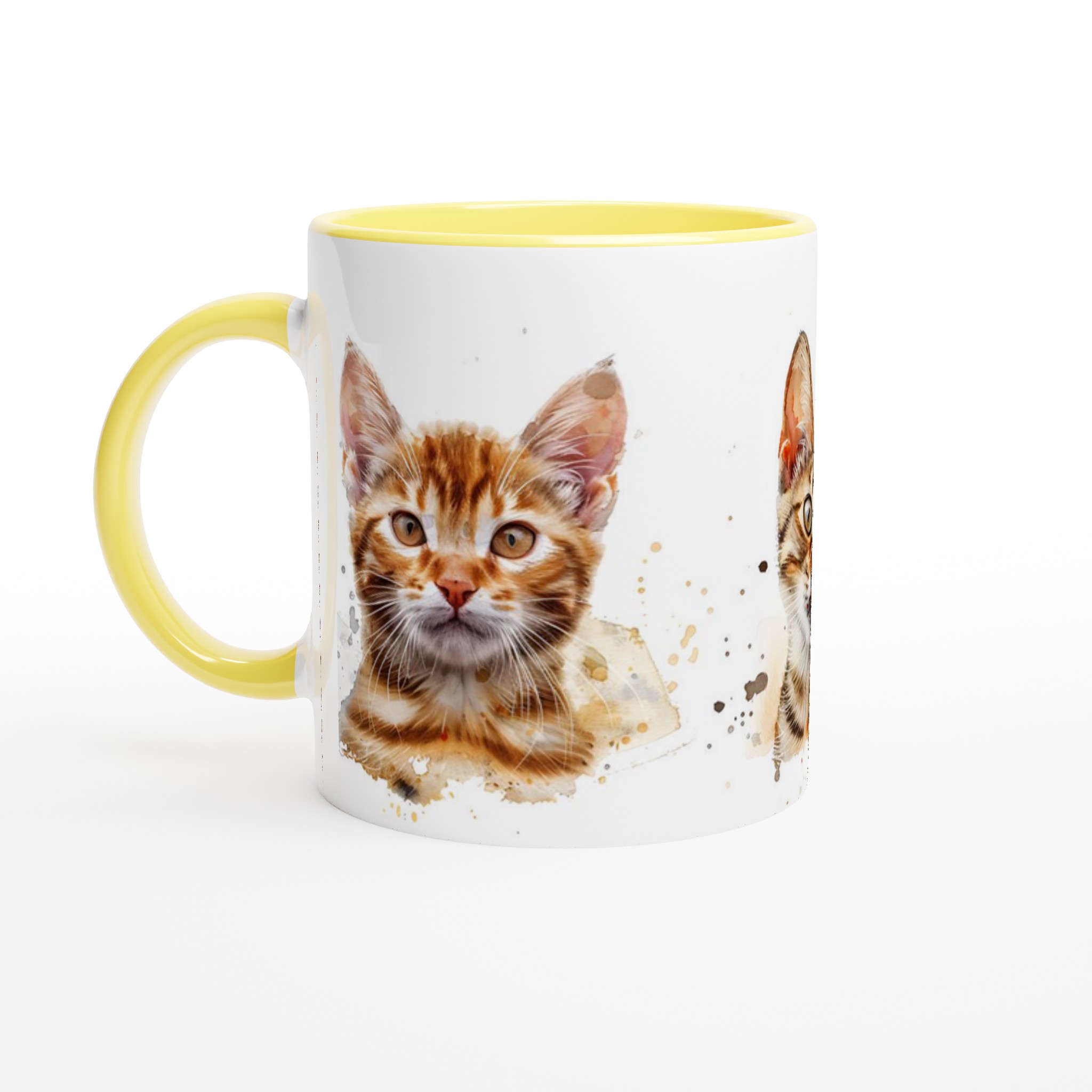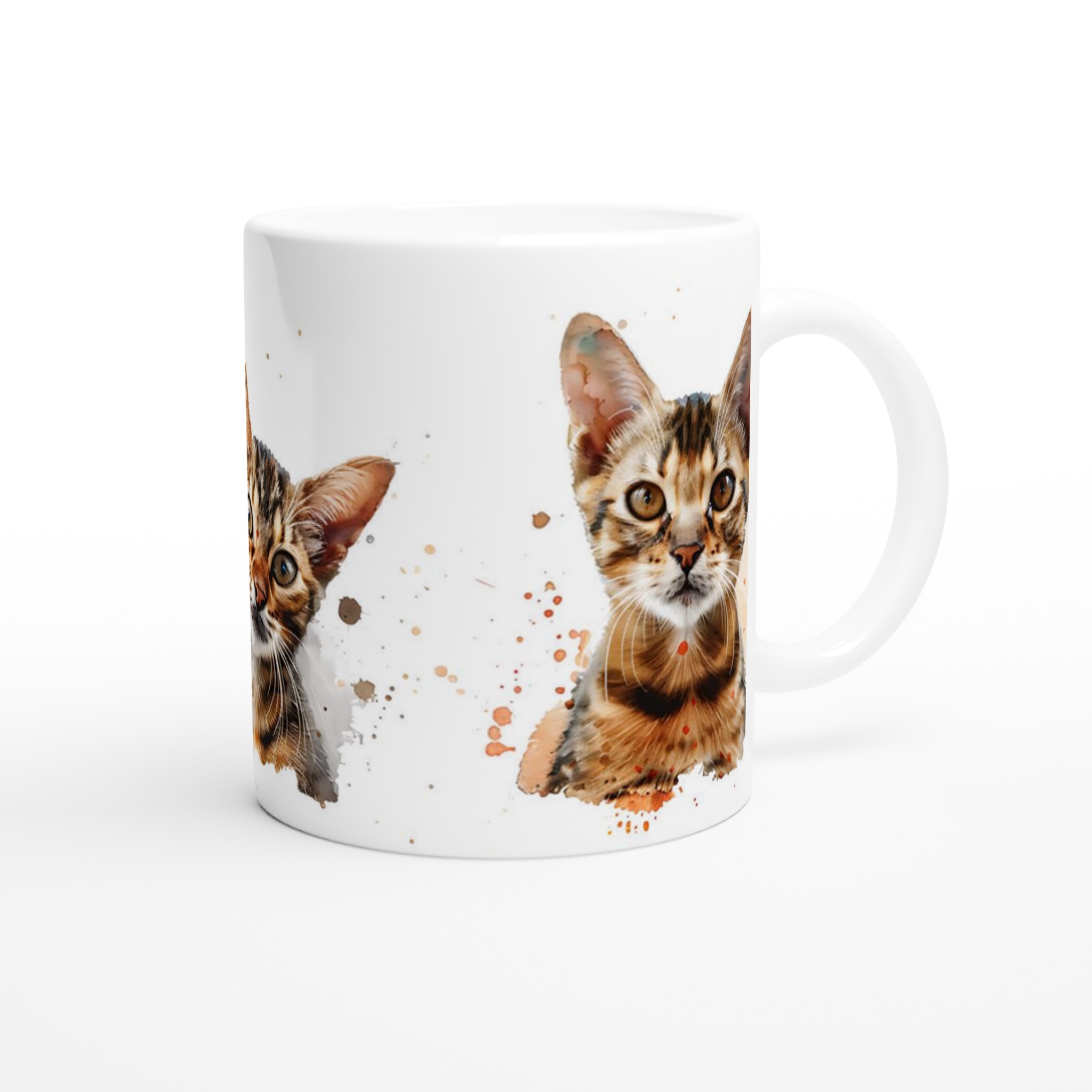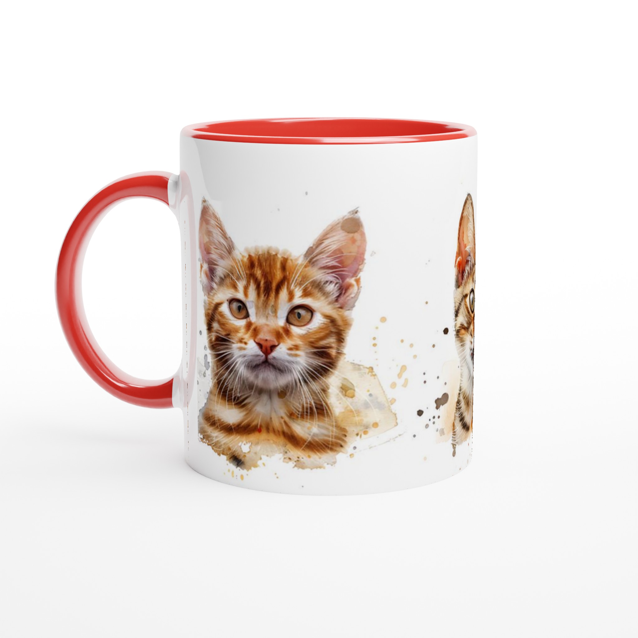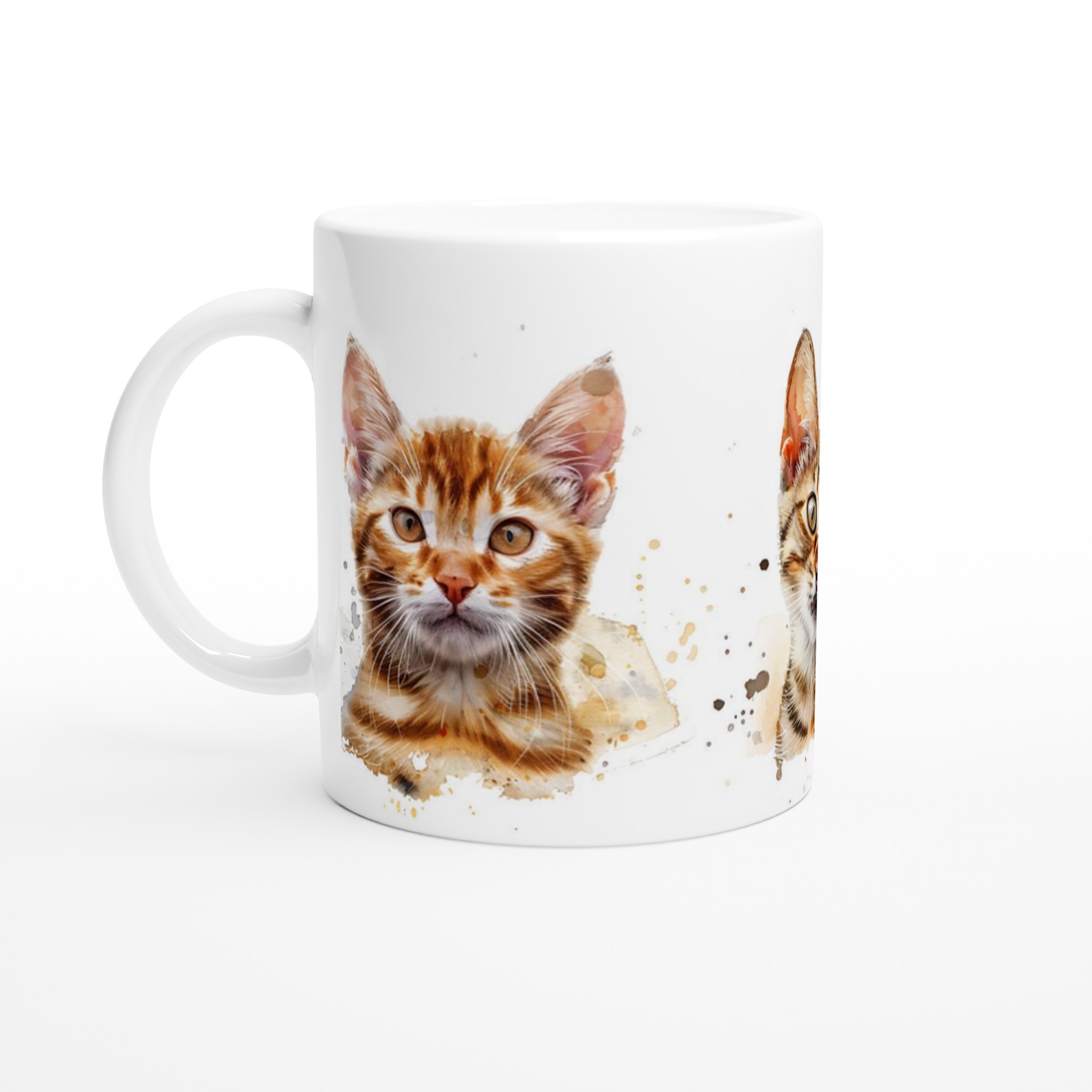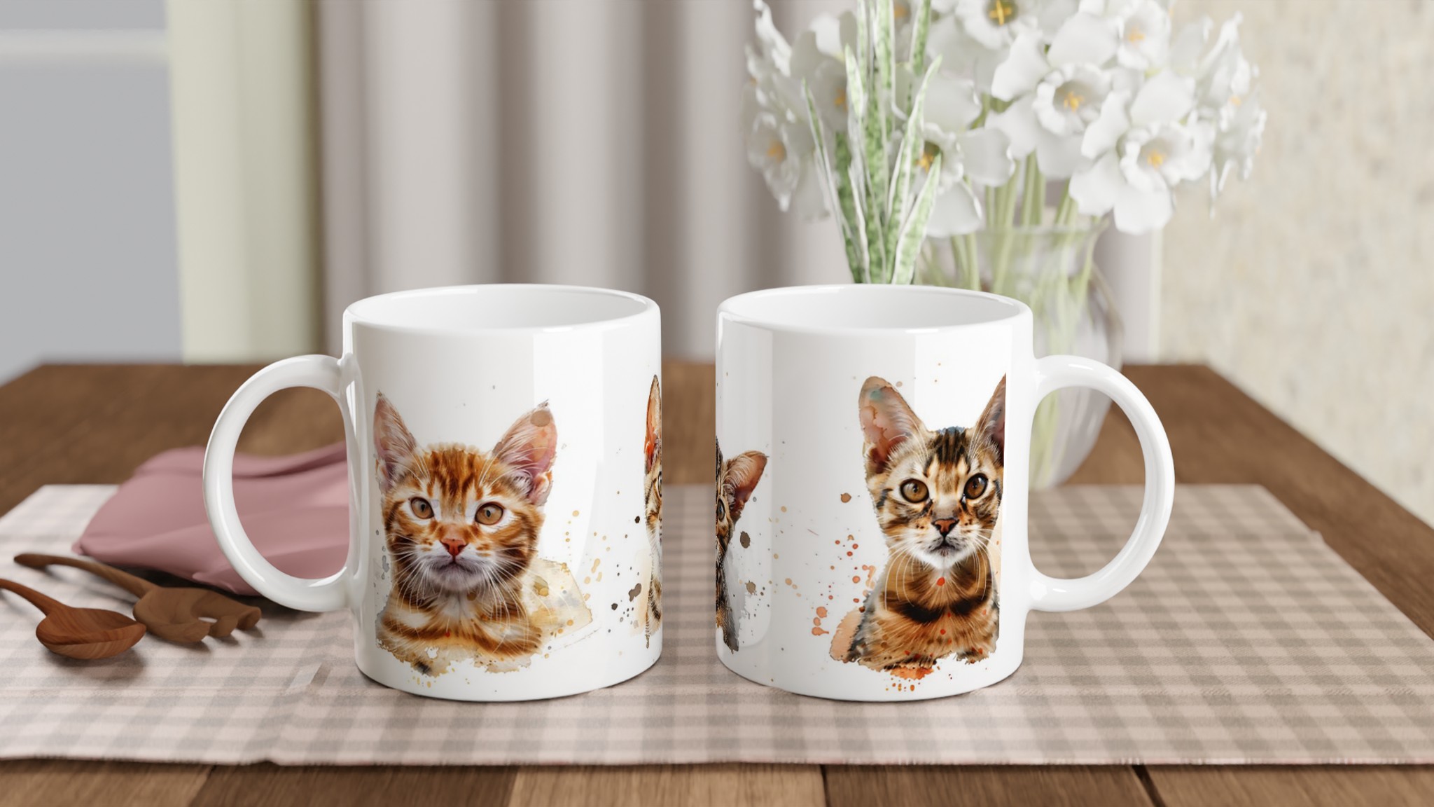 Förgyll din dag med en touch av charm och konst. Denna keramiska mugg, prydd med förtrollande vattenfärgsporträtt av söta kattungar, är mer än bara en kopp – den är en daglig dos av glädje. Varje kattunge, med sina unika ränder och mjuka blick, fångar hjärtat med sin lekfulla och lugnande närvaro. Perfekt för morgonkaffet, kvällens varma choklad eller när du bara vill njuta av en kopp te.