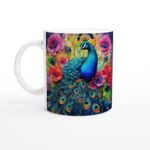 Låt din vardag blomstra med denna fantastiska keramiska mugg, prydd med ett levande och detaljerat motiv av majestätiska påfåglar omgivna av ett hav av färgglada blommor. Denna mugg blir snabbt en favorit, perfekt för att förgylla morgonkaffet, kvällens varma choklad eller en lugn stund med te.