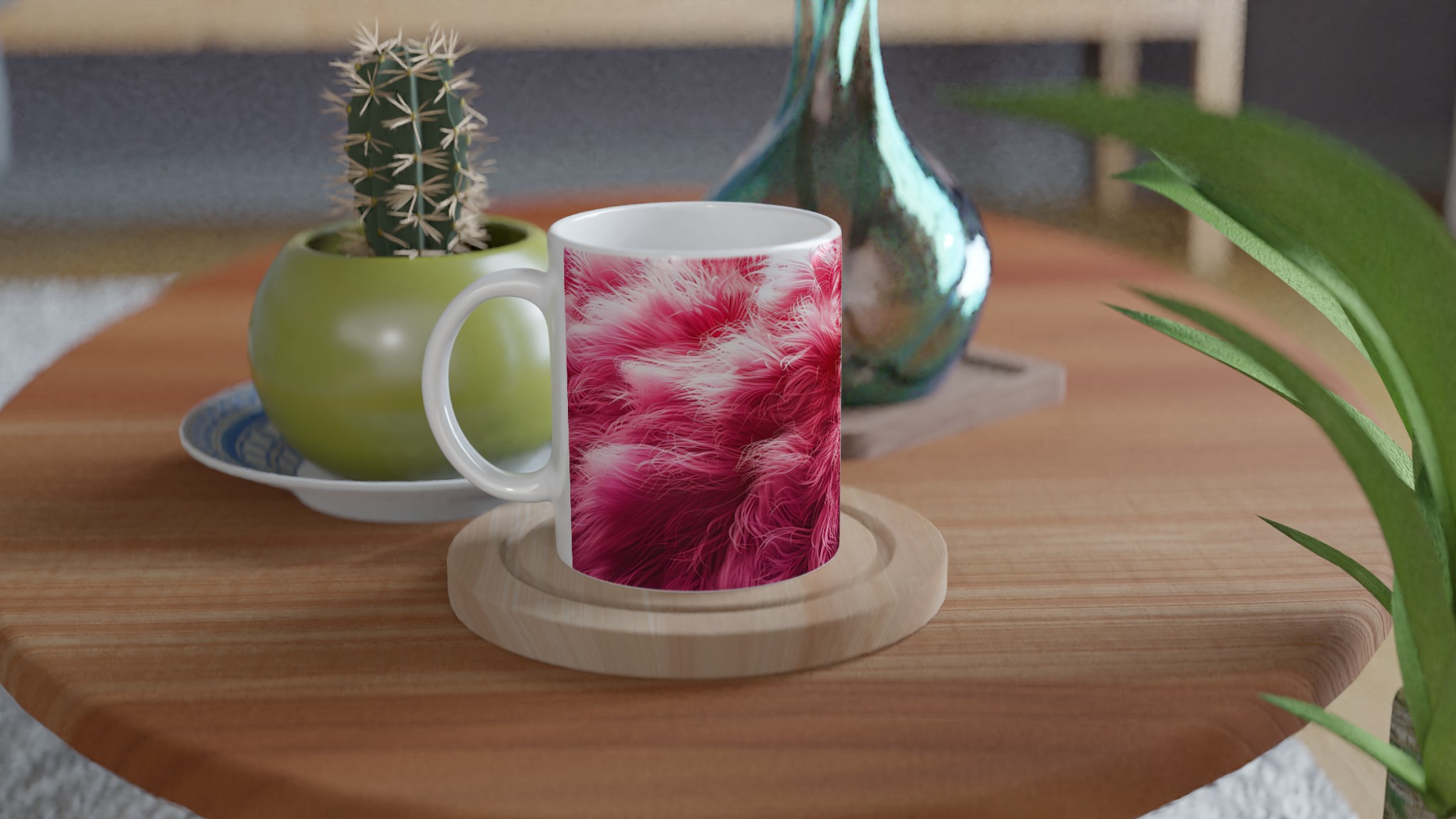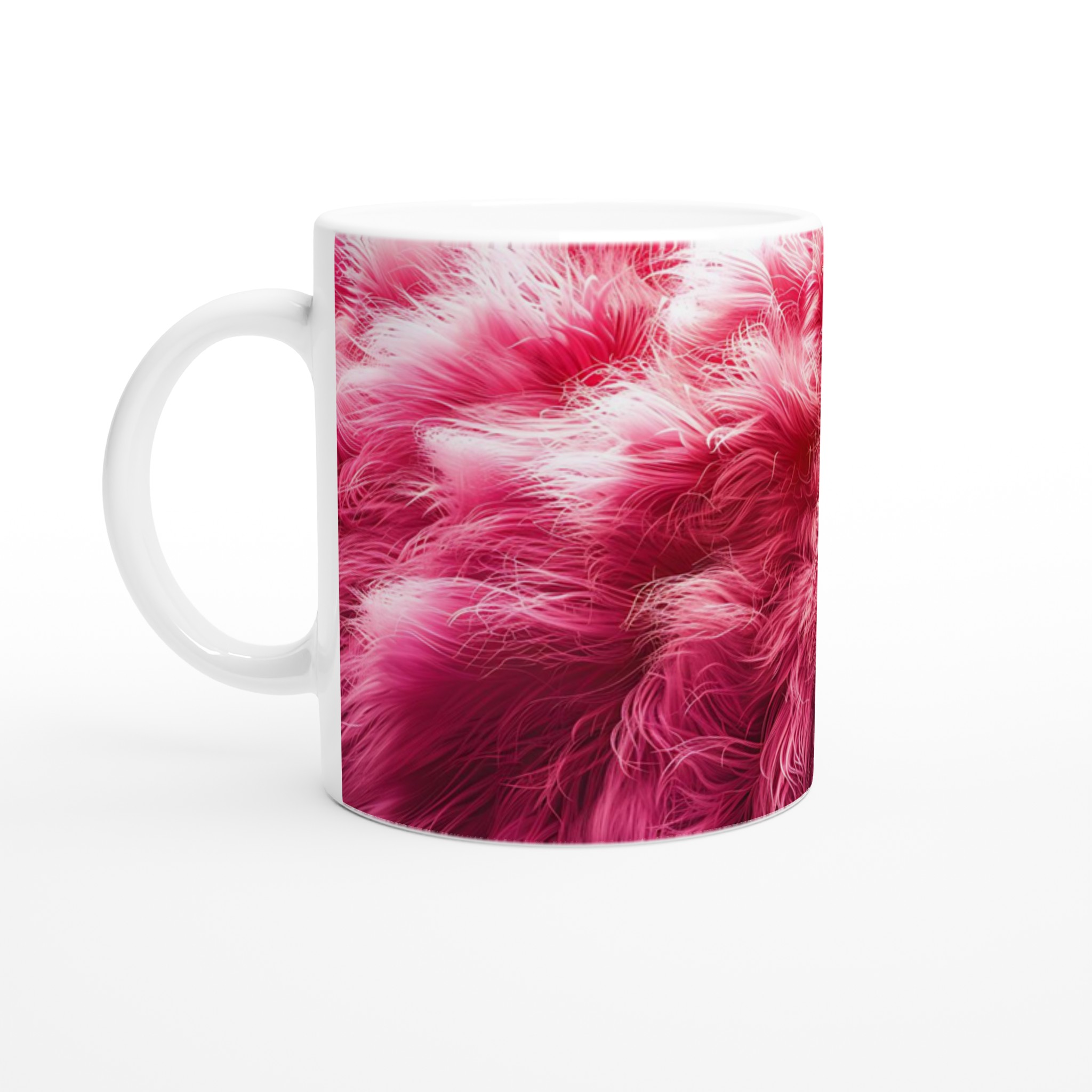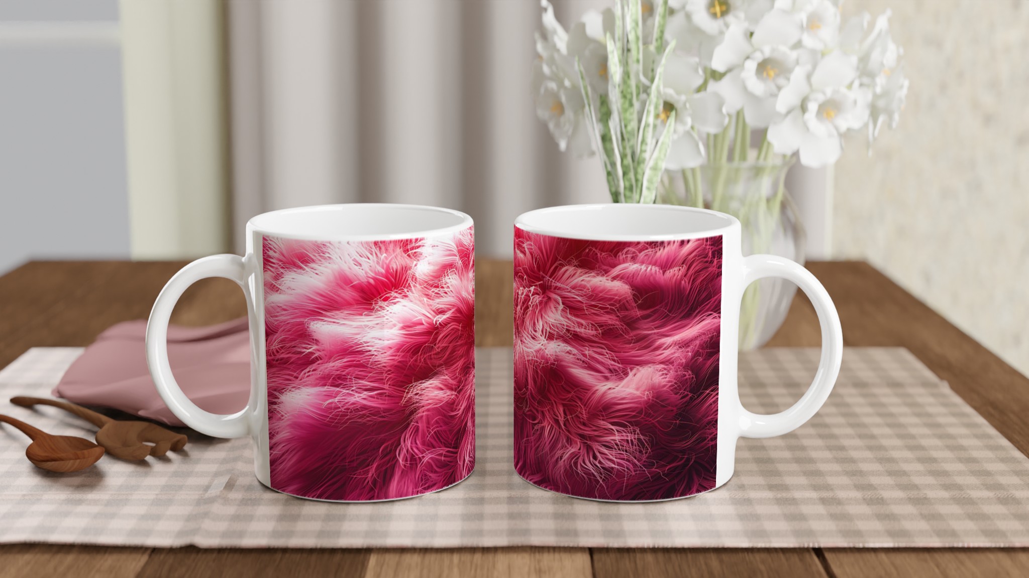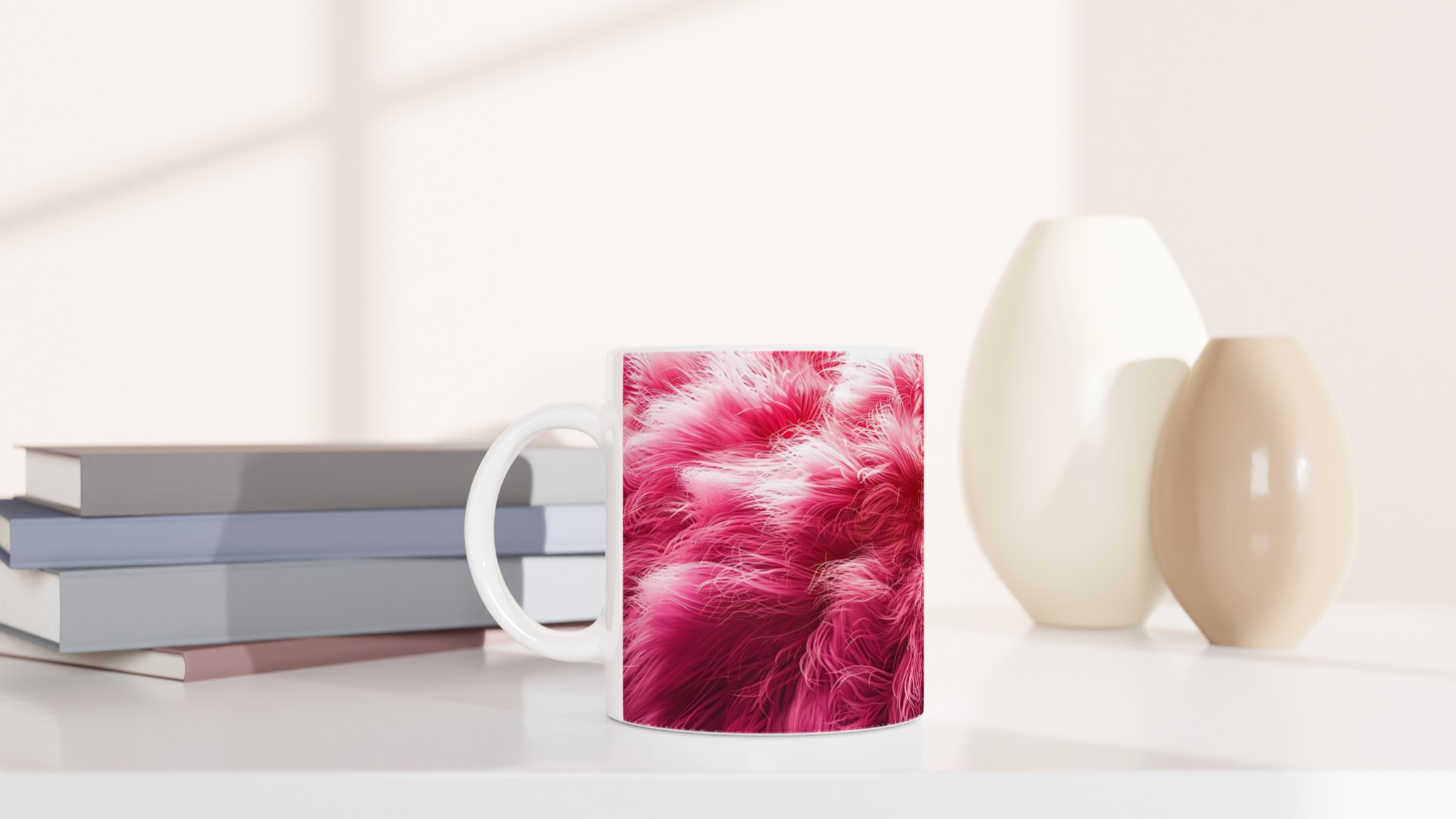 Lyft din fikastund med denna energigivande keramiska mugg, med ett dynamiskt mönster i levande magentatoner som påminner om fluffiga fjädrar eller virvlande färg. Den här stilrena muggen blir snabbt en vardagsfavorit. Perfekt för morgonkaffet, kvällens varma choklad eller när du bara vill njuta av en kopp te. Den blanka vita ytan gör att trycken framhävs med klara och levande färger, som håller sig fina även efter många turer i mikron och diskmaskinen.