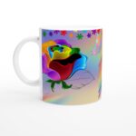 Väck liv i din vardagsrutin med denna färgsprakande keramiska mugg! Inspirerad av regnbågens alla nyanser och en känsla av lekfull glädje, blir denna mugg snabbt en favorit. Perfekt för morgonkaffet, kvällens varma choklad eller när du bara vill njuta av en kopp te – den glada designen lyser upp varje ögonblick.