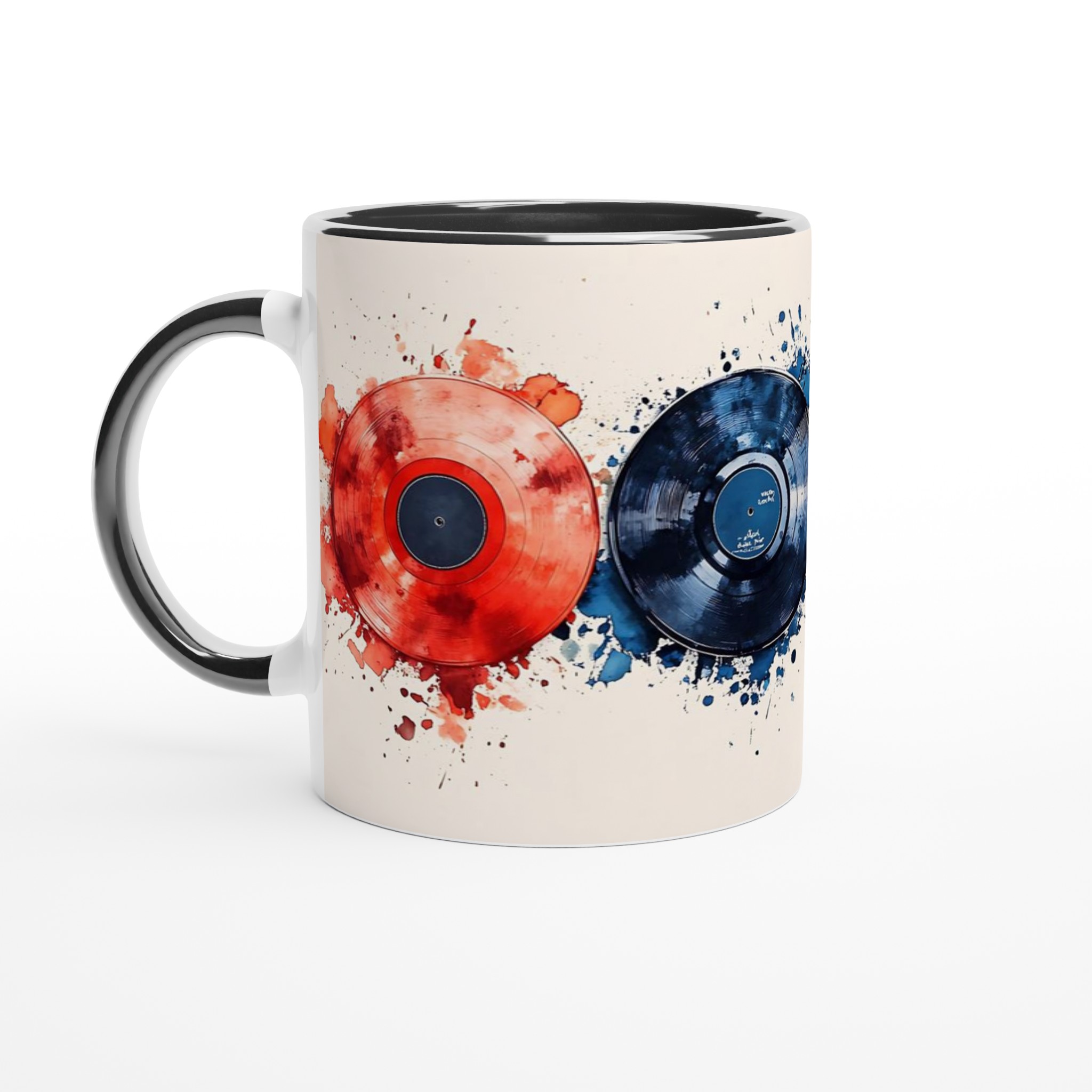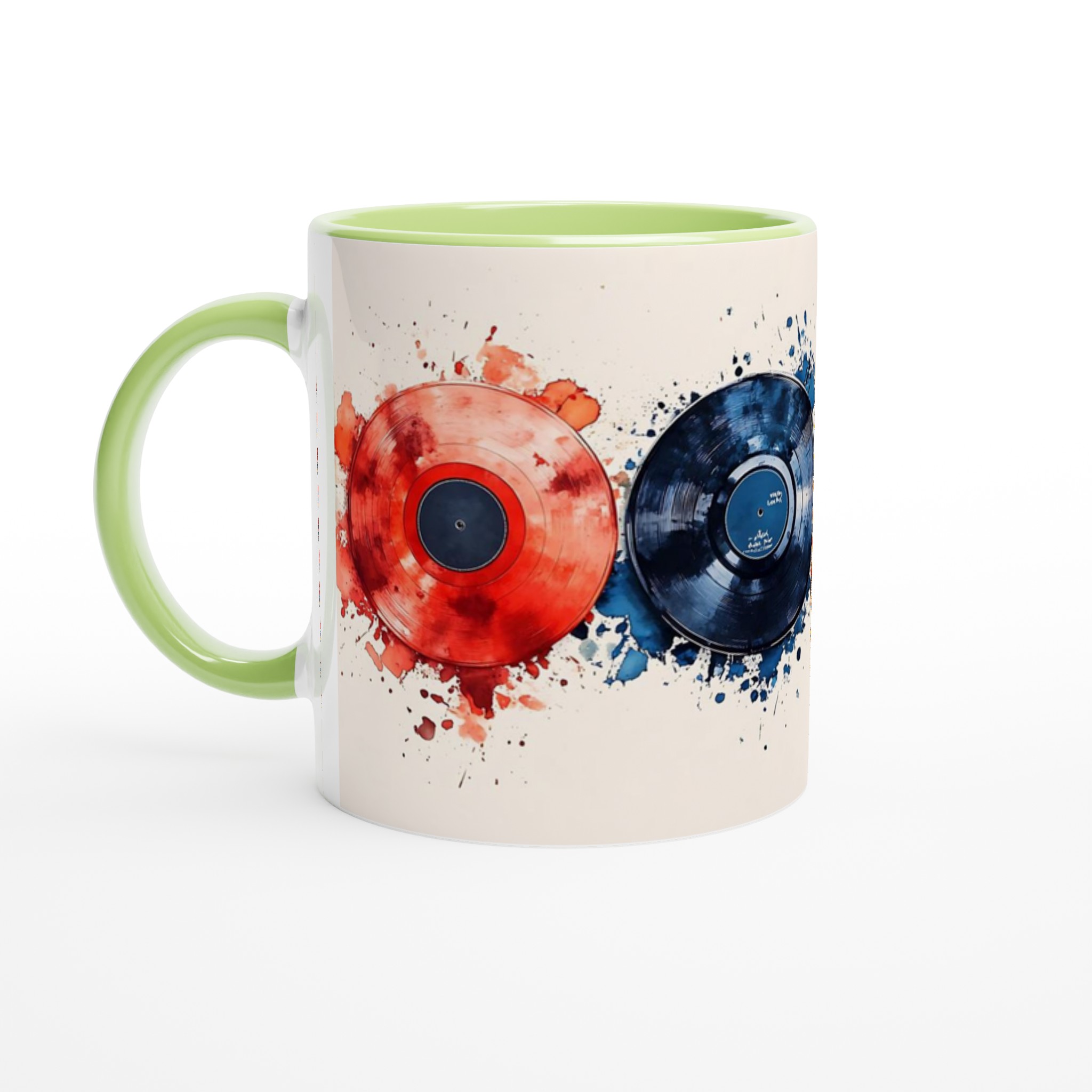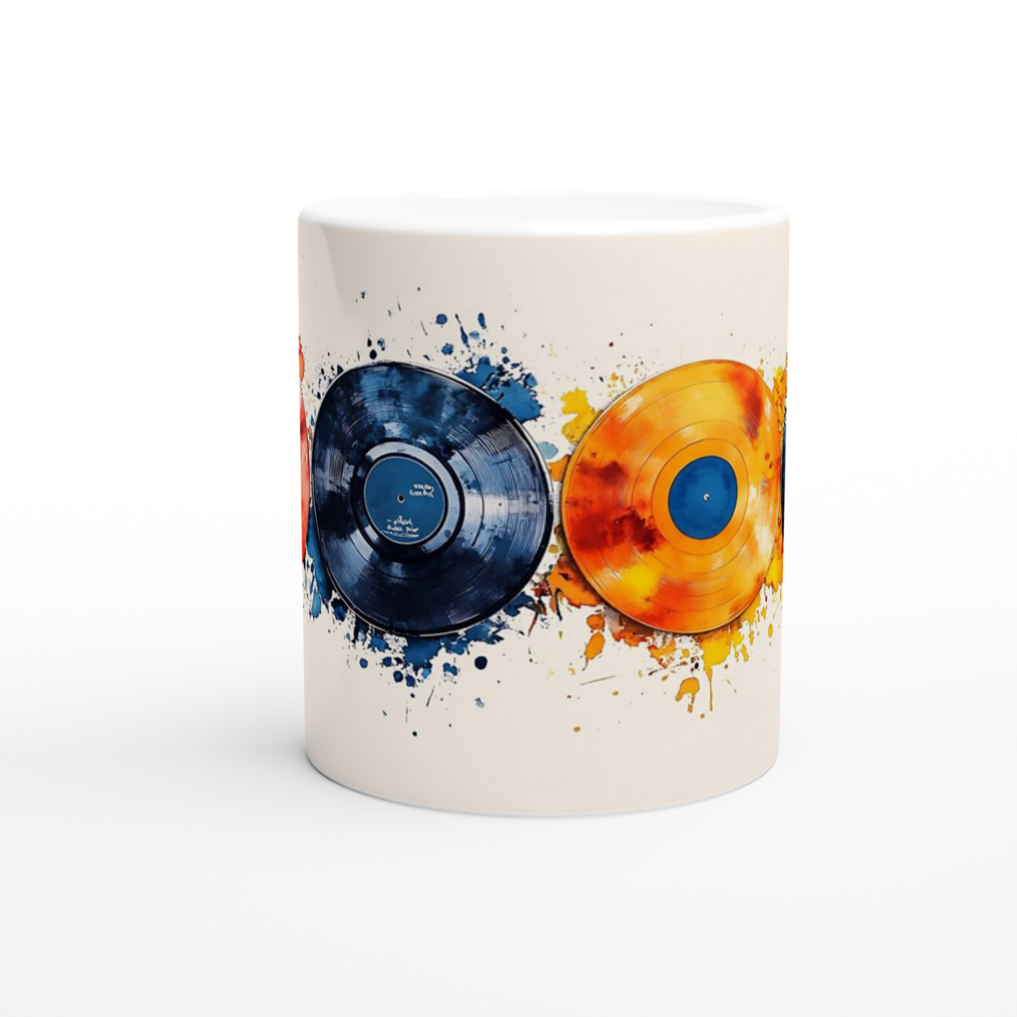 Skruva upp volymen på din morgonrutin med denna unika keramiska mugg, inspirerad av konstnärliga vinylskivor och livfulla akvareller. Varje mugg är en hyllning till musiken och konsten, perfekt för dig som älskar att starta dagen med en kreativ twist. Oavsett om du är en musikälskare eller bara uppskattar en touch av färg, blir den här muggen snabbt en vardagsfavorit. Perfekt för morgonkaffet, kvällens varma choklad eller när du bara vill njuta av en kopp te. Den blanka vita ytan gör att trycken framhävs med klara och levande färger, som håller sig fina även efter många turer i mikron och diskmaskinen.
