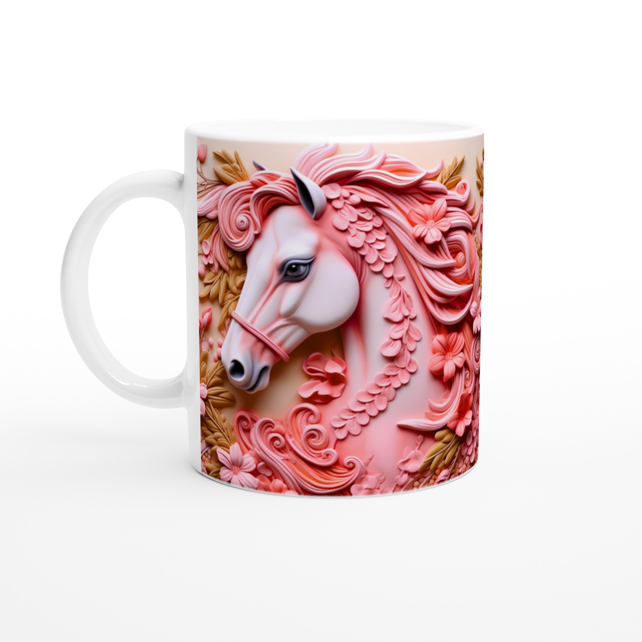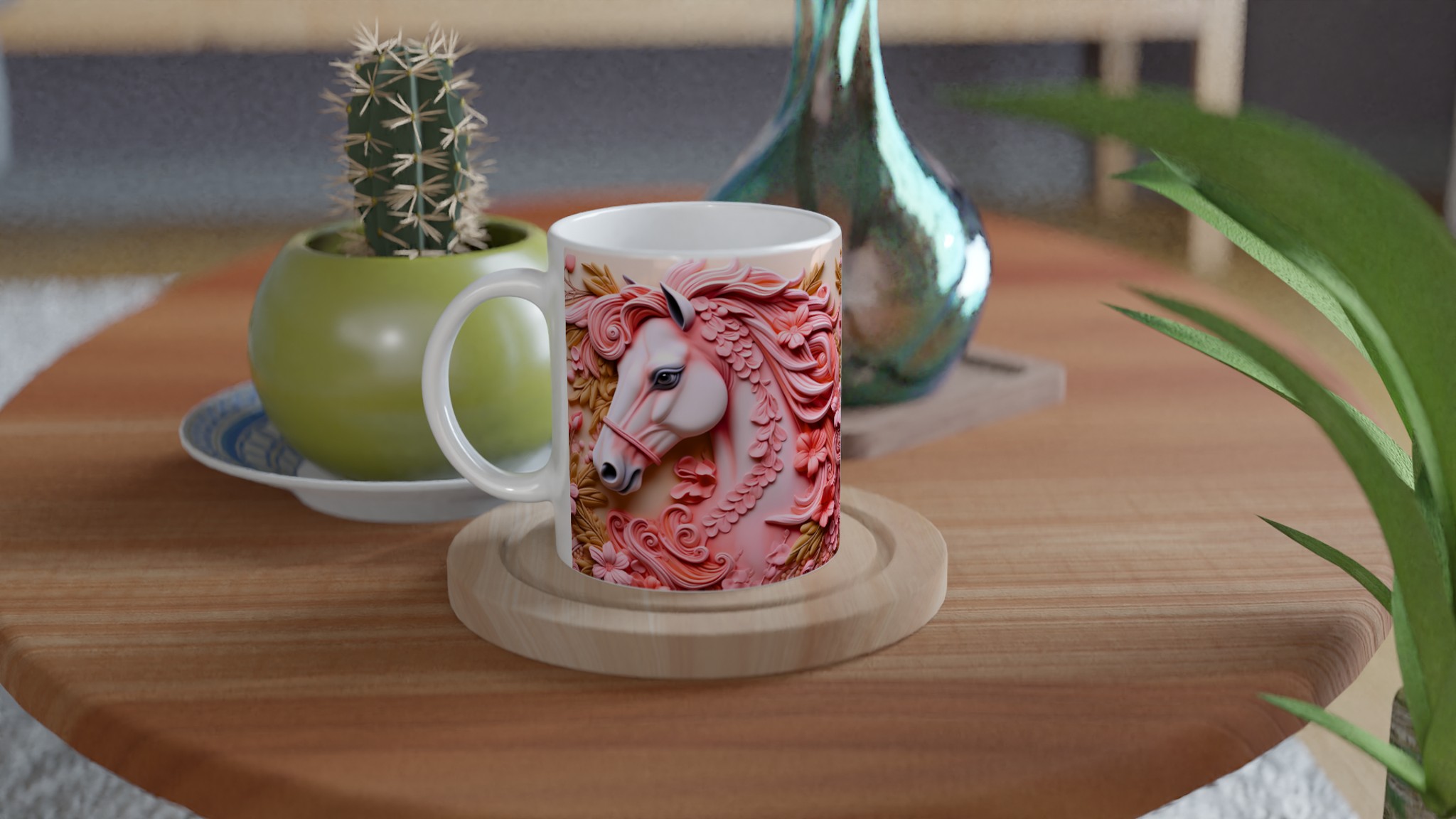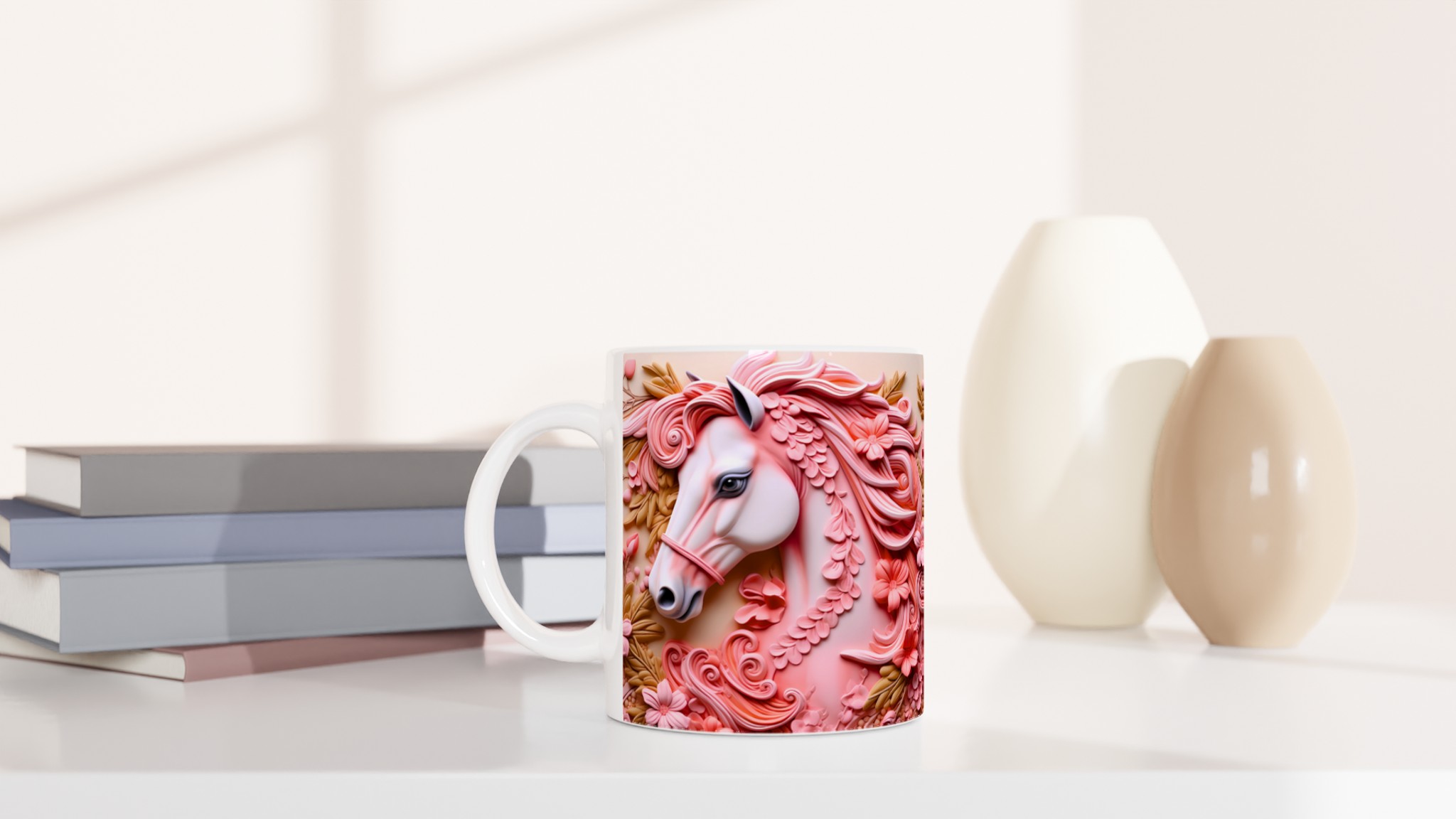 Den här stilrena keramiska muggen blir snabbt en vardagsfavorit, perfekt för att förgylla din fikastund med en touch av drömsk elegans. Den föreställer en majestätisk rosa häst omgiven av romantiska blommor i mjuka pastelltoner. Bilden ger en känsla av lugn och skönhet, där varje detalj av hästens man och de snirkliga bladen framhävs i en modern, skulptural stil. Perfekt för morgonkaffet, kvällens varma choklad eller när du bara vill njuta av en kopp te.
