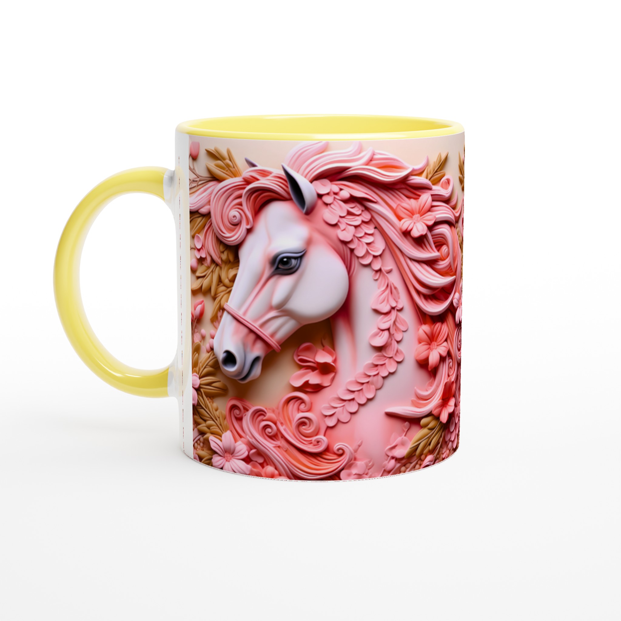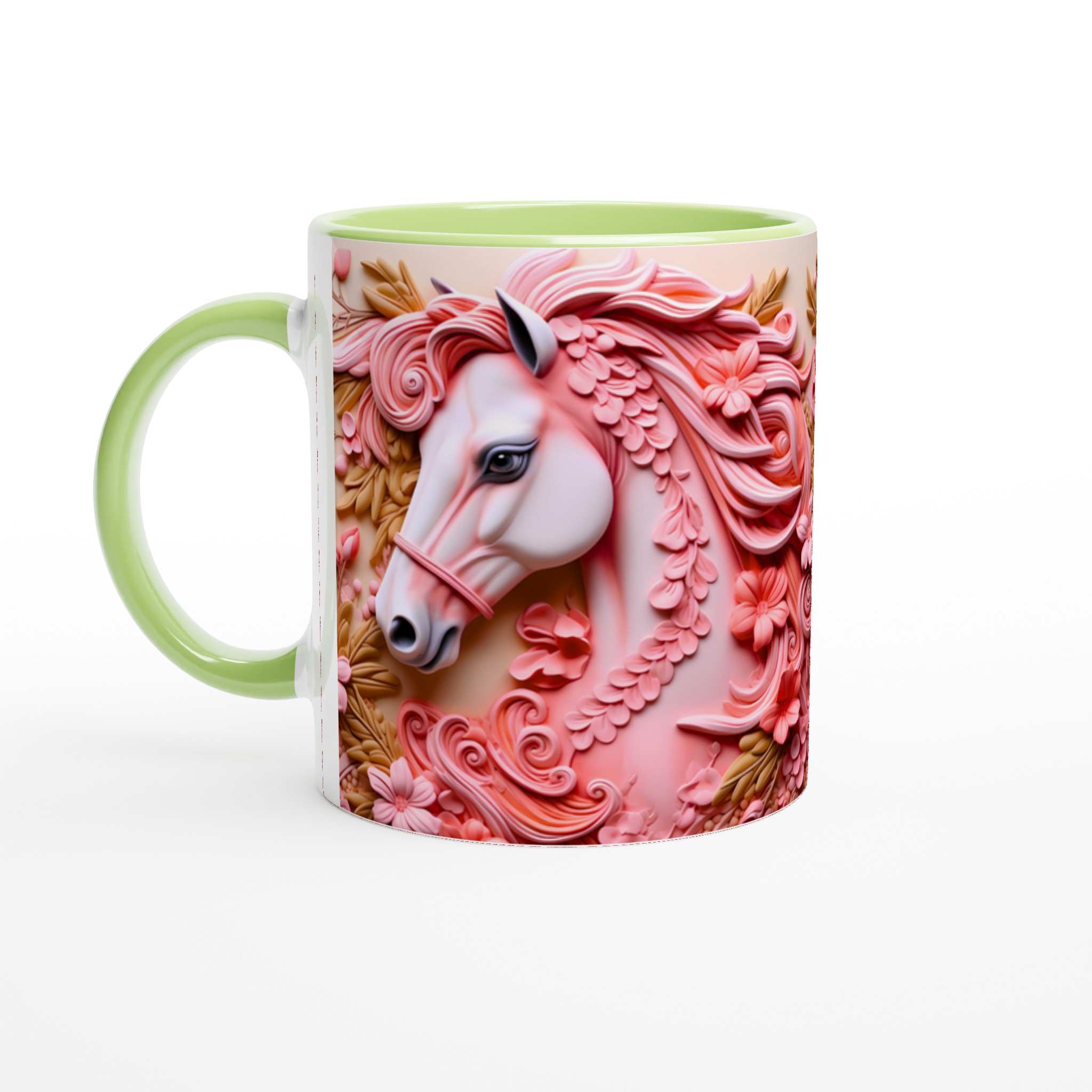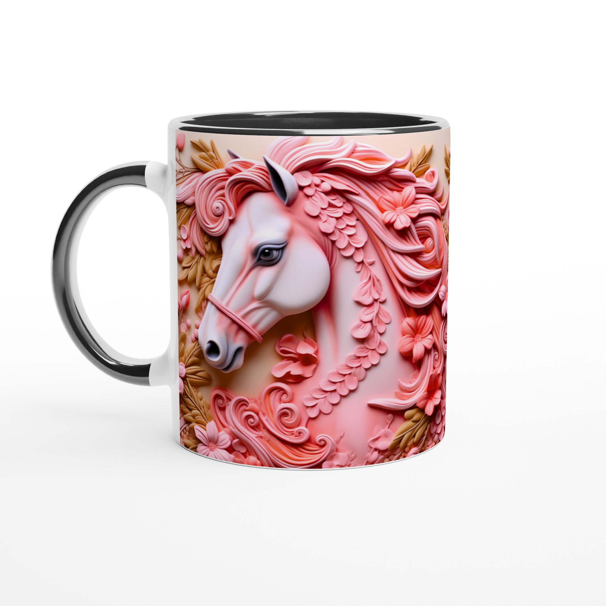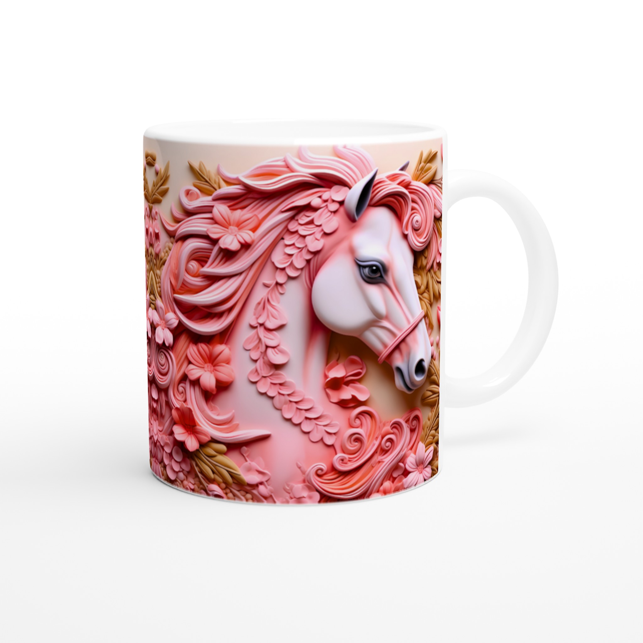 Den här stilrena keramiska muggen blir snabbt en vardagsfavorit, perfekt för att förgylla din fikastund med en touch av drömsk elegans. Den föreställer en majestätisk rosa häst omgiven av romantiska blommor i mjuka pastelltoner. Bilden ger en känsla av lugn och skönhet, där varje detalj av hästens man och de snirkliga bladen framhävs i en modern, skulptural stil. Perfekt för morgonkaffet, kvällens varma choklad eller när du bara vill njuta av en kopp te.