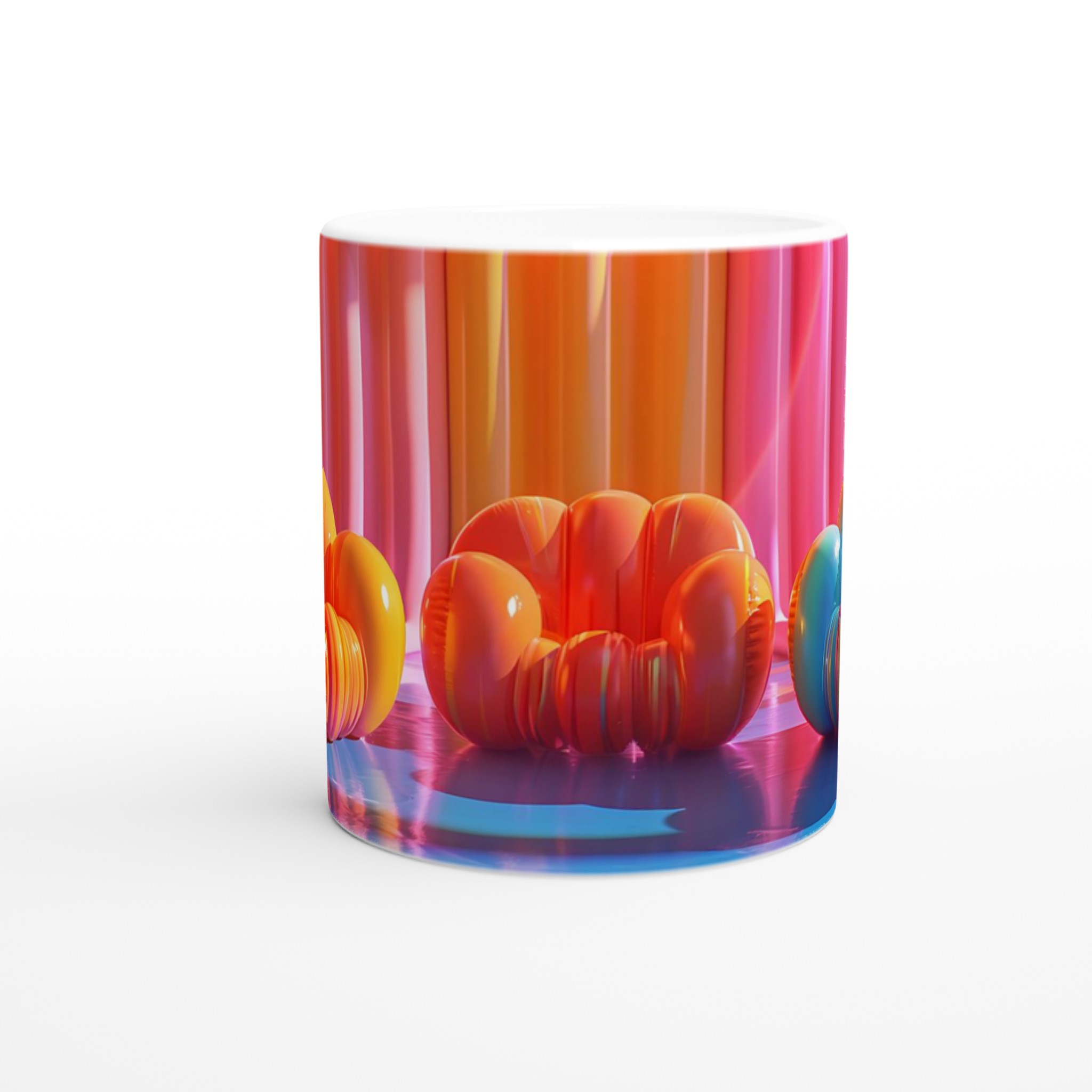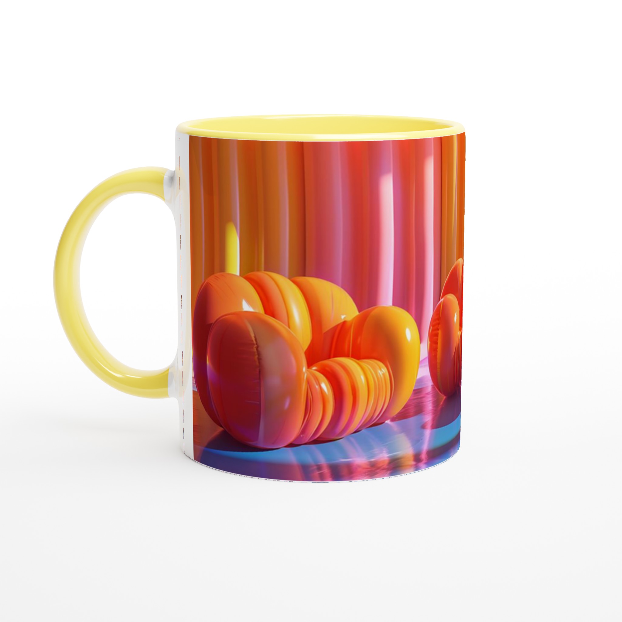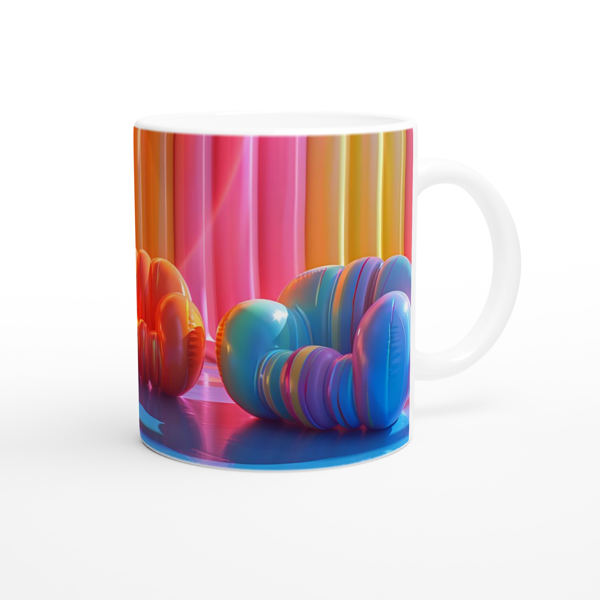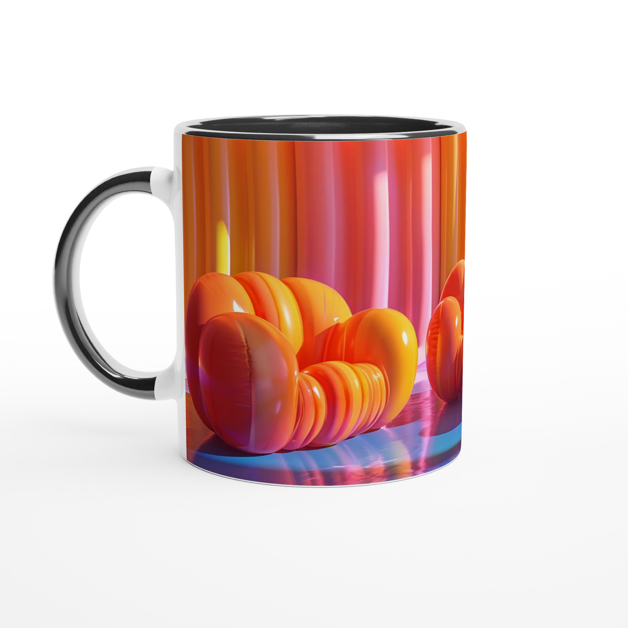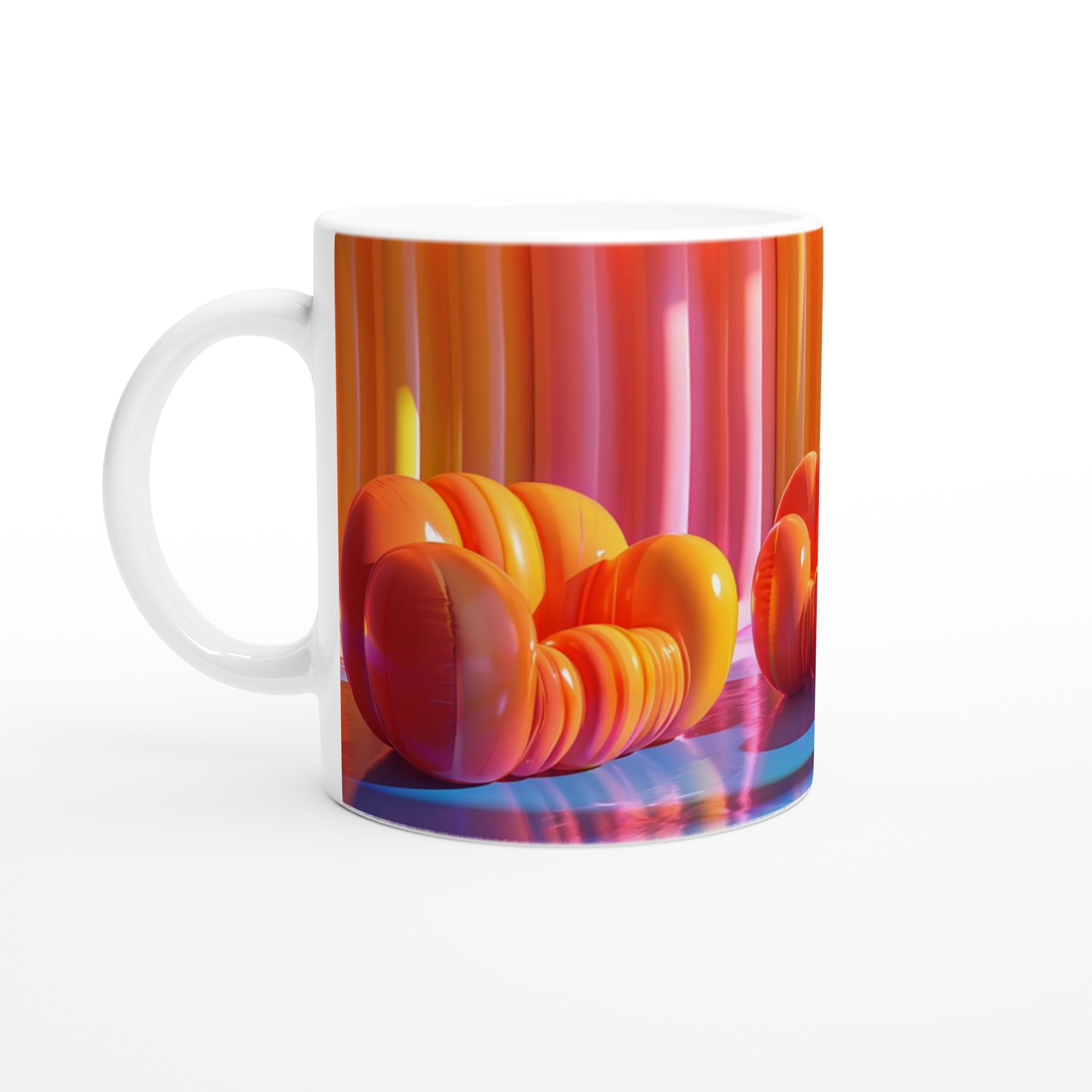 Lyft din fikastund till nya höjder med vår lekfulla keramiska mugg, inspirerad av de drömska färgerna från en solnedgång över havet. Den här muggen är mer än bara en kopp – den är en daglig påminnelse om glädje och avkoppling, perfekt för ditt morgonkaffe, kvällens varma choklad eller en lugn kopp te. Den blanka ytan framhäver livfulla tryck med klara och levande färger, som förblir lika strålande även efter otaliga turer i mikron och diskmaskinen.