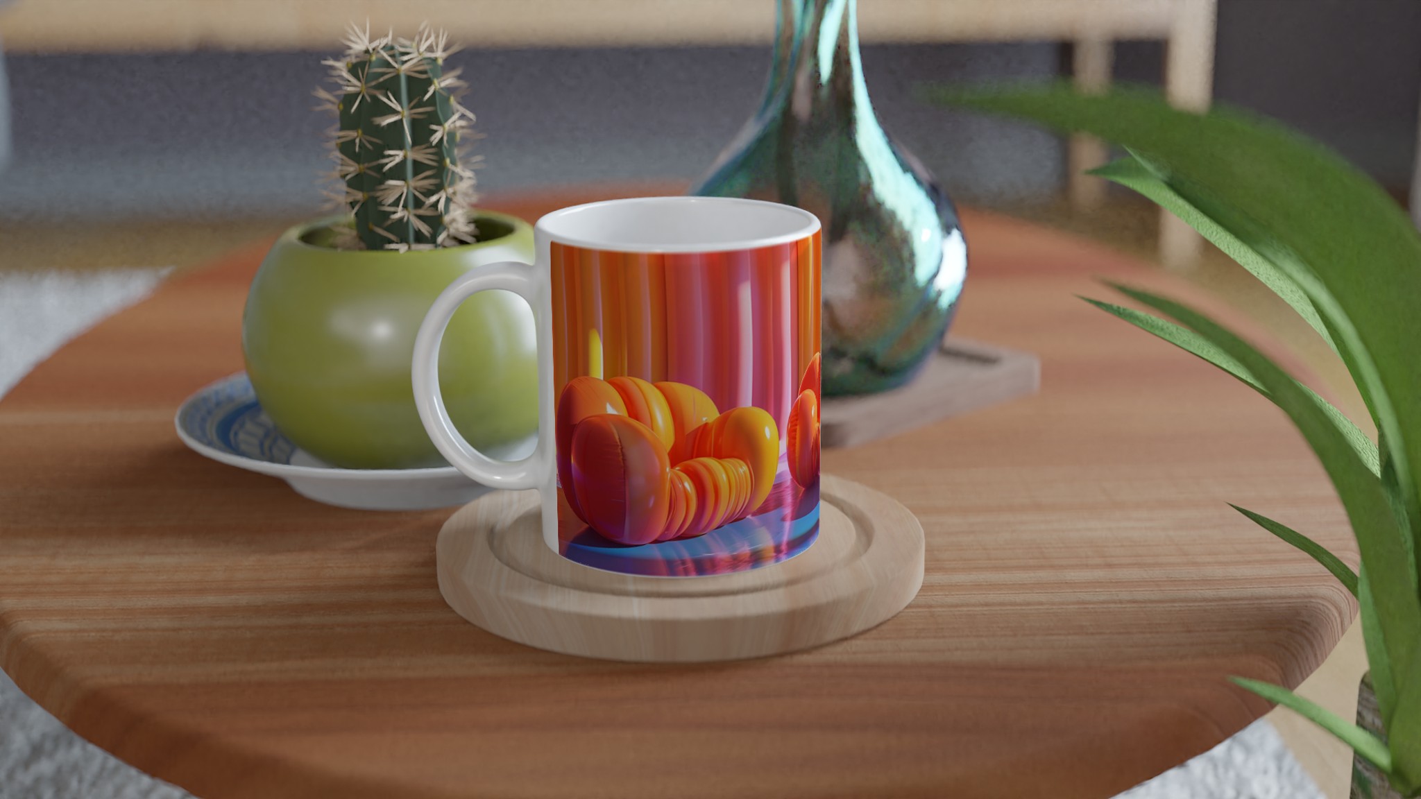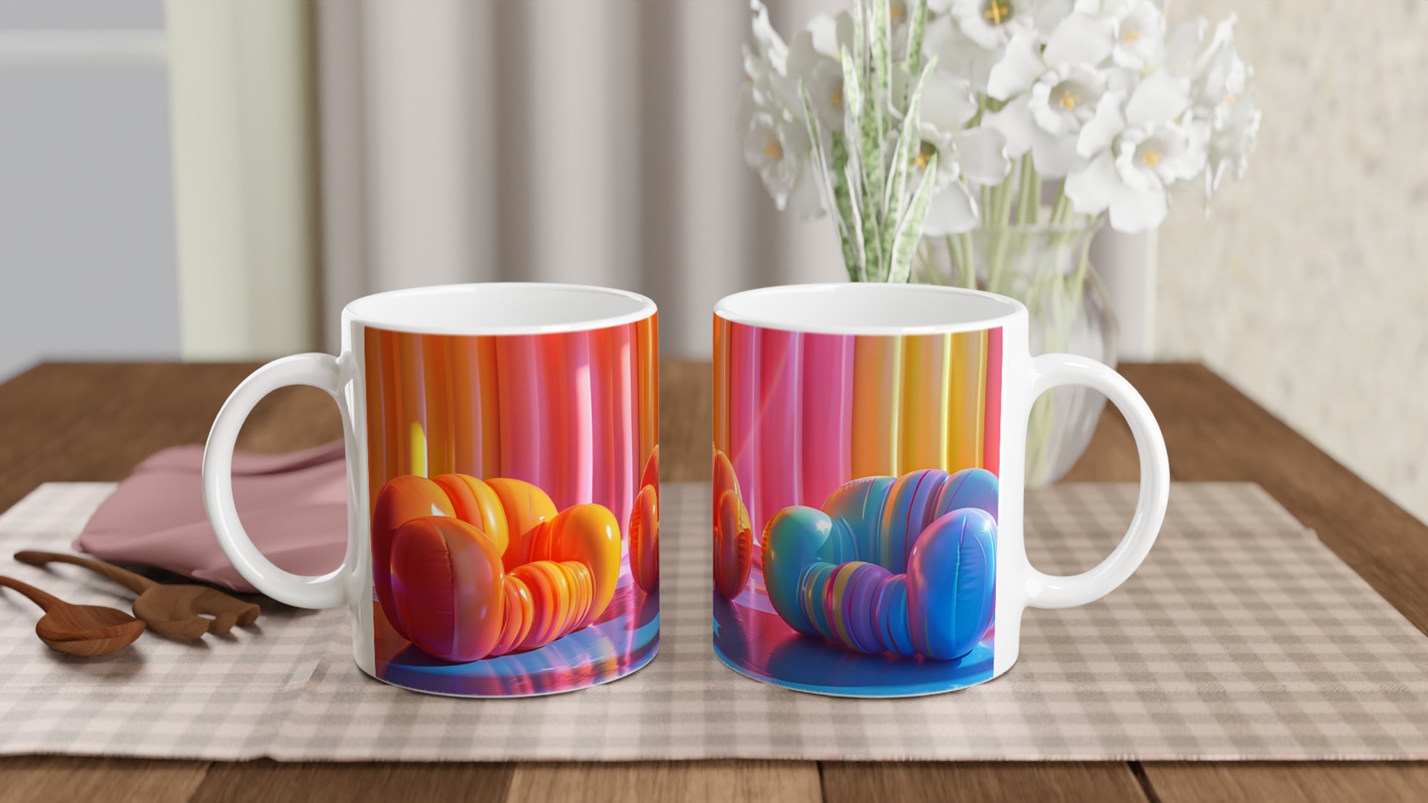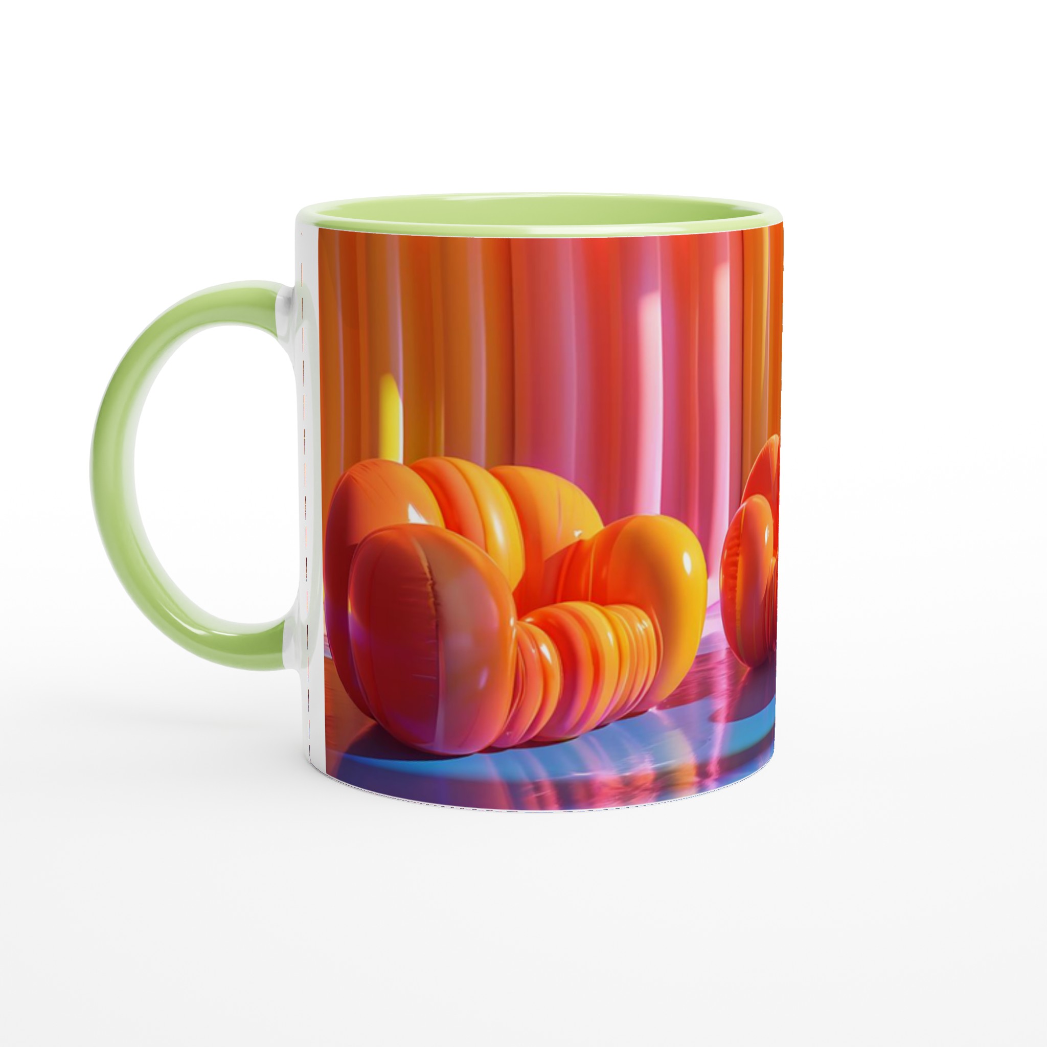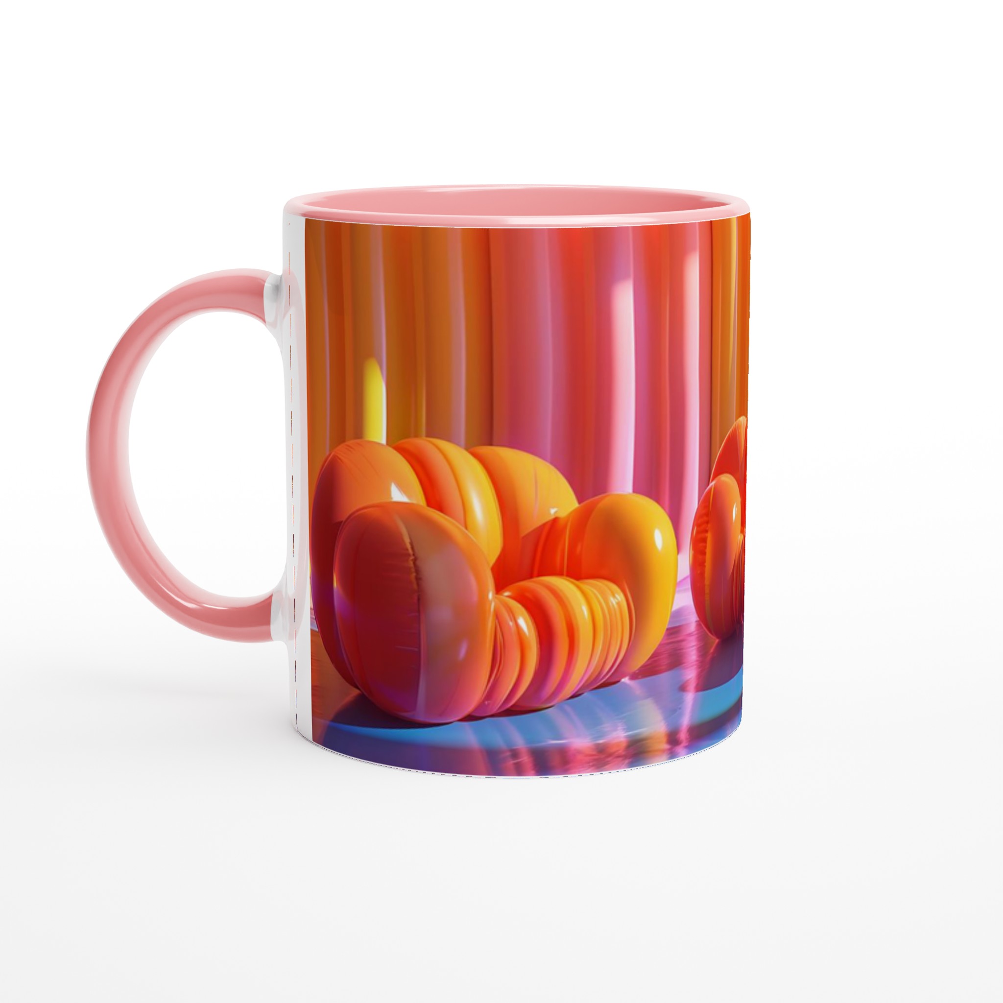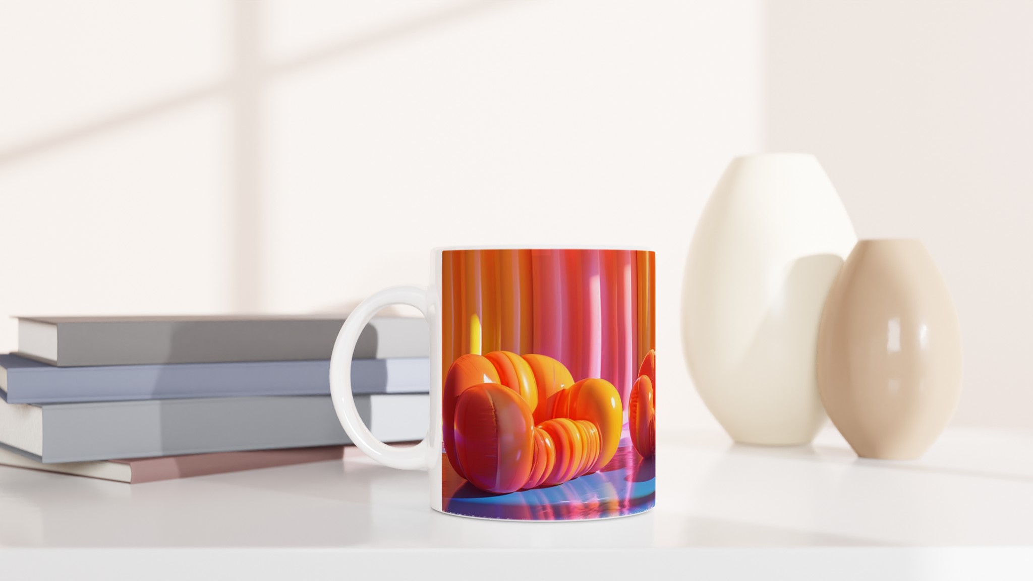 Lyft din fikastund till nya höjder med vår lekfulla keramiska mugg, inspirerad av de drömska färgerna från en solnedgång över havet. Den här muggen är mer än bara en kopp – den är en daglig påminnelse om glädje och avkoppling, perfekt för ditt morgonkaffe, kvällens varma choklad eller en lugn kopp te. Den blanka ytan framhäver livfulla tryck med klara och levande färger, som förblir lika strålande även efter otaliga turer i mikron och diskmaskinen.