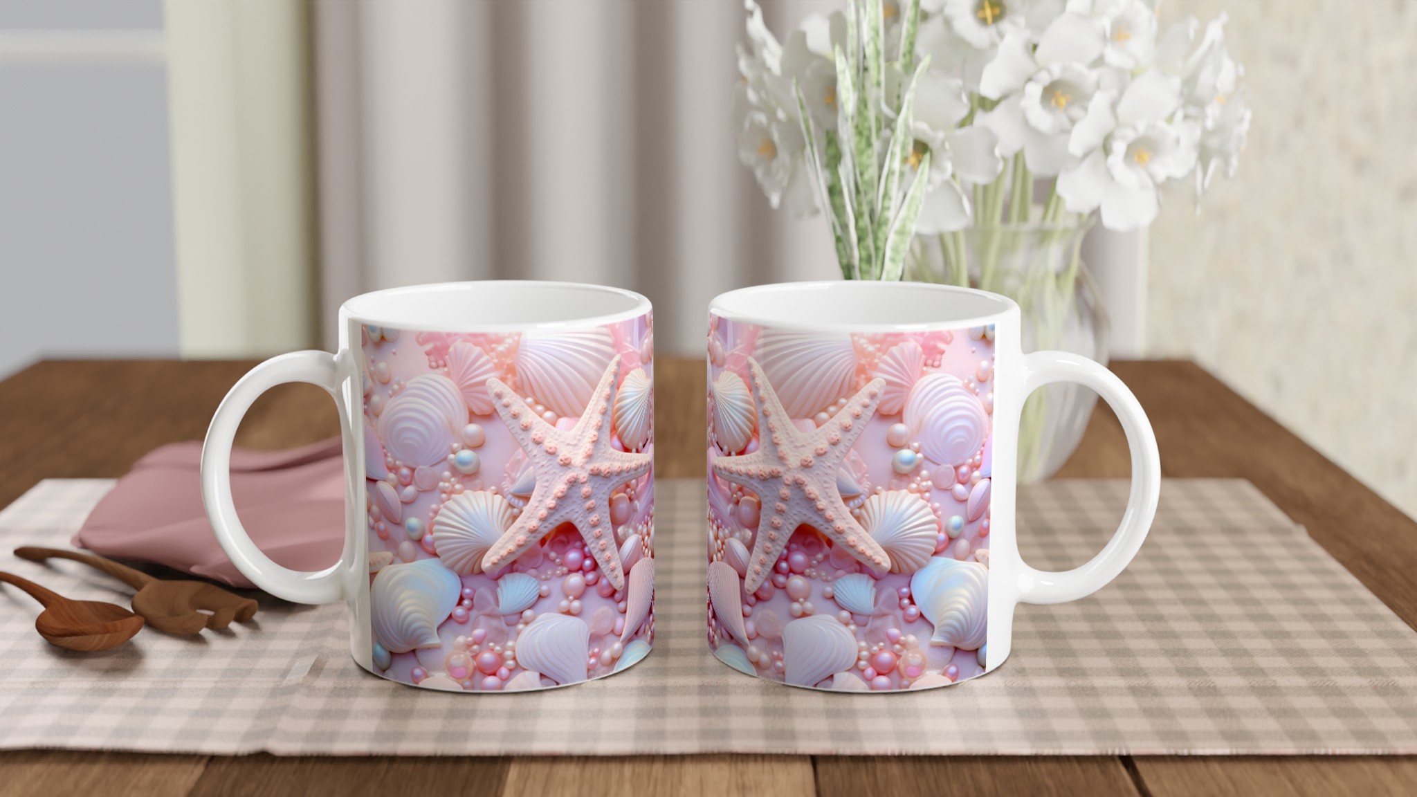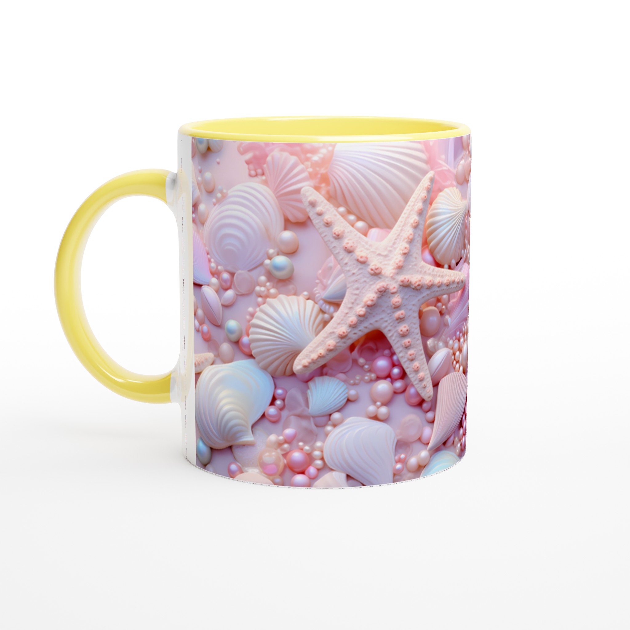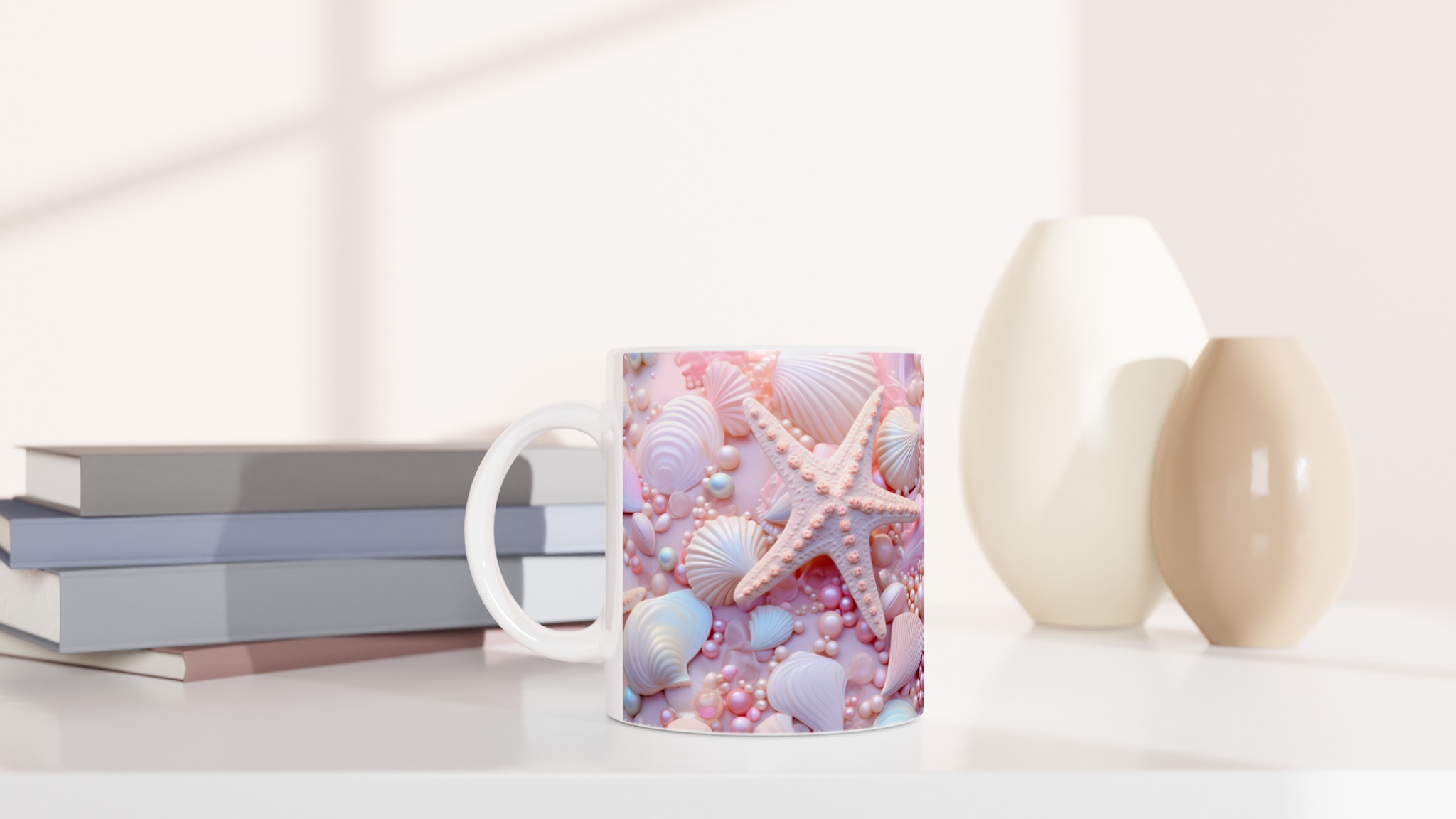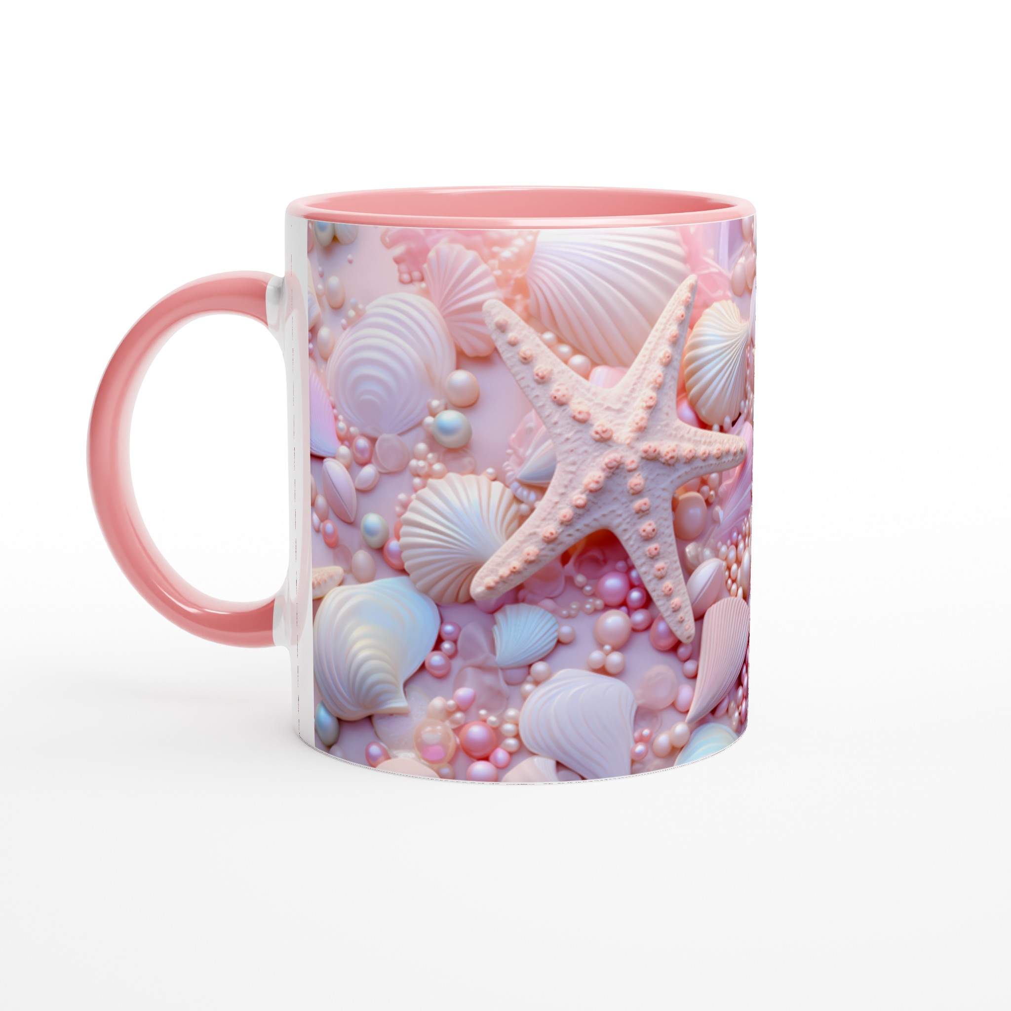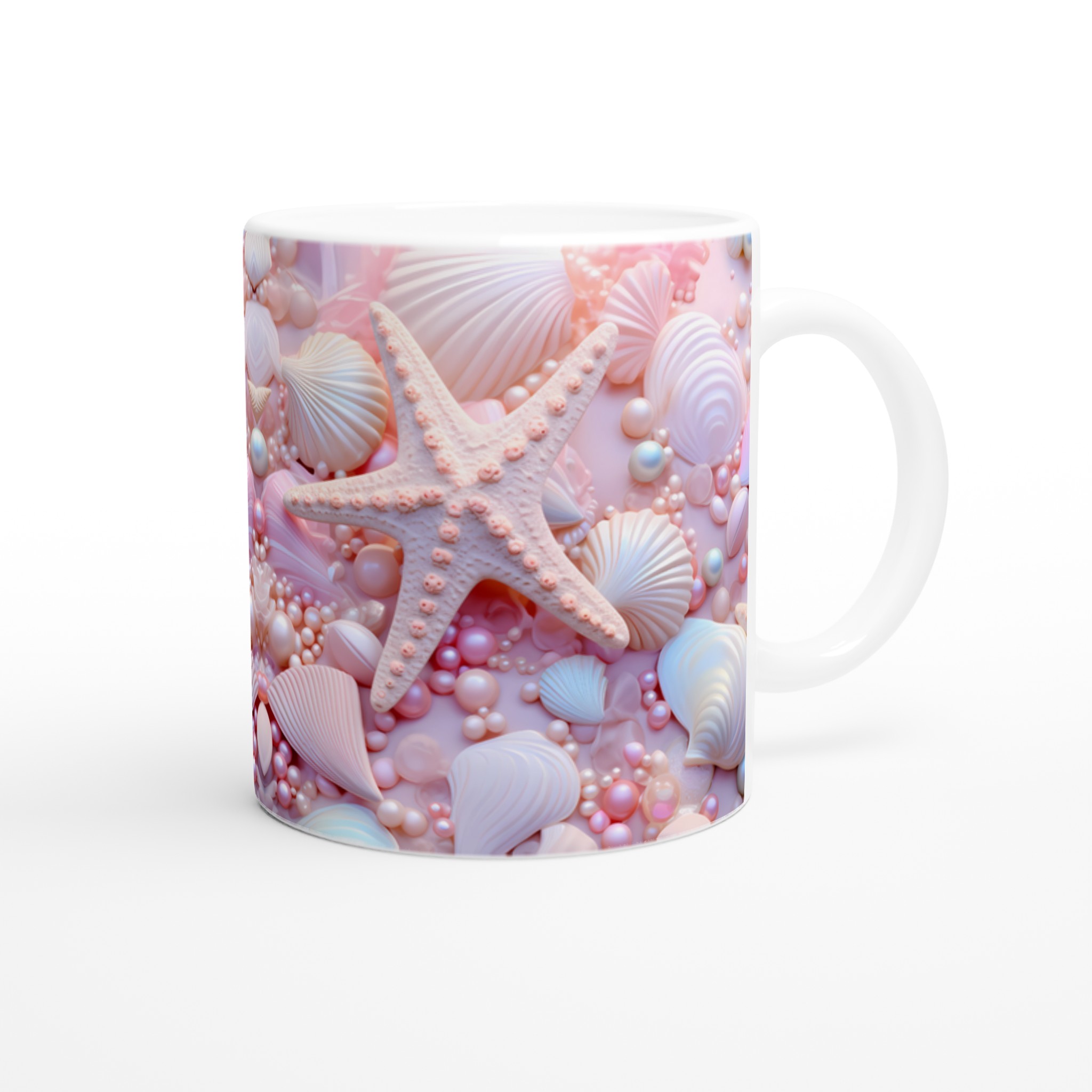 Fånga den lugna skönheten från havet varje dag med denna förtrollande keramiska mugg. Designen, inspirerad av mjuka rosatoner, skimrande snäckor och glänsande pärlor, förvandlar varje sipp till en stund av ren avkoppling och elegans. Perfekt för morgonkaffet, kvällens varma choklad eller när du bara vill njuta av en kopp te i en drömlik atmosfär.
