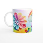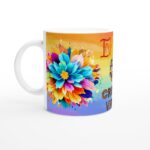 Låt din personlighet stråla med denna färgsprakande keramiska mugg! Prydd med ett livfullt regnbågstema, från ett penselmålat hjärta till en lekfull enhörningskontur och skimrande fjädrar, omgiven av en kaskad av blommor i rosa, gult och blått. Denna mugg är inte bara en vardagsfavorit – den är en hyllning till glädje och mångfald, perfekt för att lysa upp din morgonrutin eller fika med vänner.