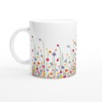Låt varje klunk bli en njutning med denna underbara keramiska mugg, prydd med ett charmigt mönster av soliga vildblommor och frodiga bär. Denna mugg förvandlar snabbt din dryckesritual till en stund av glädje, perfekt för morgonkaffet, en lugnande kopp te på kvällen eller den där välförtjänta varma chokladen.