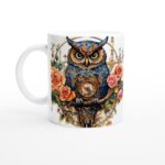 Lyft din fikastund till nya höjder med denna unika keramiska mugg, prydd med en intrikat steampunk-inspirerad blomsterfantasi. De livfulla korallröda och lugnande turkosa nyanserna, kombinerade med detaljerade mekaniska element och organiska former, skapar en visuell fest som gör varje kopp till en upplevelse. Den här stilrena muggen blir snabbt en vardagsfavorit.