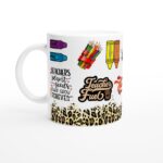 Den blanka vita ytan gör att trycken framhävs med klara och levande färger, som håller sig fina även efter många turer i mikron och diskmaskinen. Muggen är inte bara praktisk – den är också en uppskattad present till familj, vänner eller kollegor inom utbildningssektorn. En enkel men personlig gåva som hyllar det viktiga arbete lärare utför och alltid kommer till användning.
