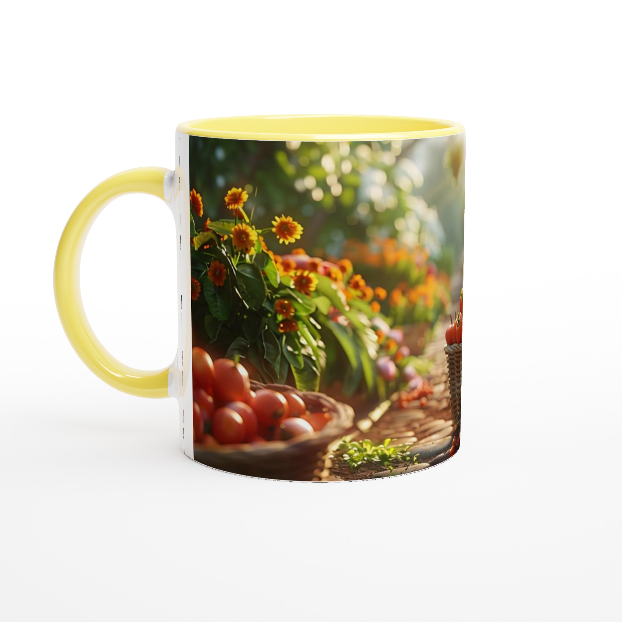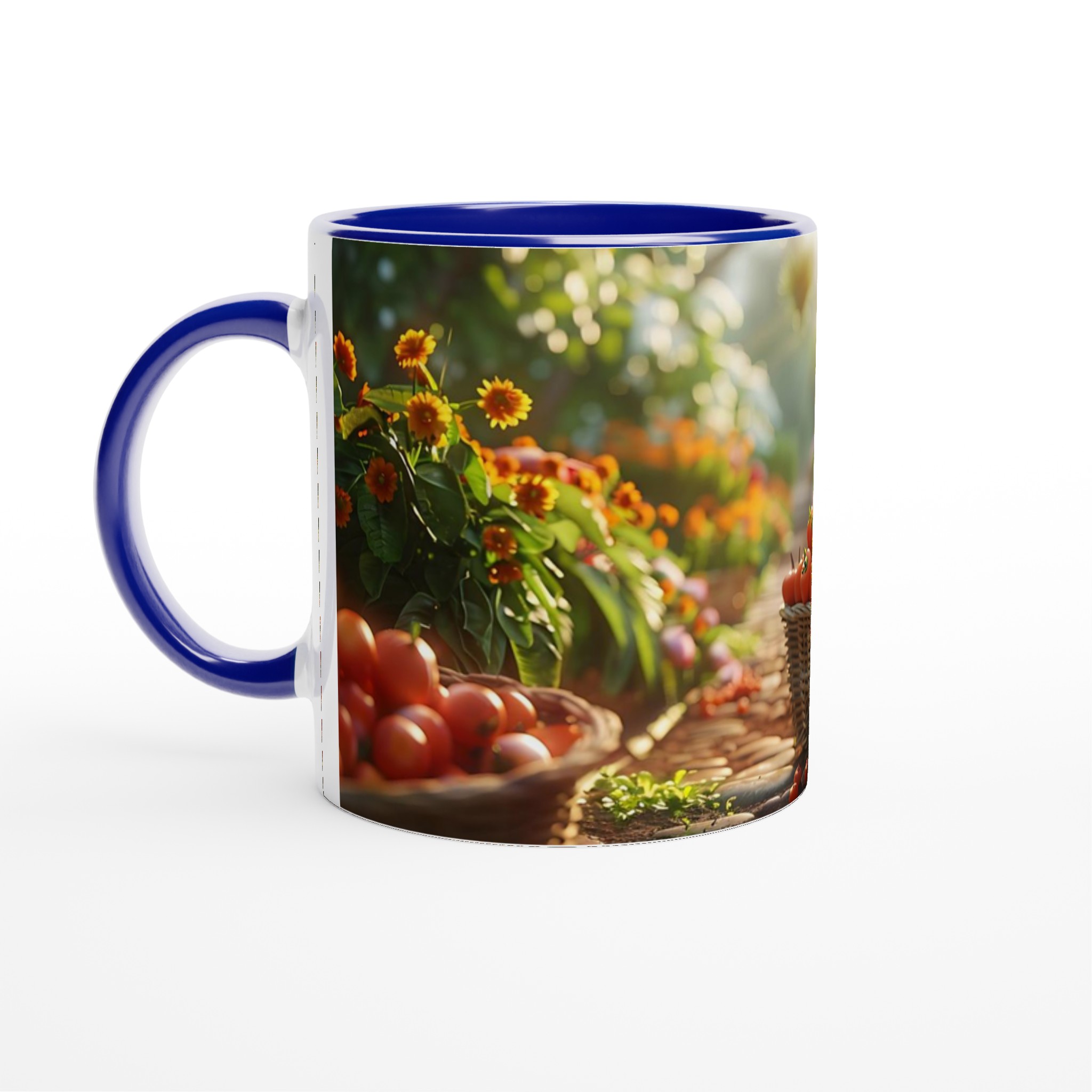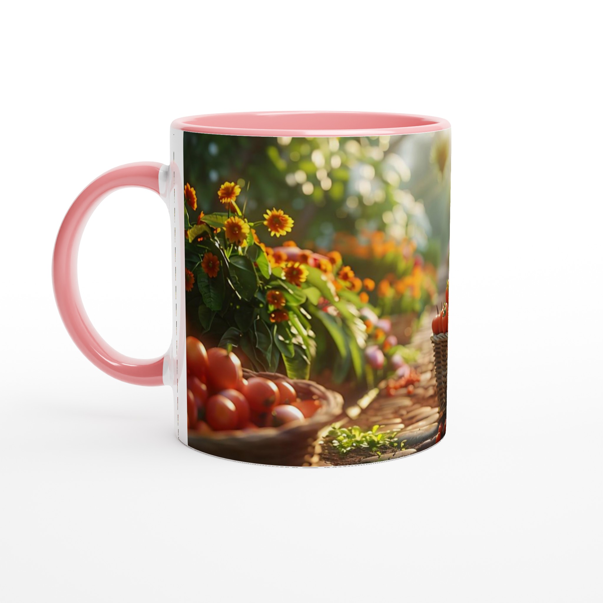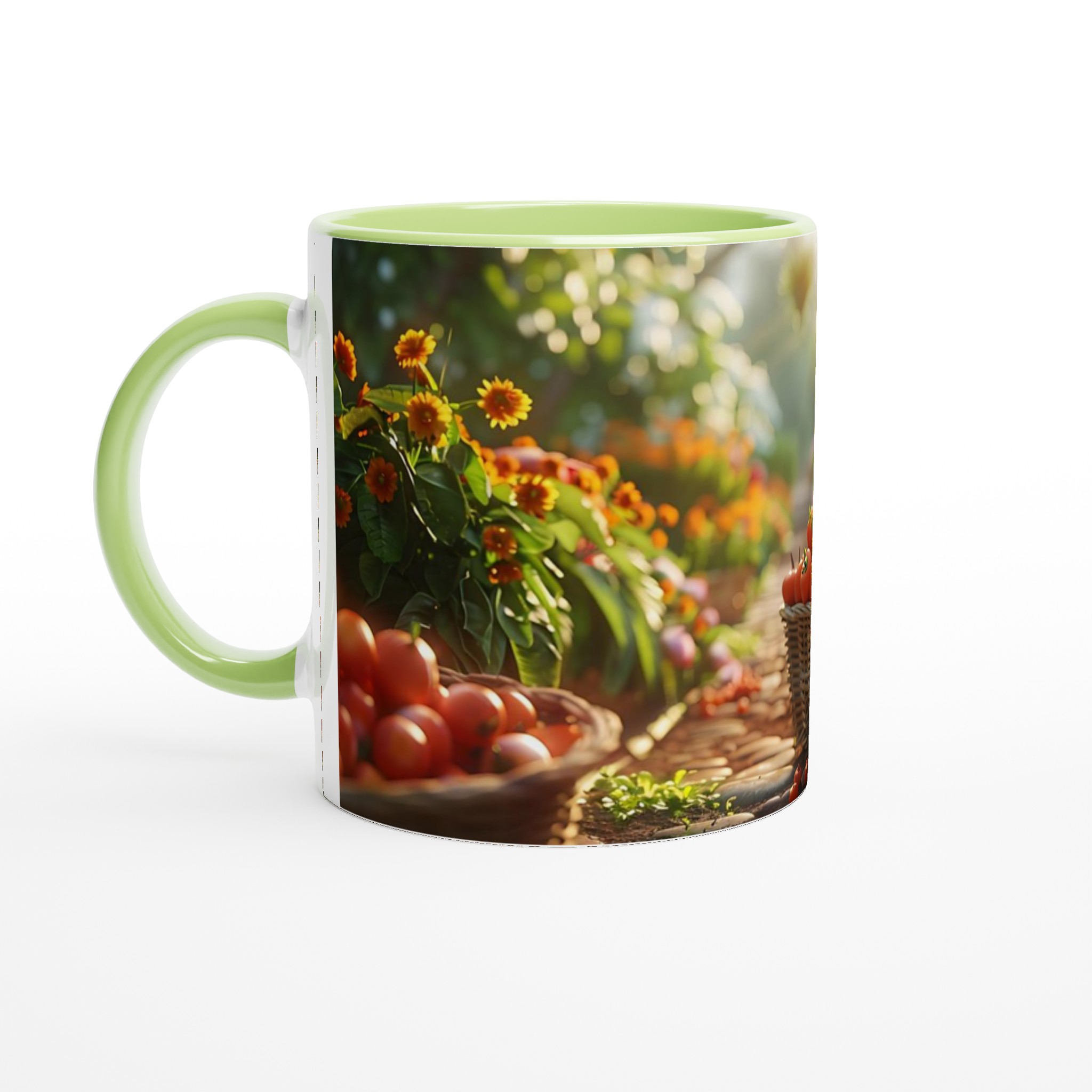 Vakna till liv med en mugg som fångar den lugna skönheten från en solbelyst trädgård, fylld med mogna tomater och blommande växter. Den här stilrena keramiska muggen blir snabbt en vardagsfavorit, perfekt för morgonkaffet, kvällens varma choklad eller när du bara vill njuta av en kopp te. Med sitt inspirerande motiv och en blank yta framhävs trycken med klara och levande färger, som håller sig fina även efter många turer i mikron och diskmaskinen.