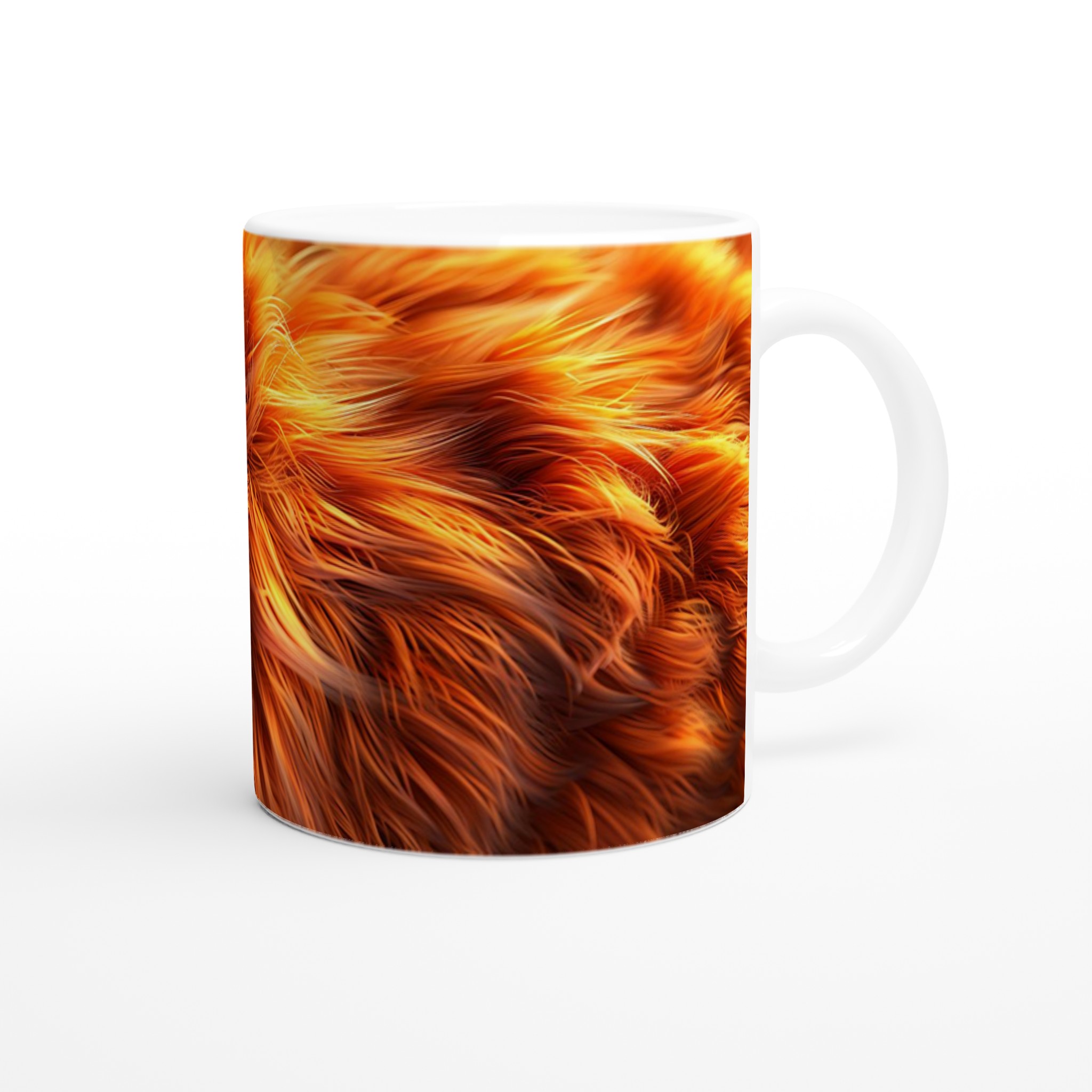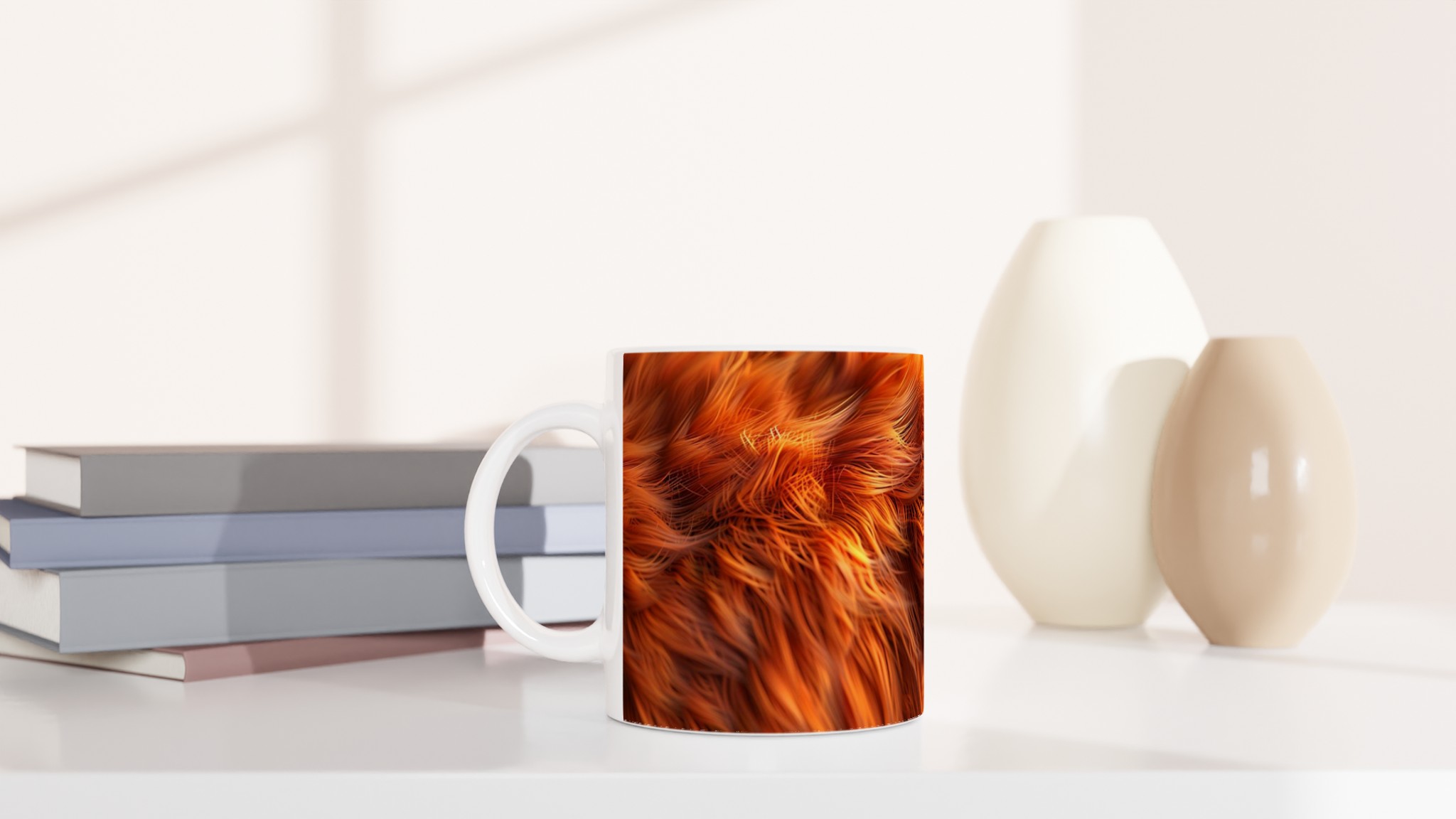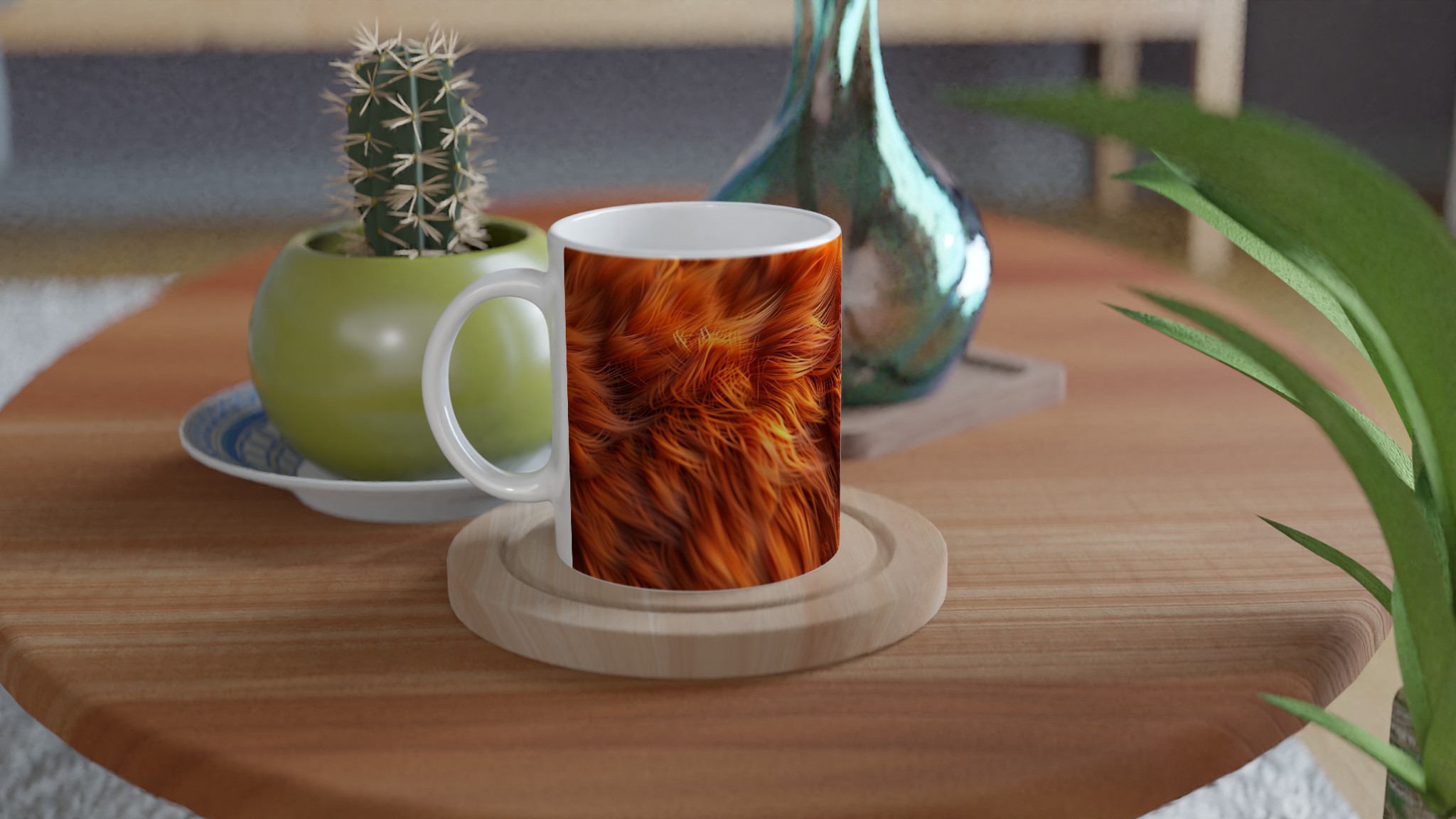 Lys upp din fikastund med vår iögonfallande keramiska mugg, en sann vardagsfavorit som förgyller varje ögonblick. Inspirerad av solnedgångens varma glöd och den rika texturen av flammande päls, fångar denna mugg essensen av en mysig, gyllene stund. Perfekt för morgonkaffet, kvällens varma choklad eller när du bara vill njuta av en kopp te. Den blanka ytan framhäver tryck med klara och levande färger, som håller sig fina även efter många turer i mikron och diskmaskinen.